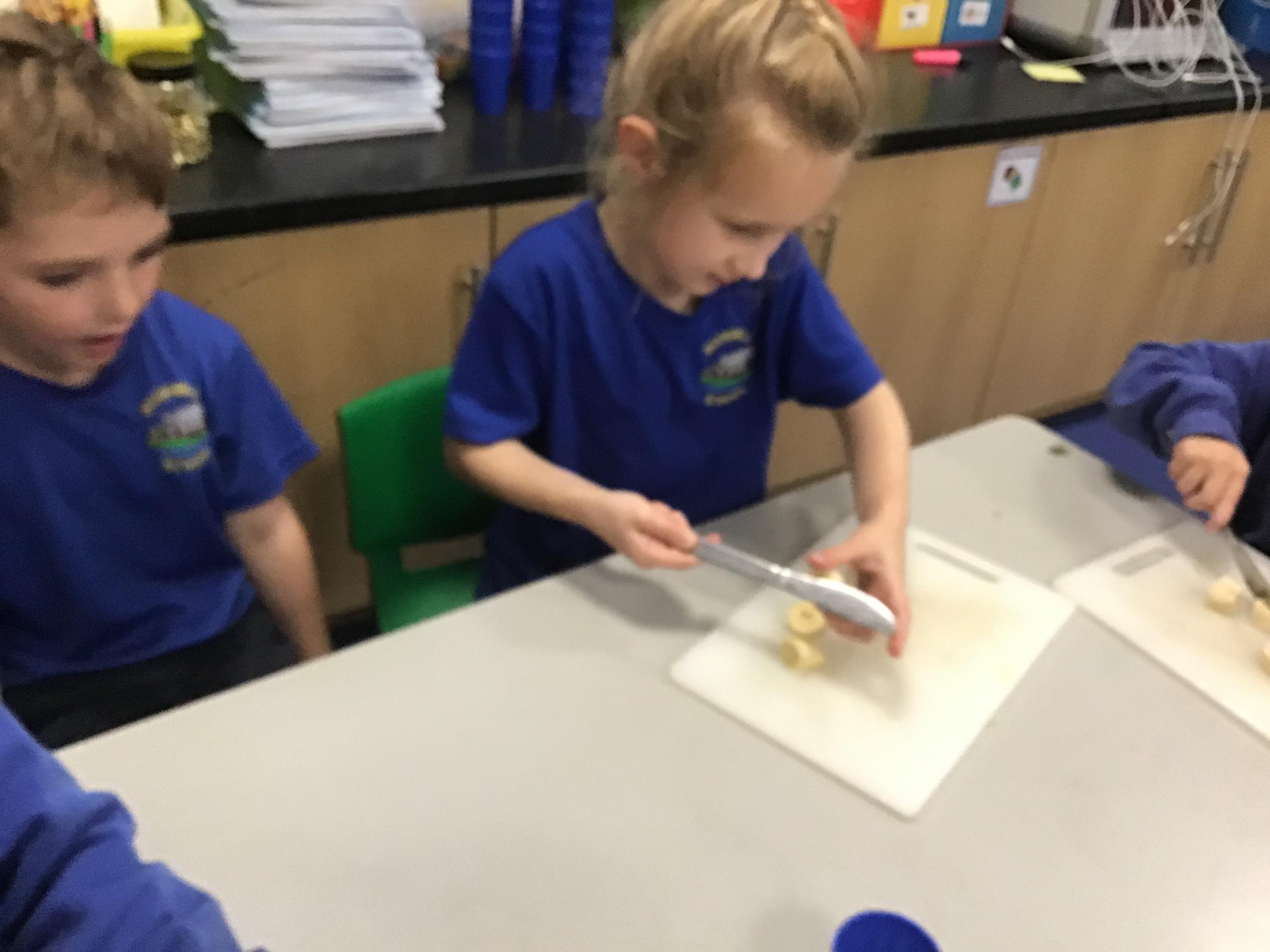 We then learnt to peel, cut and blend ready to make our tasty smoothies.