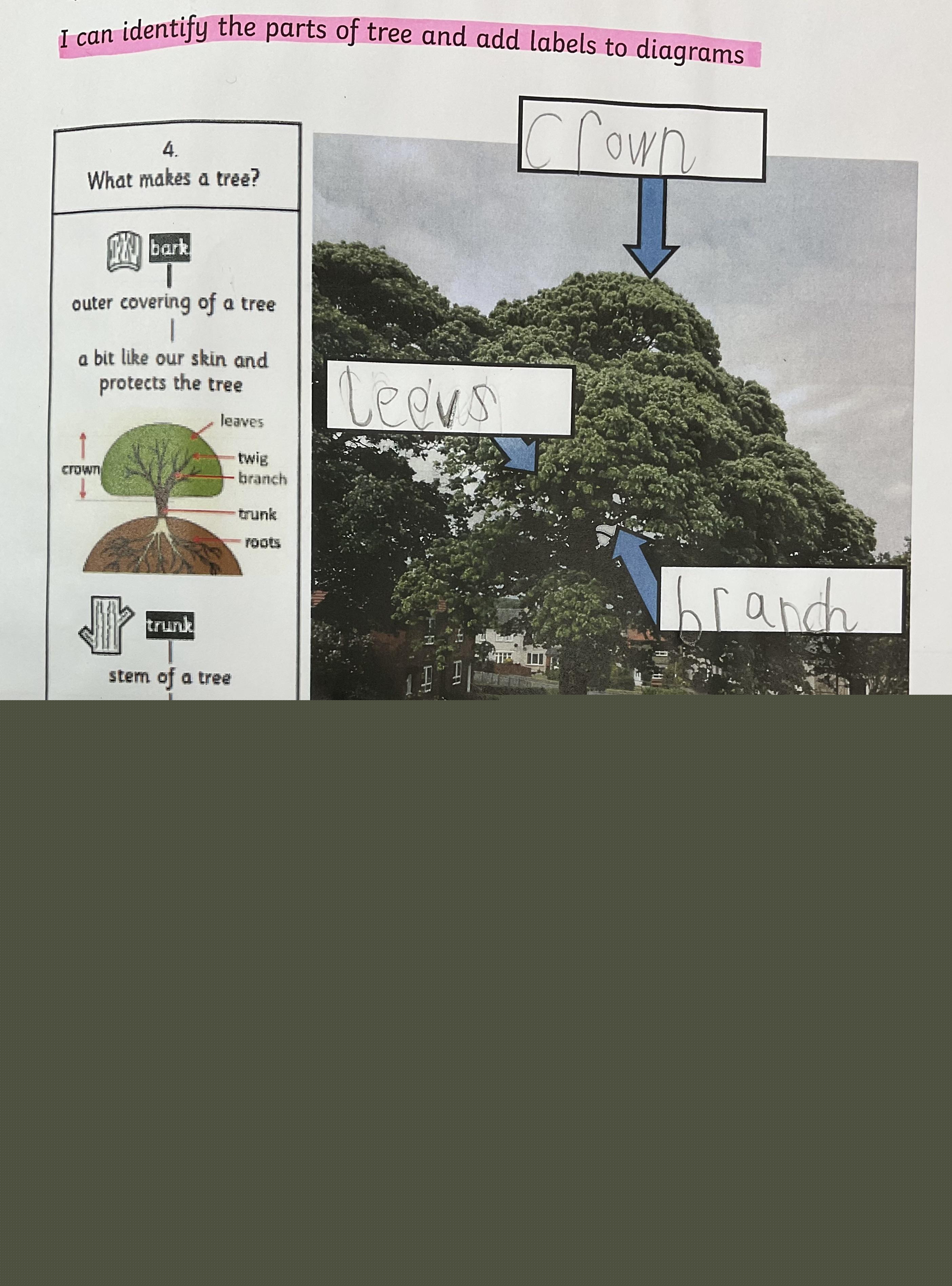 In science we have been learning about trees. We have learnt to name the different parts of a tree and also to name trees by looking at the leaves and seeds. We have also planted some acorn and horse chestnut seeds.