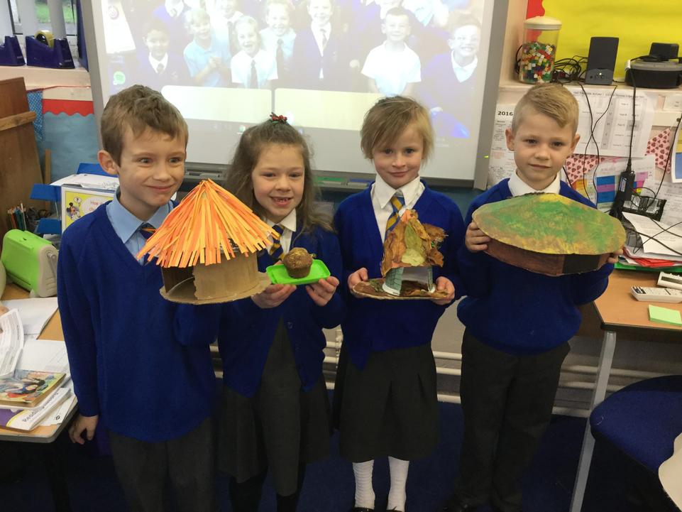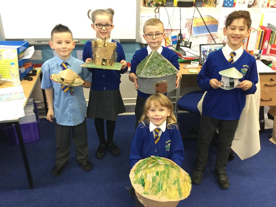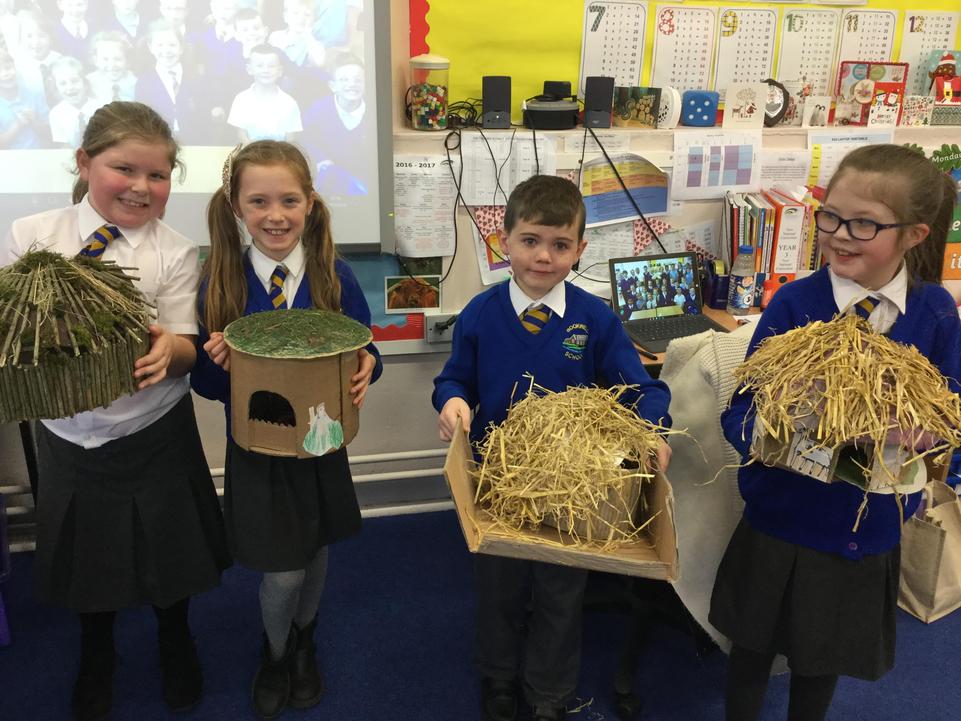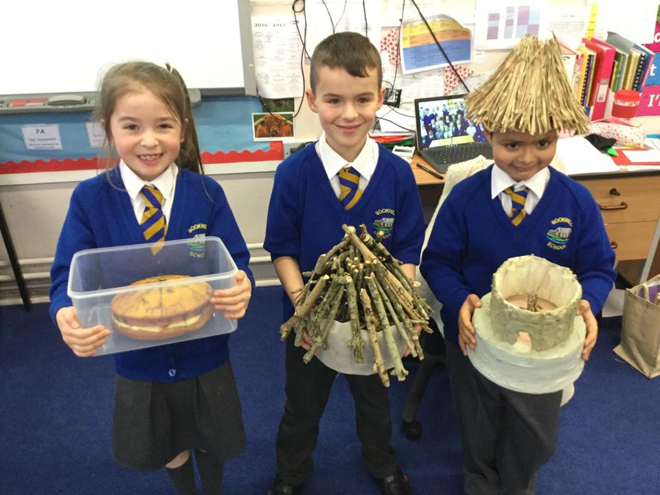 Today our classroom was transformed into a Bronze Age village! To consolidate what we have learnt in class about how Bronze Age people lived, we each designed and built a 3D model of a prehistoric roundhouse at home. We all really enjoyed making our models with a wide range of different materials from clay to sponge cake! Congratulations to our winner, Thomas, runner's up Cadie and George and everyone who took part! Thank-you to all the parents, grandparents, brothers and sisters who helped with the building process!