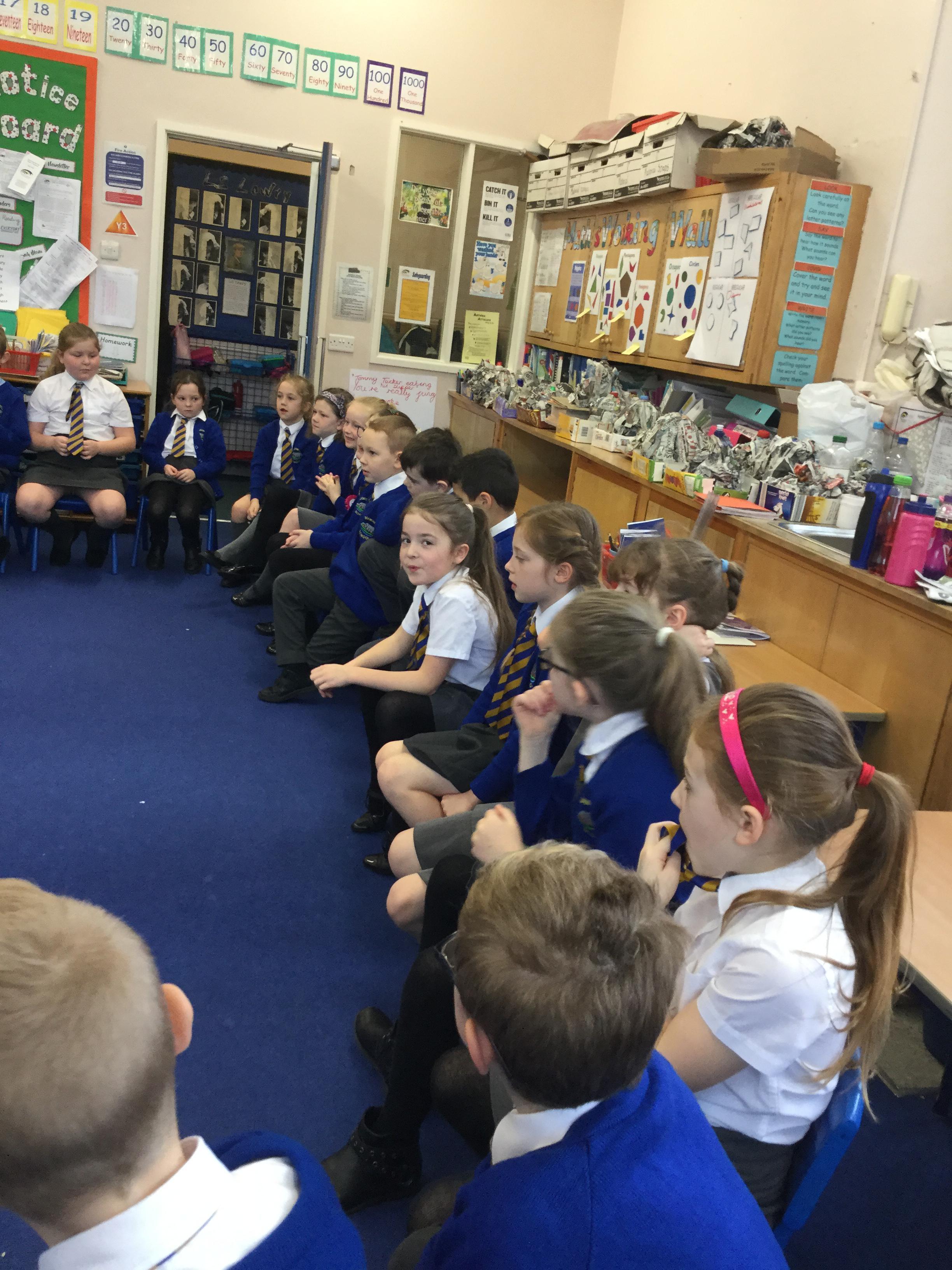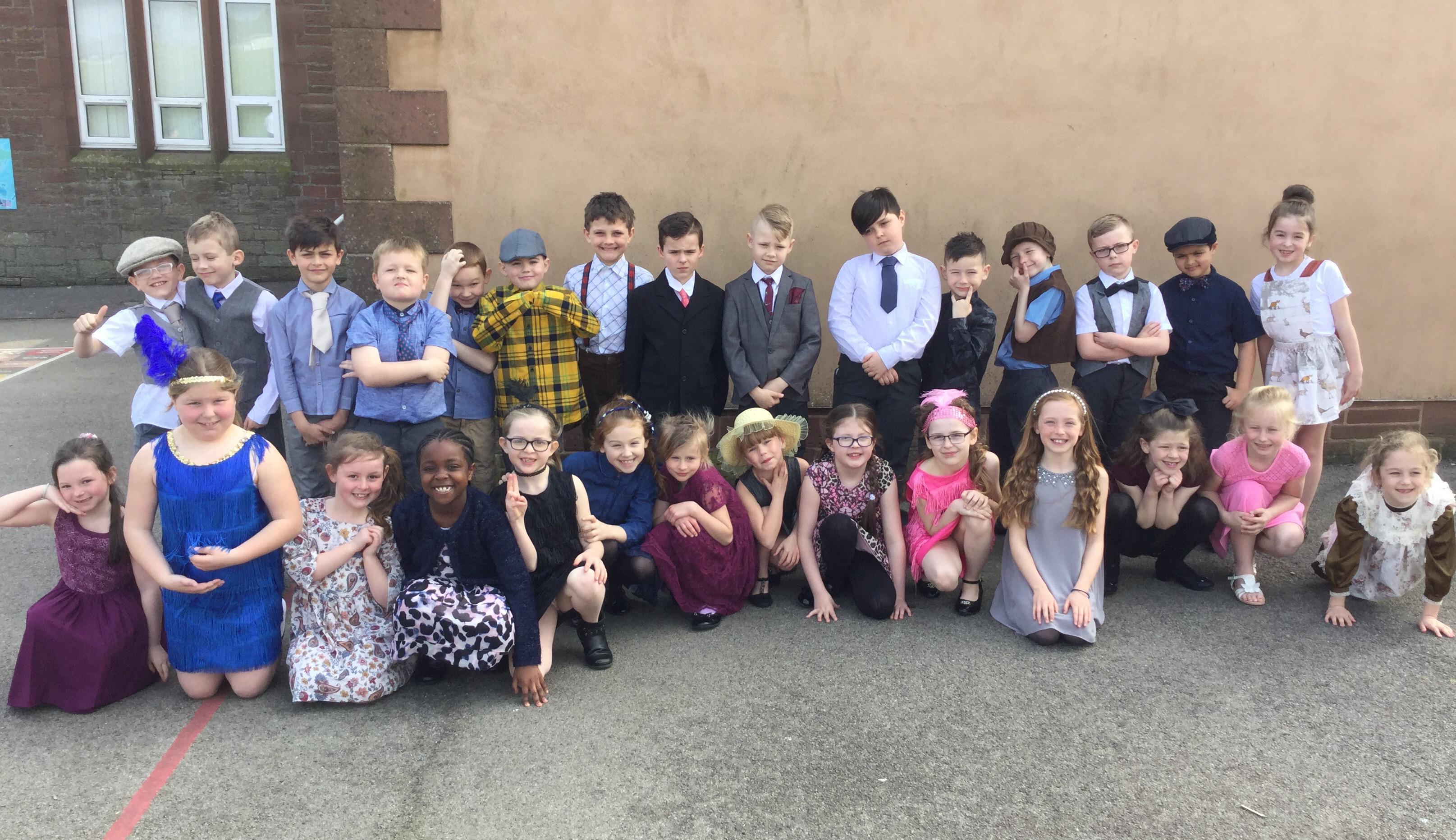 On Tuesday Year 3 took part in the junior production of 'The Mystery of Magpie Manor'. Both performances were outstanding and we all enjoyed singing to a very large audience in the Market Hall. Take a look at how smart we look for the 'Grand Auction Ball' taken half an hour before the show!
