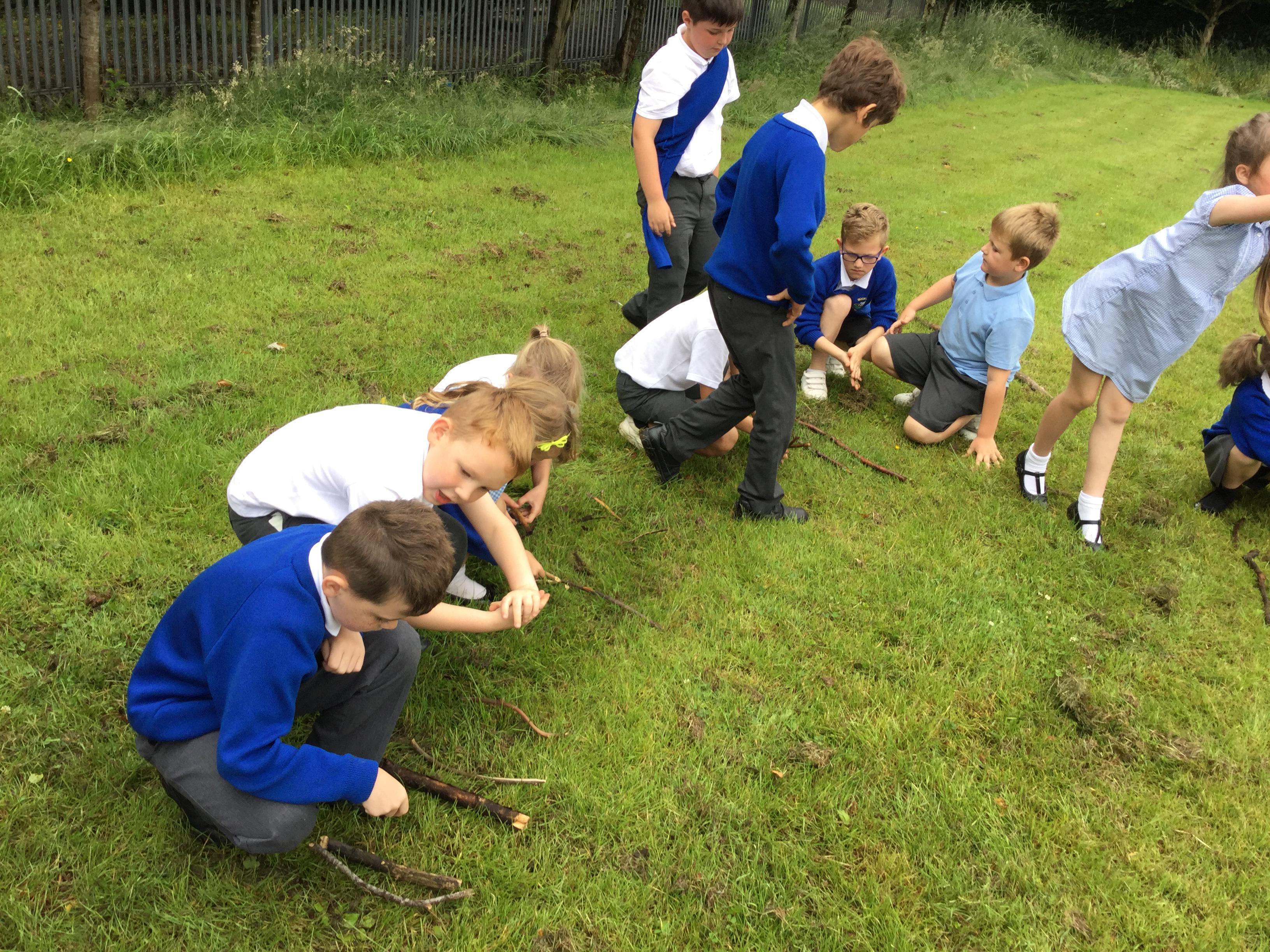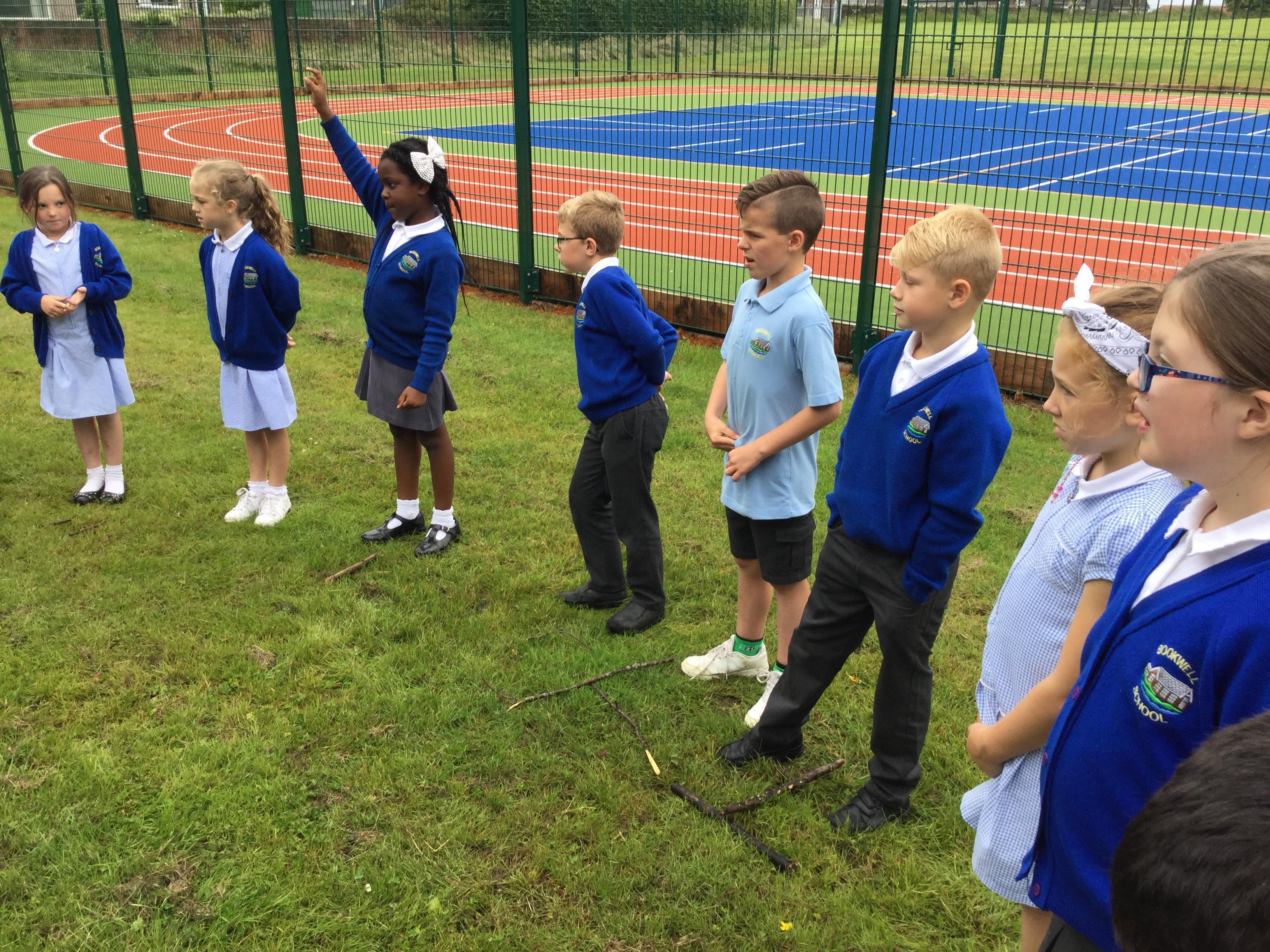 To see how much we had learned about different types of lines, we collected sticks from the woodland and used them to make pairs of parallel and perpendicular lines. Miss Giles challenged us to use a certain number of sticks to make different types of lines, we had to talk and listen to each other carefully and work together.