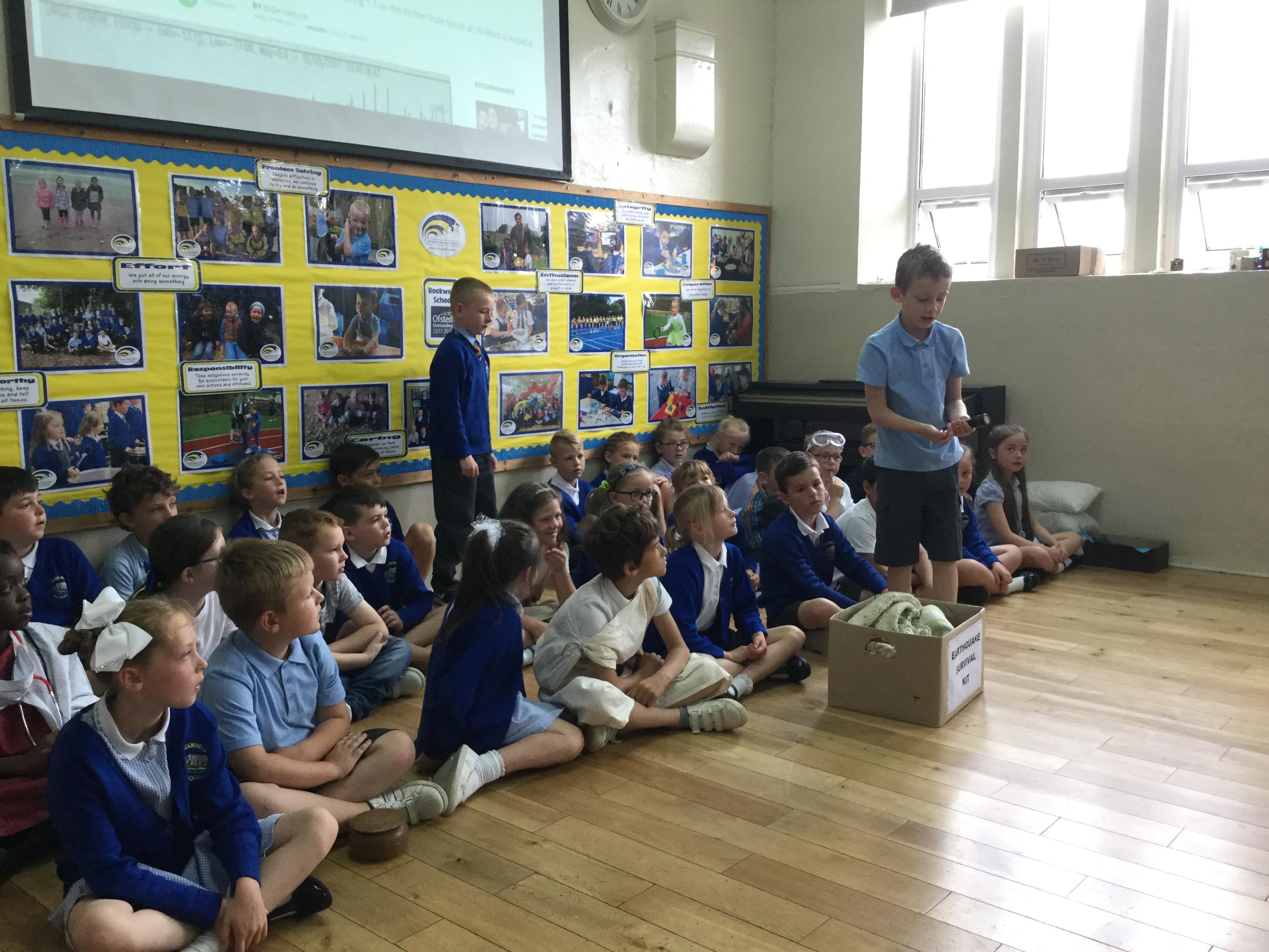 This week we performed our class assembly in front of the school and our parents. Our assembly was all about the power of volcanoes and earthquakes and the damage they can cause. We also retold the story of Pompeii and even prepared an earthquake survival kit! Everyone was brilliant and should be extremely proud of themselves! Well done!