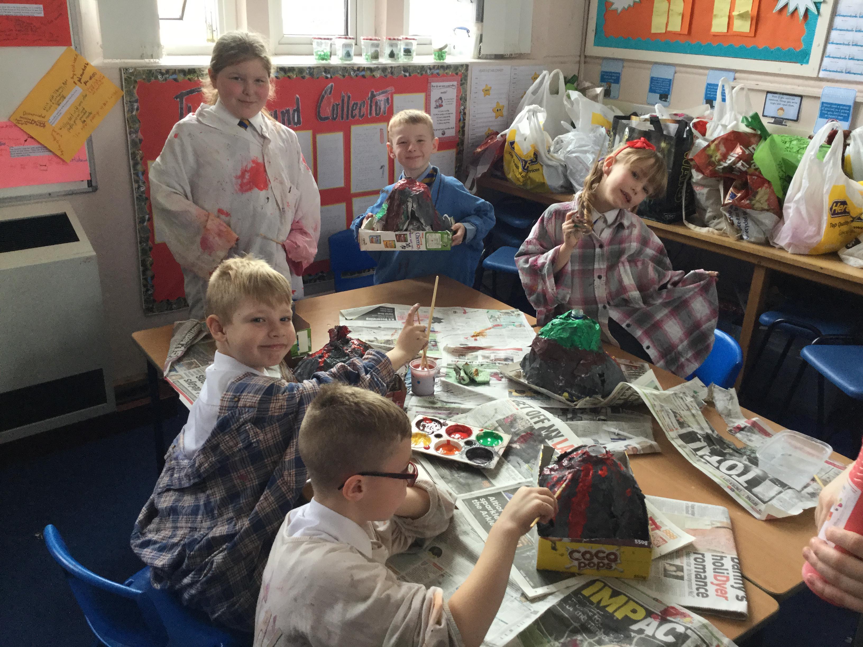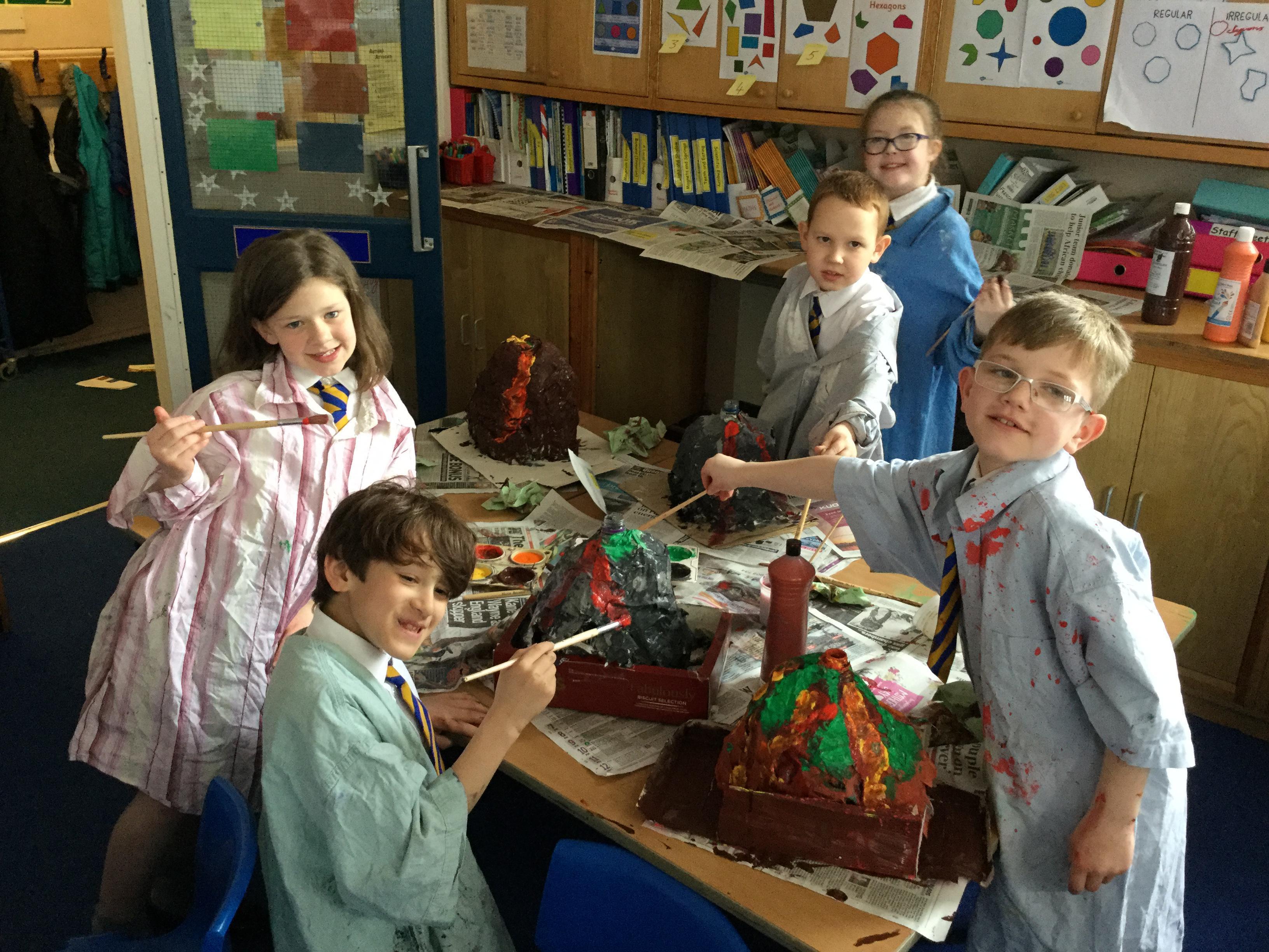 In Geography and English we have been learning all about the deadly eruption of Mount Vesuvius and how it buried the town of Pompeii. This week we finally saw our volcano models begin to take shape. It's amazing what a dab of paint can do, all we need now is a real life eruption! Can you spot yours?