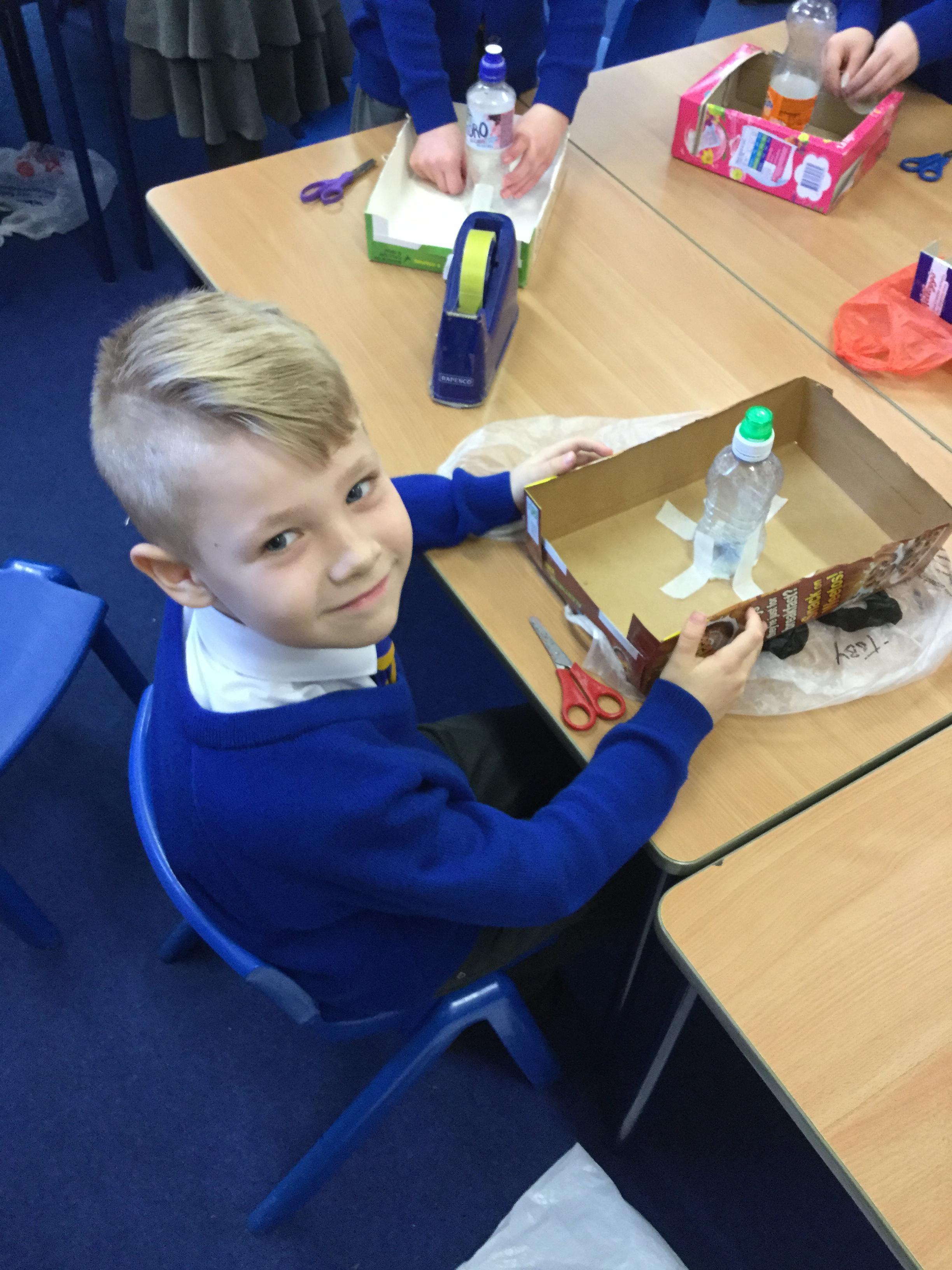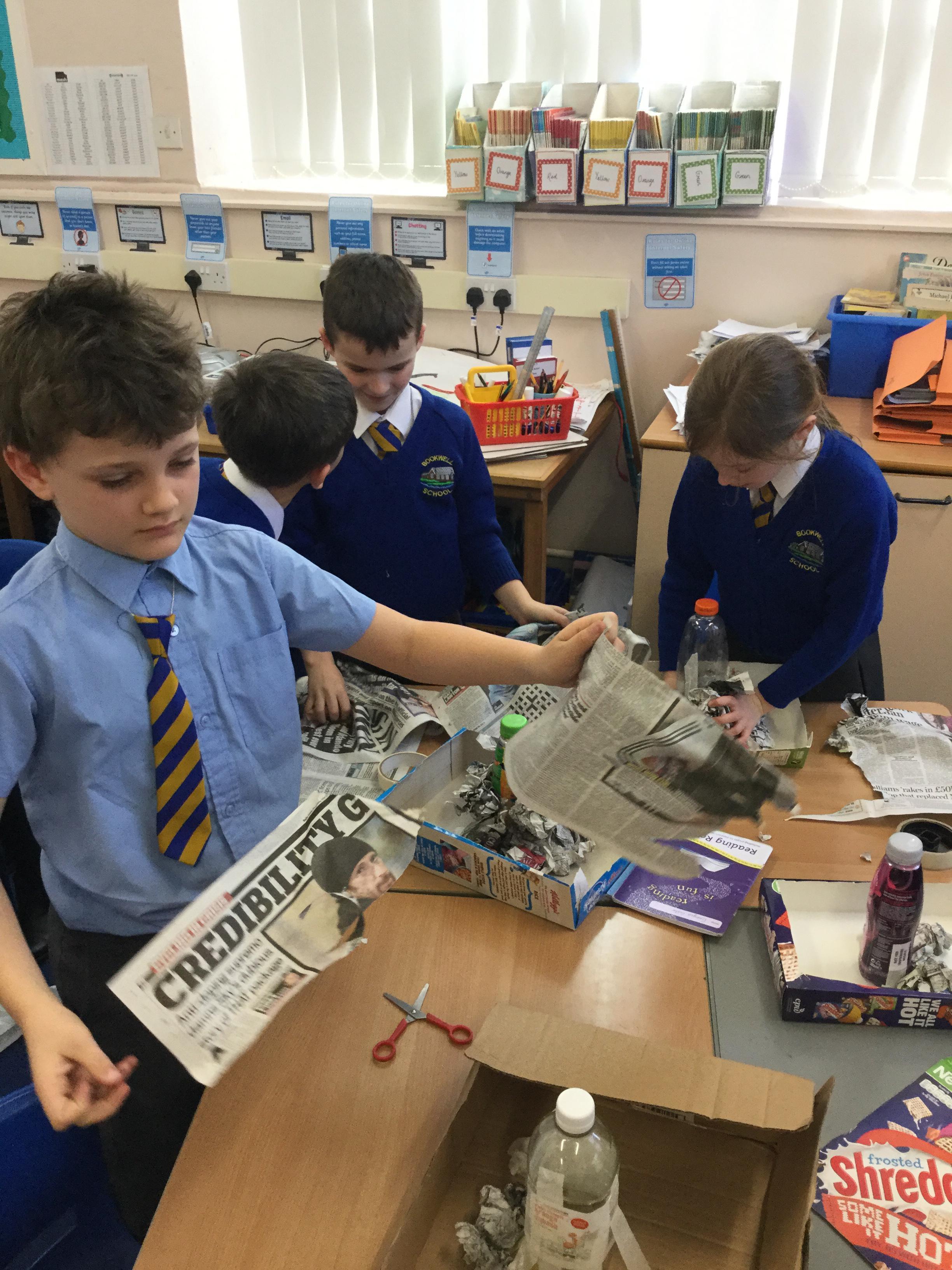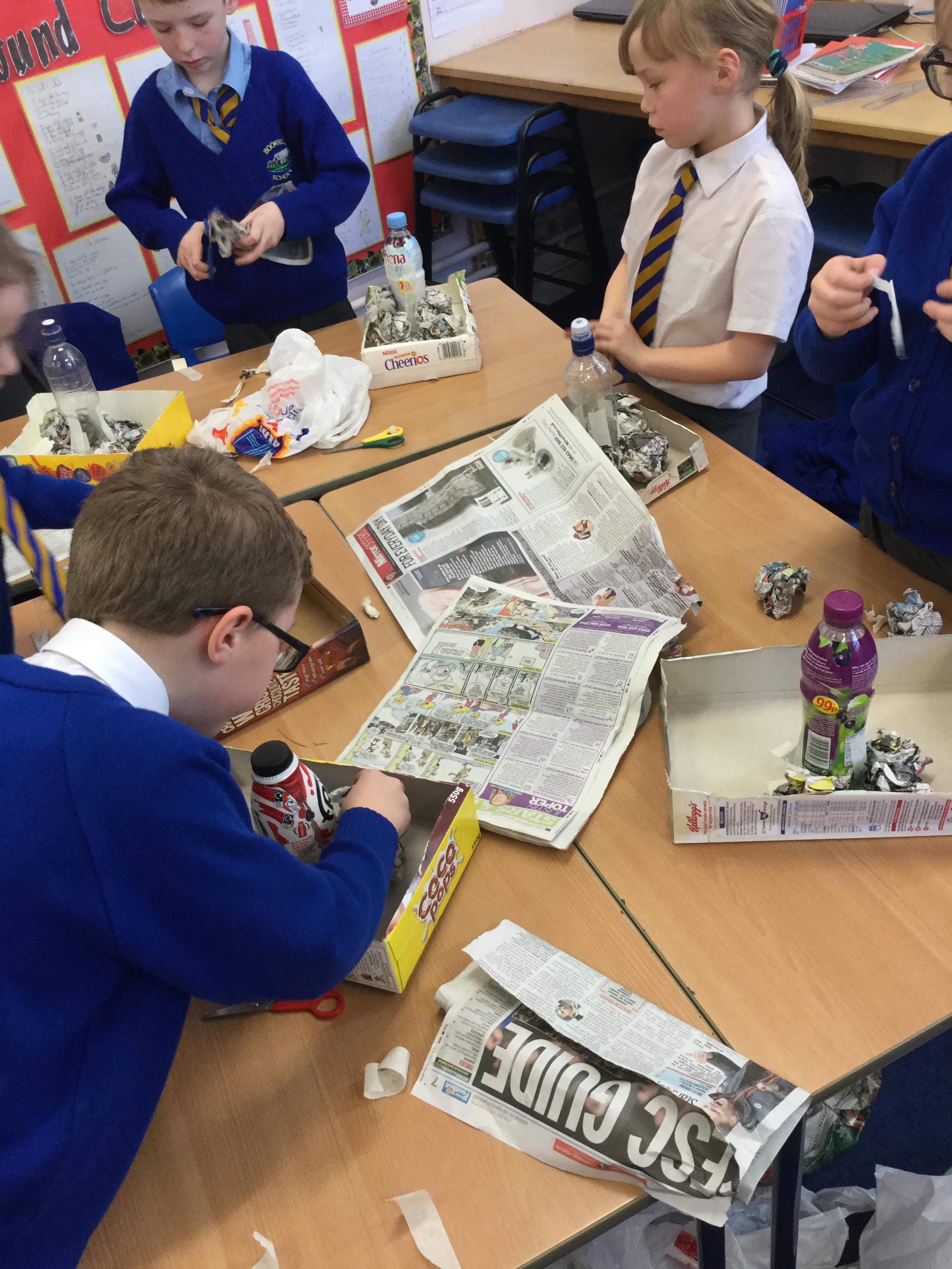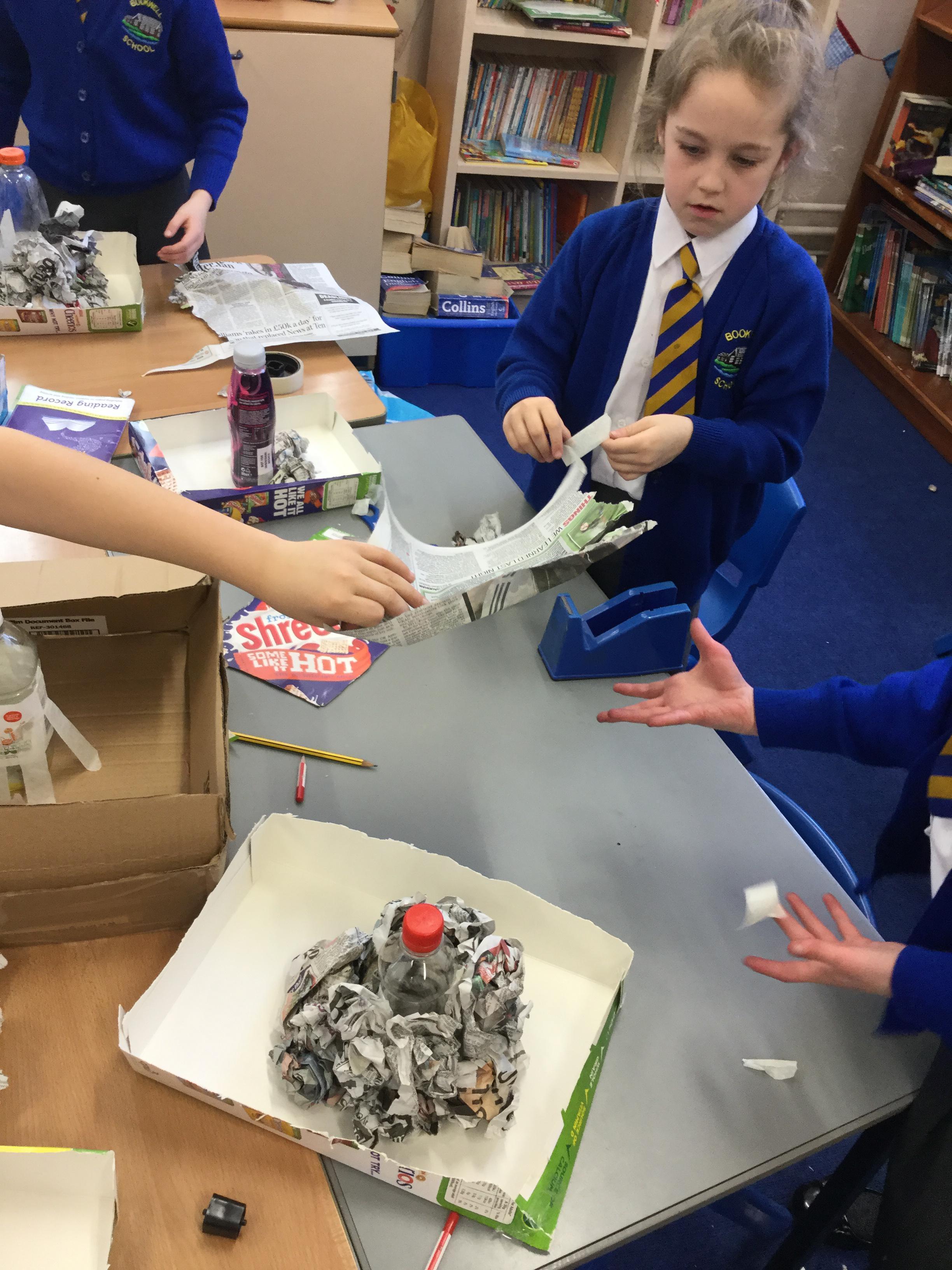 Today we started our new DT project to build a model volcano! As part of our Geography topic 'Extreme Earth' we will be finding out how fascinating our planet really is, from discovering the different layers that make up the earth, to how amazing natural events like volcano eruptions and earthquakes happen. During this session, we used materials including boxes, bottles and newspapers to create the base of our volcano. We can't wait to continue our models next week!