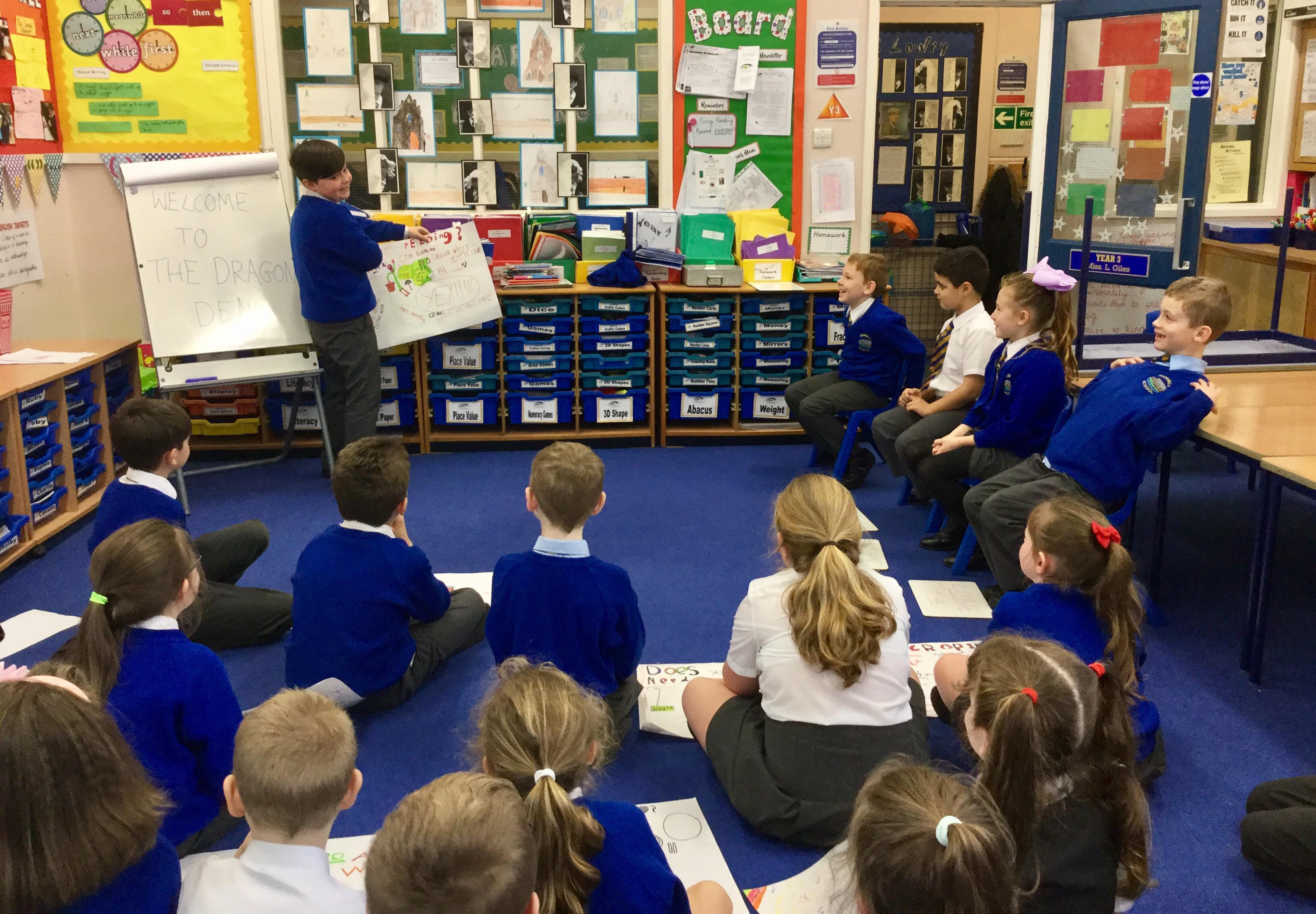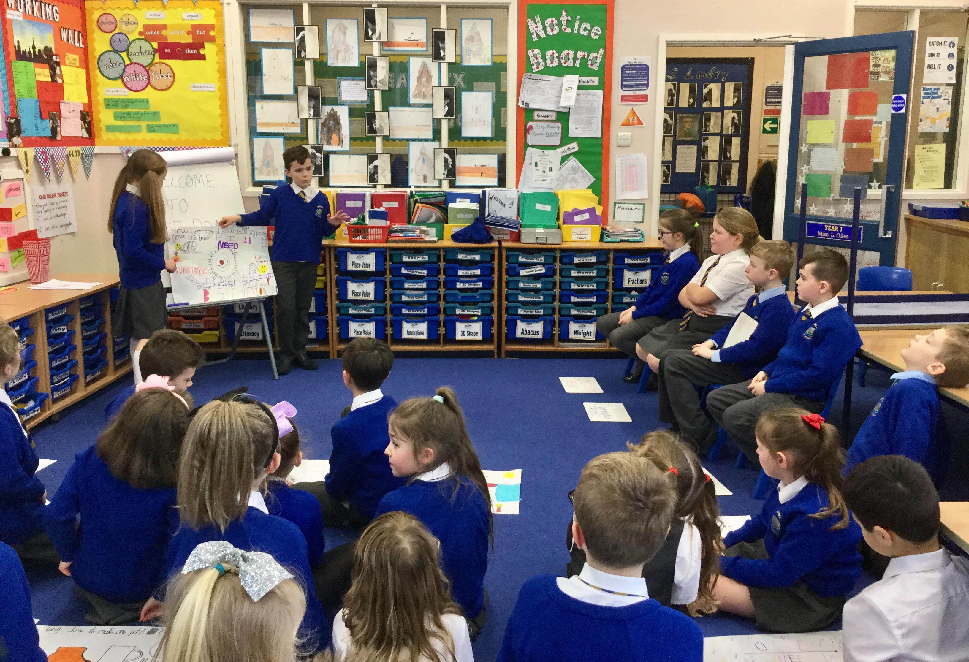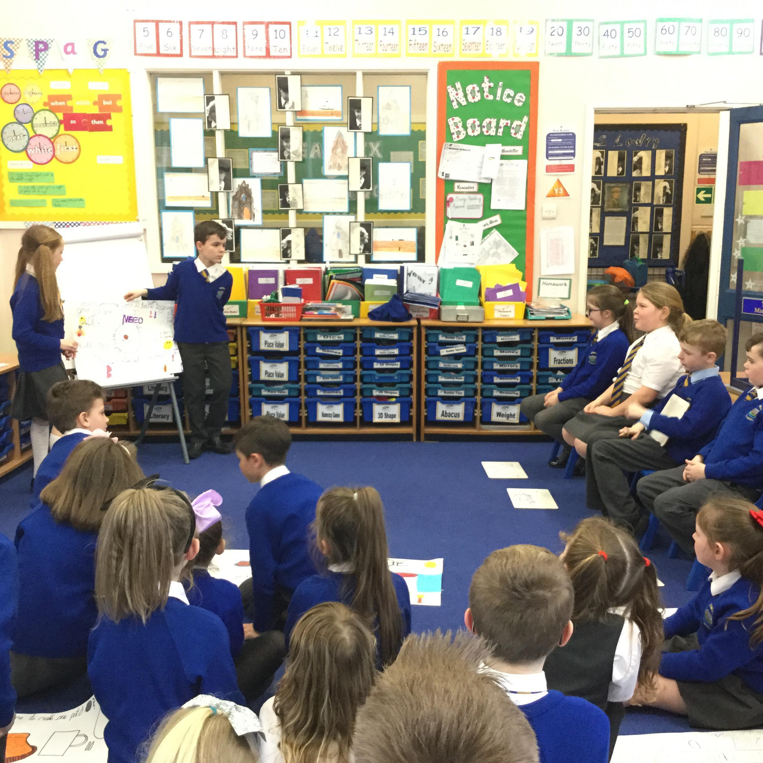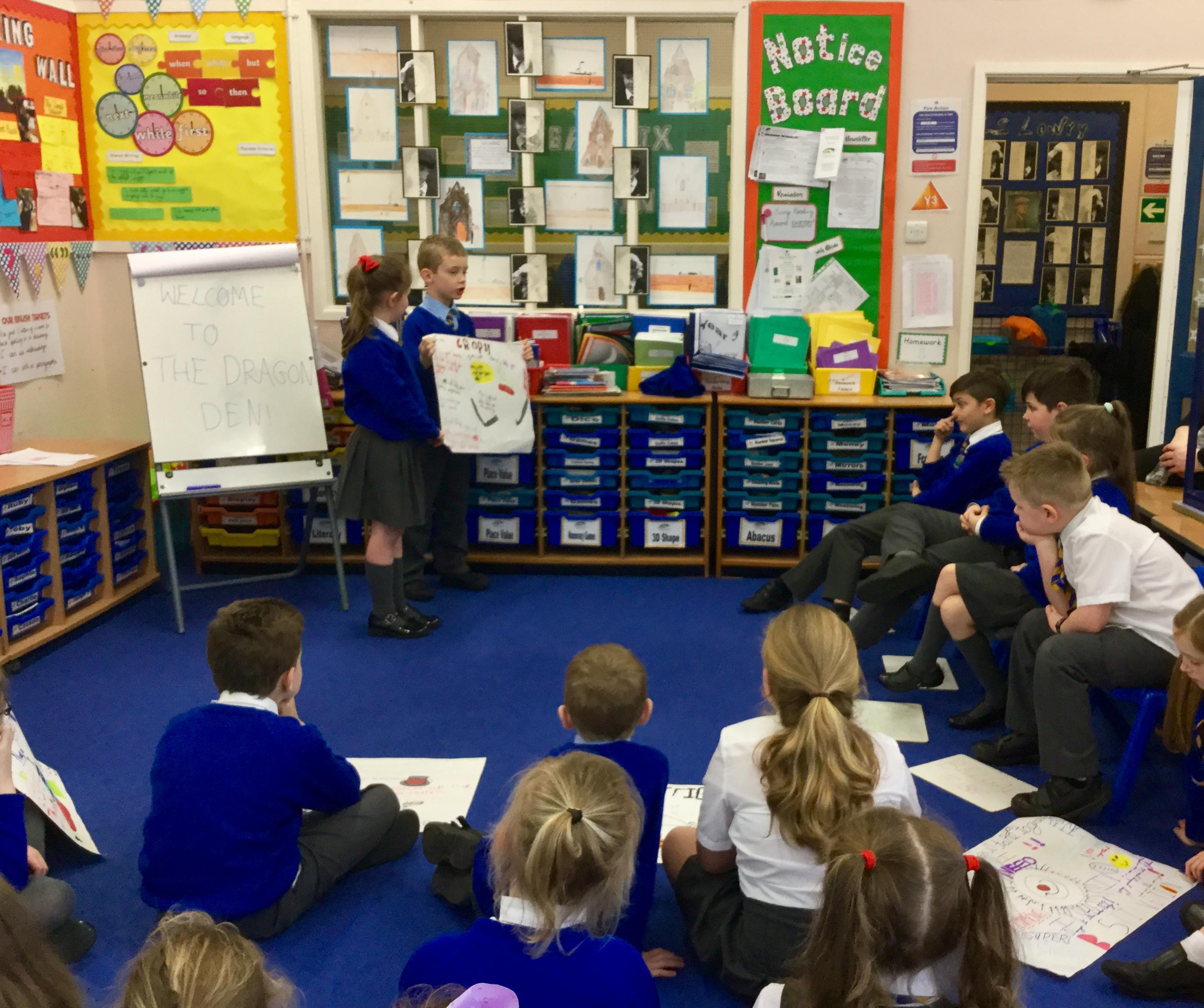 Year 3 discovered that the Iron Age was a period of big changes, including new technology that dramatically improved the way that Celts lived. To gain a deeper understanding of this, children worked in pairs to make a poster about an Iron Age invention and how this could have a positive impact on people at the time. We then staged a 'Dragons Den' activity, by which children had to persuade 4 Cheiftains from 4 different Celtic tribes why they needed this latest technology. Most children were very successful as the Chieftains were very impressed with their speeches and walked away with lots of new inventions for their tribes!