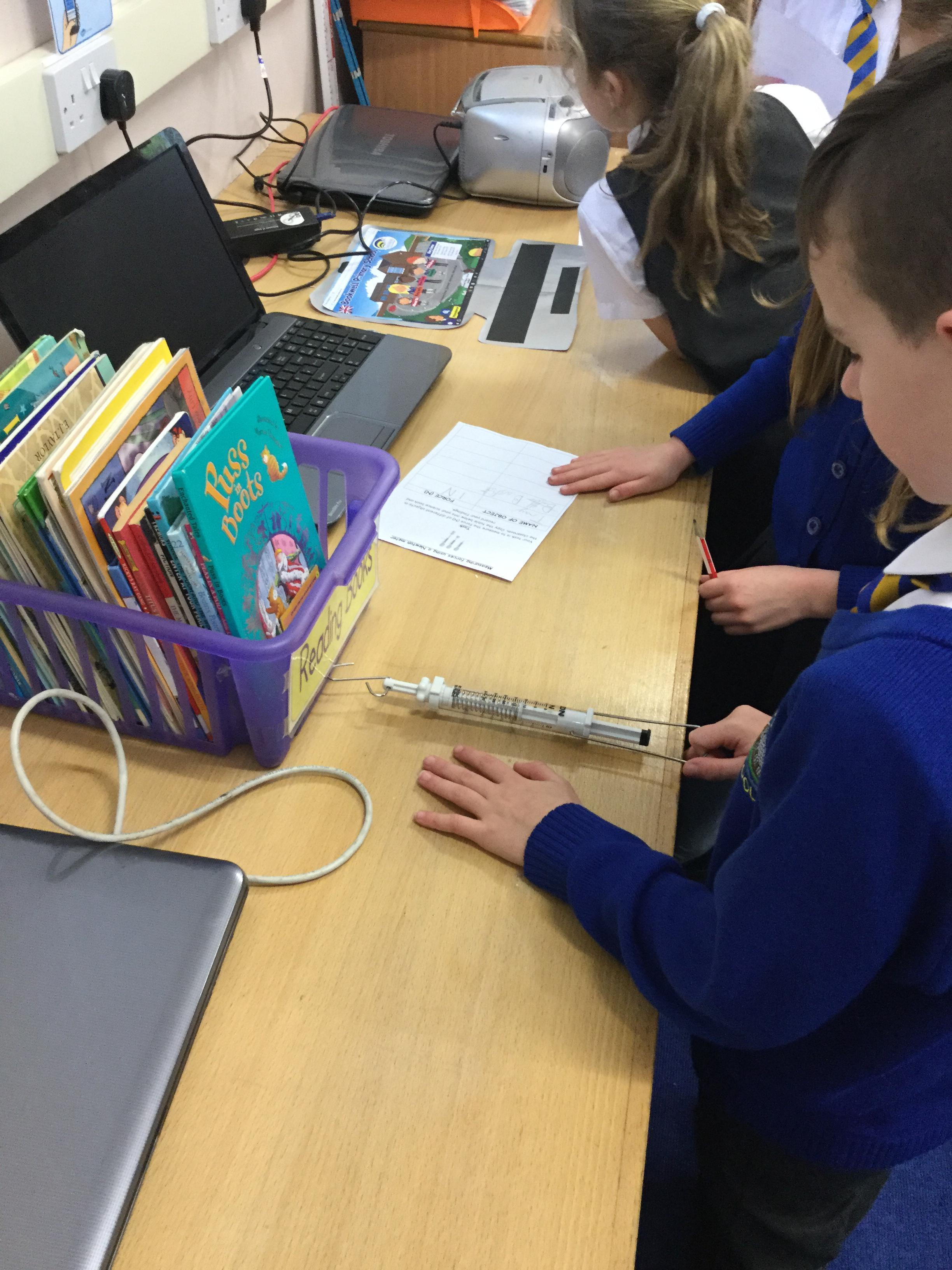 What is a force and how is it measured? Today we discovered a force is a push, pull, twist, stretch or squeeze that affects the speed, distance and direction of a moving object. Forces are measured in Newtons, using a Newton meter. Take a look at the different forces we measured in the classroom!