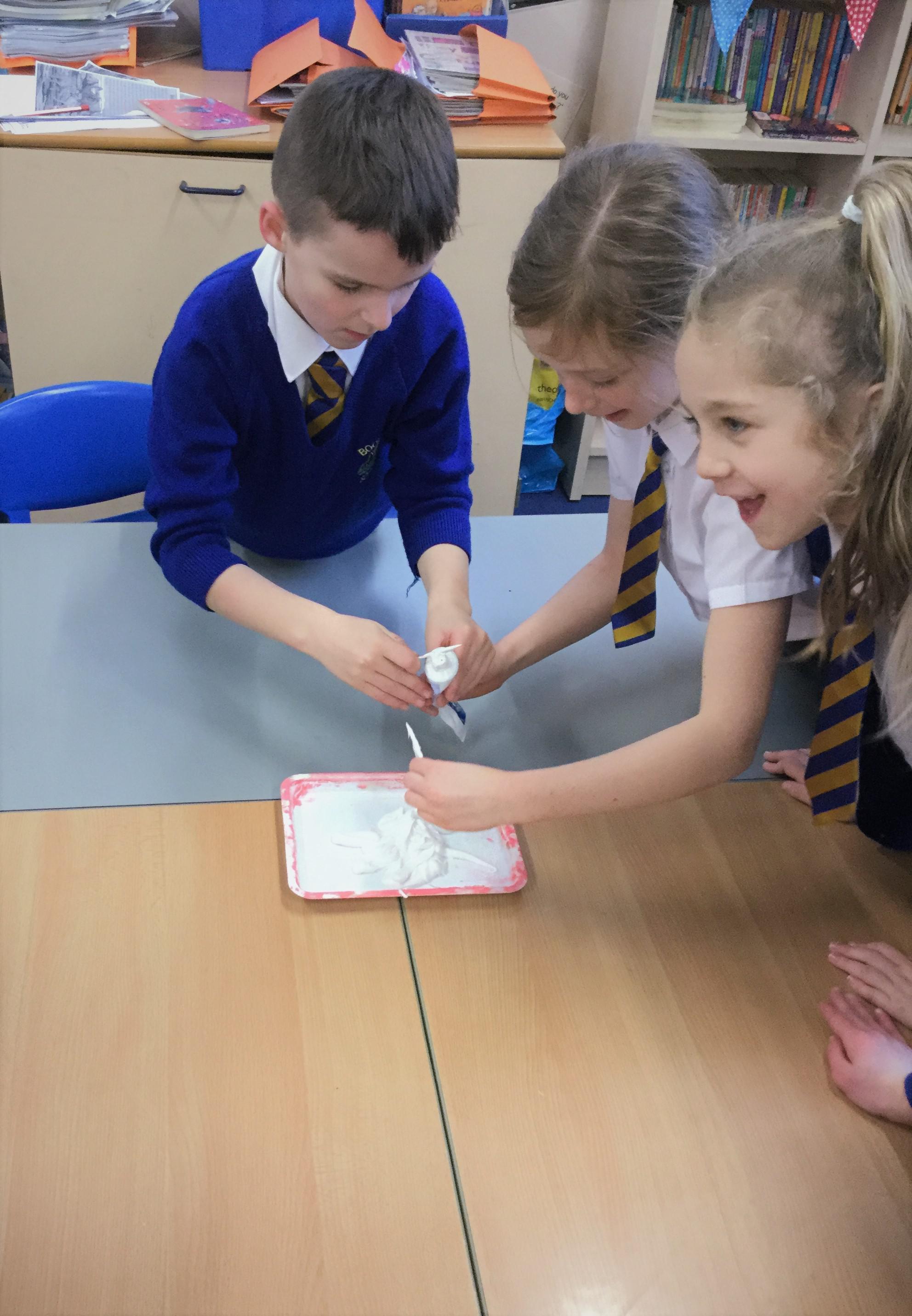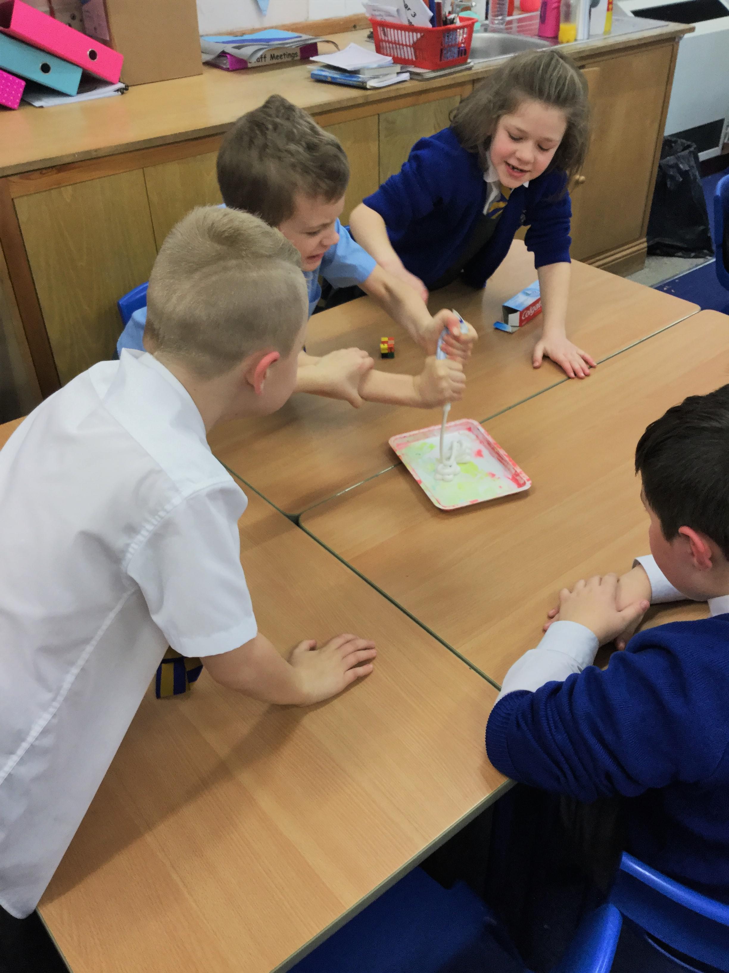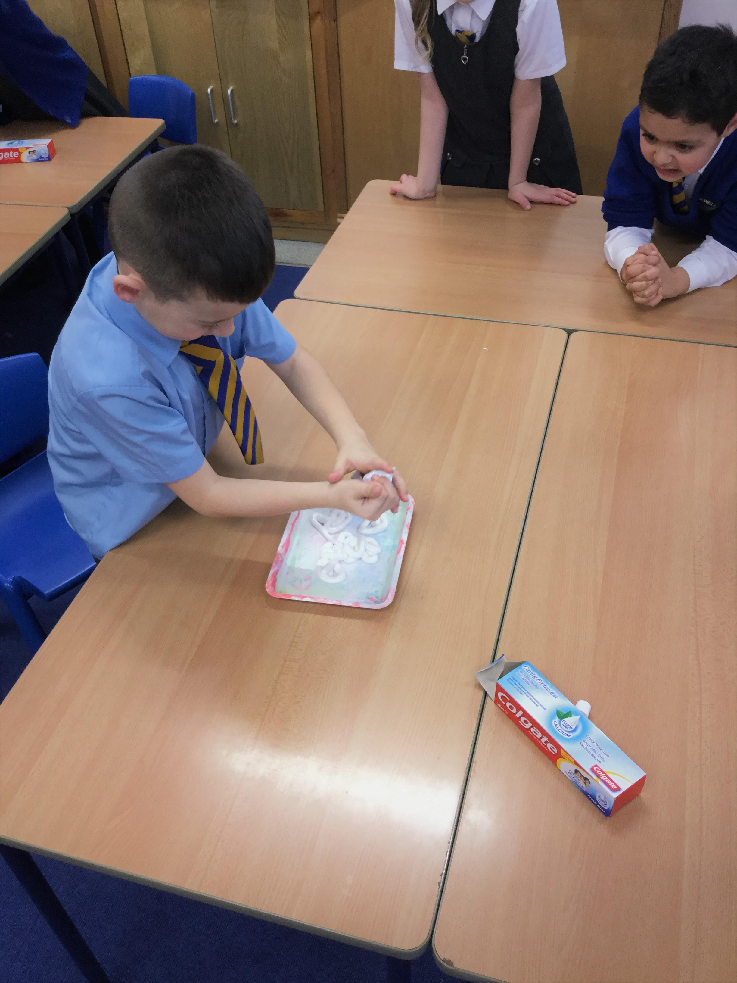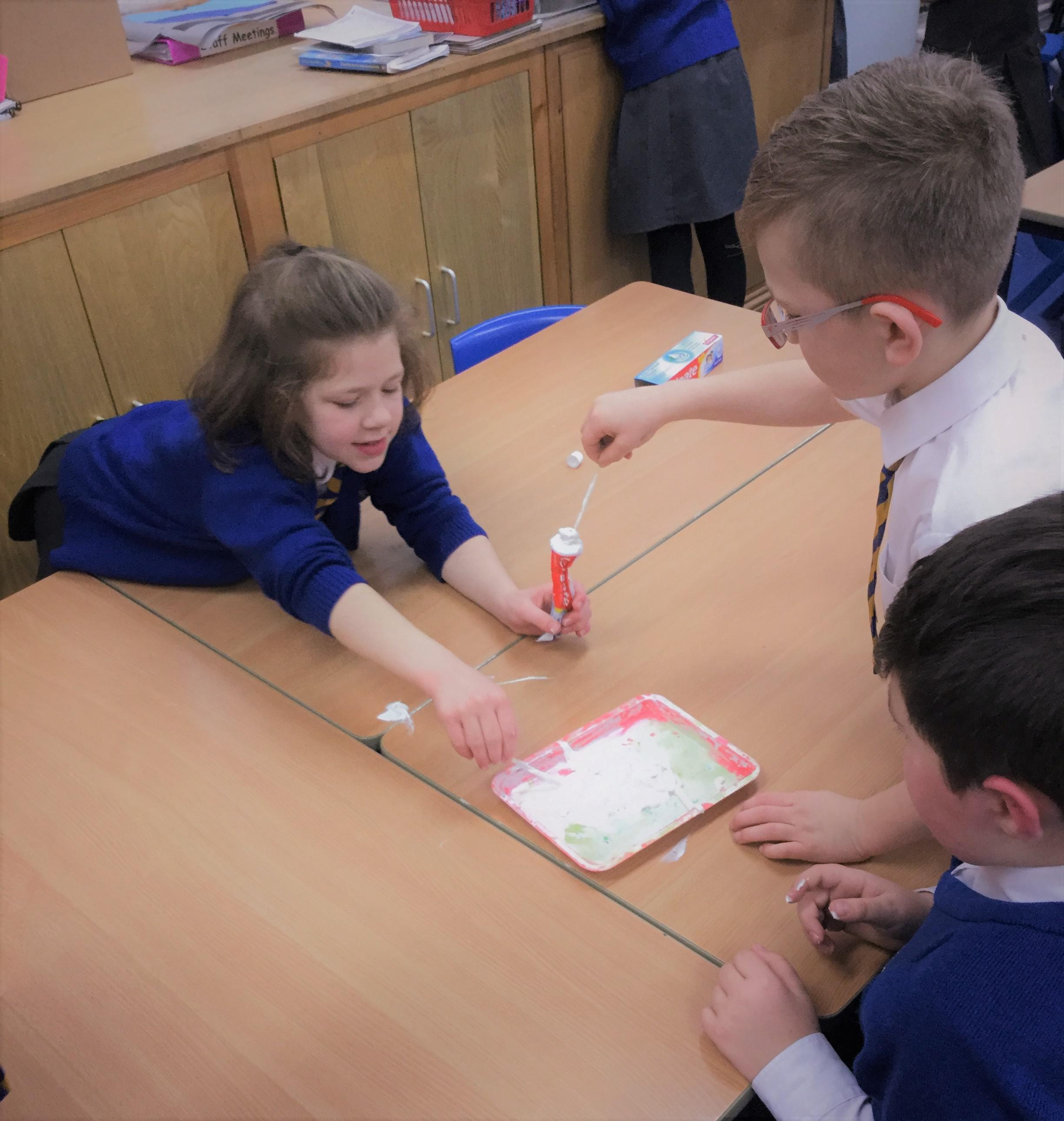 Today we reminded ourselves of how our words and actions can affect others. We were asked to empty a tube of toothpaste as quickly as we could, then was set the challenge to get as much of the toothpaste back in the tube as possible using only toothpicks! After 5 minutes of trying, we soon realised this was impossible. Miss. Giles told us that when we squeezed the toothpaste, it was like the hurtful words that we say. As when we tried to put the words back, it was very difficult. We learned that we should choose our words carefully and think about how it might make the other people feel, even when we are angry and upset as we can never take back the words we say or the things we do.