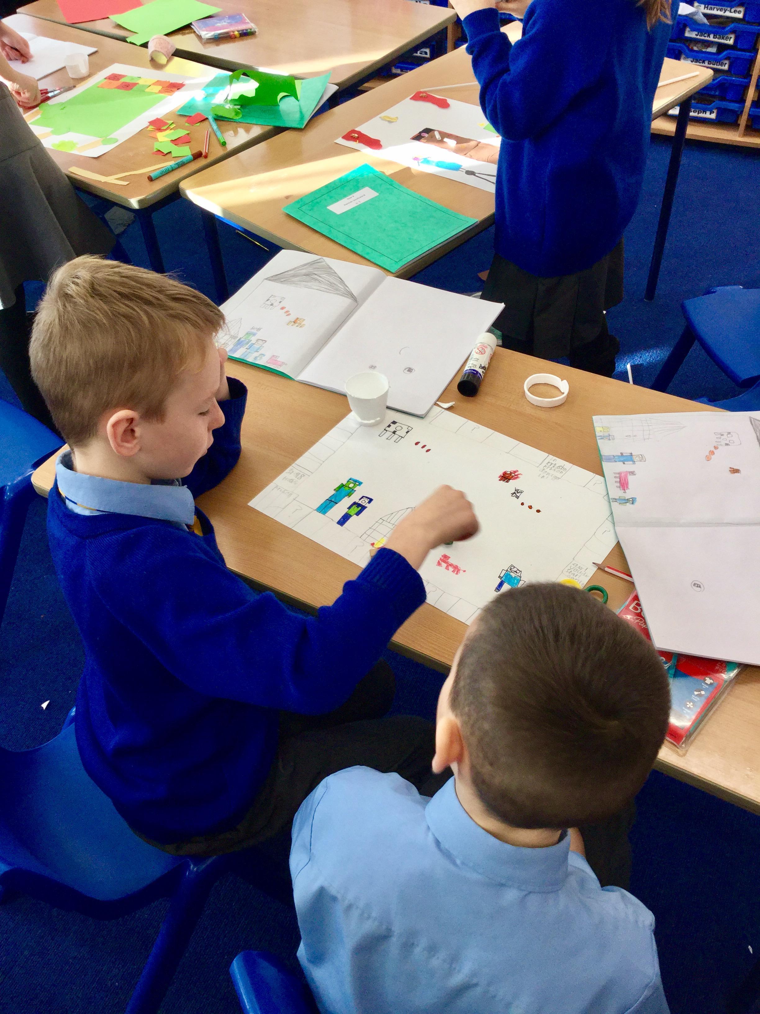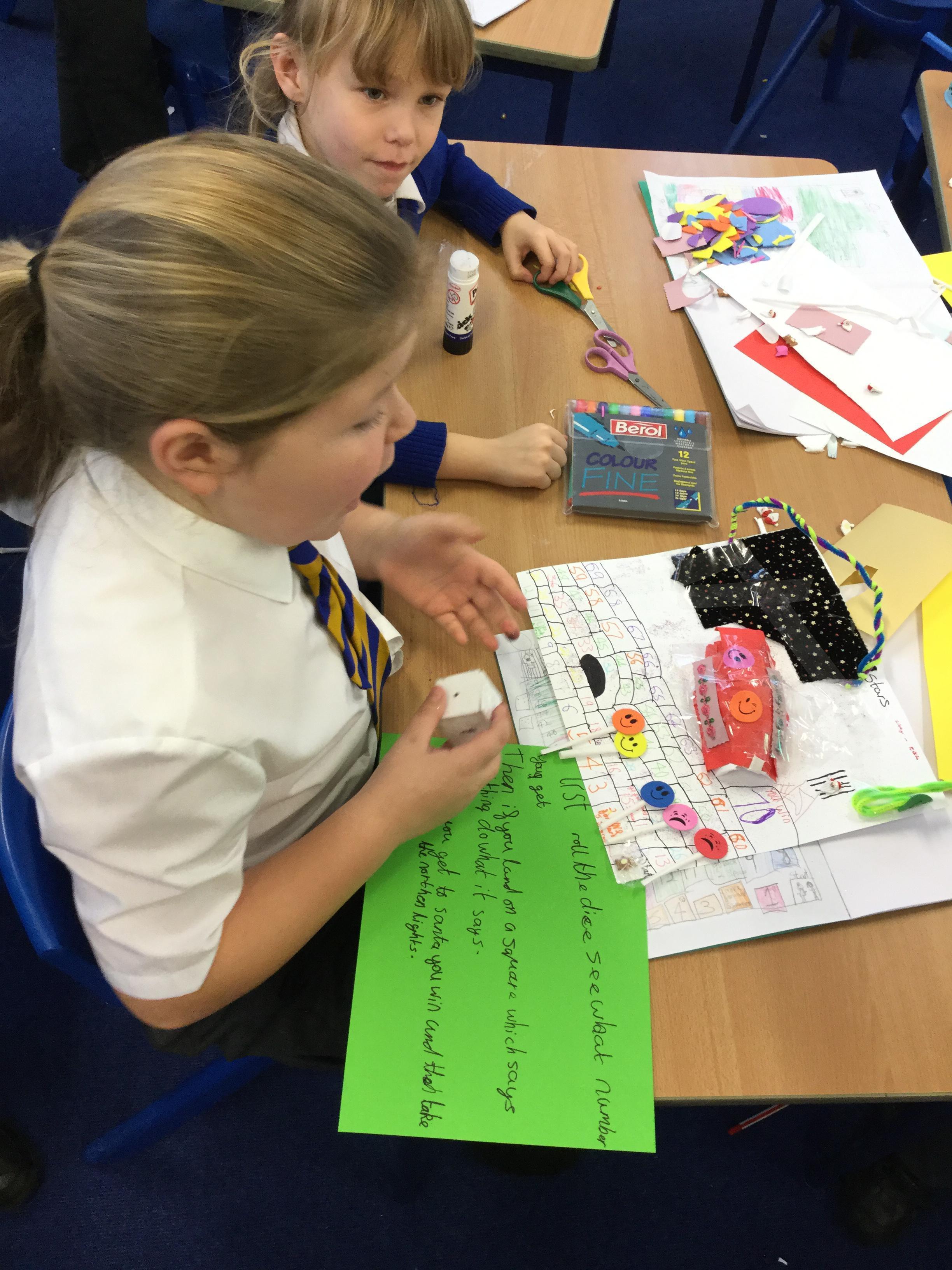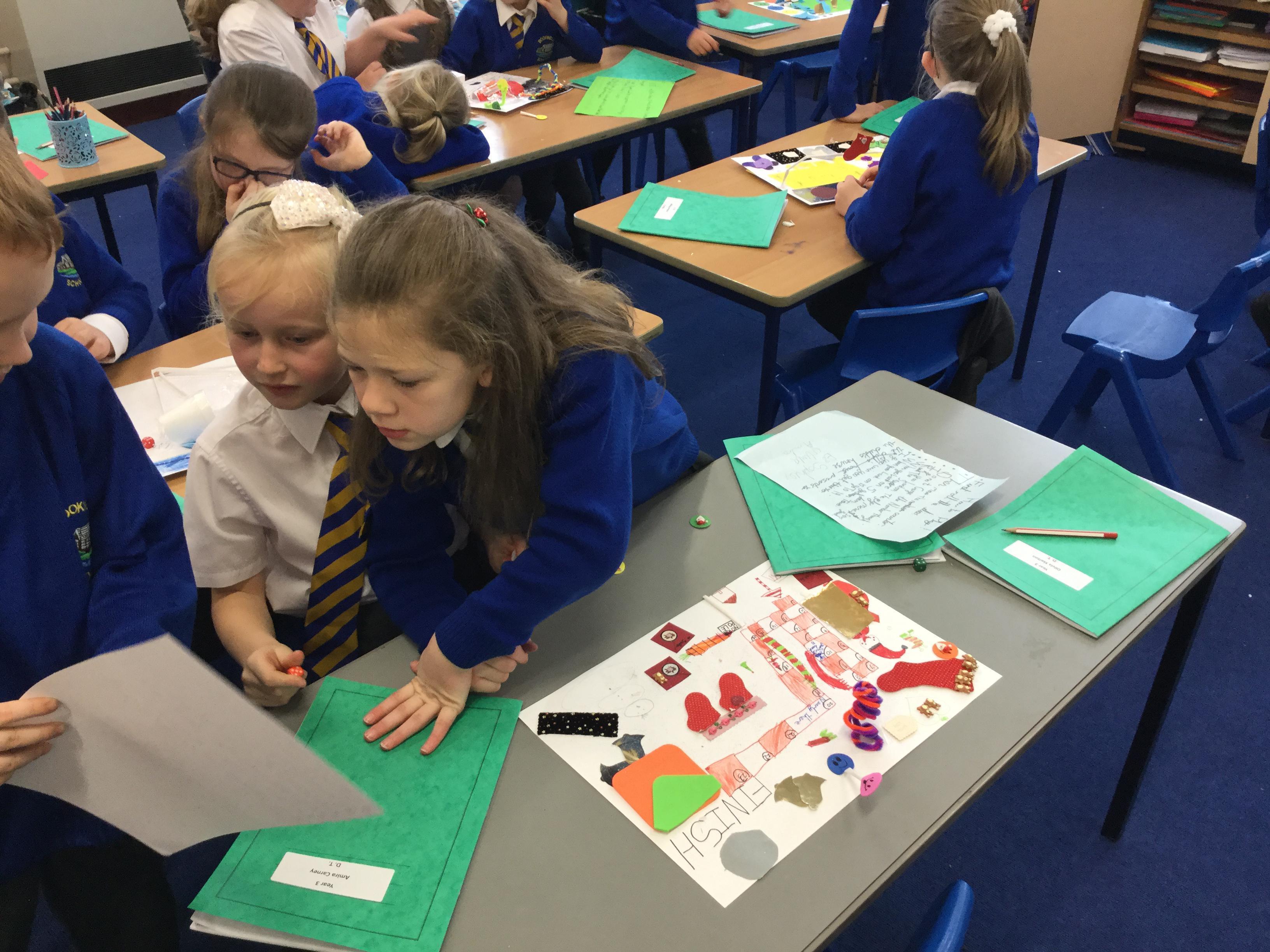 As part of our whole school technology day, we were given the task to design and create the next best seller board game that would fly off the shelves this Christmas. We worked together in pairs to plan our board games before starting to make them using different materials. Miss Giles was very impressed at how well we listened to each other, worked together and we're able to achieve the task independently! At the end of the day we were shocked to discover that we were the winning class!