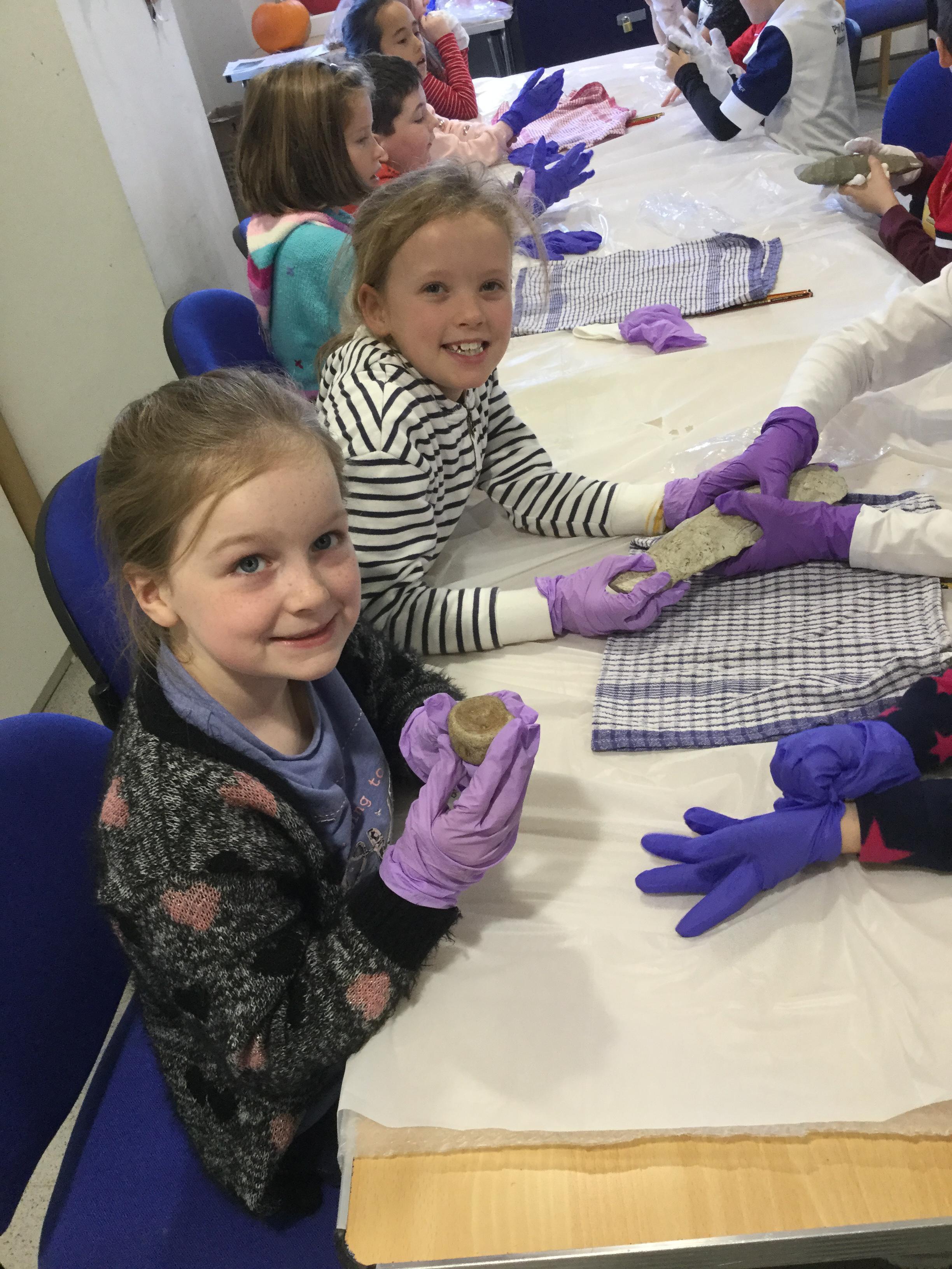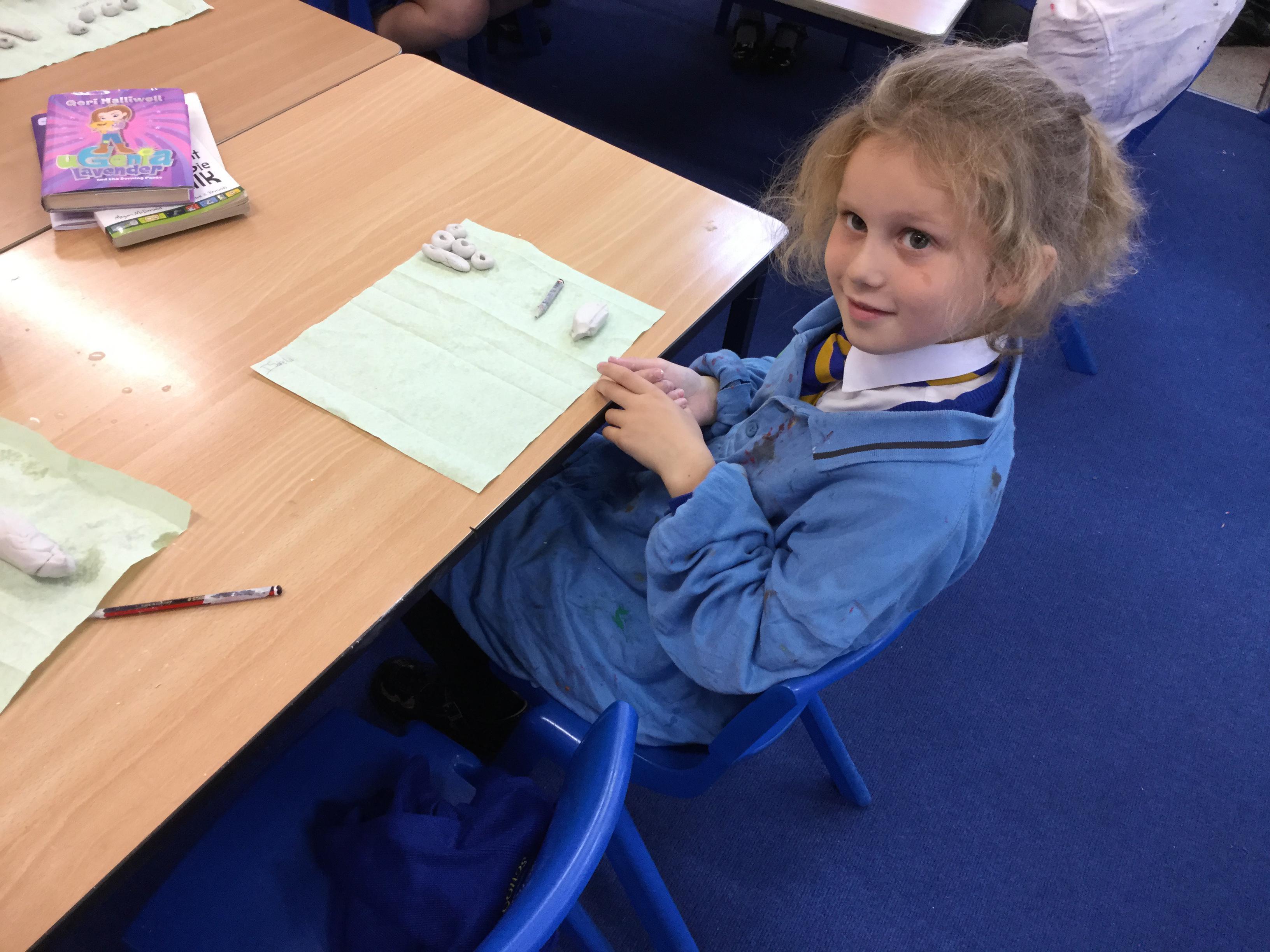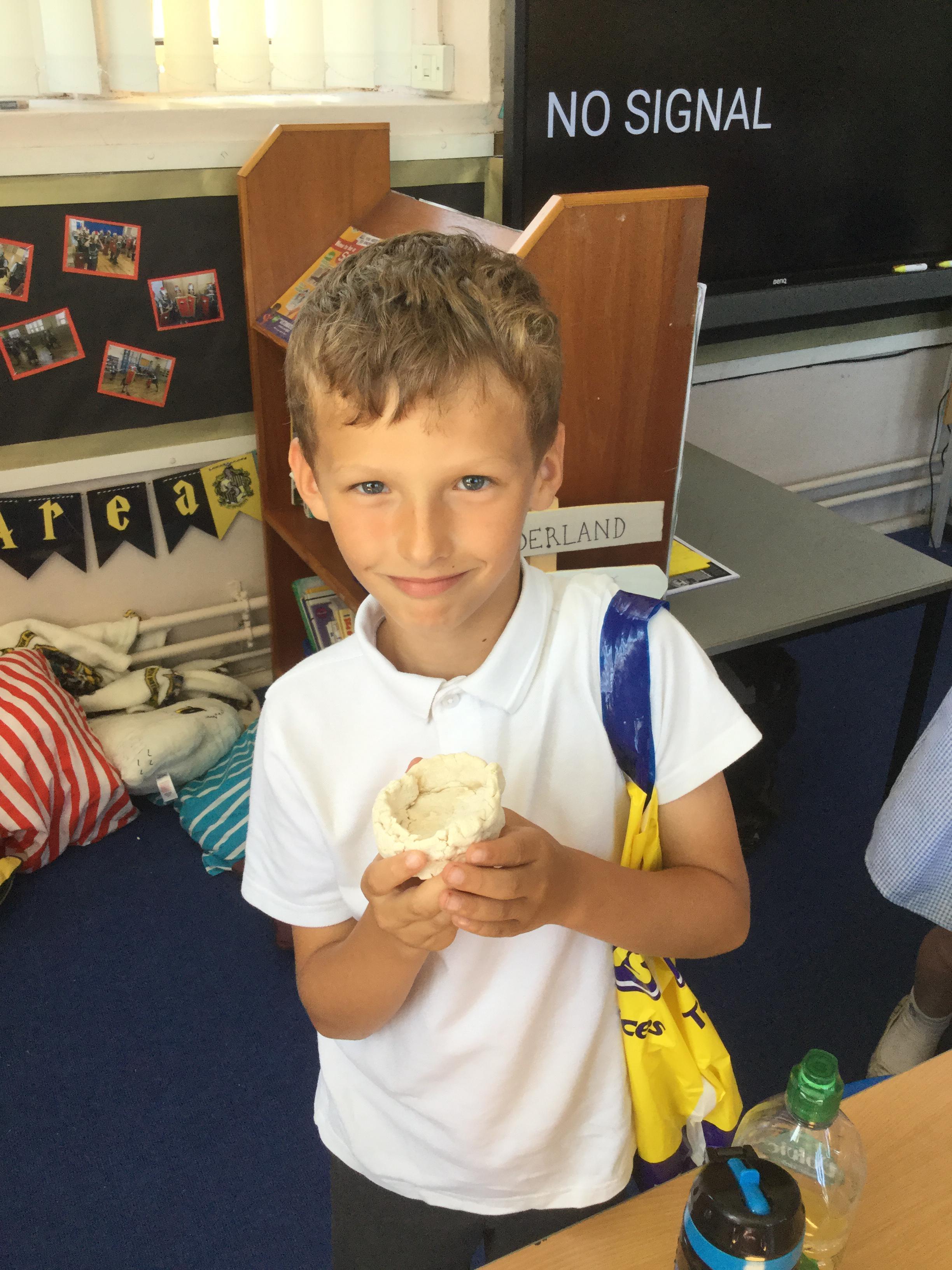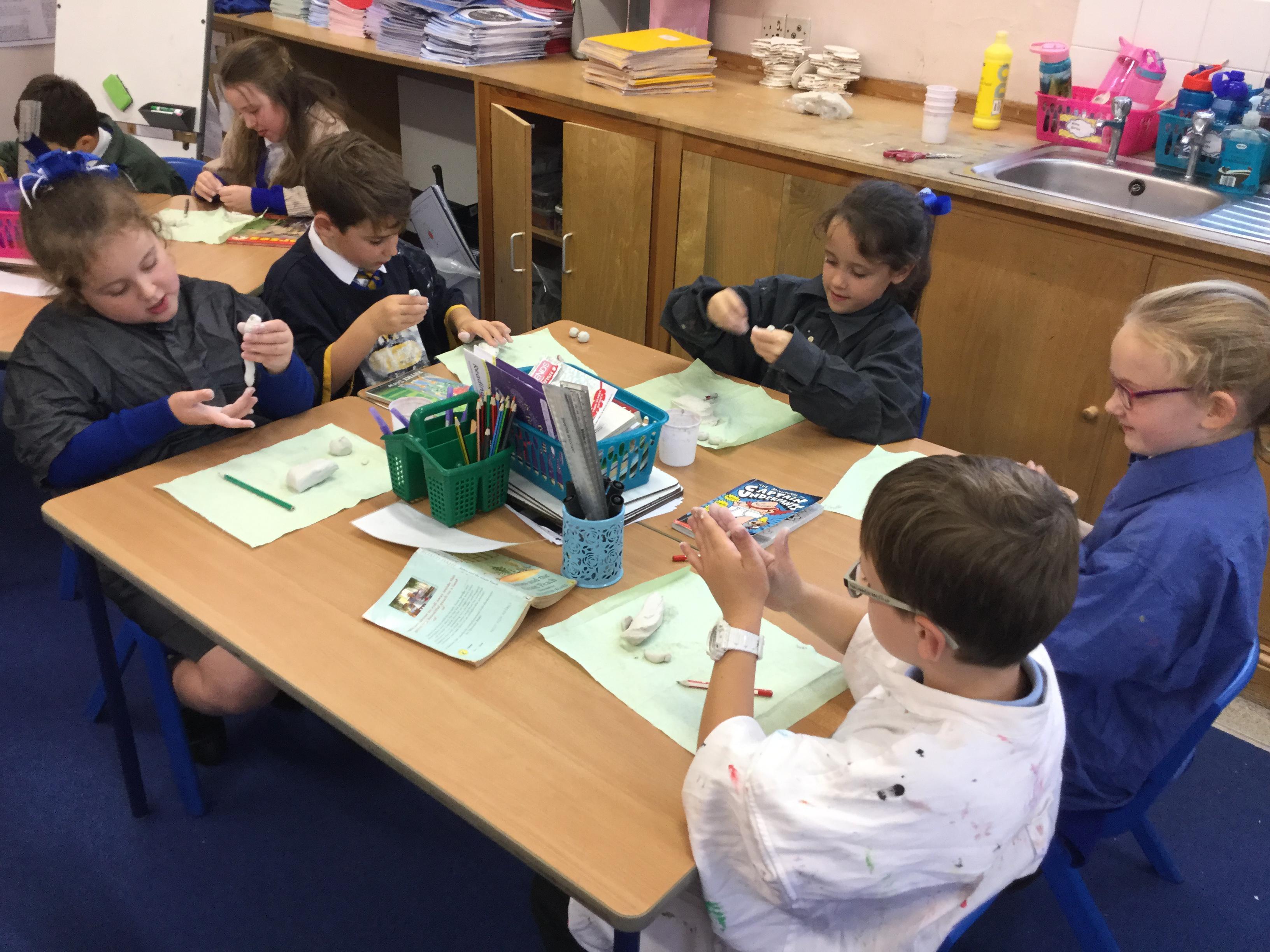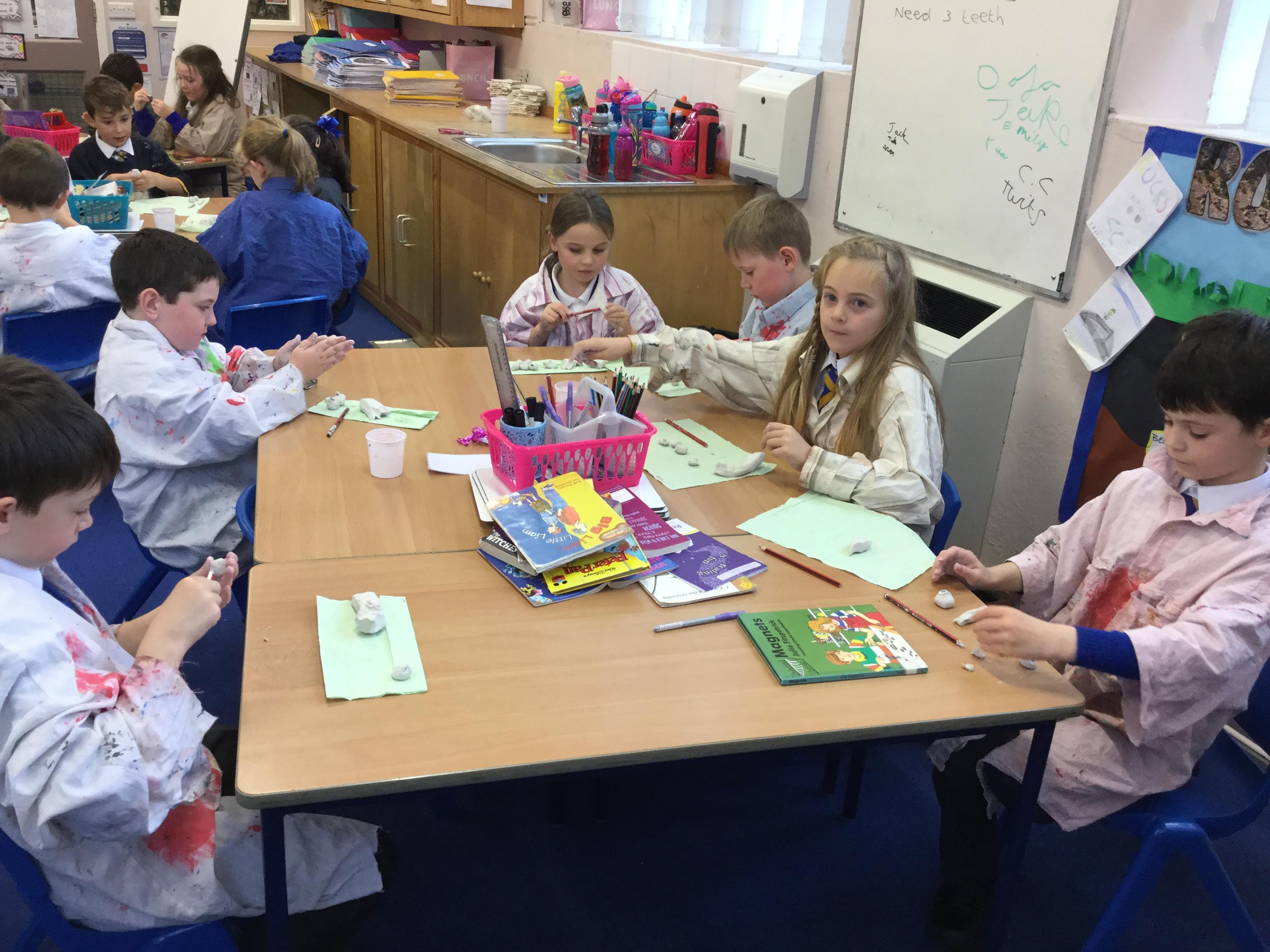As part of our Stone Age learning we made clay necklaces. We understand that jewellery was found on the site of Skara Brae. The villagers that lived during this period would have made jewellery from animal bones and tusks.