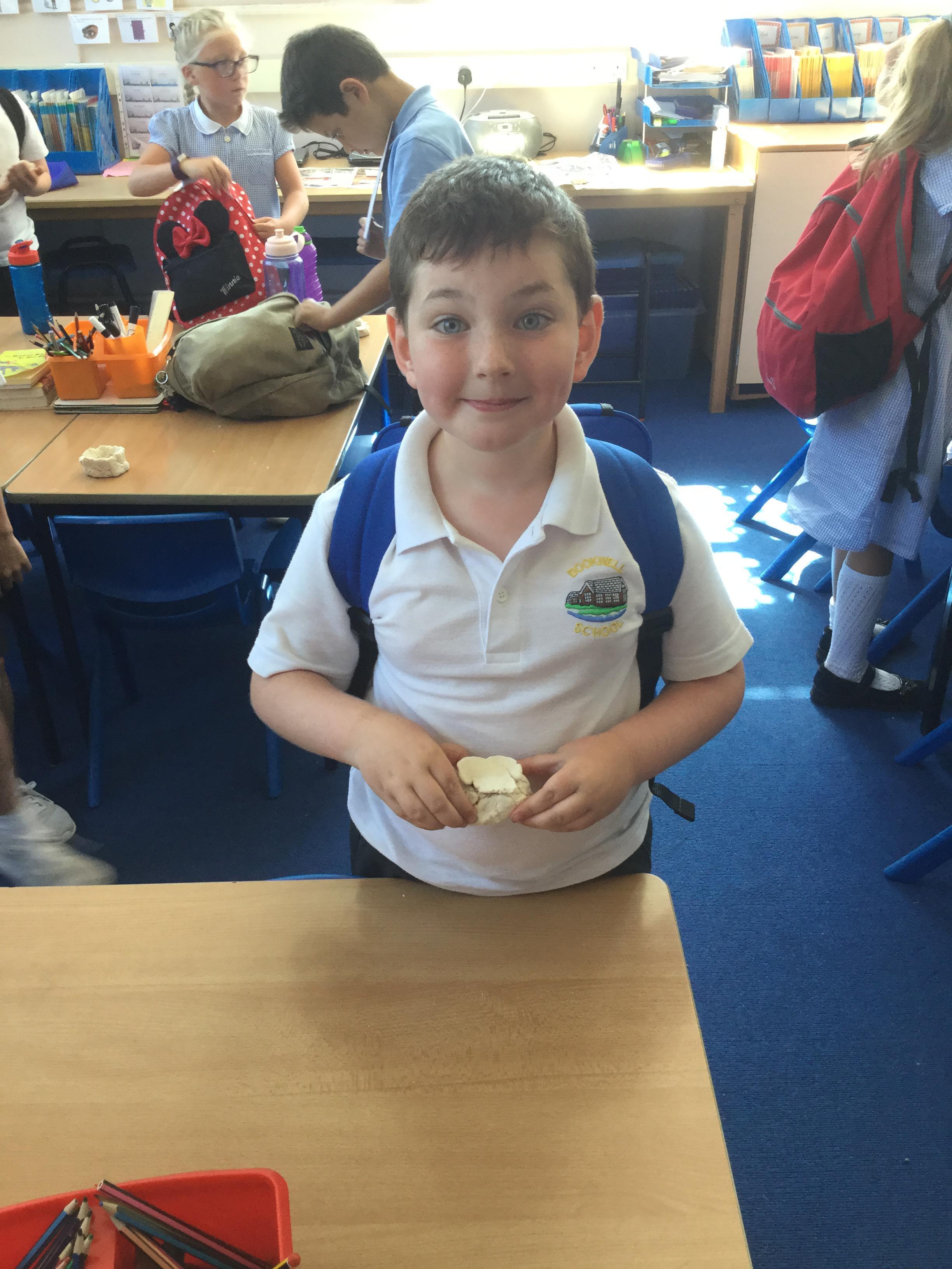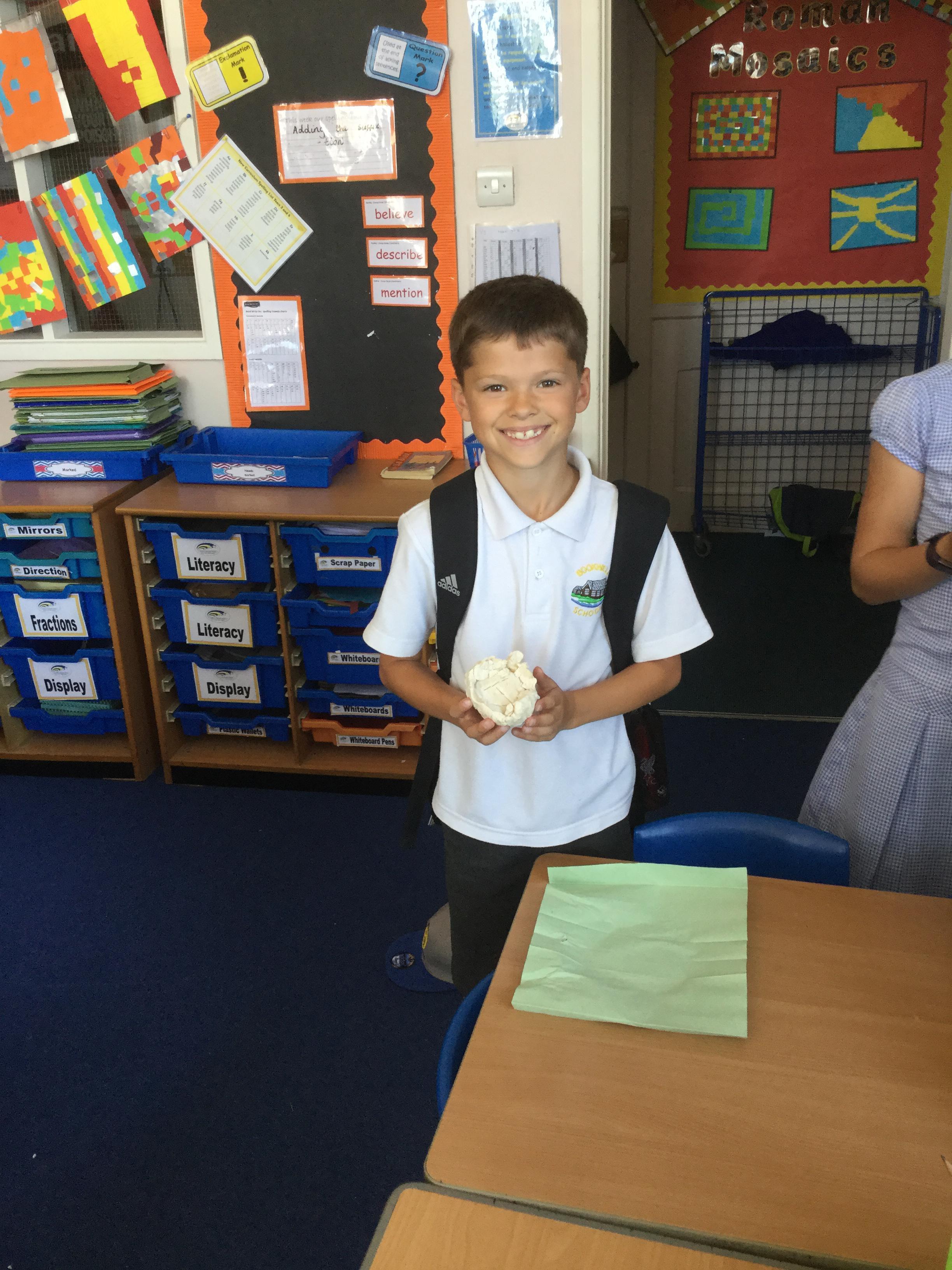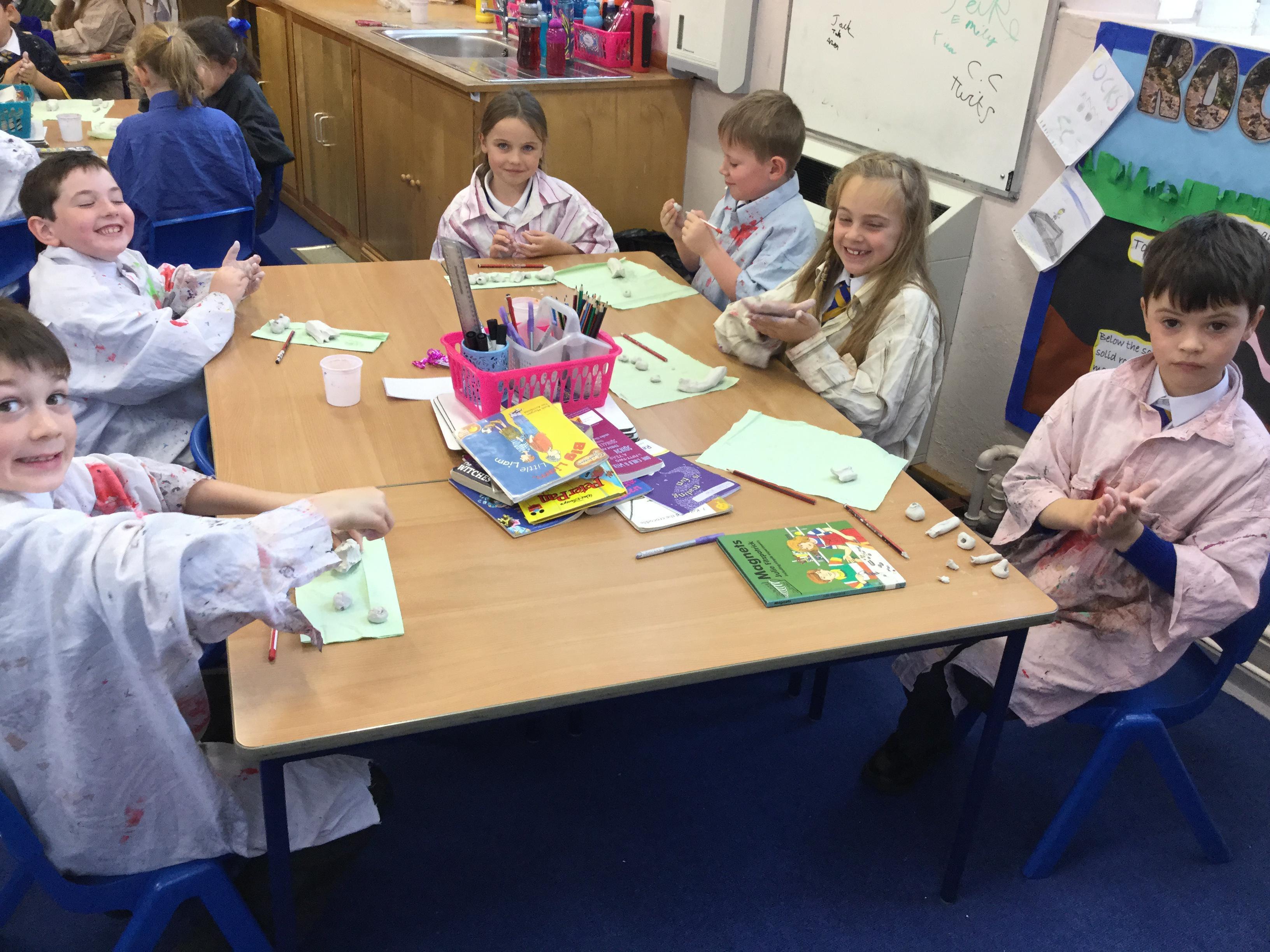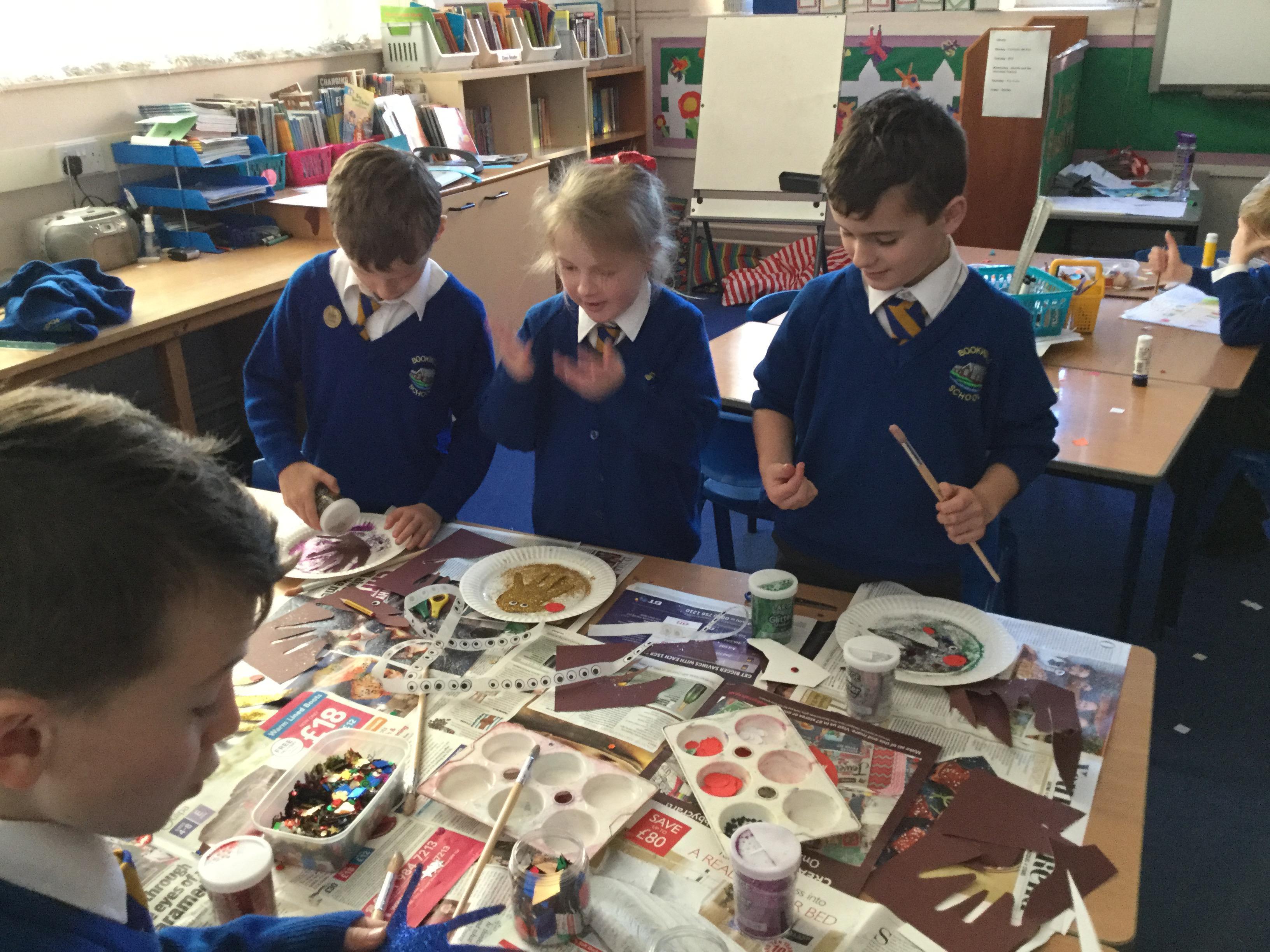 As part of our Stone Age learning we made clay necklaces. We understand that jewellery was found on the site of Skara Brae. The villagers that lived during this period would have made jewellery from animal bones and tusks.
