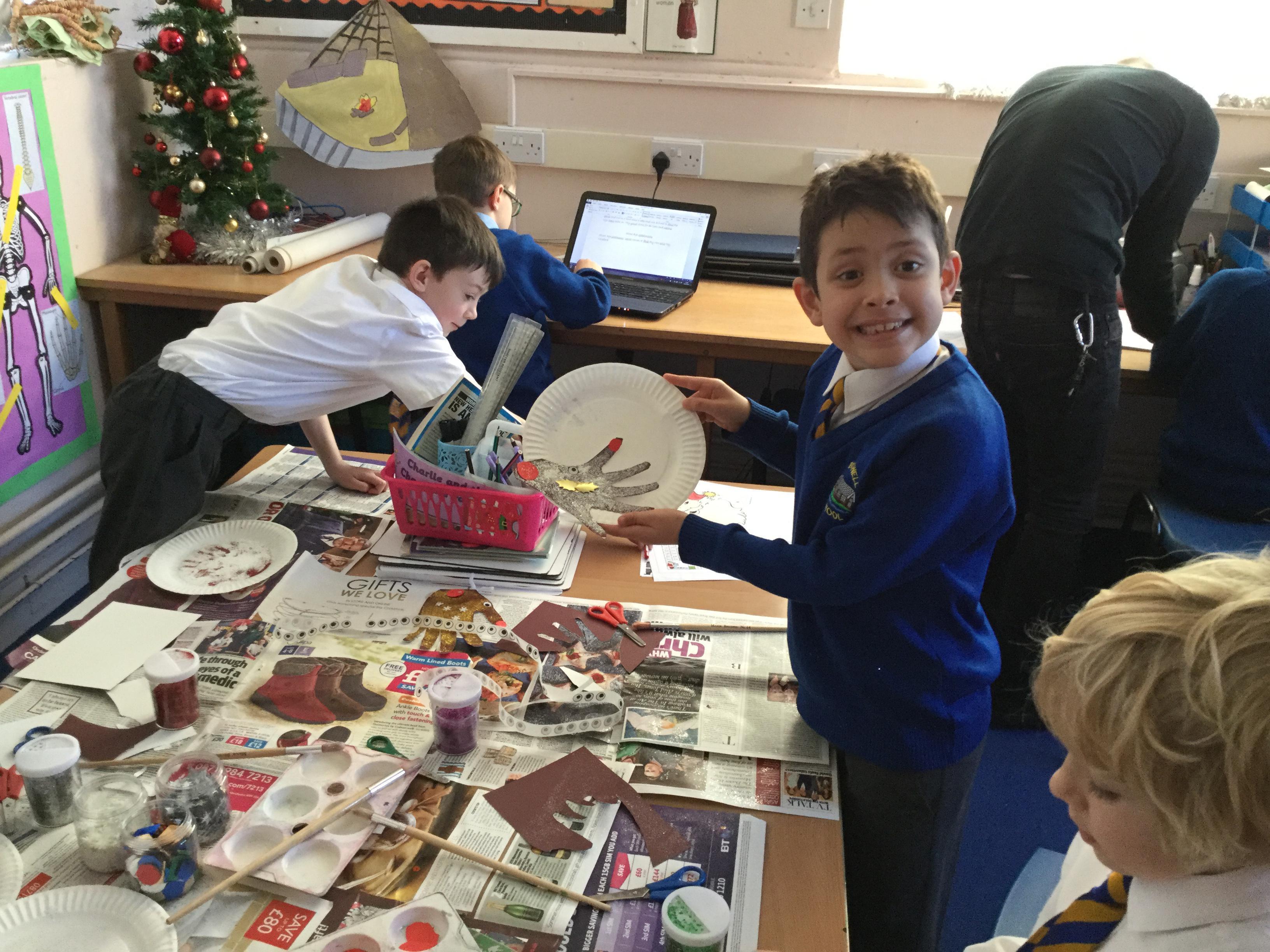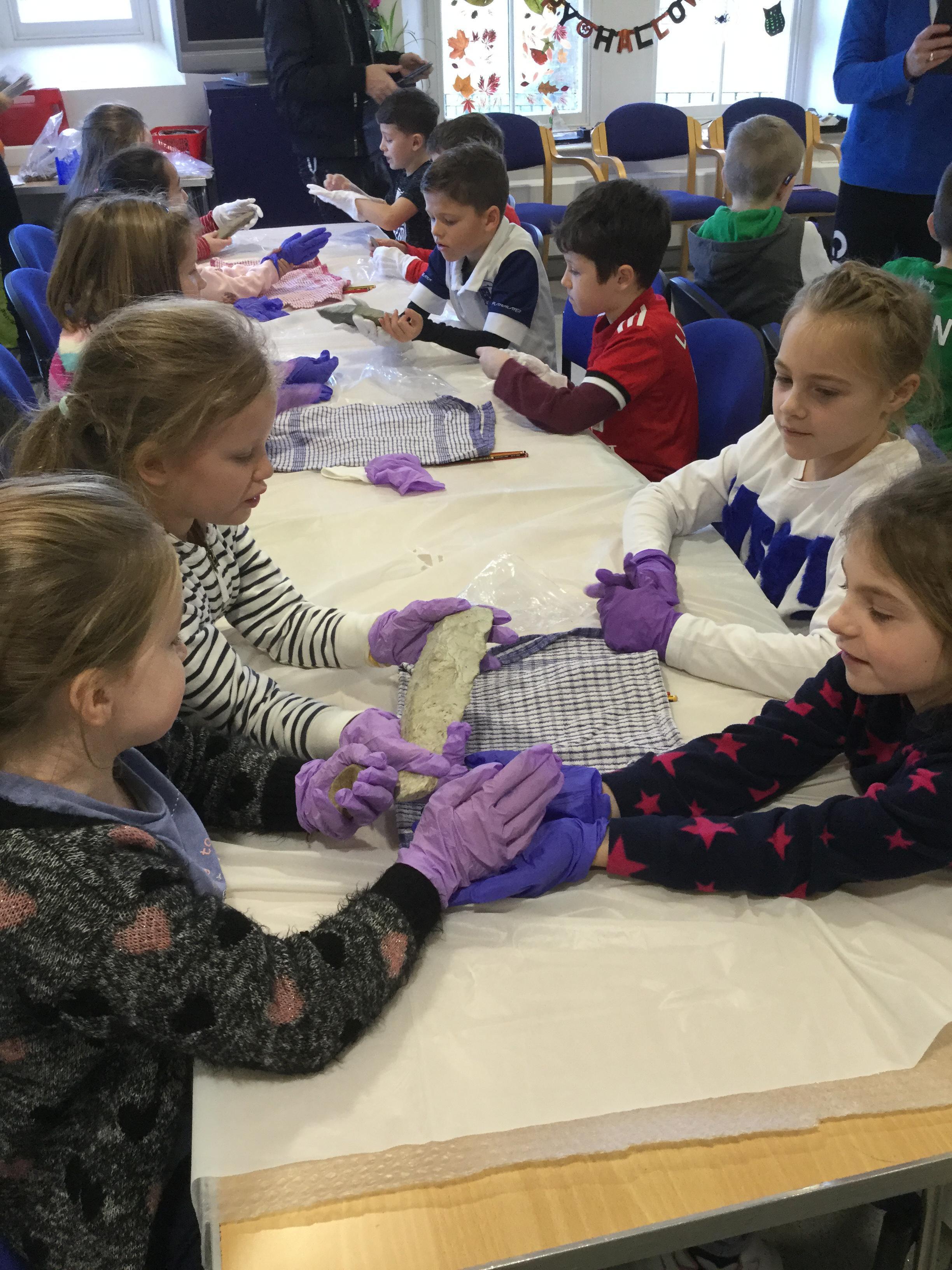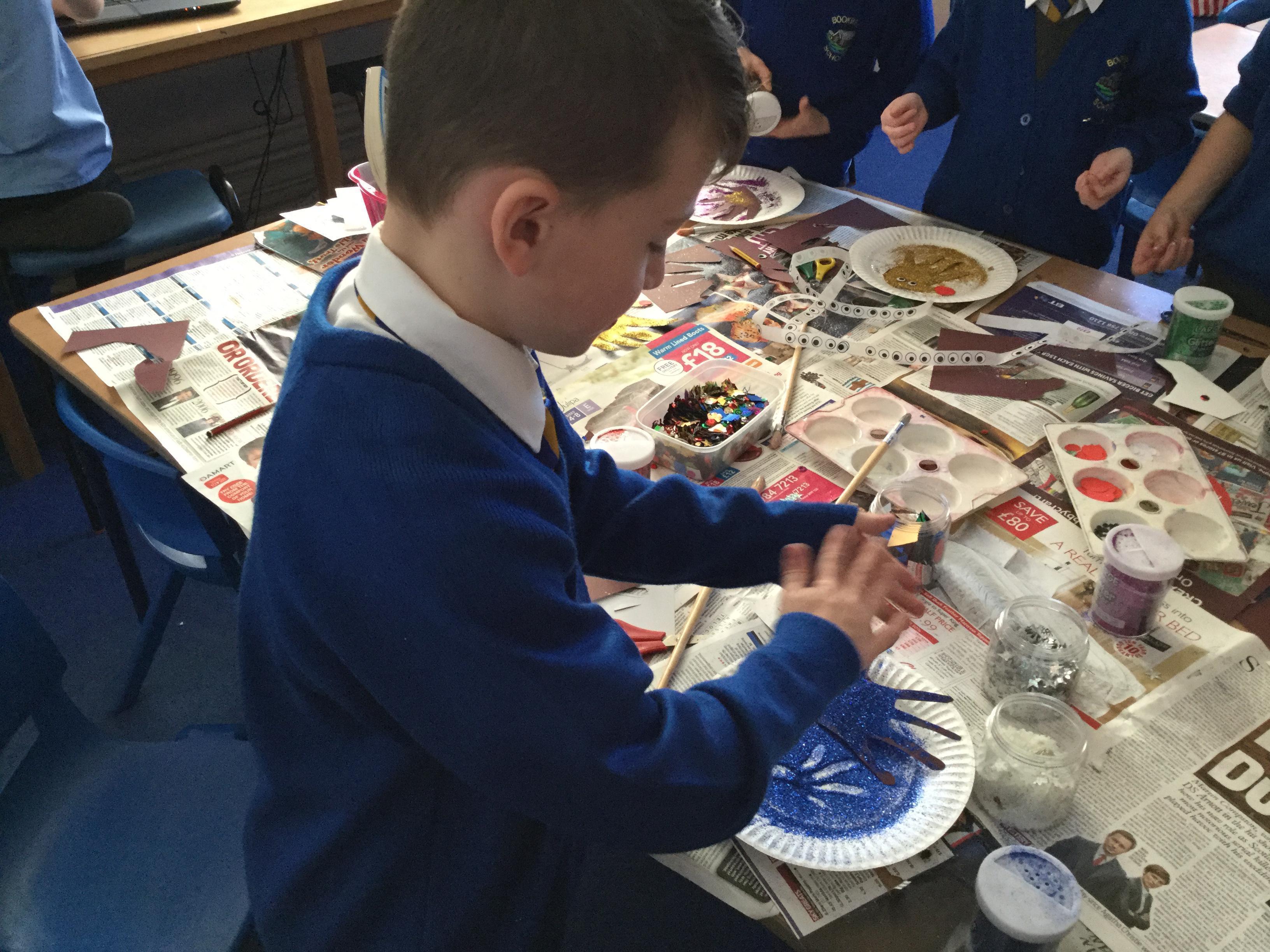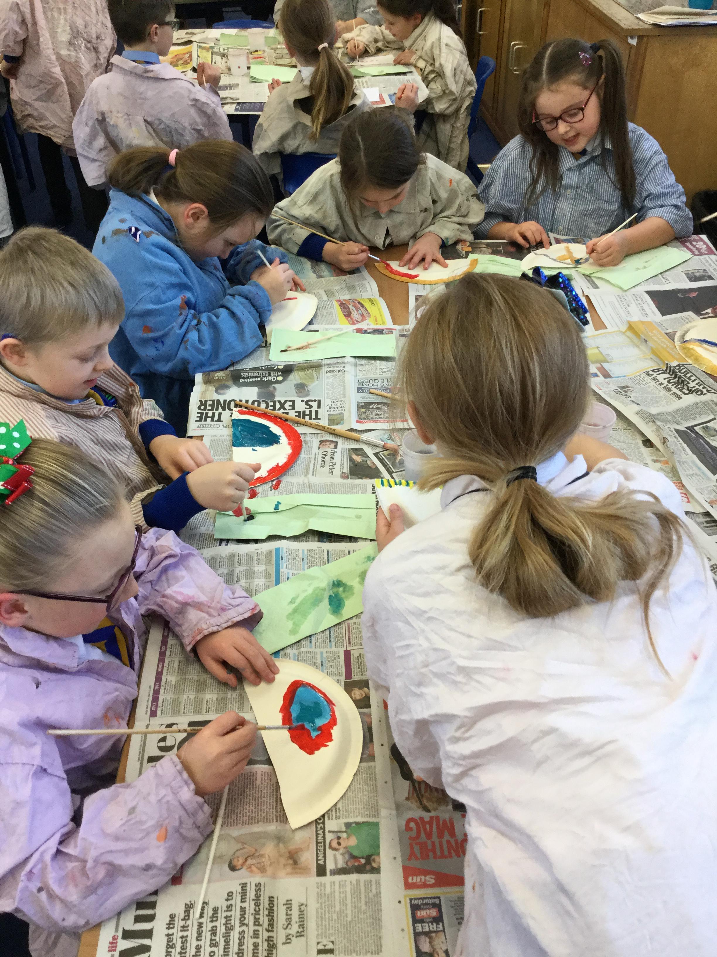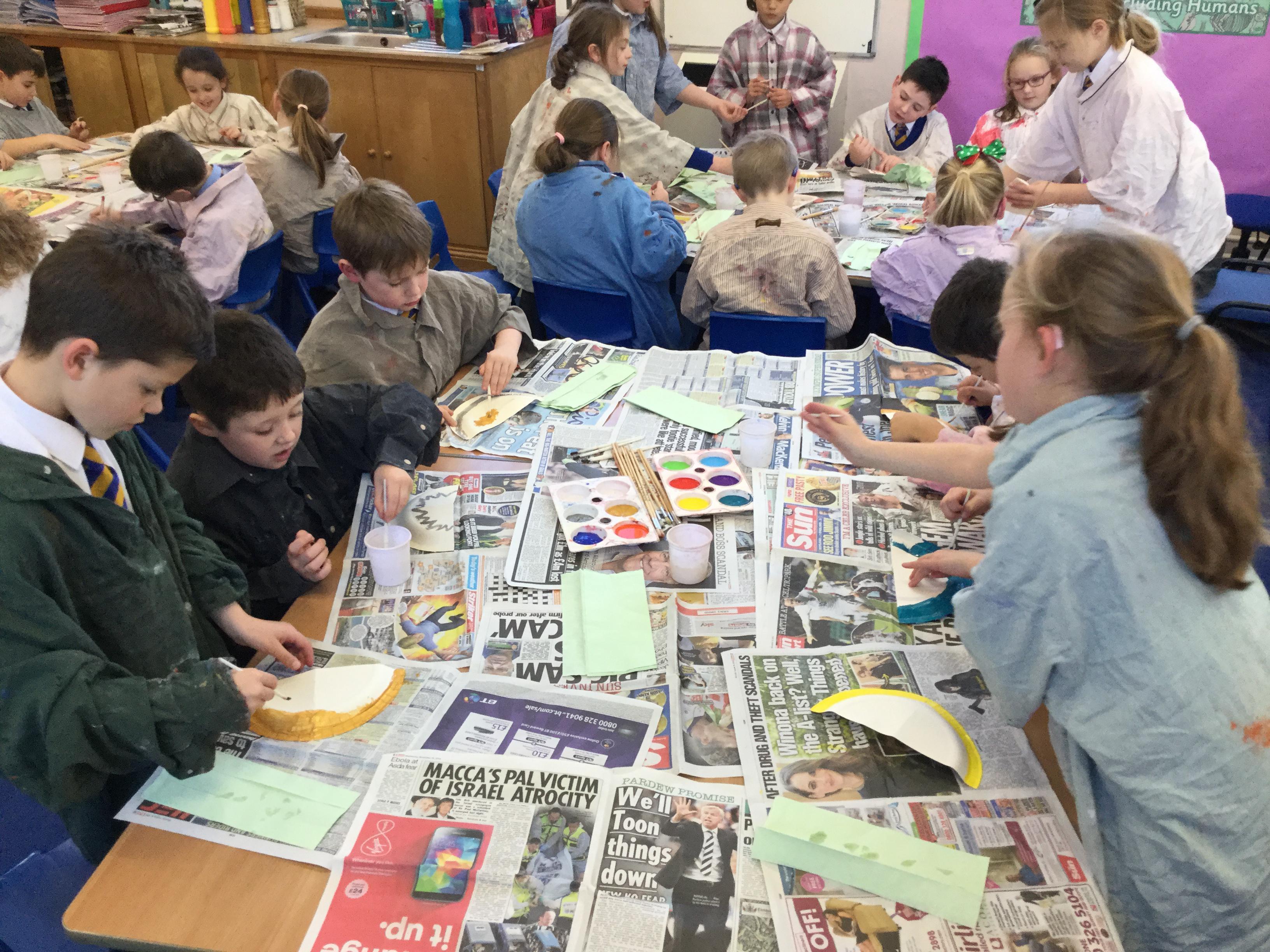 As part of our Stone Age learning we made clay necklaces. We understand that jewellery was found on the site of Skara Brae. The villagers that lived during this period would have made jewellery from animal bones and tusks.