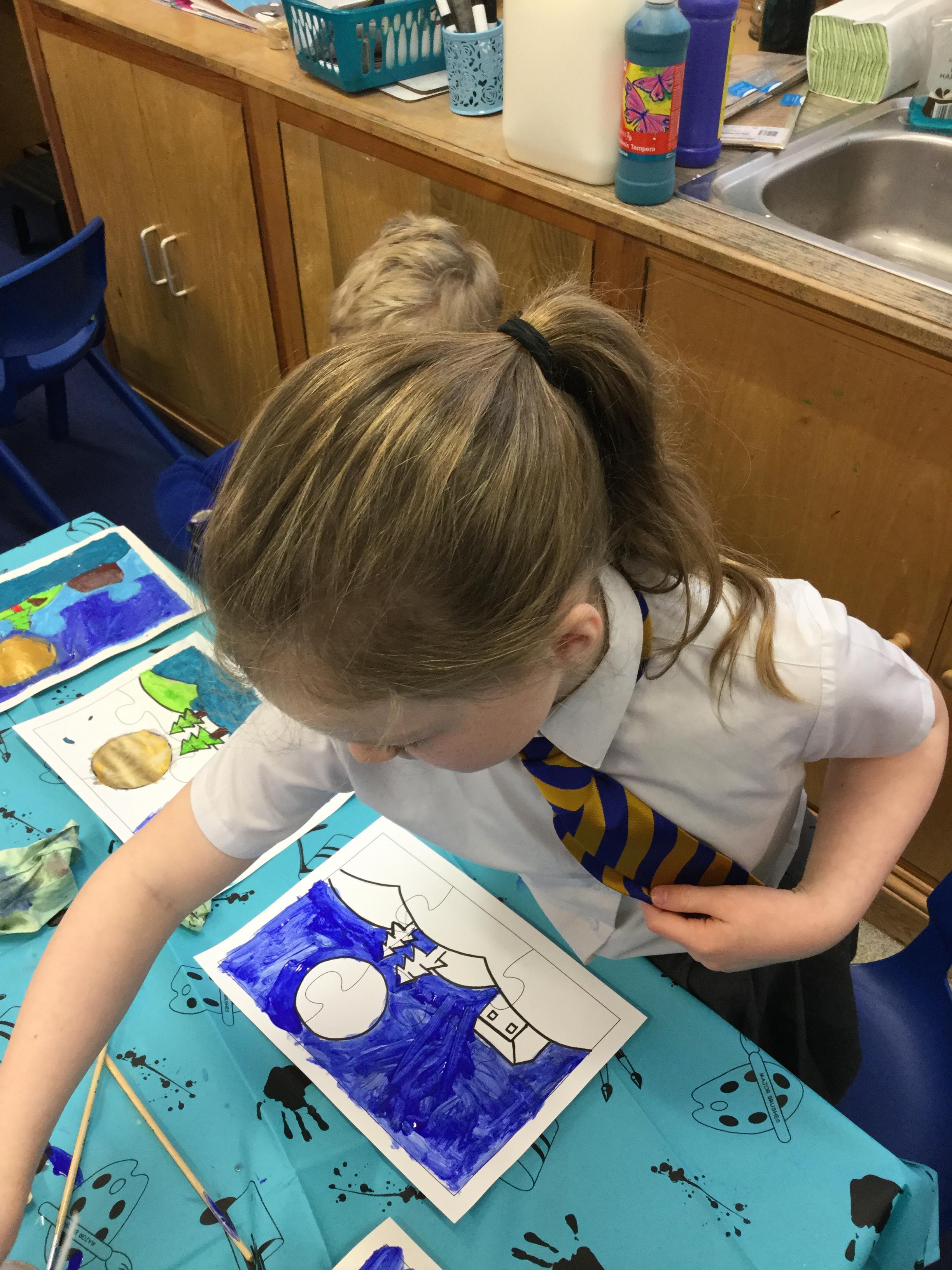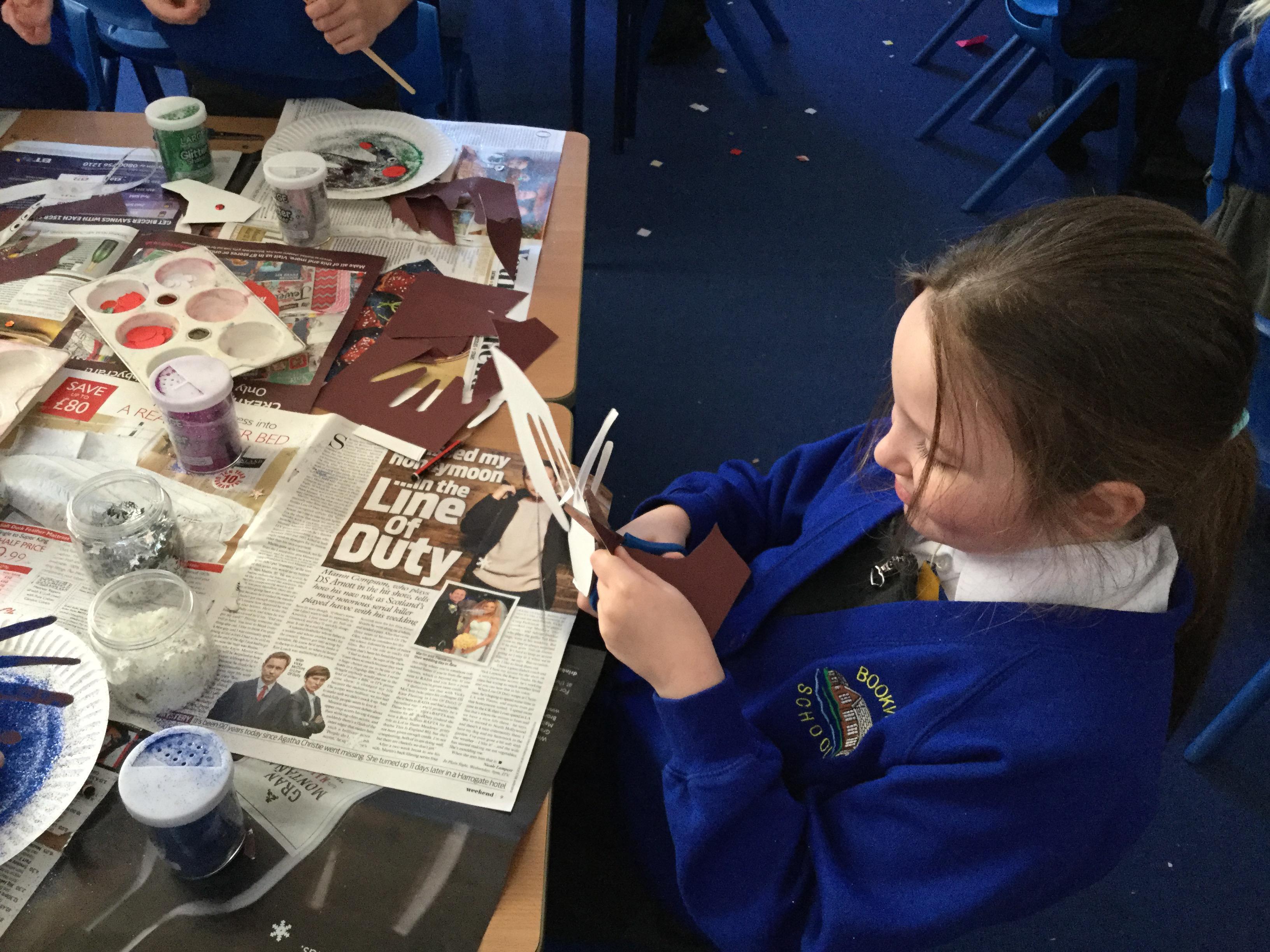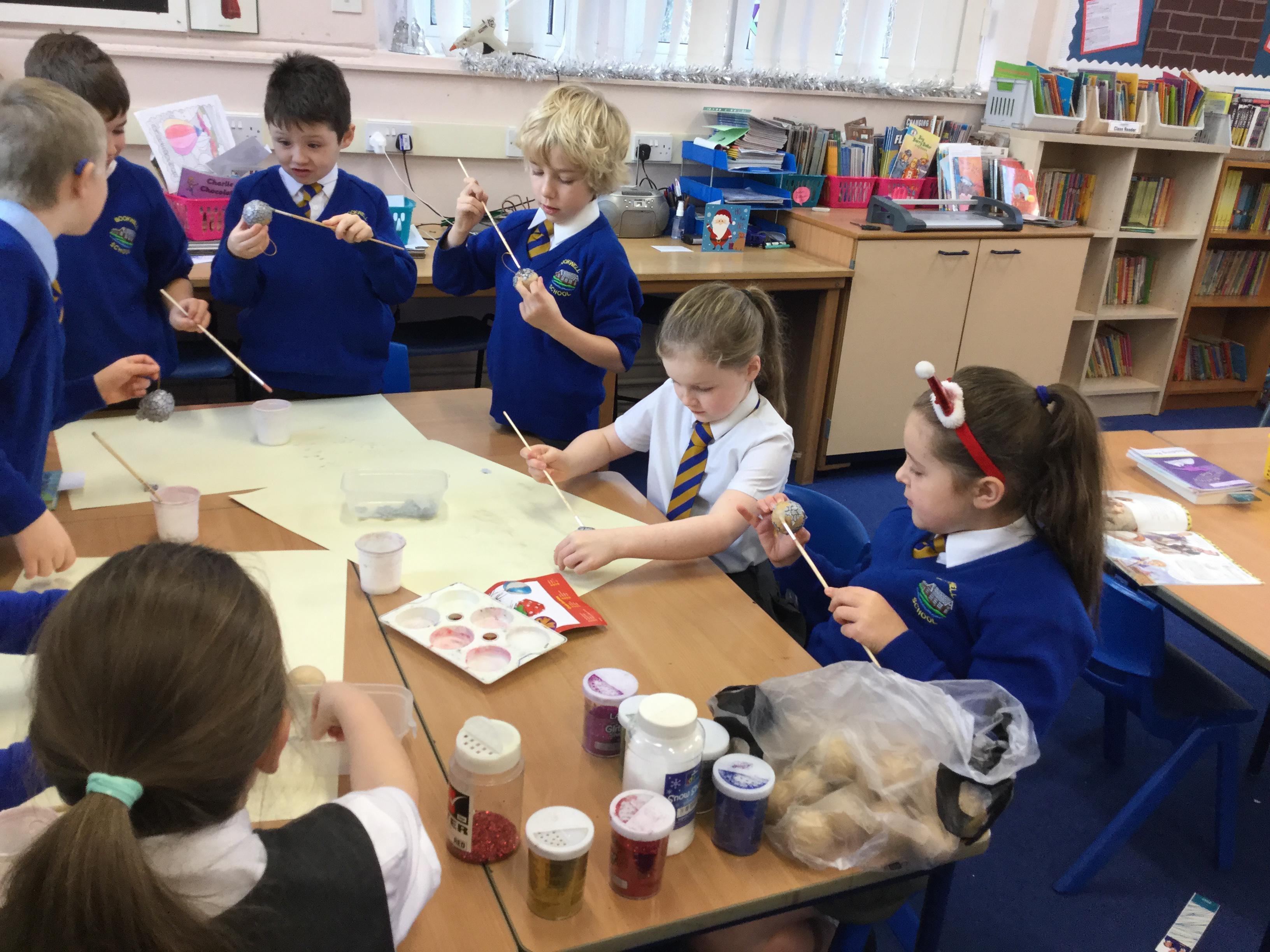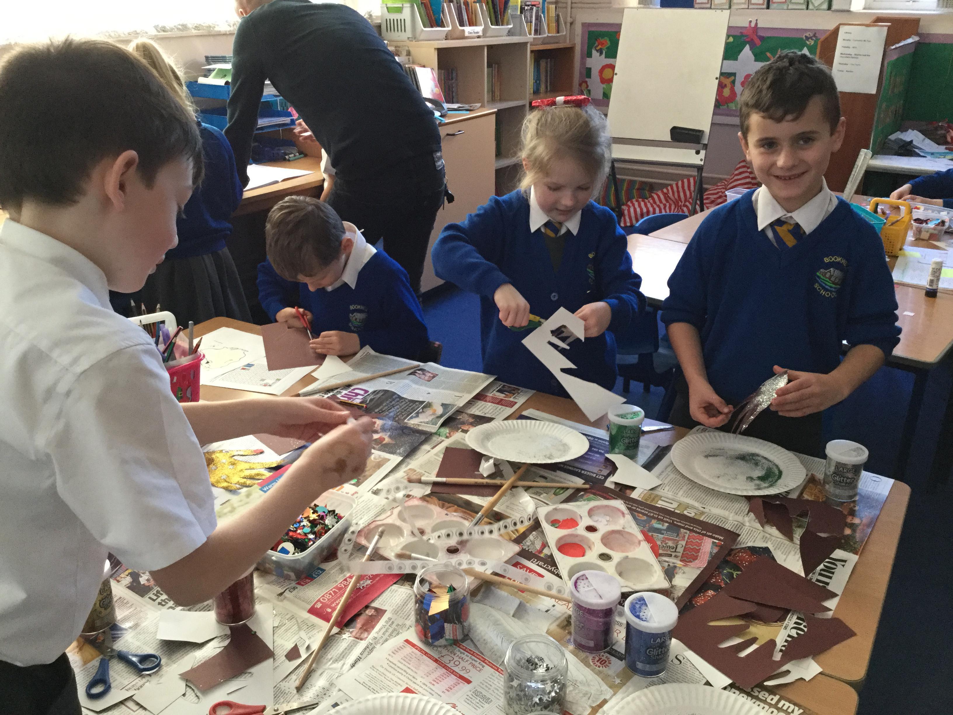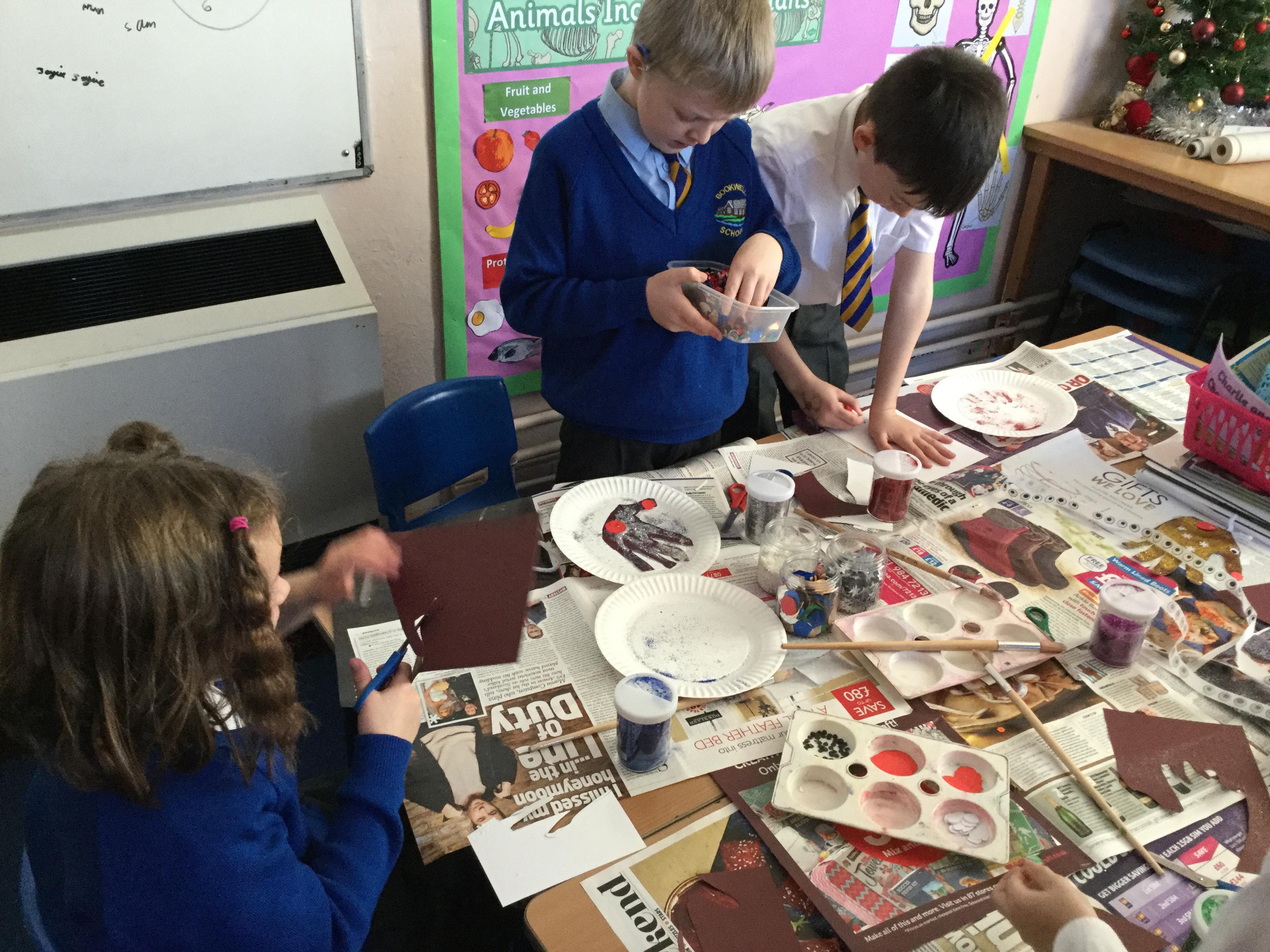 As part of our Stone Age learning we made clay necklaces. We understand that jewellery was found on the site of Skara Brae. The villagers that lived during this period would have made jewellery from animal bones and tusks.