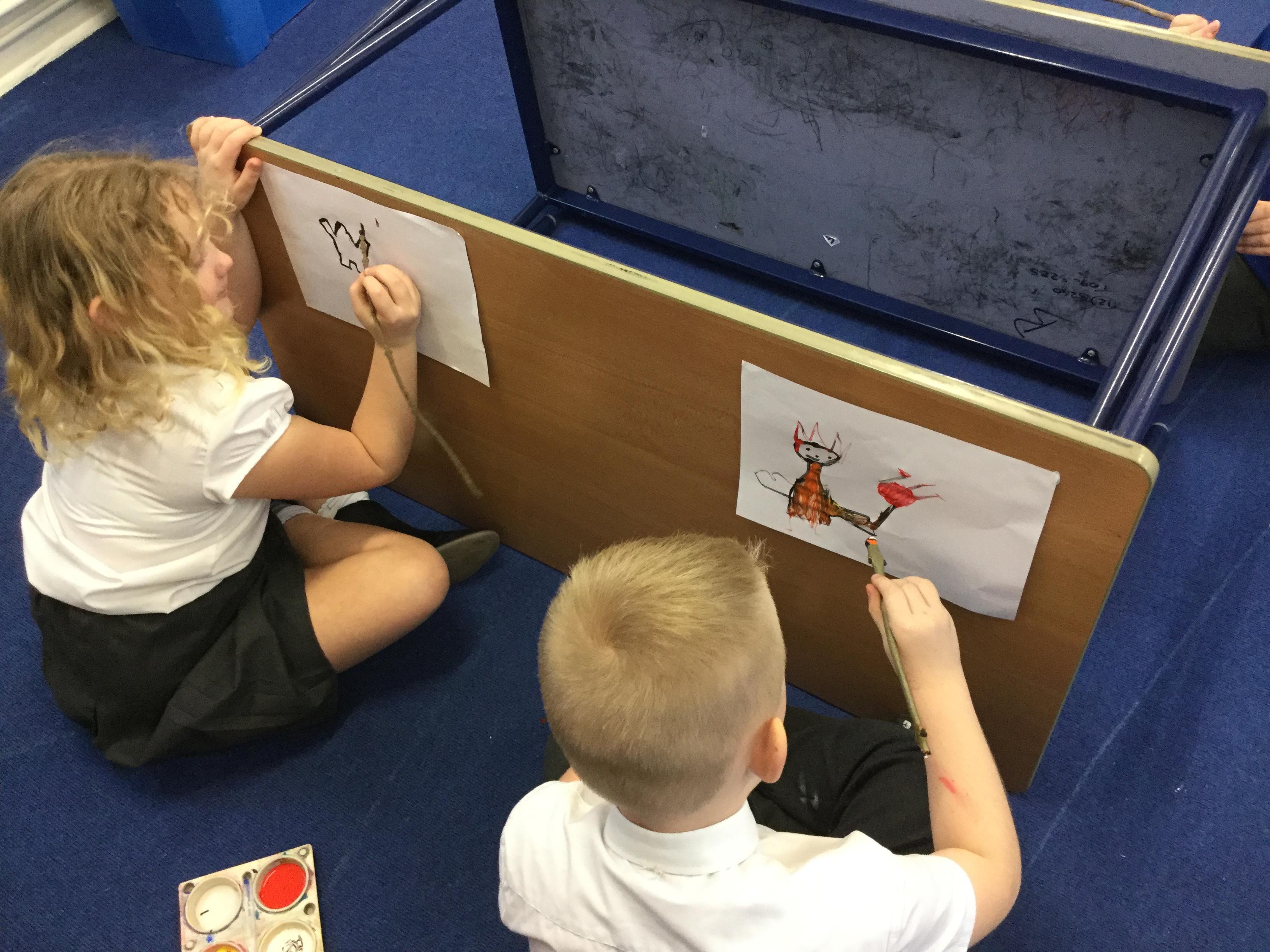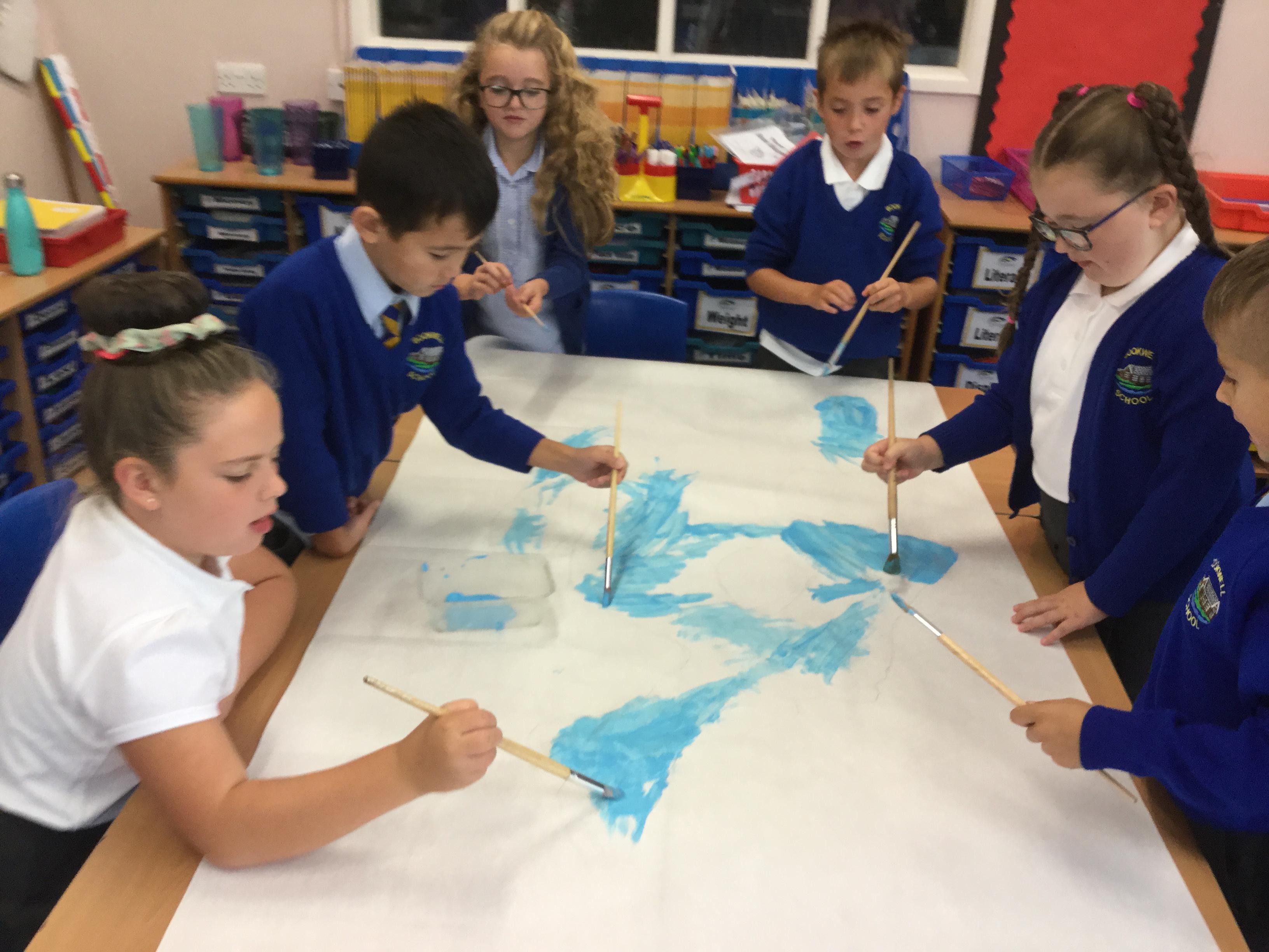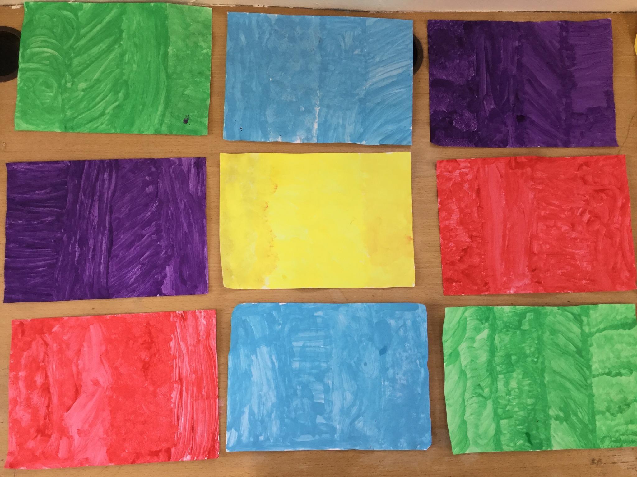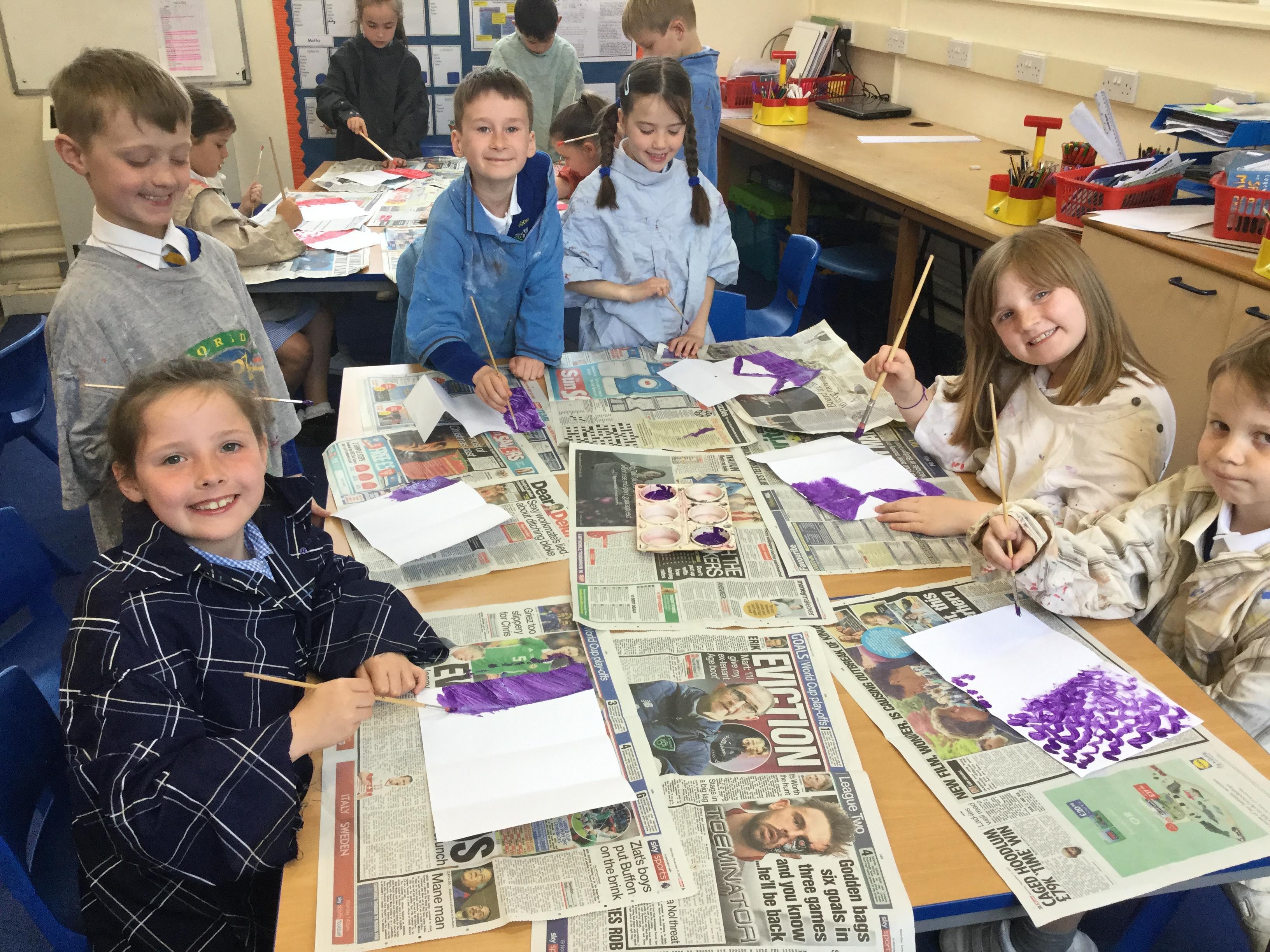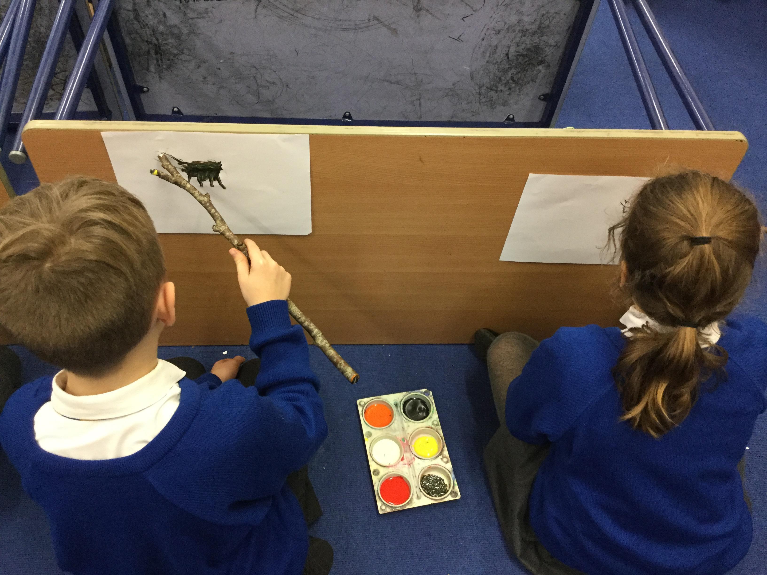 We studied 'The Starry Night' by Vincent Van Gogh, paying particular attention to the brush strokes. We then explored different brush strokes using a range of brush sizes and ways to apply it to the paper.