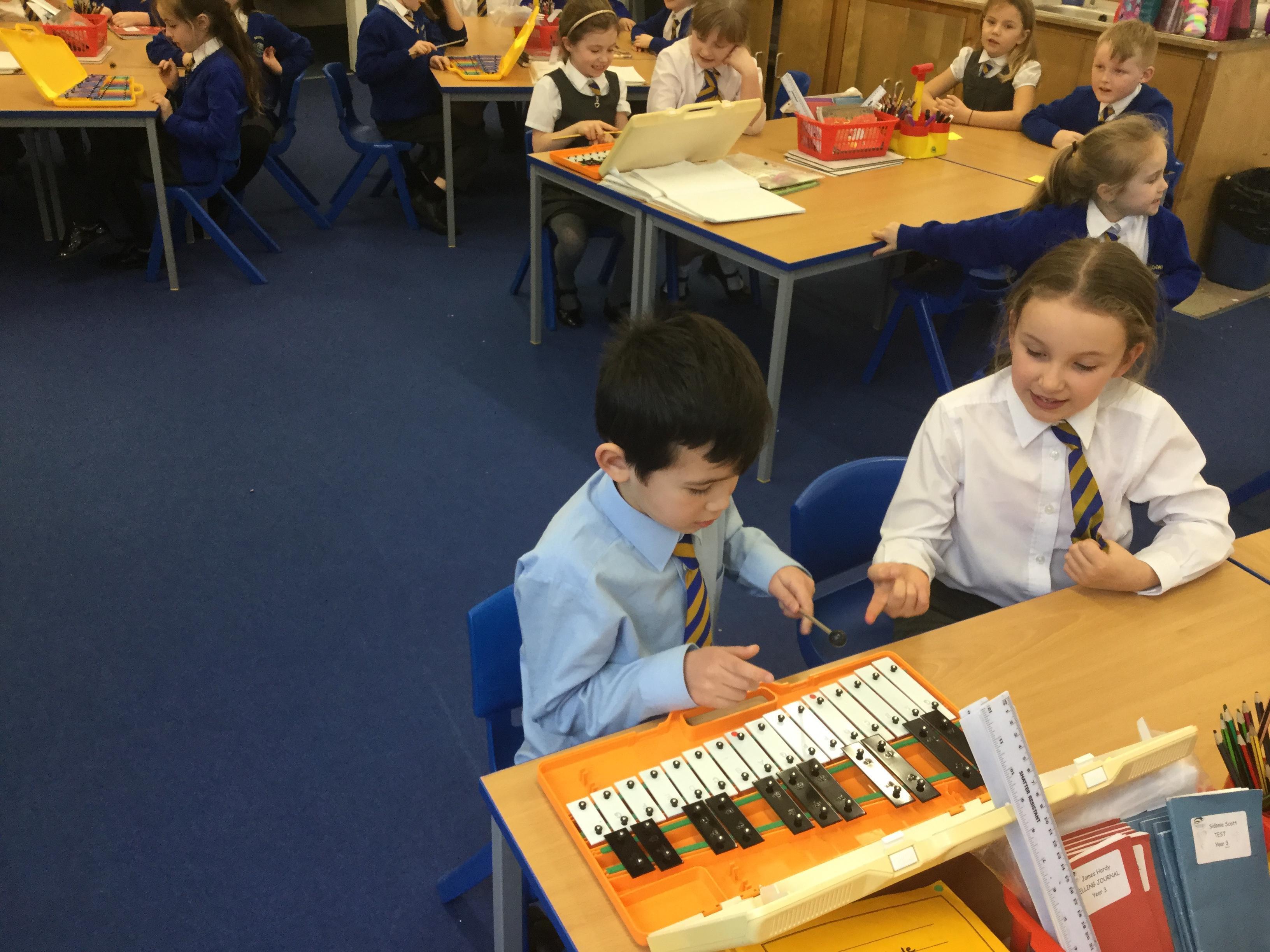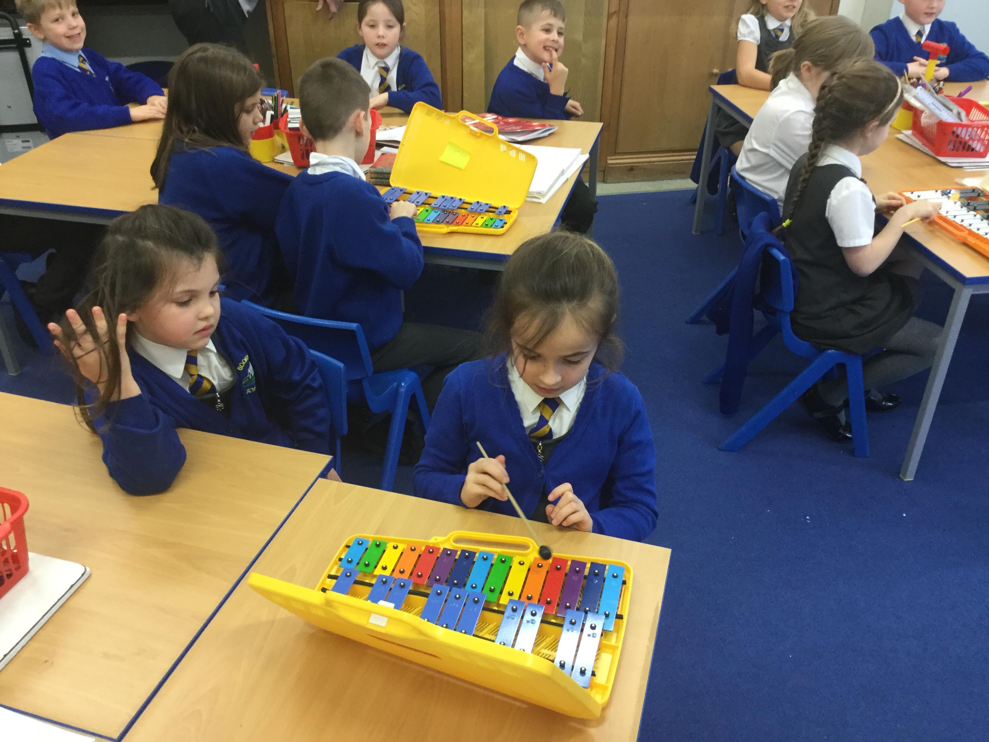 'Old MacDonald had a farm' changed to 'Old Macdonald had a glock' in our music lesson today. We were learning about pentatonic scales and how they five notes. We focused on G A B C And D and played along on a glockenspiel while the others sang along.