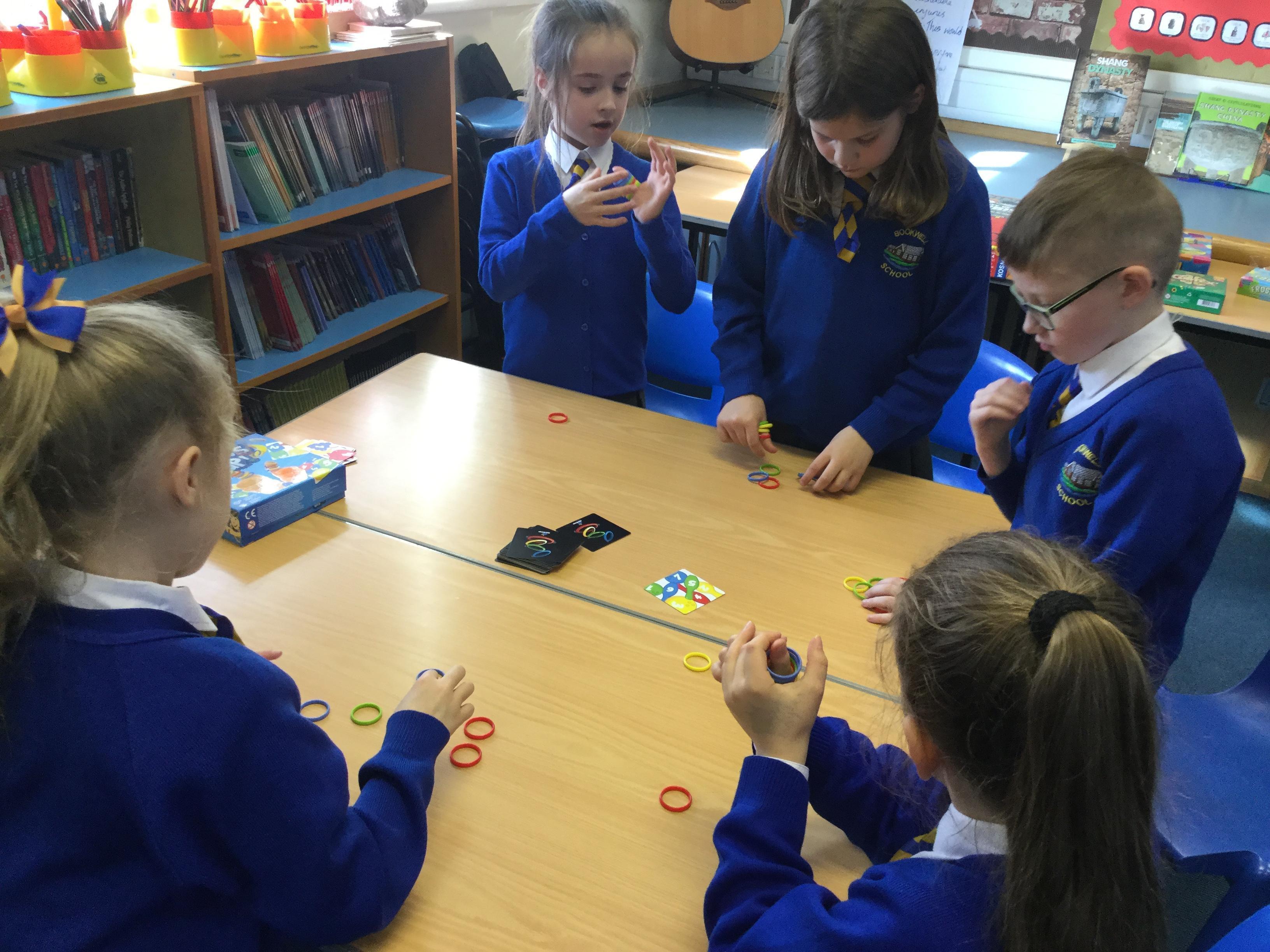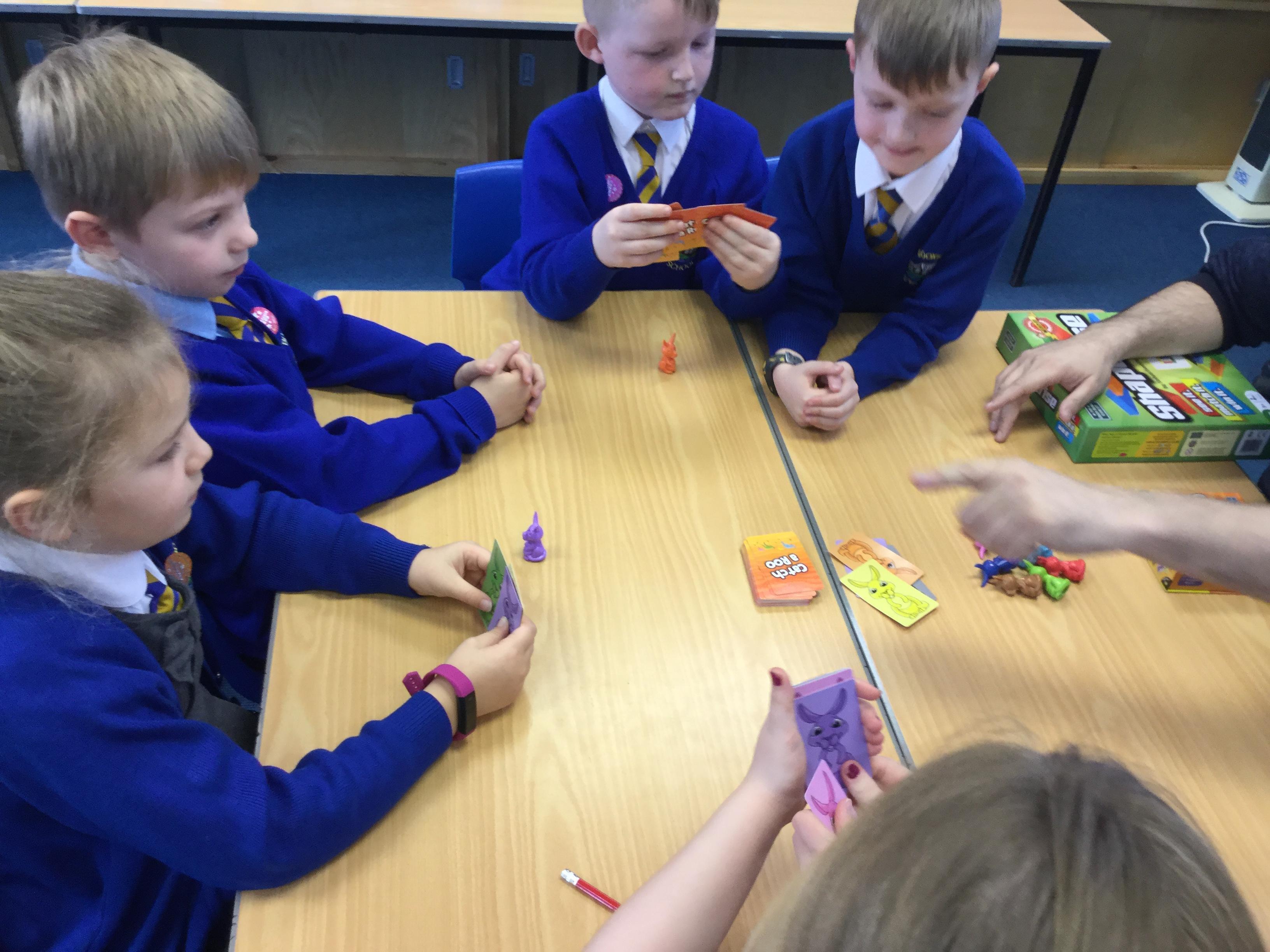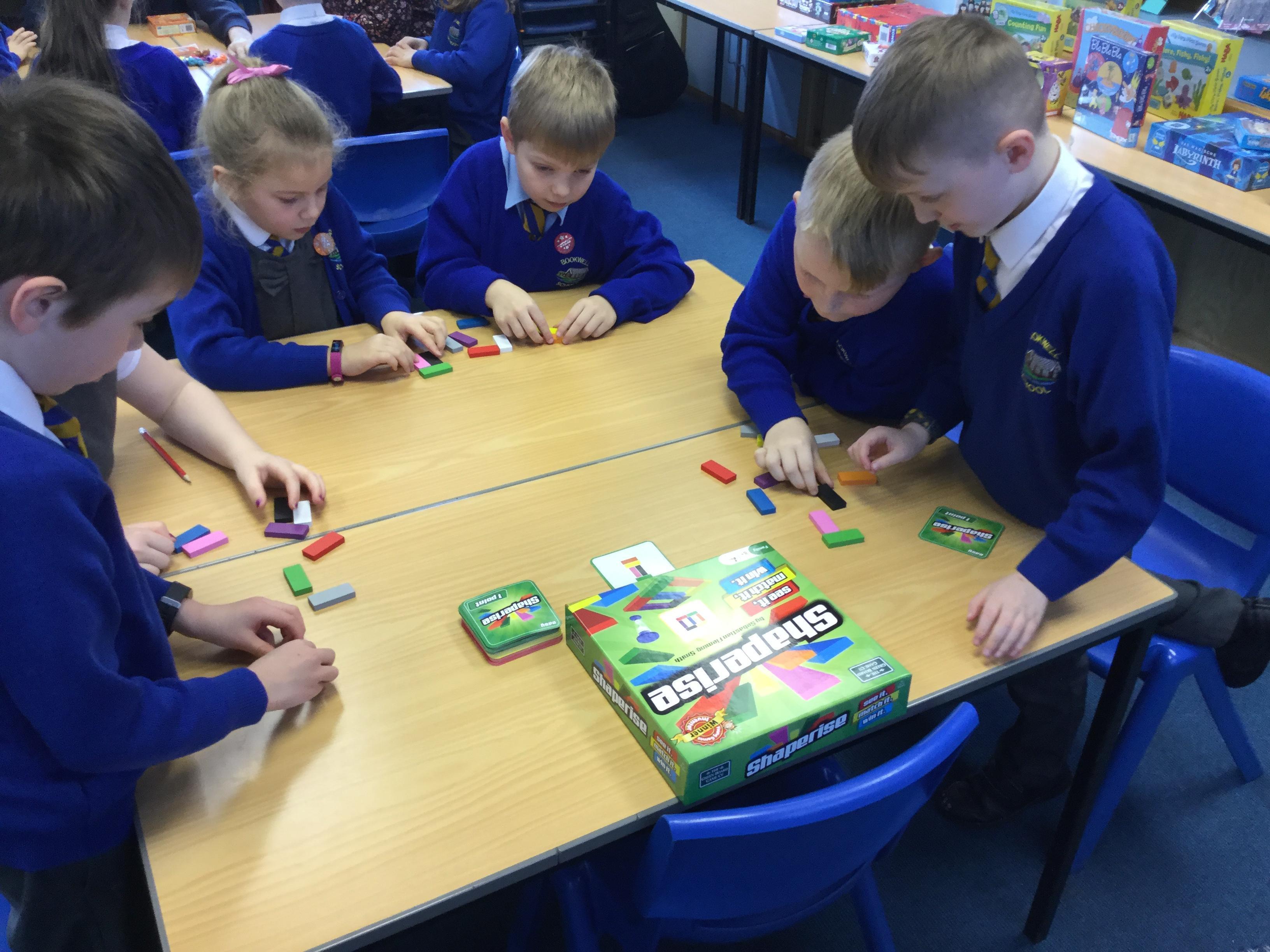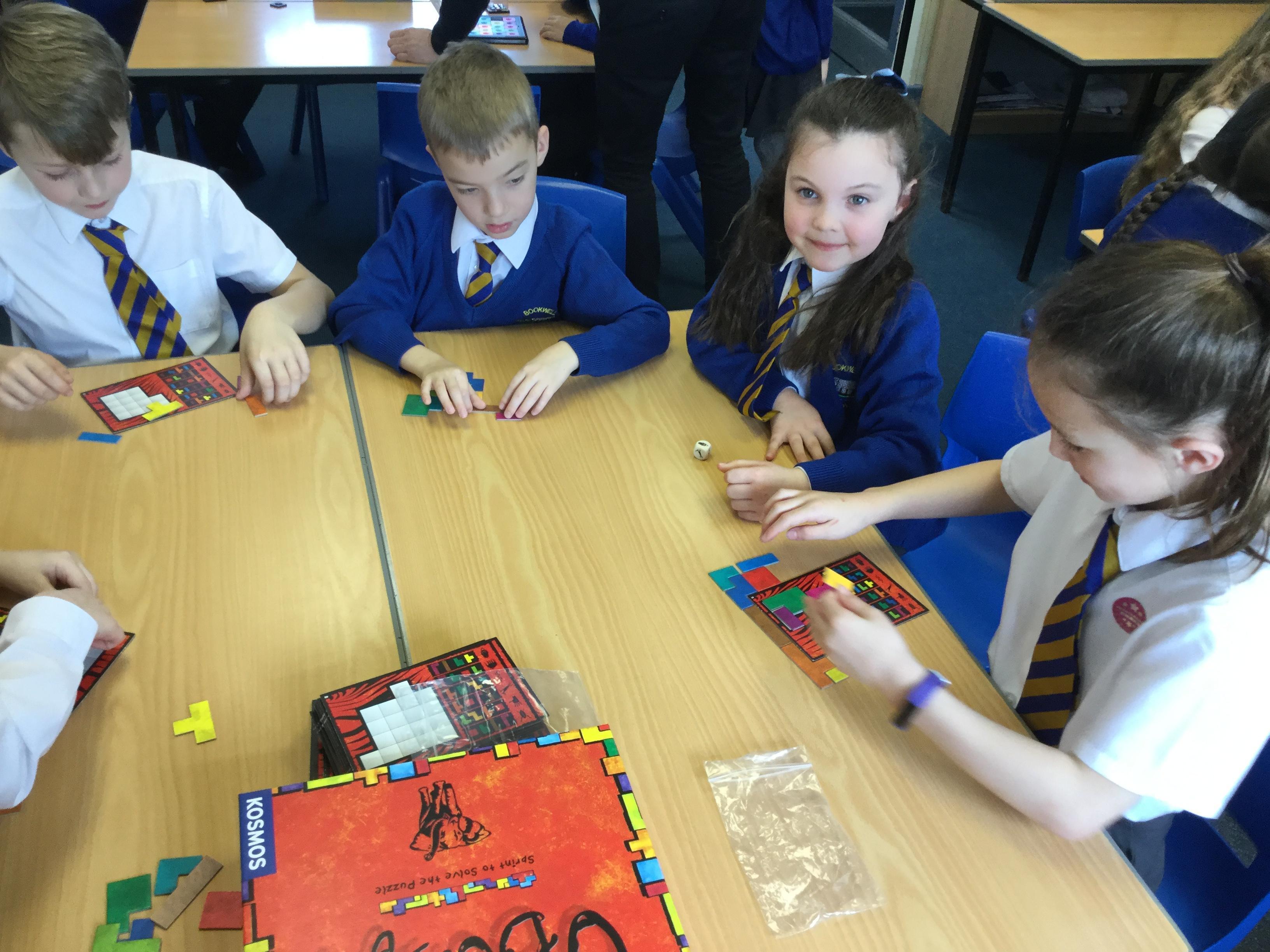 On the first morning of maths' week, we got to take part in an imagination gaming session. In groups, we played a variety of games. Some were problem solving, some were number based, som were shape based and we really had to use our logic for a few. We had a super time and we got to keep the games. We can't wait until Friday afternoon for a chance to play them again.