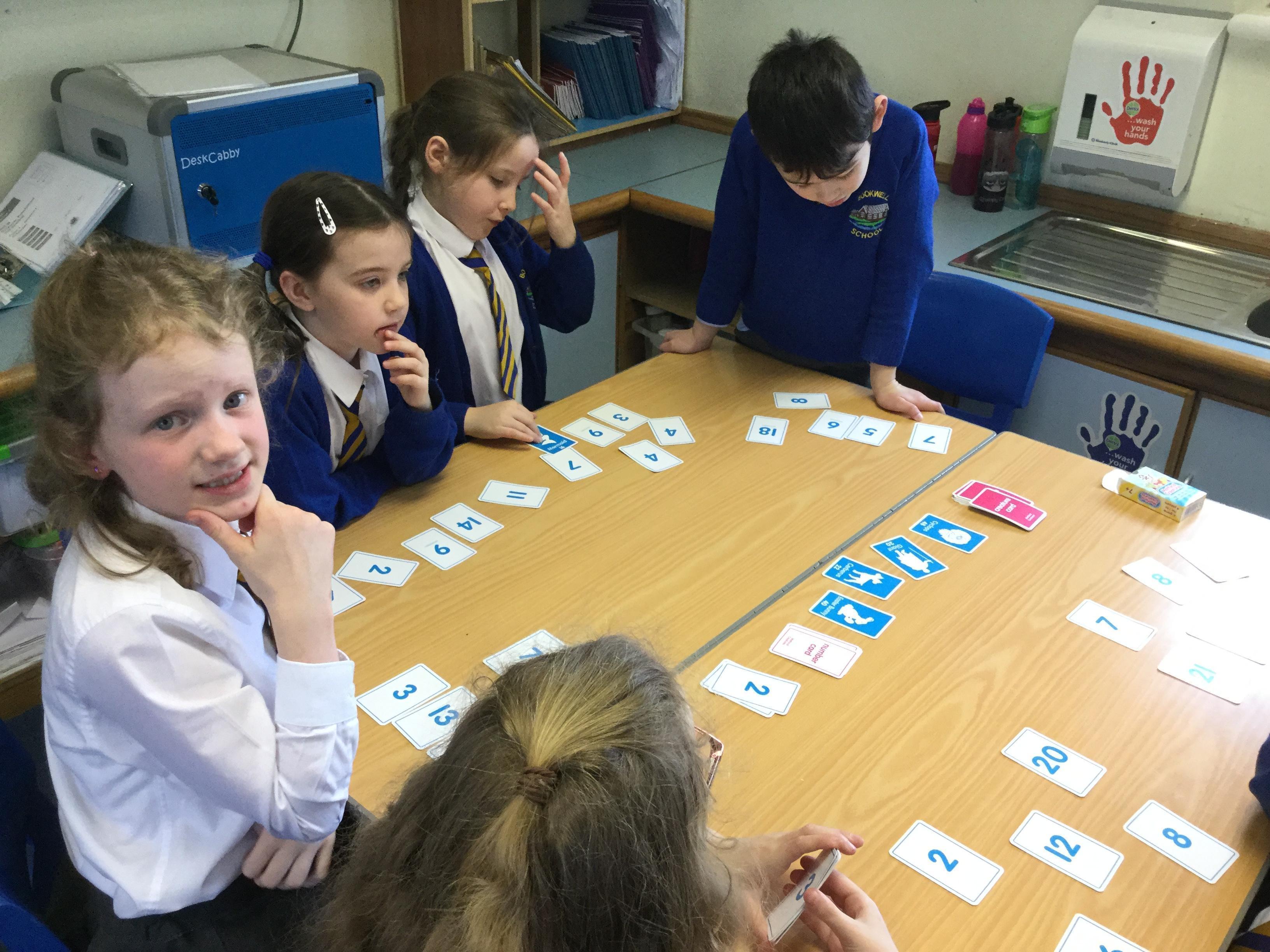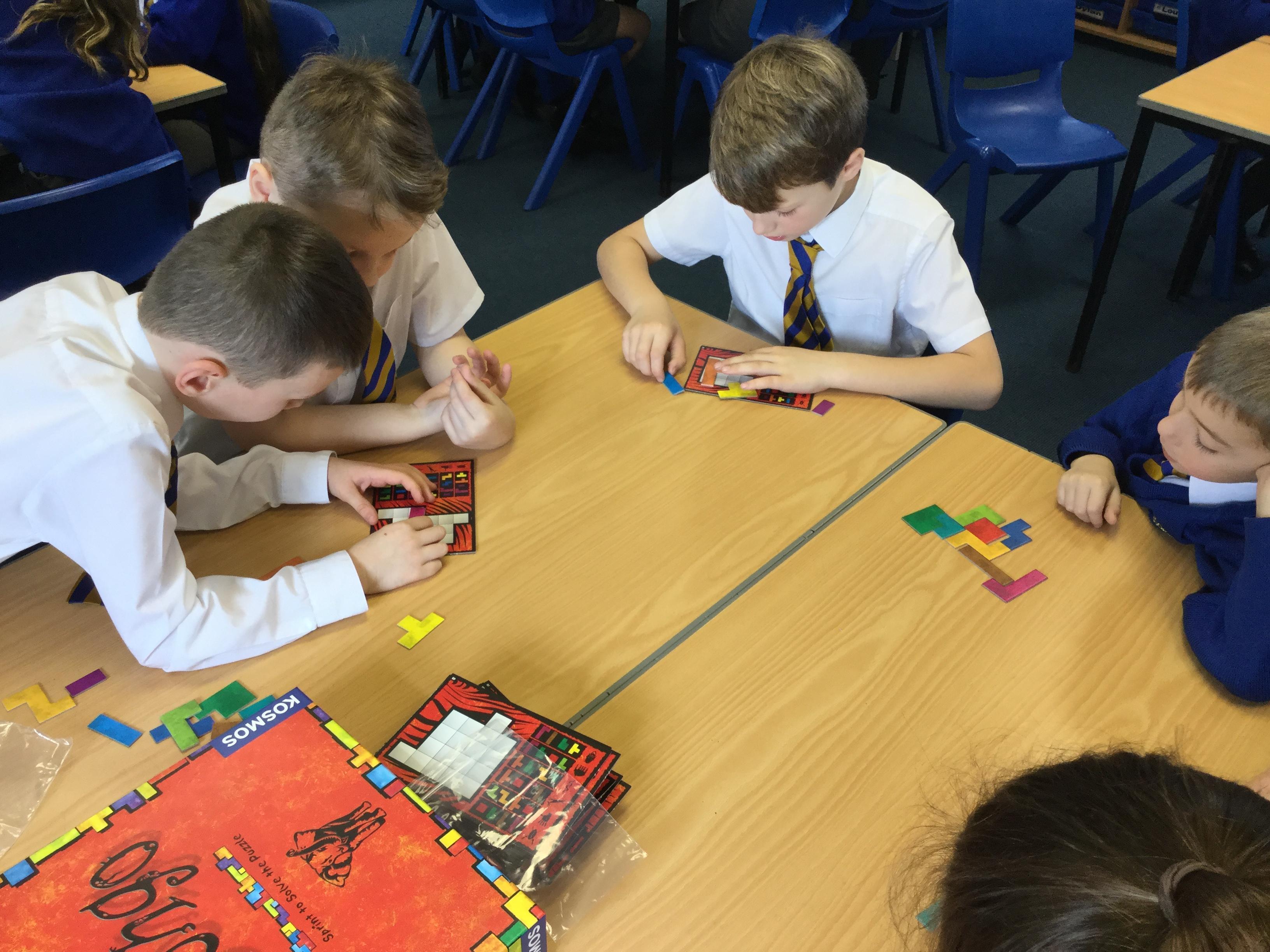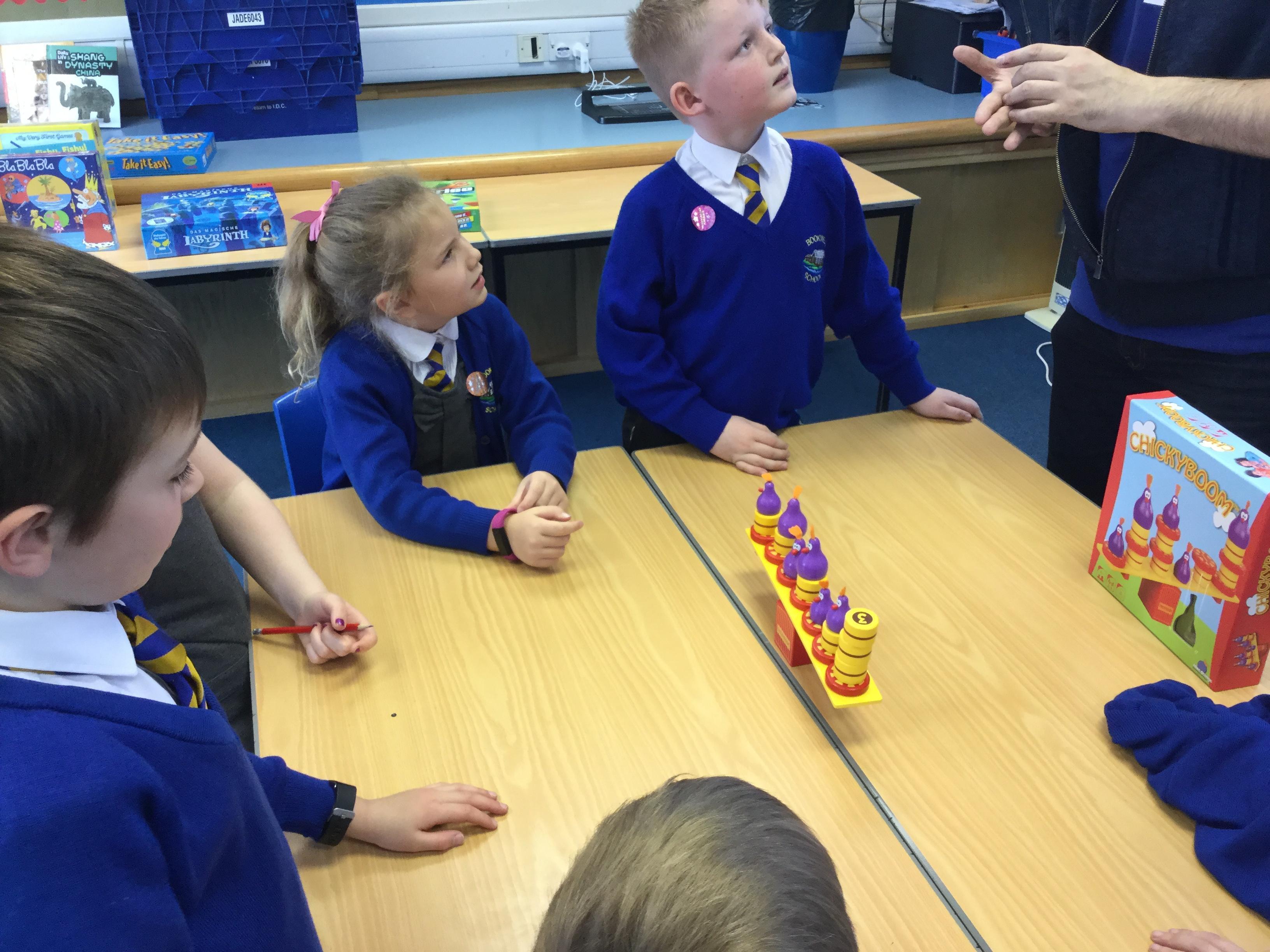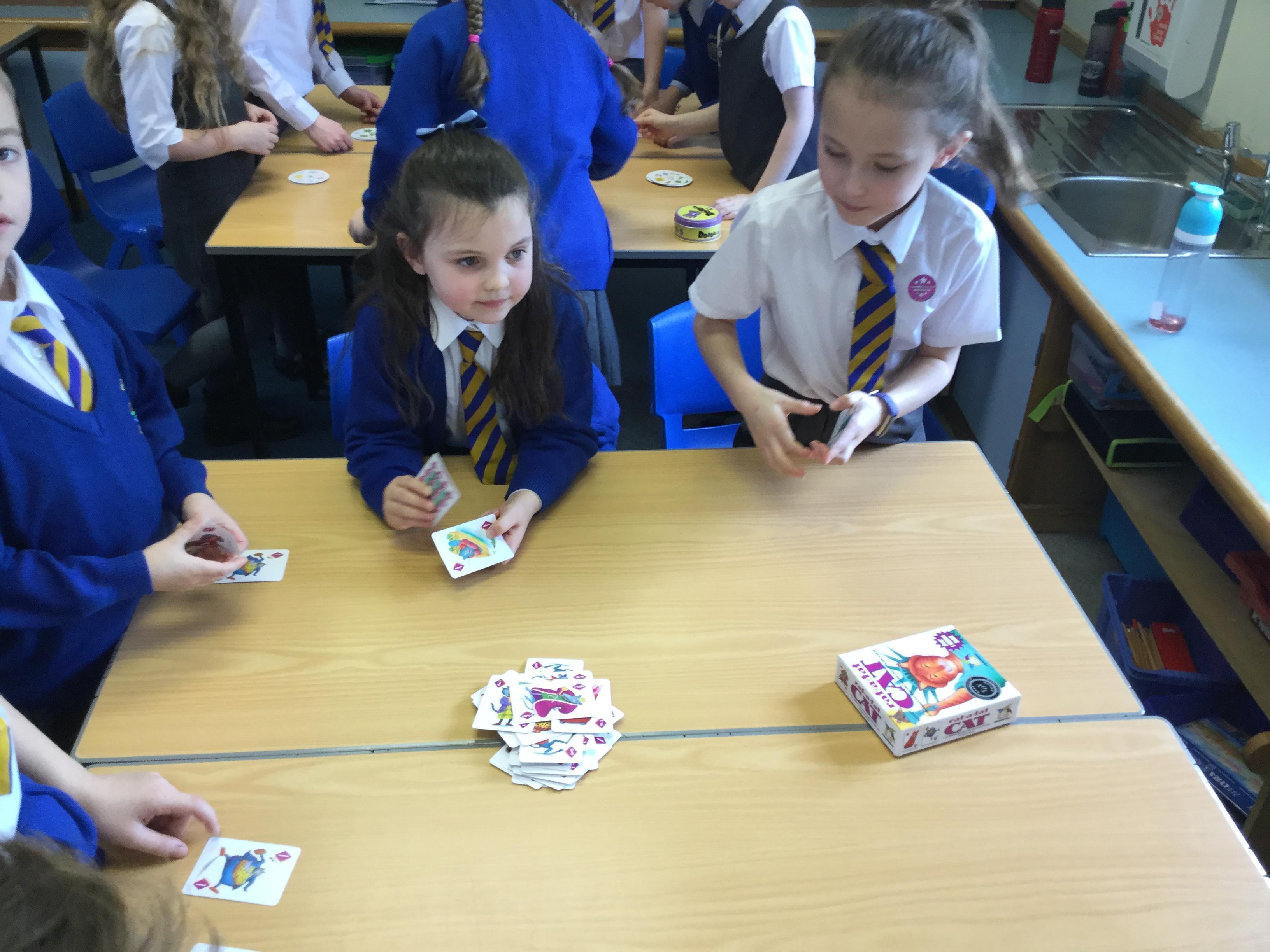On the first morning of maths' week, we got to take part in an imagination gaming session. In groups, we played a variety of games. Some were problem solving, some were number based, som were shape based and we really had to use our logic for a few. We had a super time and we got to keep the games. We can't wait until Friday afternoon for a chance to play them again.