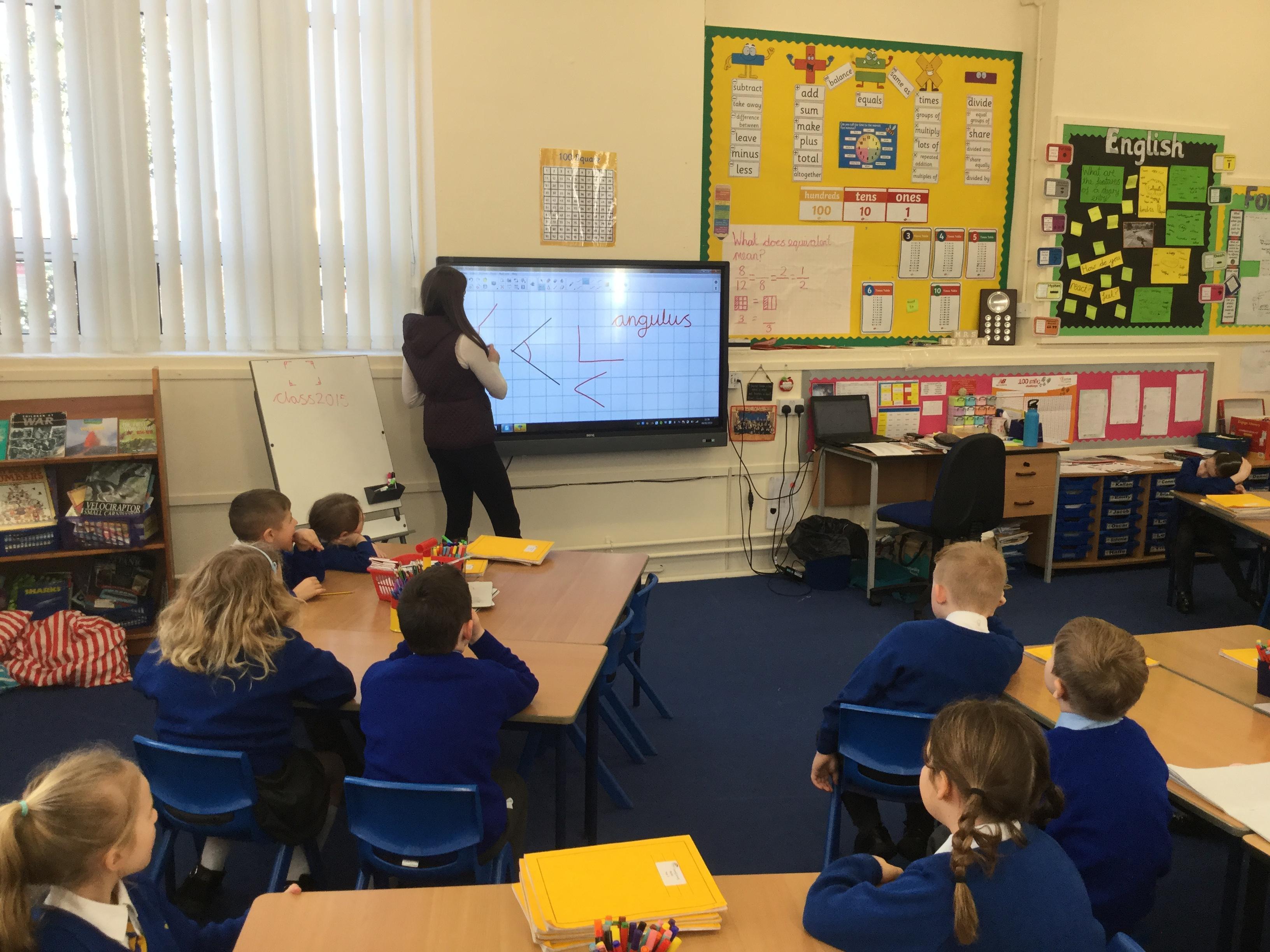 Today, Year 3's maths lesson was all about angles. We learned how right angles can be recognised by looking for an "L" shape. We also discovered that angles greater than 90 degrees are called obtuse and those less than 90 degrees are called acute. The class then went on an angle hunt around school where we had to record our findings in a table. As you can see, we had lots of fun whilst learning!