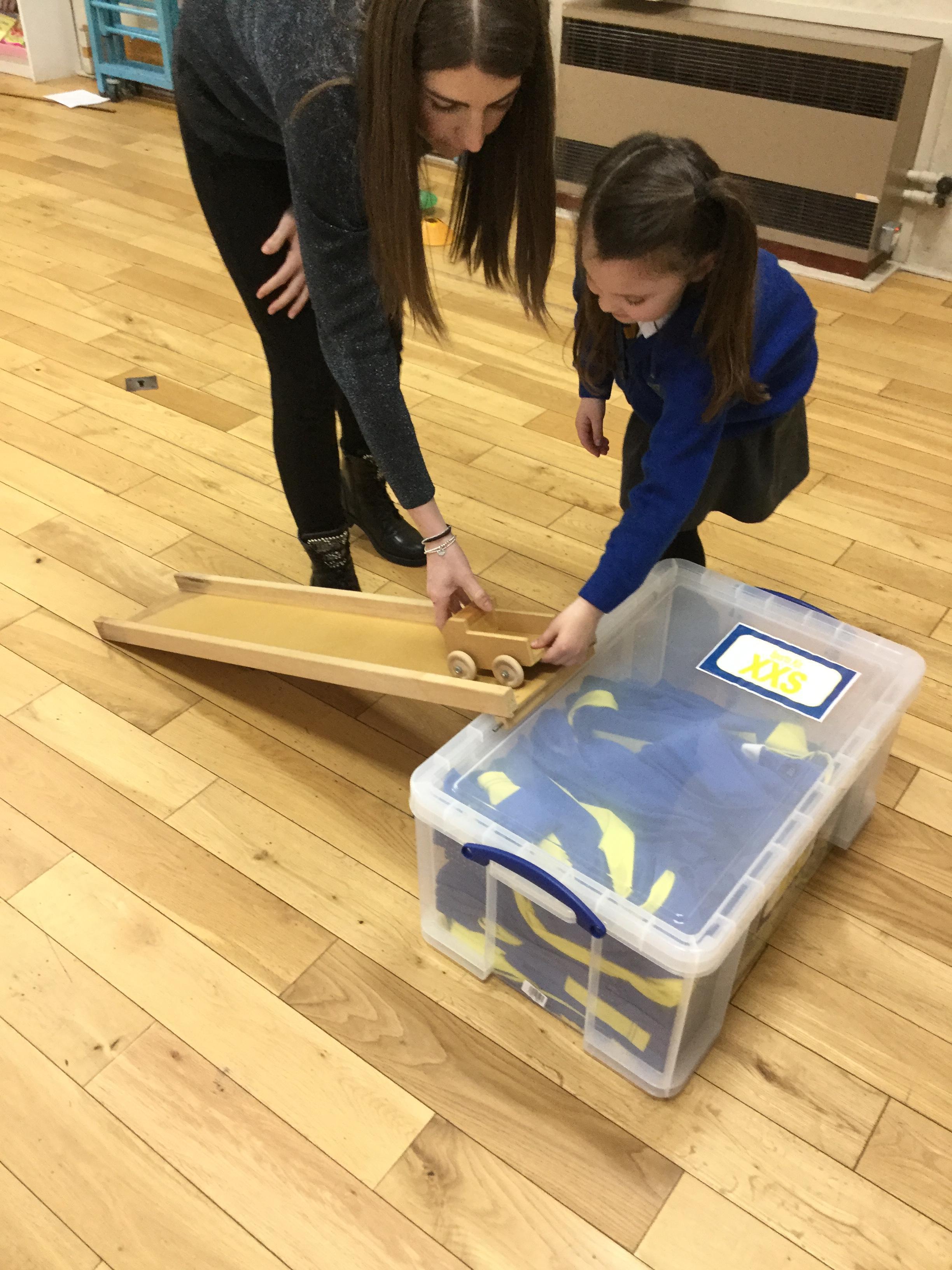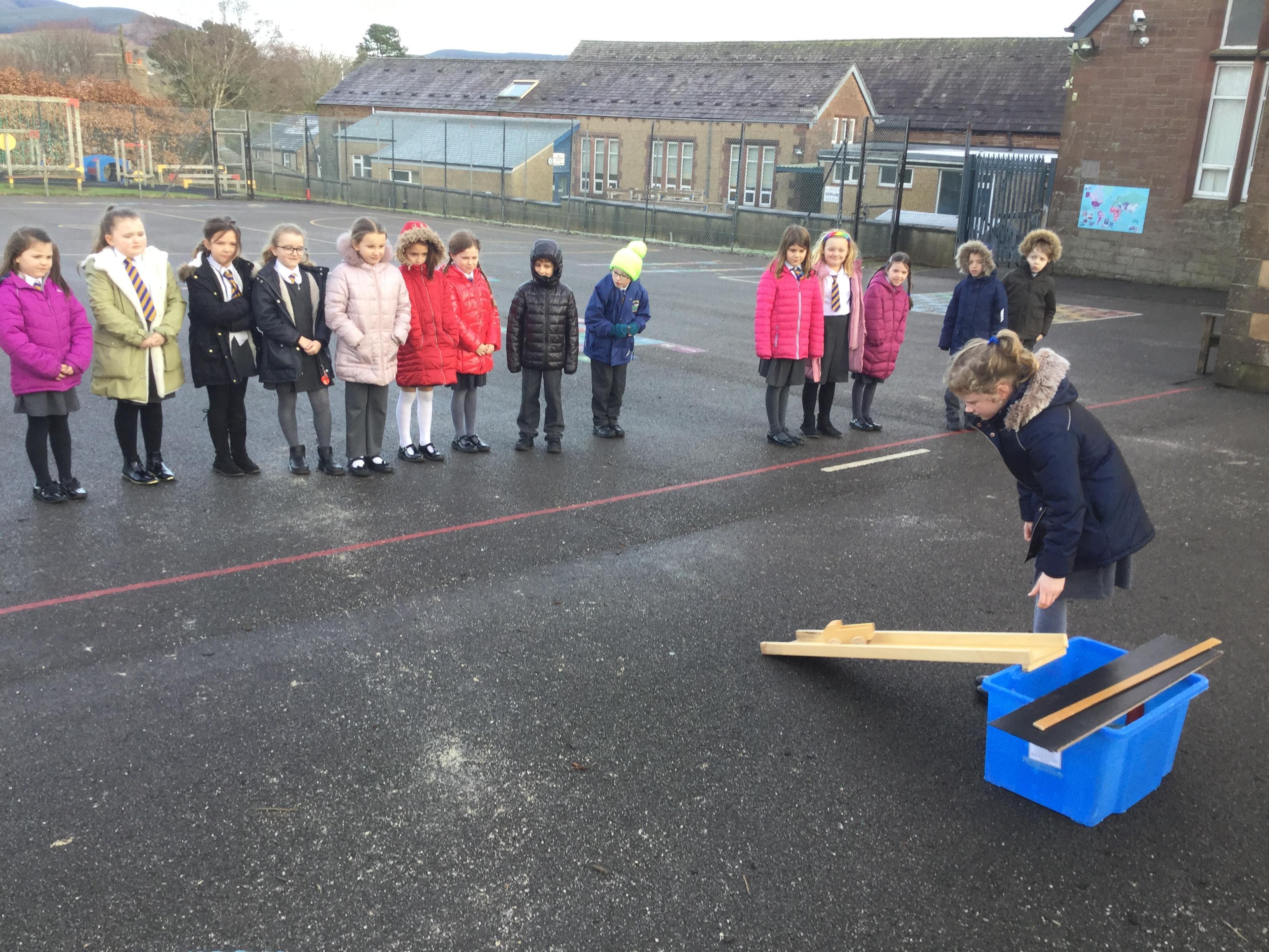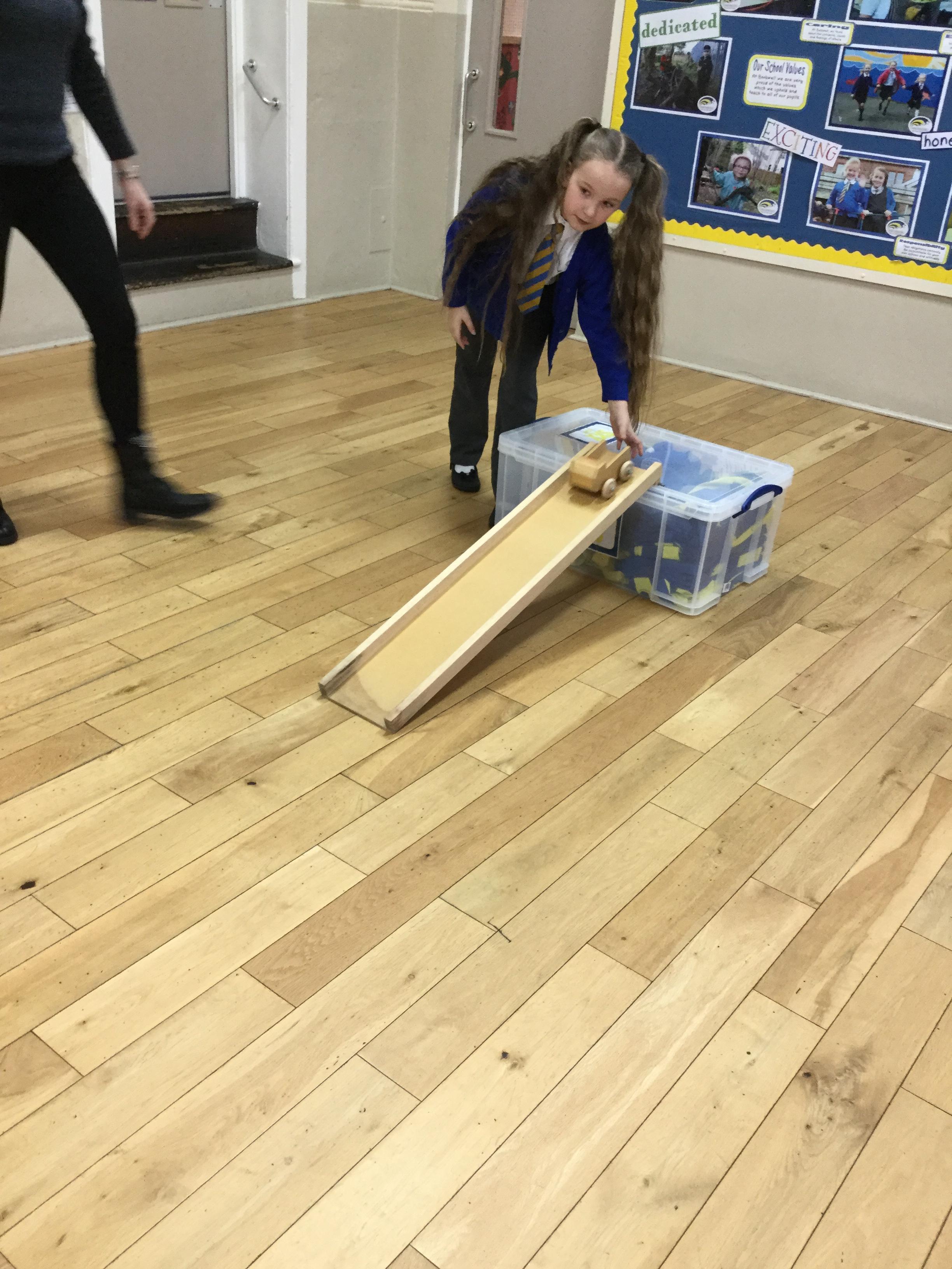 The way a car moves across different surfaces was what the focus of our investigation was. We used lots of different equipment including a ramp and a trundle wheel. The smooth wooden surface had the least friction whereas the rough, bumpy carpet had the most friction.