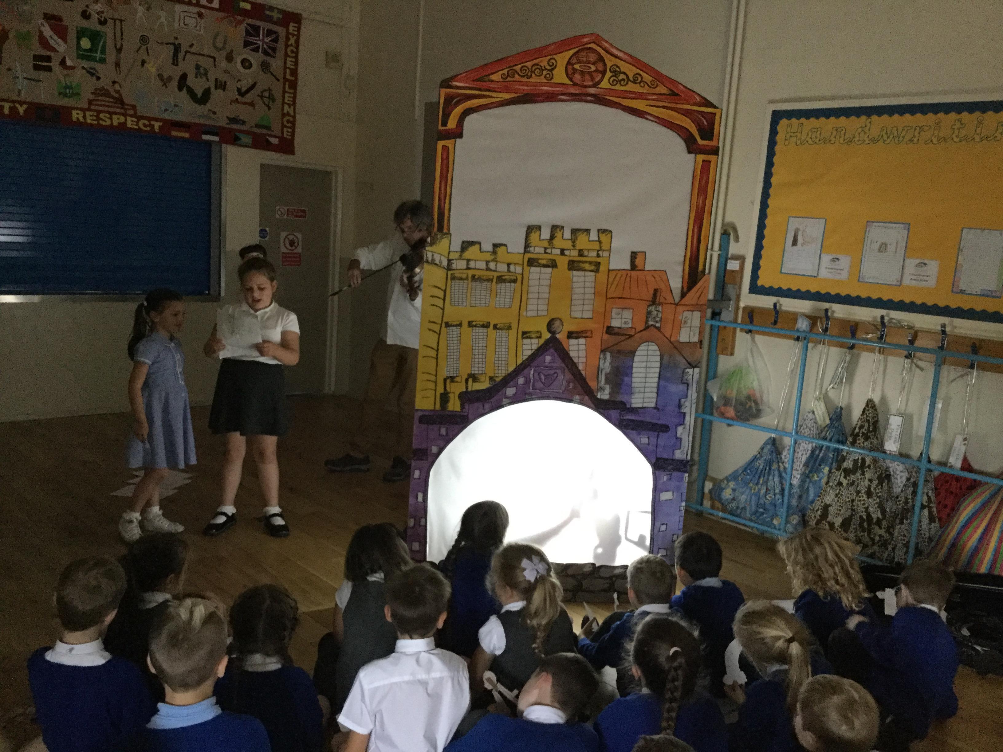 Writing a story, creating shadow puppets and performing it in front of the class were just some of the things we took part in today. Rosehill Theatre were visiting the school and they put on a fantastic performance of Mrs Lutwige and the Magic of the North Pier Lighthouse for the whole school in the morning. In the afternoon, our class took part in lots of fantastic activities. We loved all the Year 3 performances.