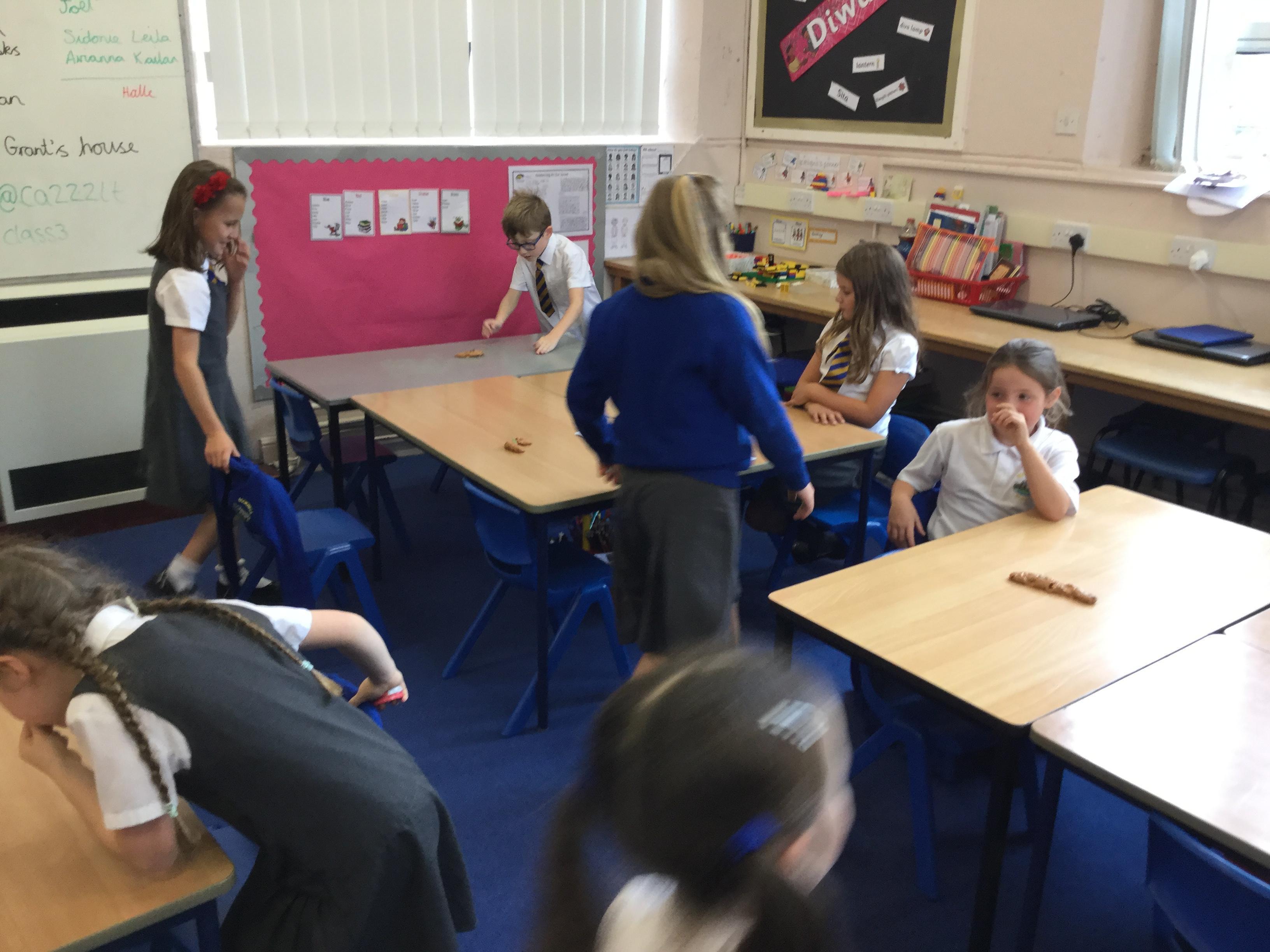 In science, our class investigated if plants need space to grow. We pretended that we were seeds growing into plants in a plant pot. When there were 28 seeds in the pot, it was too squashed for us all when we started to grow. Our leaves couldn't spread out to collect sunlight to make our food and there wasn't enough water for every single plant to suck up using our roots.