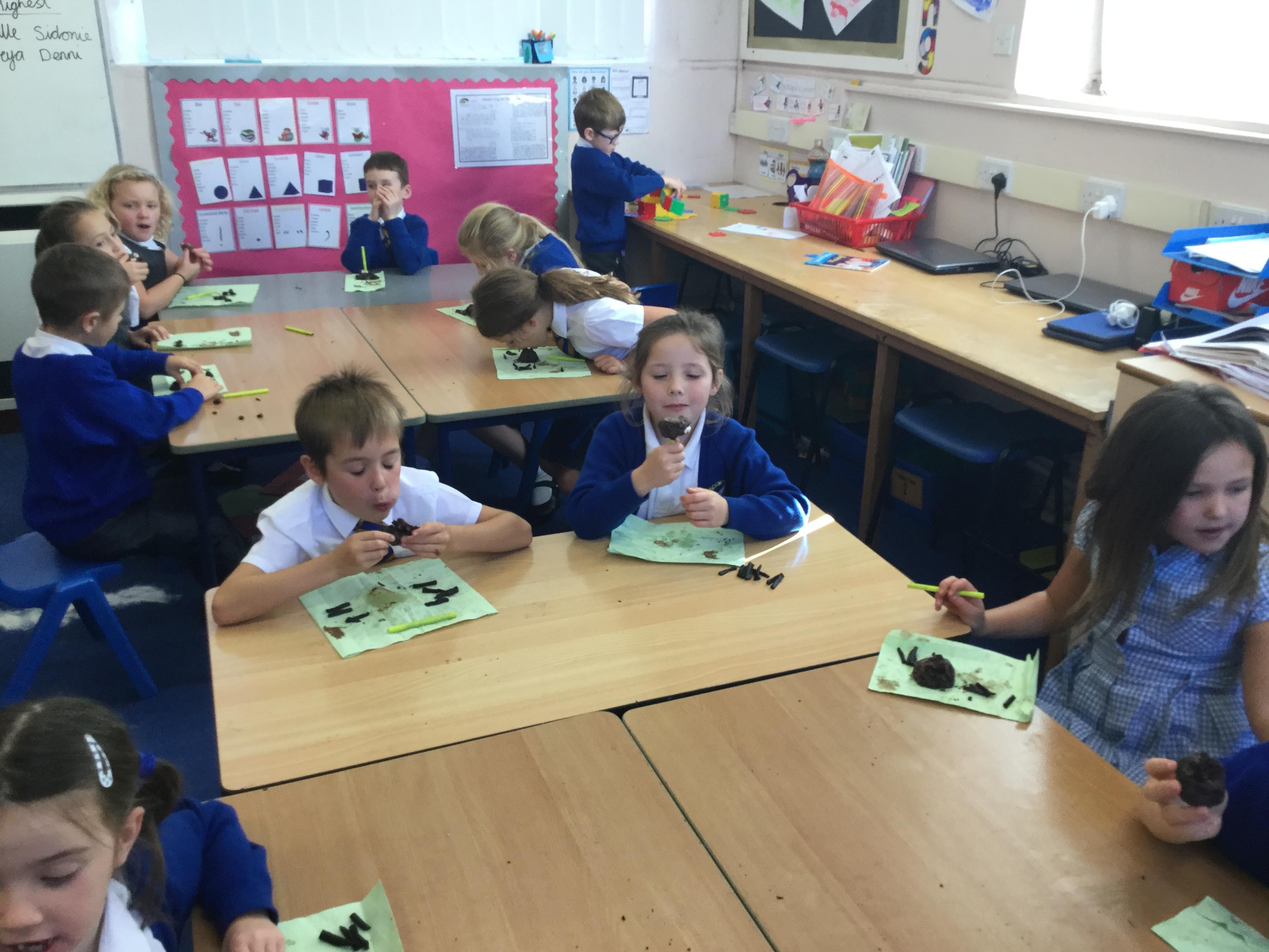 In order to understand how sedimentary rock is formed, Year 3 made some sedimentary sandwiches. These were made of many layers to represent different things.