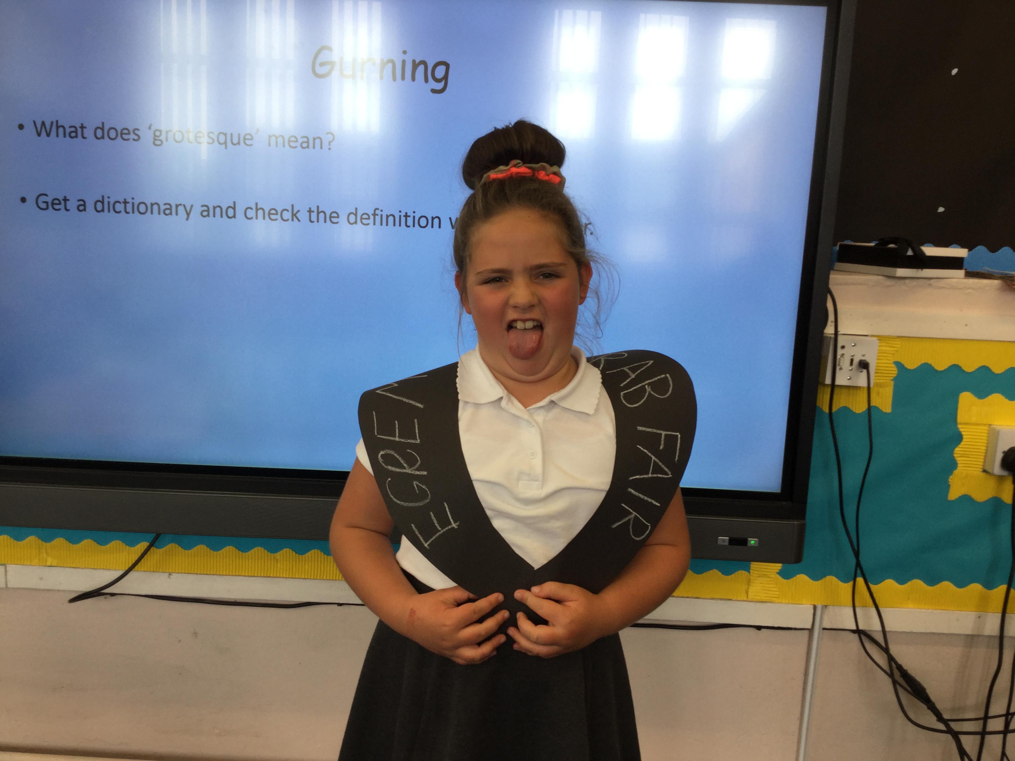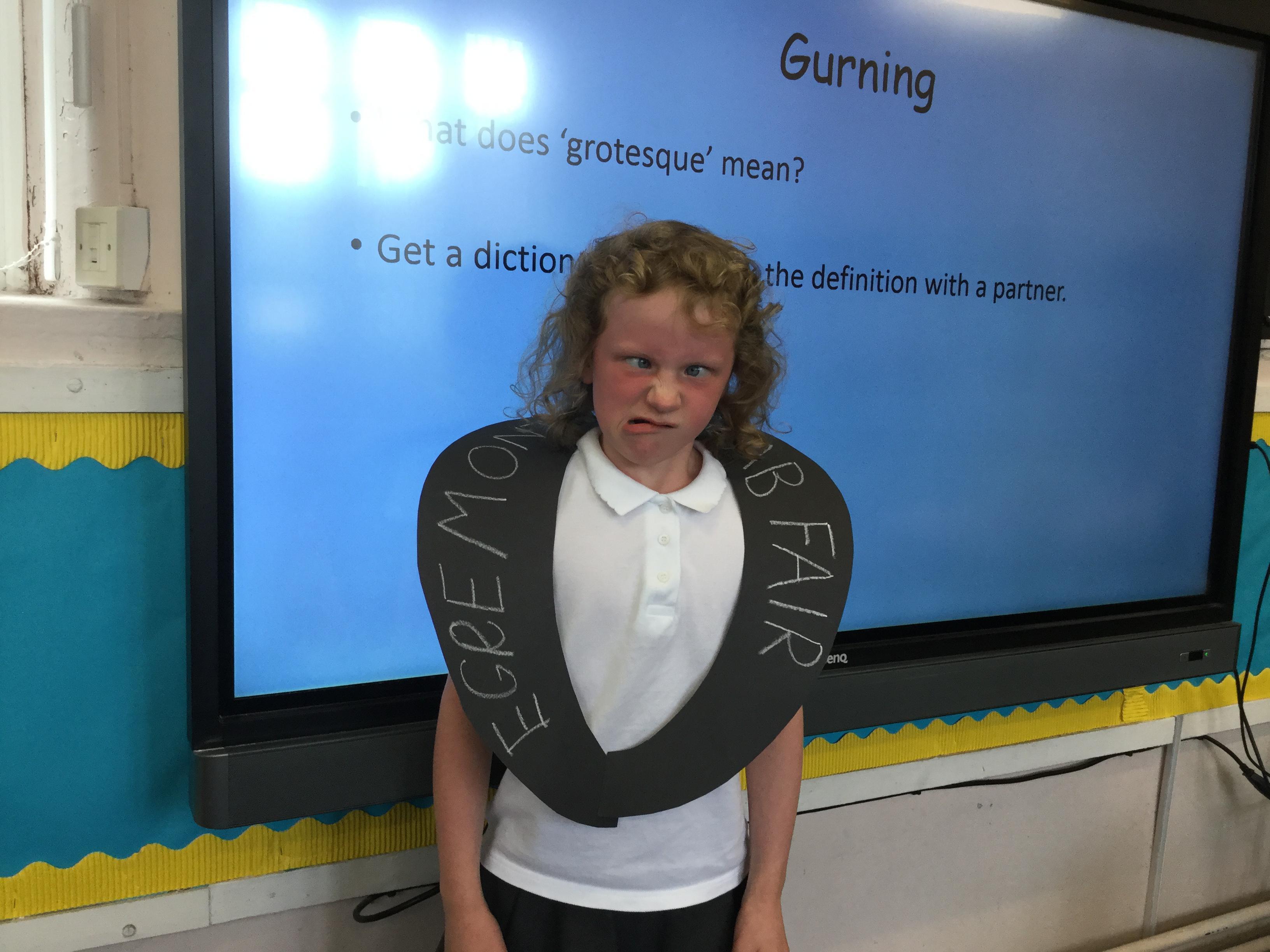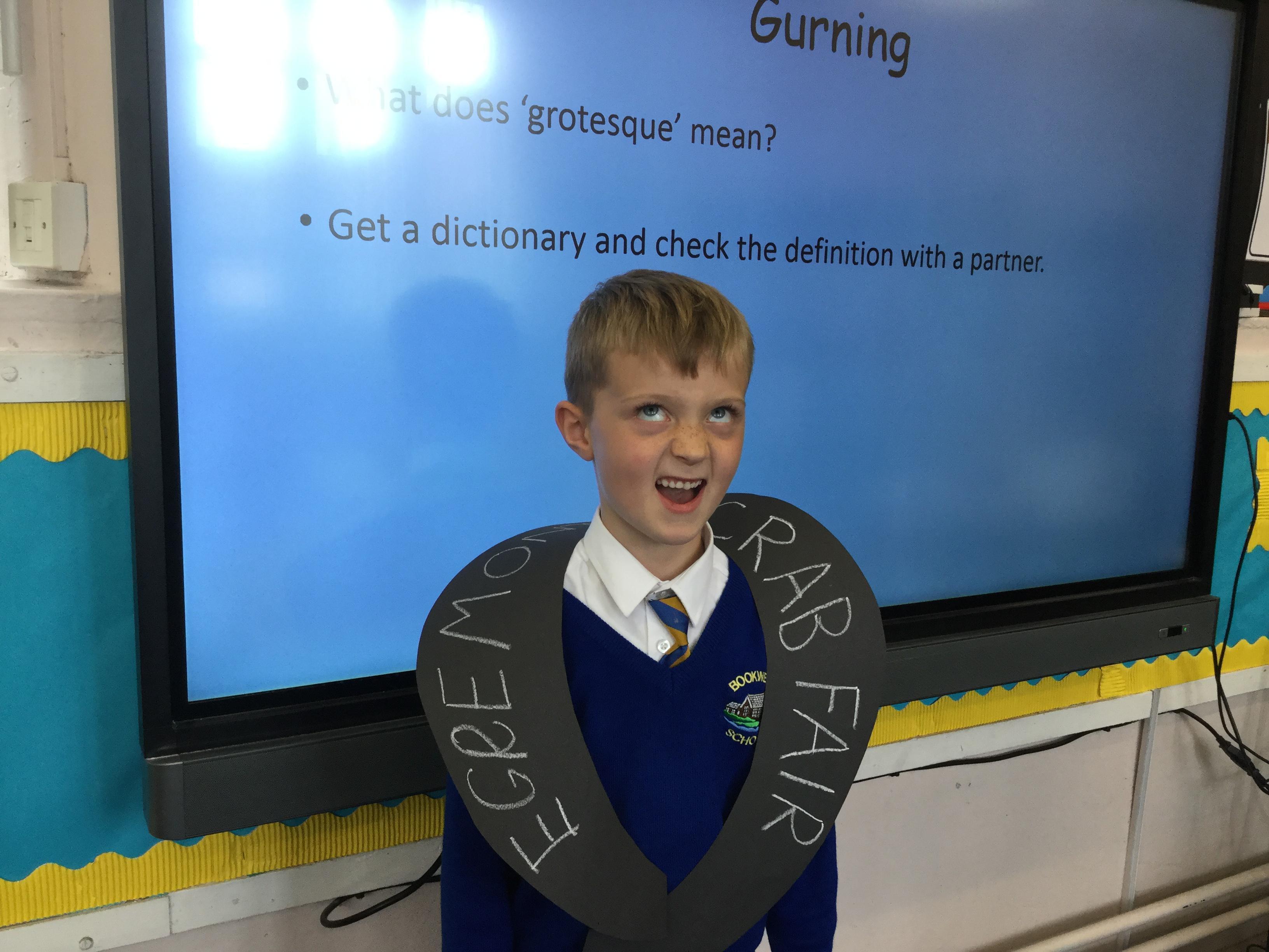 On Thursday, we spend the afternoon learning about Egremont Crab Fair. We heard about the history of the fair and how it's changed throughout the years. We couldn't believe it is 751 years old! We made our own braffins (that's a horse collar) and then had a go at gurning. We're very privileged in year 3 at Bookwell because we have the reigning children's gurning champion - Lexi, and Denni's mum is the reigning ladies' gurning champion. What do you think of our 'grotesque' faces?