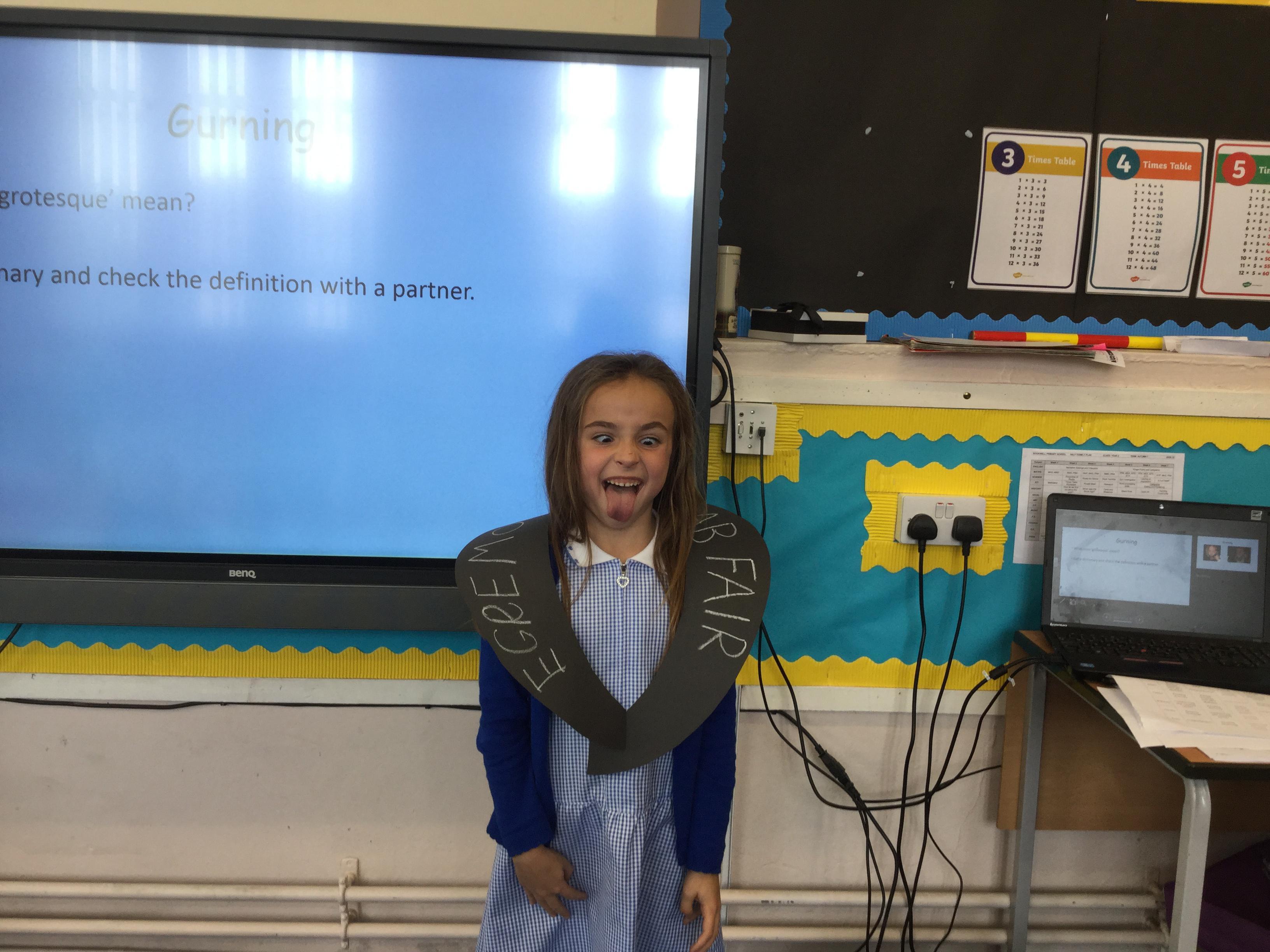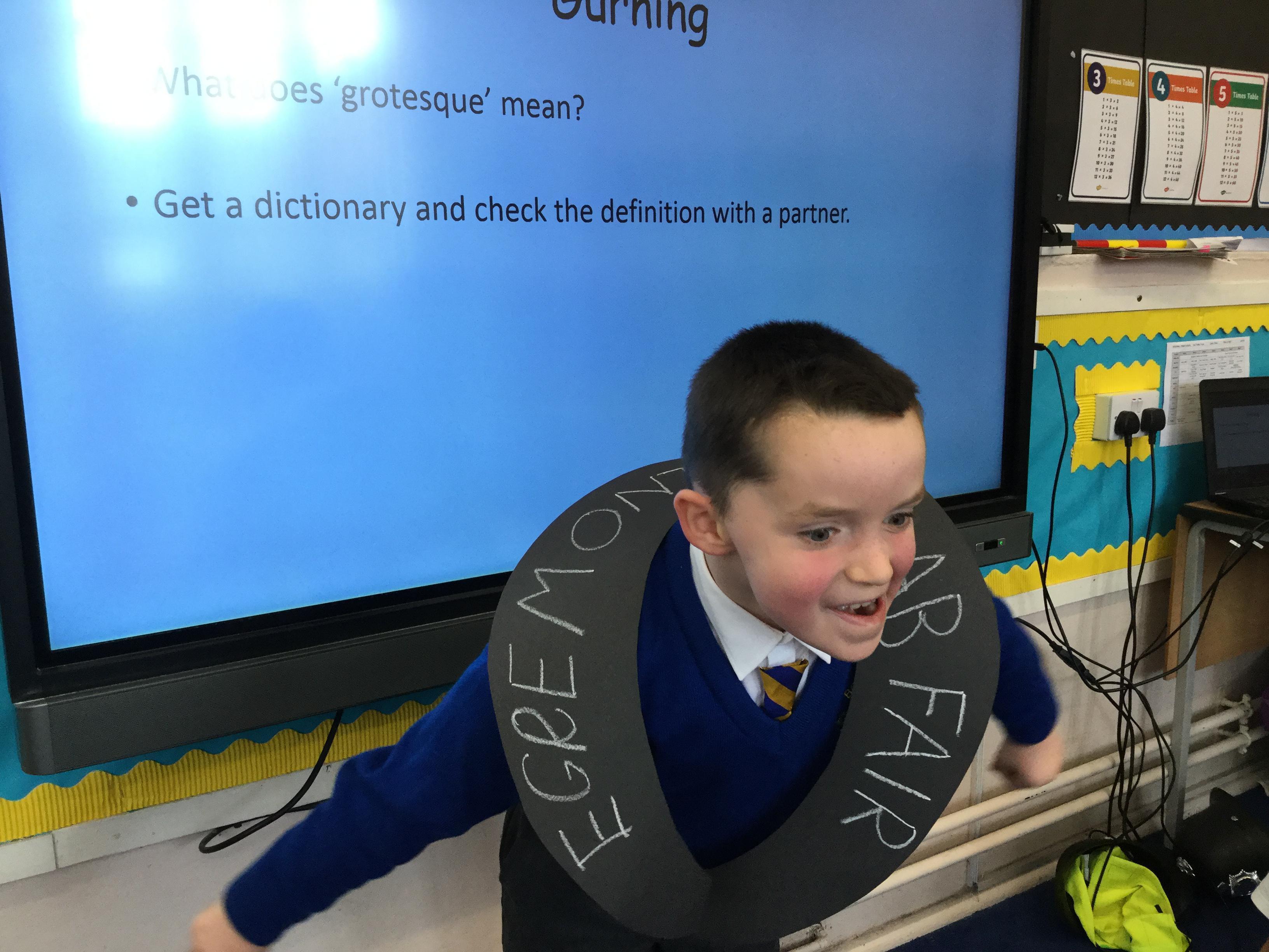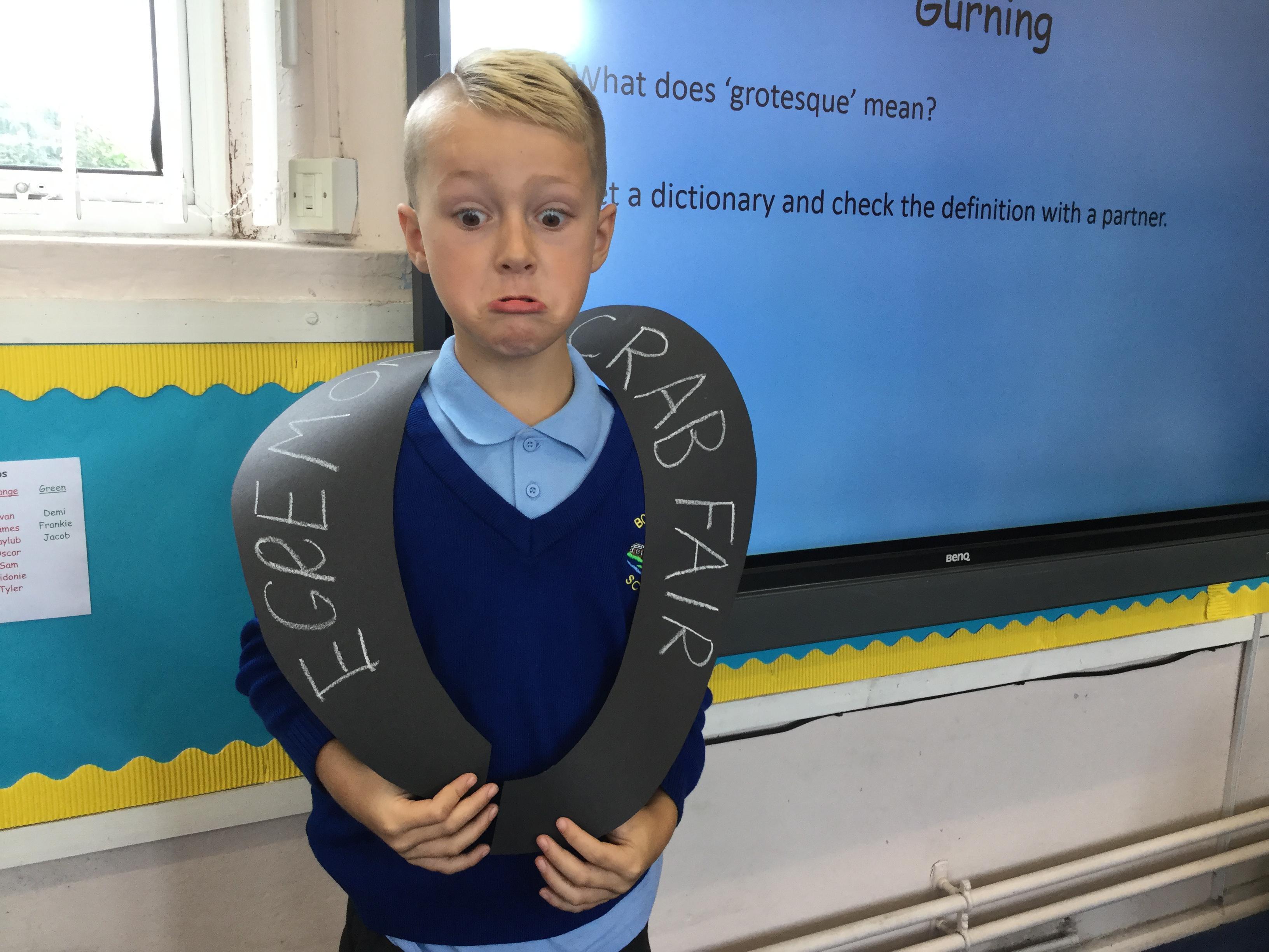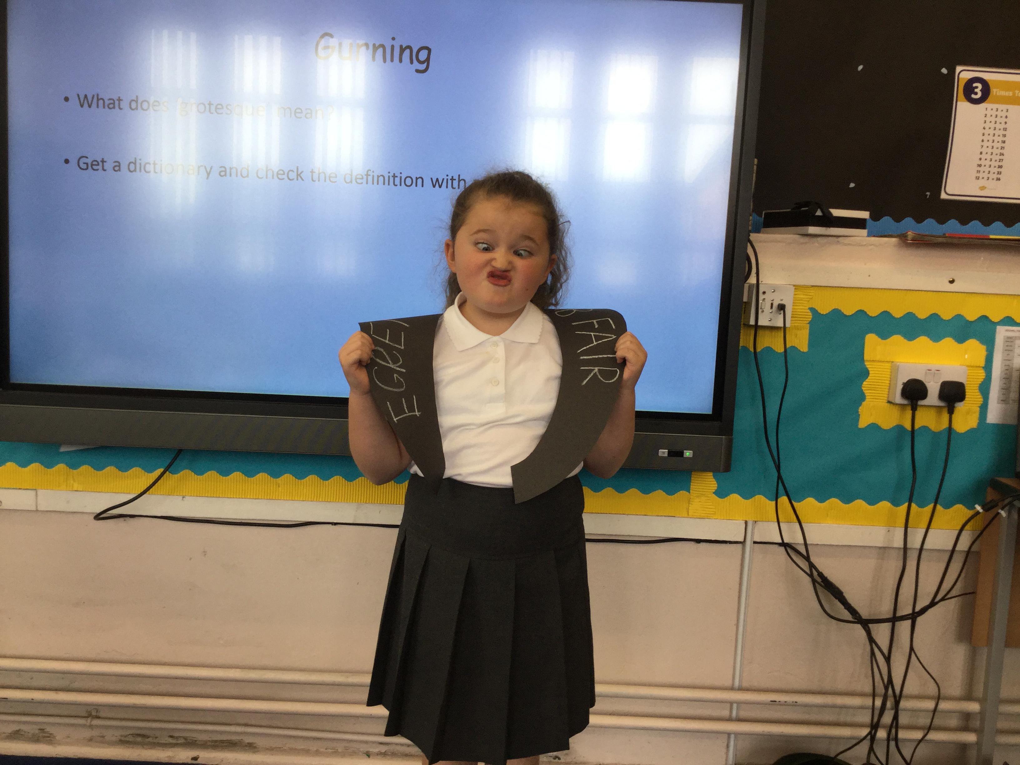 On Thursday, we spend the afternoon learning about Egremont Crab Fair. We heard about the history of the fair and how it's changed throughout the years. We couldn't believe it is 751 years old! We made our own braffins (that's a horse collar) and then had a go at gurning. We're very privileged in year 3 at Bookwell because we have the reigning children's gurning champion - Lexi, and Denni's mum is the reigning ladies' gurning champion. What do you think of our 'grotesque' faces?