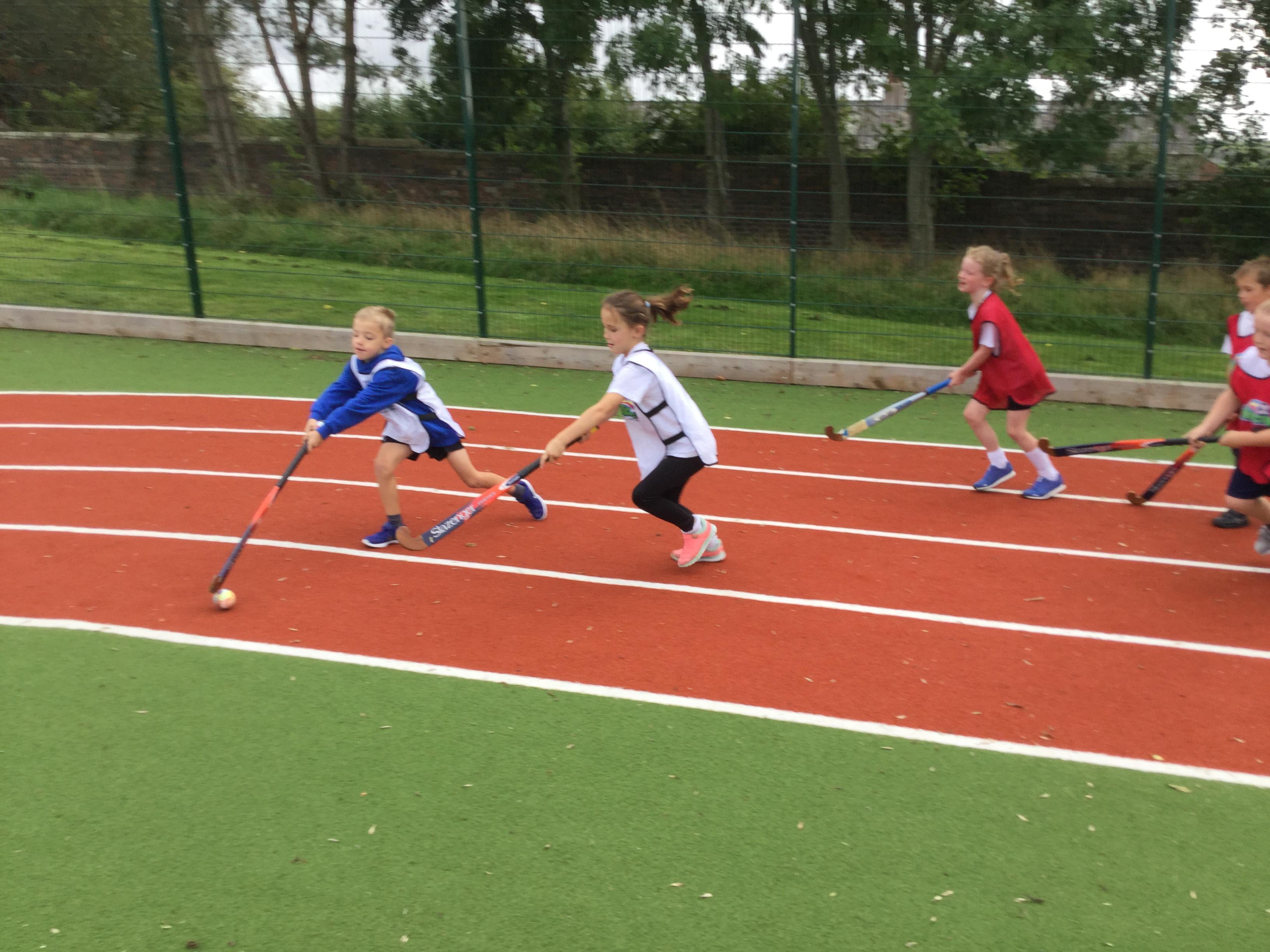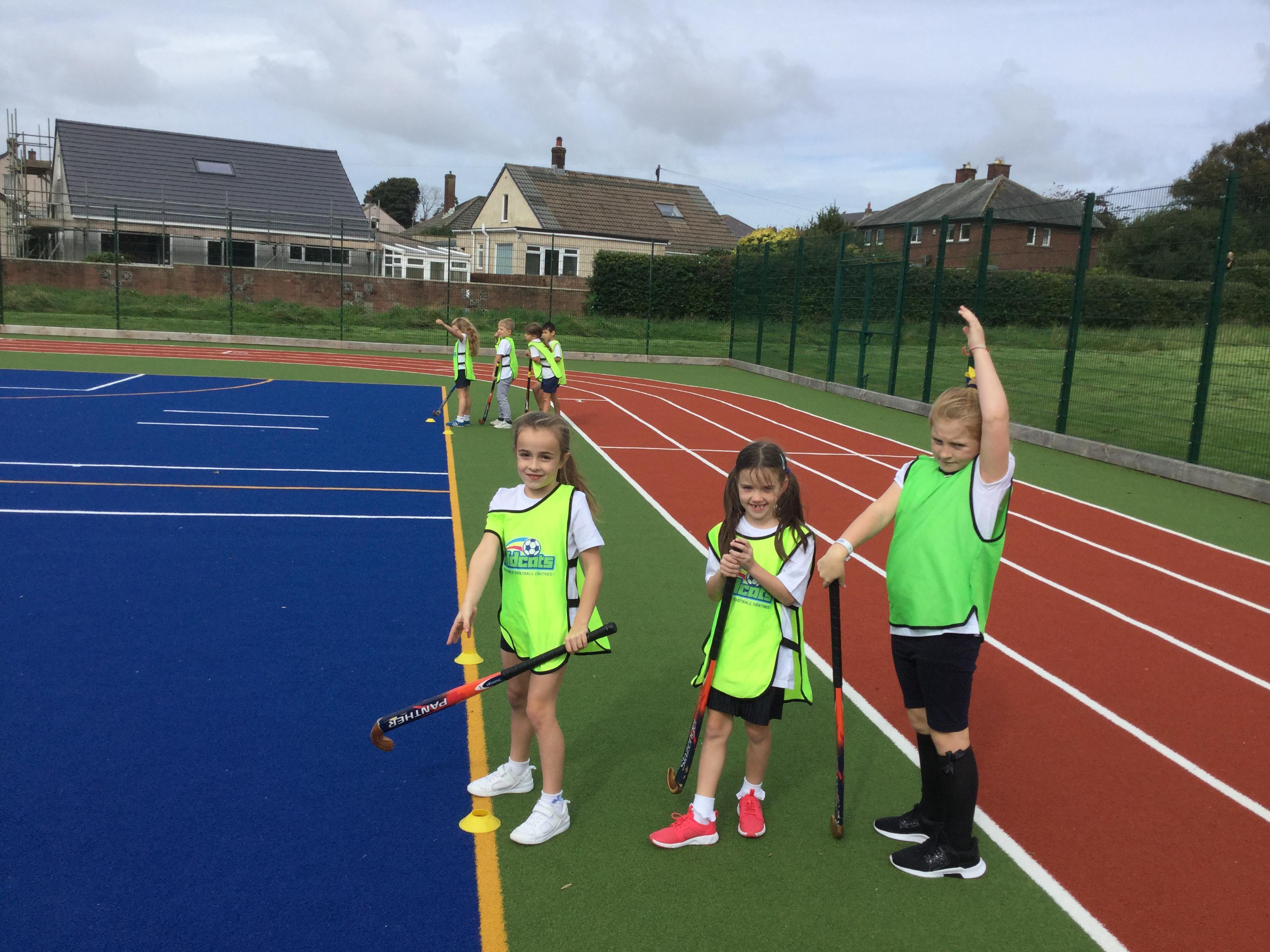 Hockey is our focus in P.E this half term. Andrew is coaching us on Tuesday mornings. We started off by learning some basic skills such as dribbling and passing. In a few weeks we'll be hockey superstars.