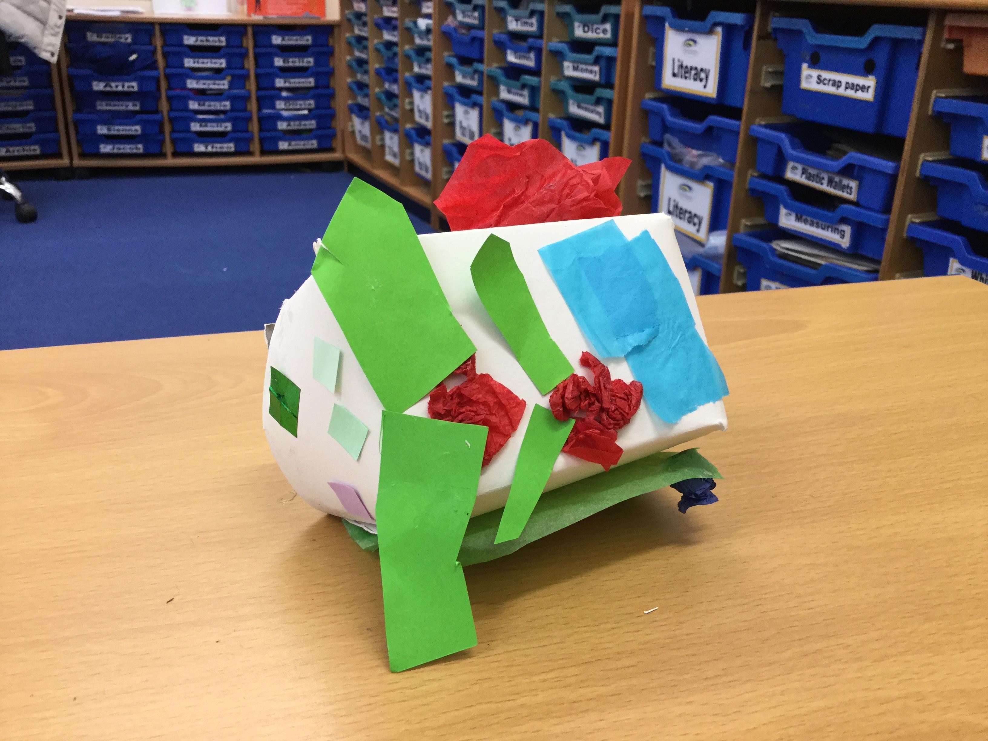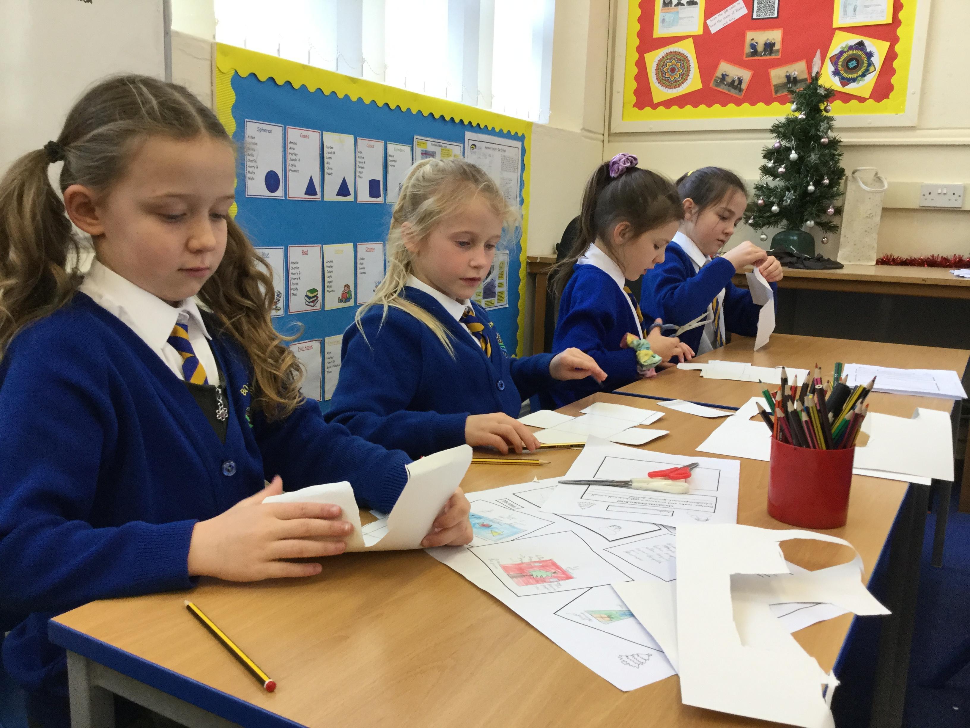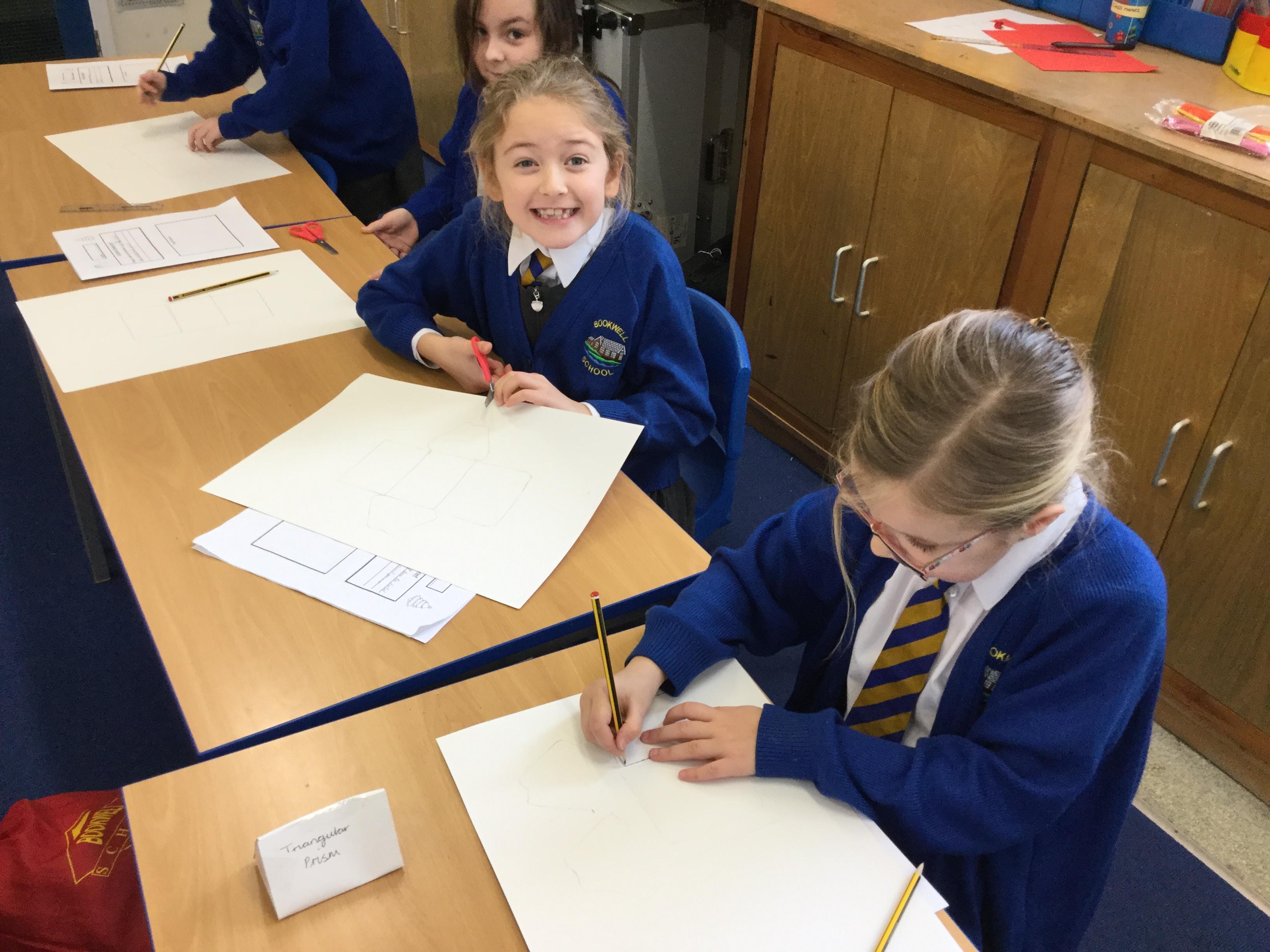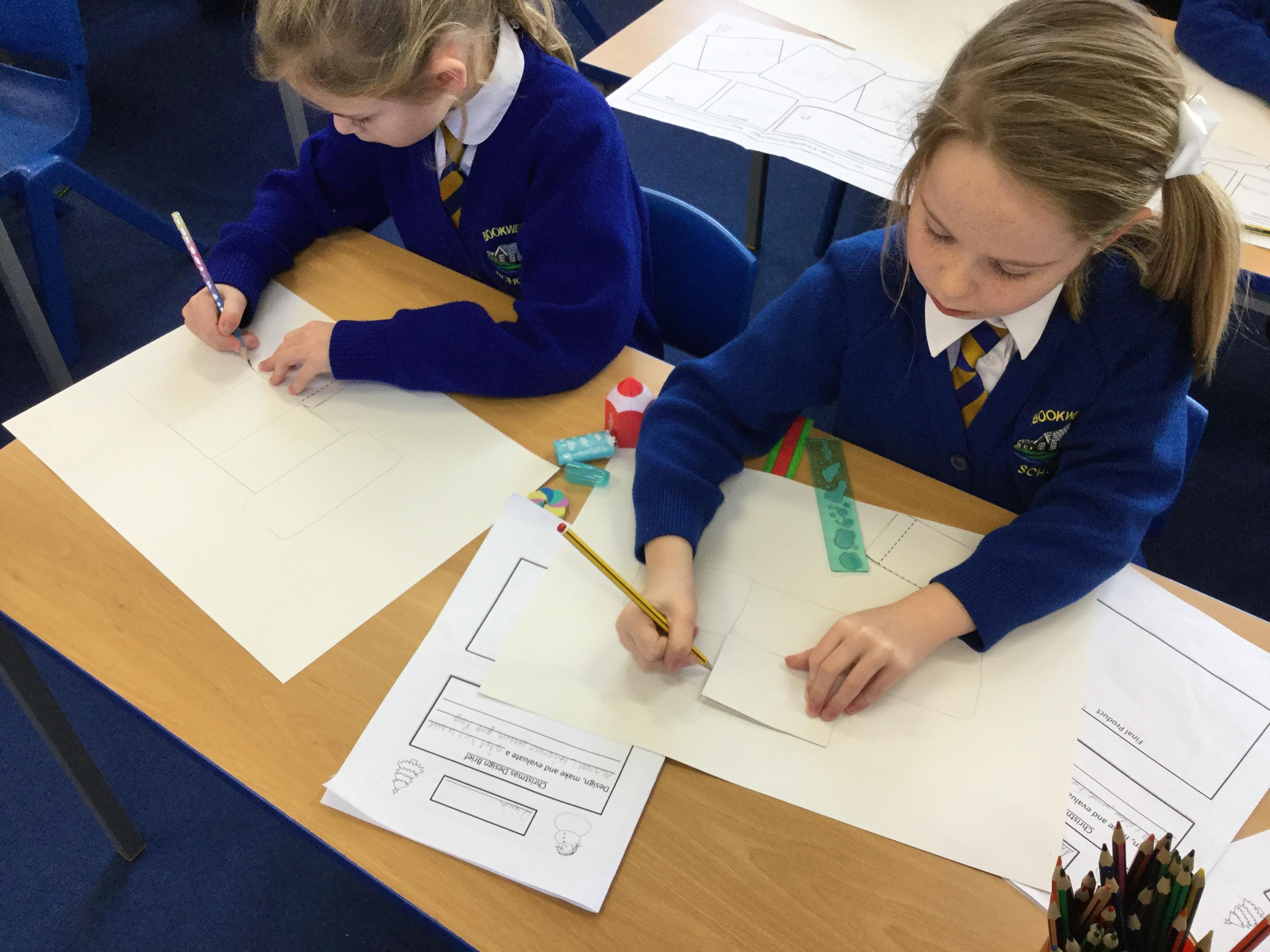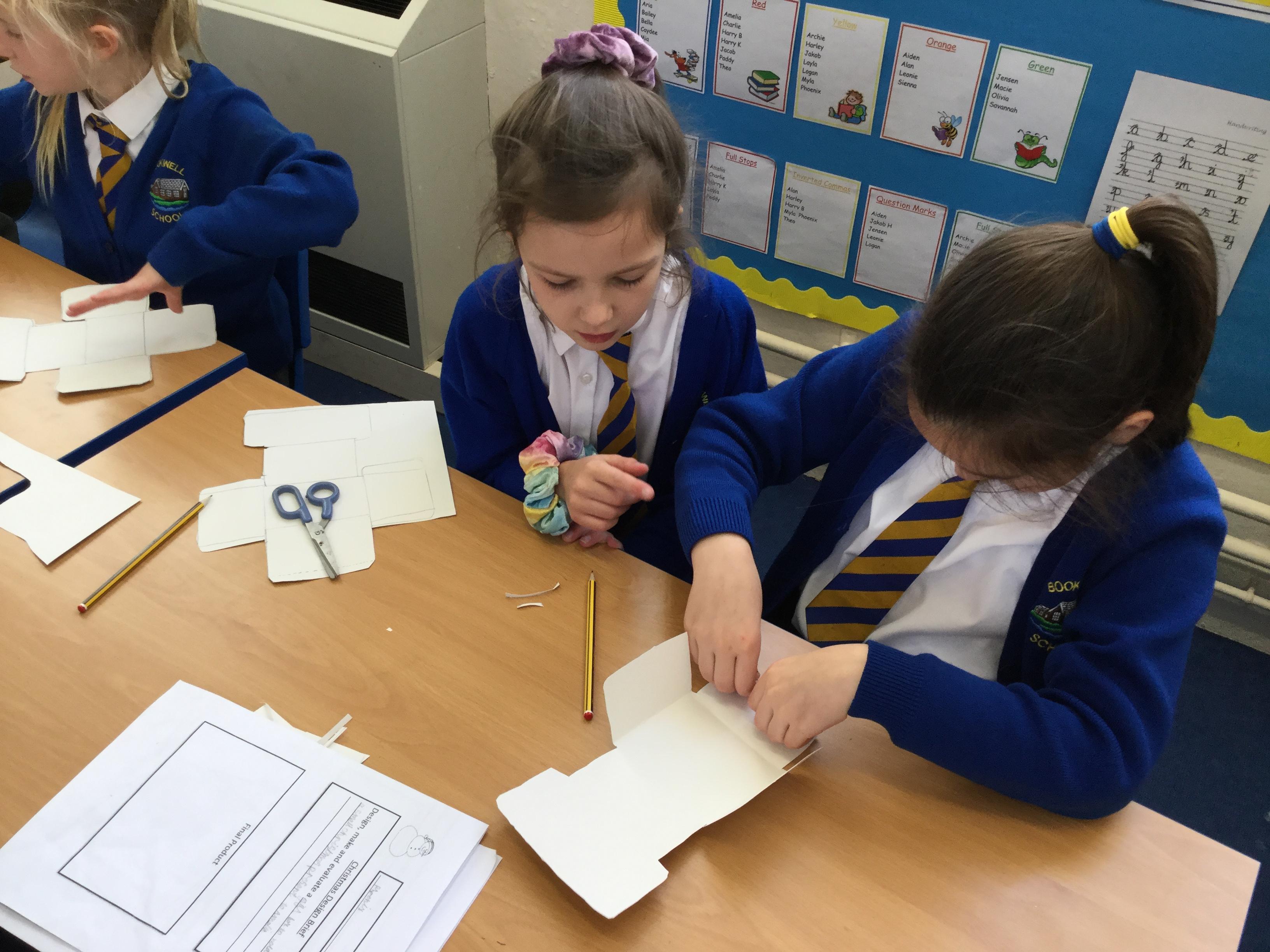 Christmas gift boxes were what we were producing today. Our design brief was to plan, make and evaluate a box for a small Christmas gift. We explored and planned our gift boxes the previous afternoon and had our ideas ready to make this morning. Firstly, we had to create our own nets using shapes which was quite difficult. Then we had to decorate our boxes from our plan. We used tissue paper, sequins, pens, pencils and card.