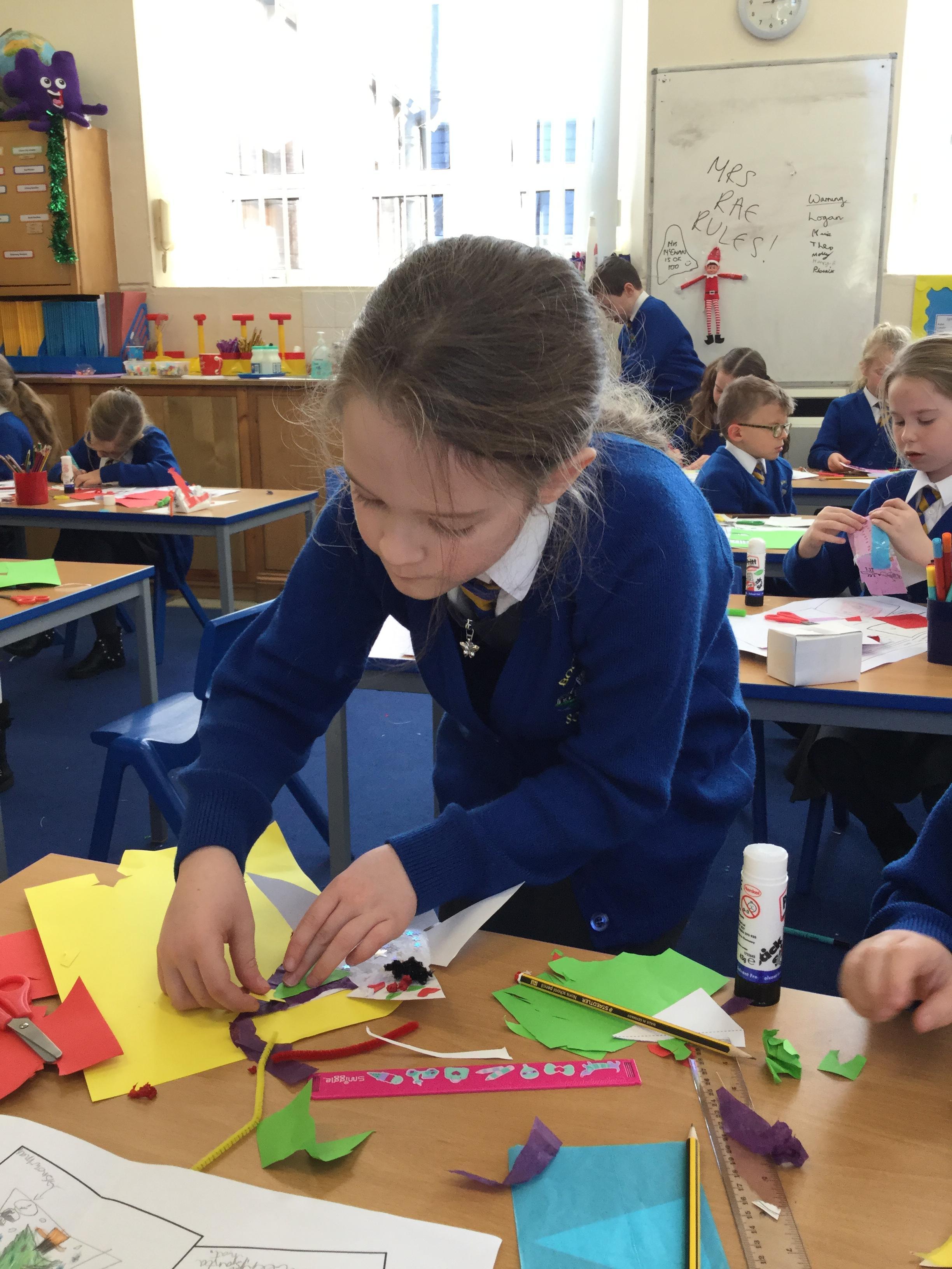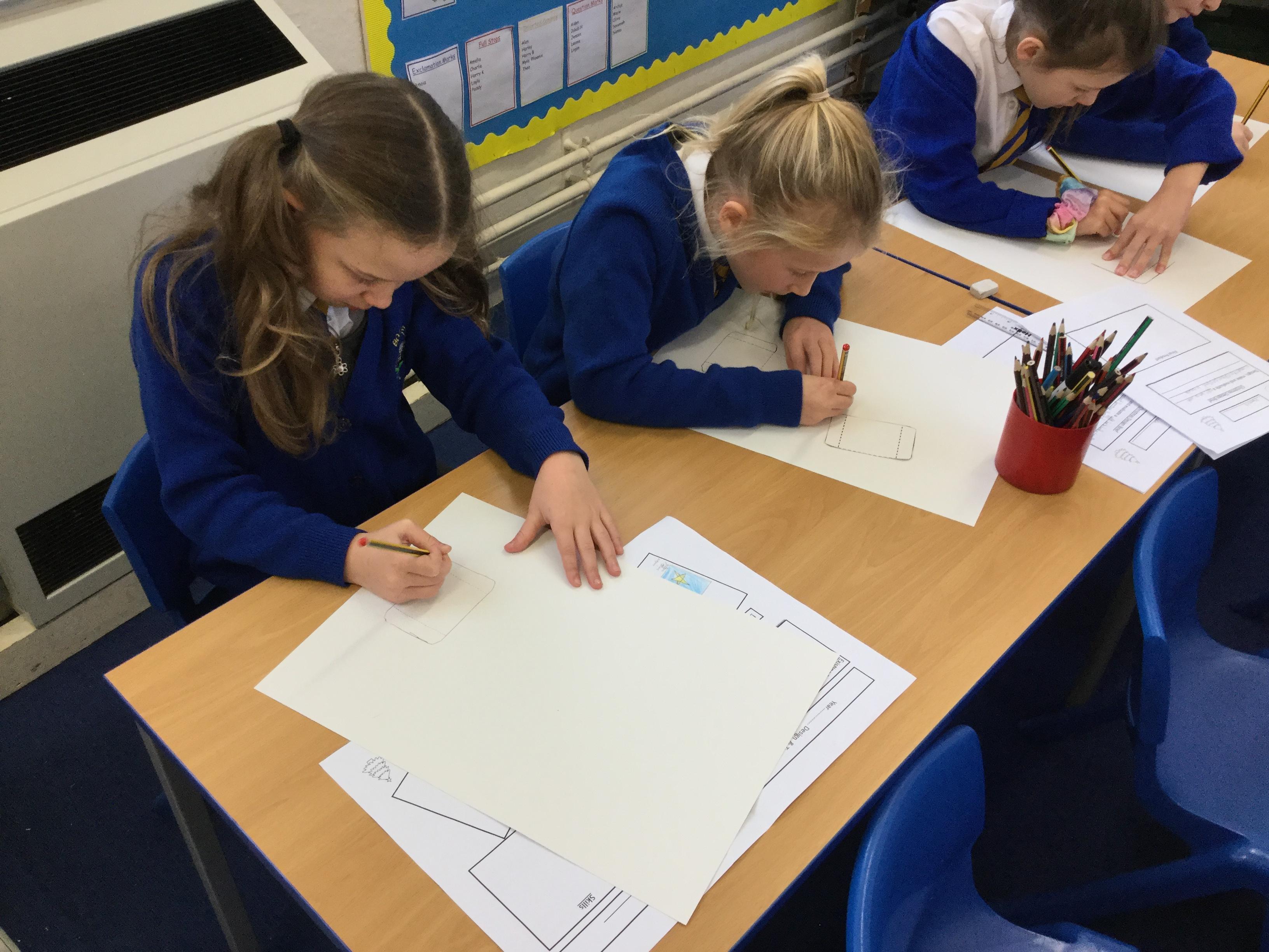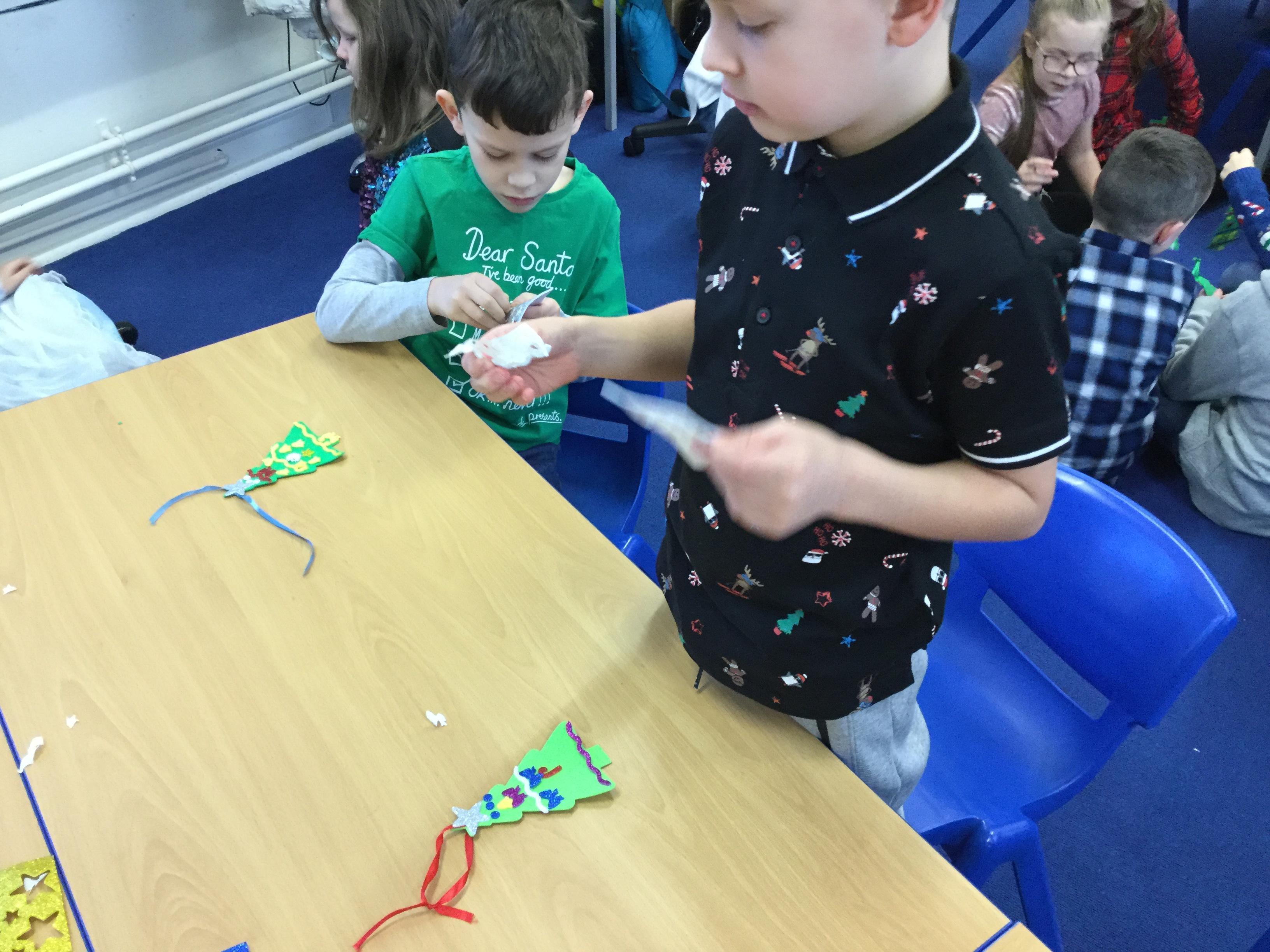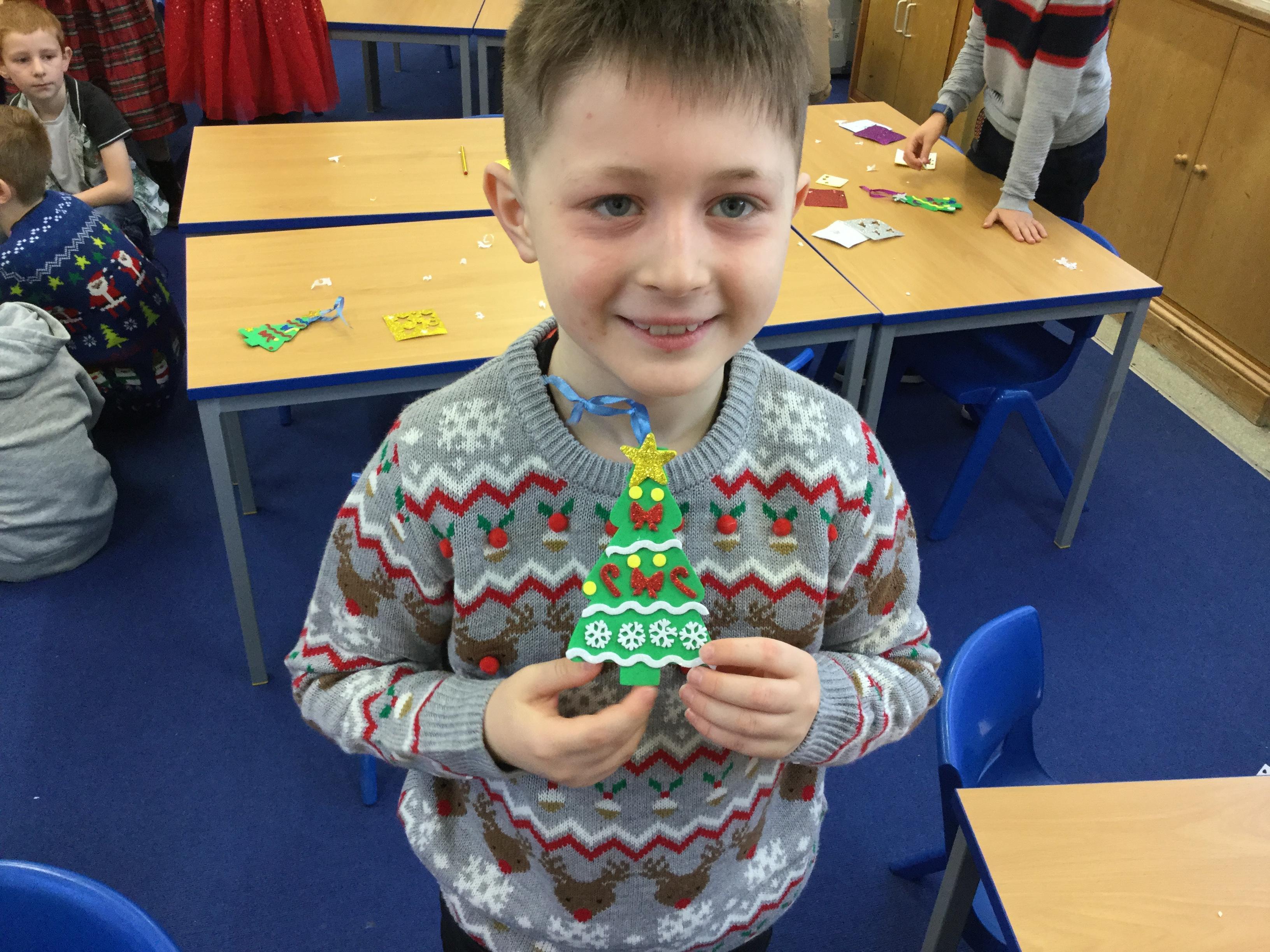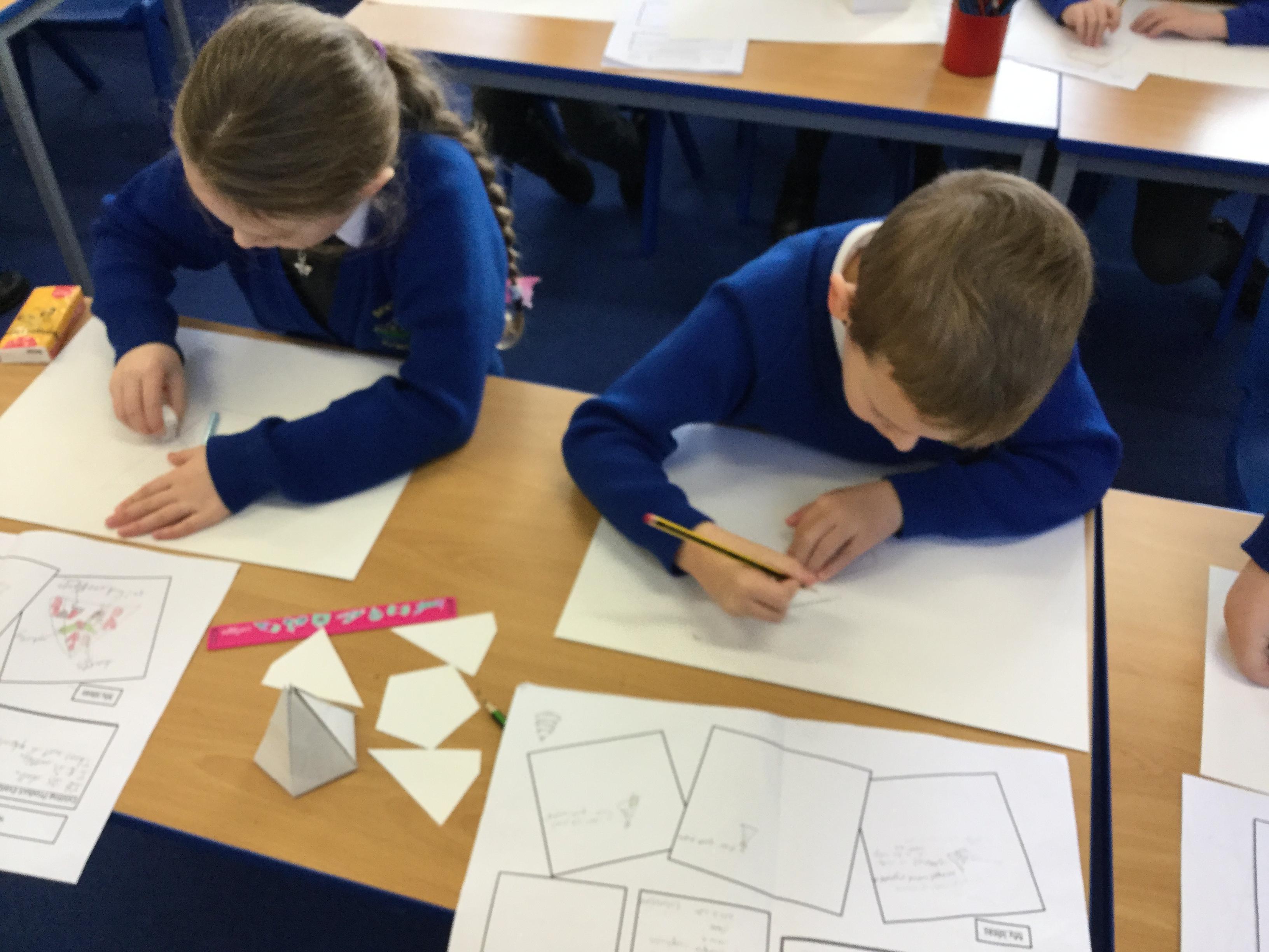 Christmas gift boxes were what we were producing today. Our design brief was to plan, make and evaluate a box for a small Christmas gift. We explored and planned our gift boxes the previous afternoon and had our ideas ready to make this morning. Firstly, we had to create our own nets using shapes which was quite difficult. Then we had to decorate our boxes from our plan. We used tissue paper, sequins, pens, pencils and card.