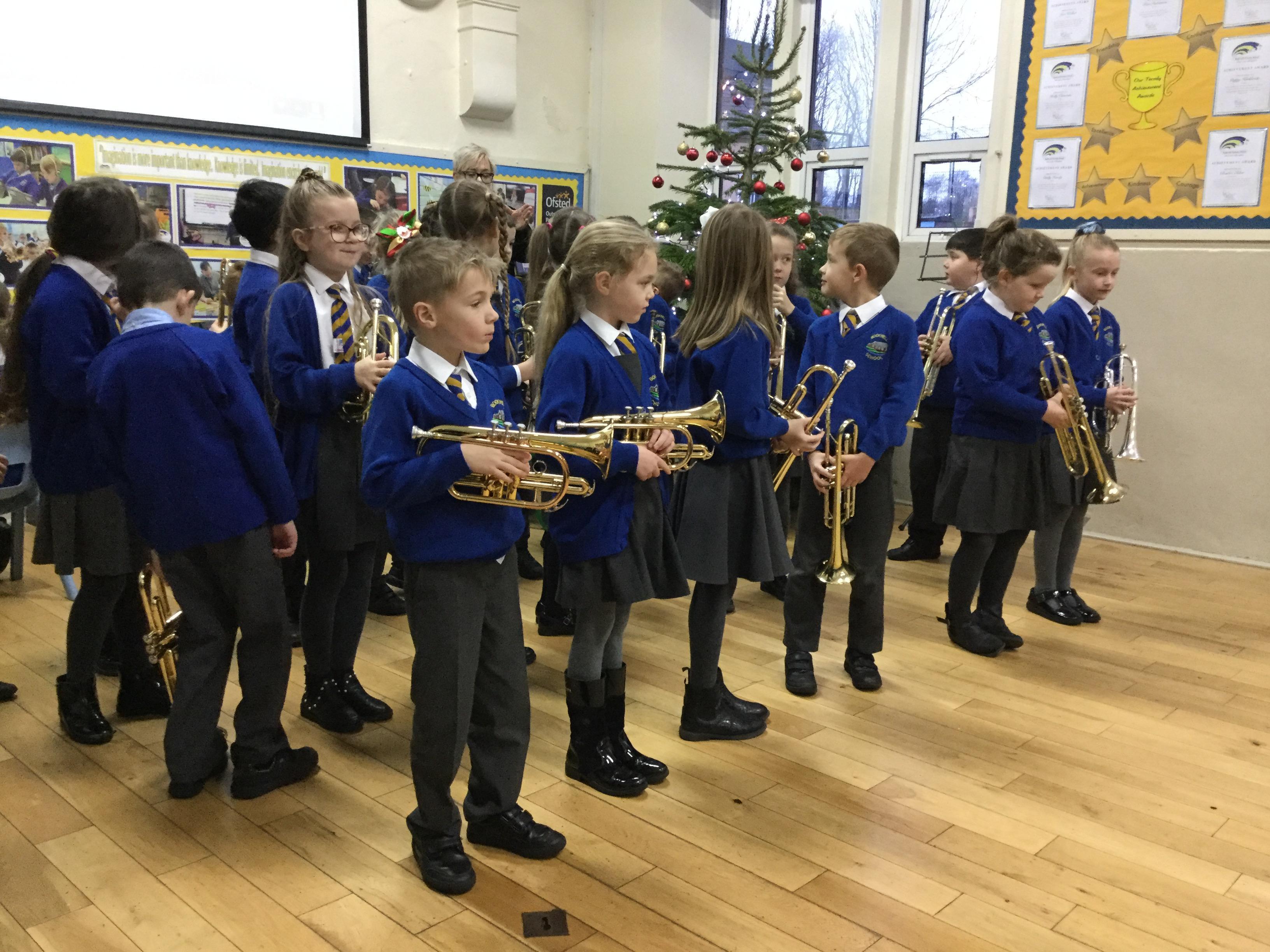 We got the chance to showcase our fantastic musical skills to KS2 and our parents by performing some songs in the hall. Jingle Bells was the song most people enjoyed the most. We showed how we could read music notes, produce a sound from our instruments and keep in time. We really were super!