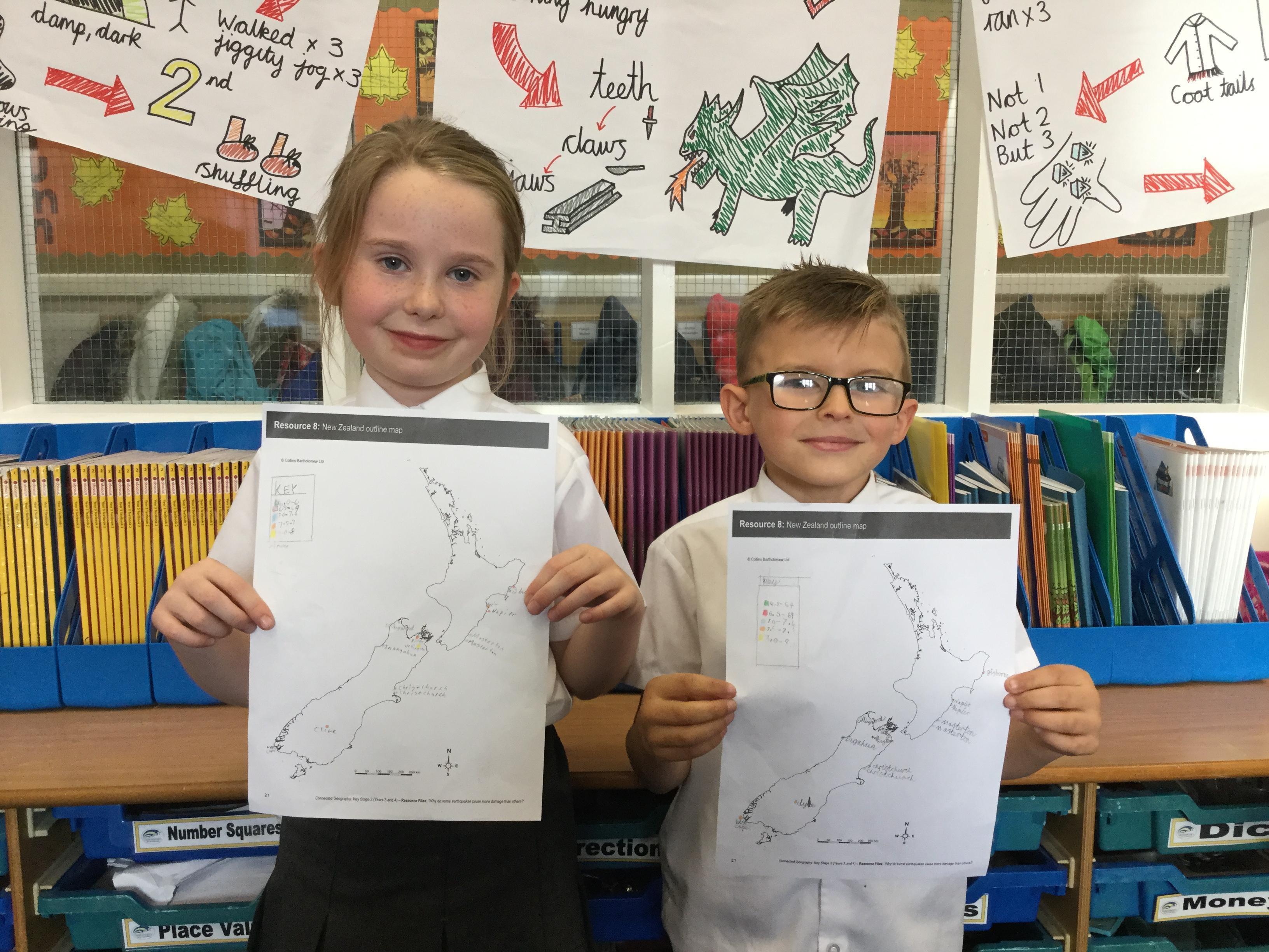In Geography, we are studying earthquakes. We have focused on earthquakes in New Zealand so far. On Tuesday, we put our map skills to good use and, in pairs, located where all the earthquakes in New Zealand have taken place in the last 200 years that were over 6 on the Richter scale. We then created a colour coded key that identified what the magnitude of the earthquake was and used this to colour in the epicentre of the earthquake. Working with others was a big part of this task and Amaia and Theo got a dojo point for super partner work. Well done!