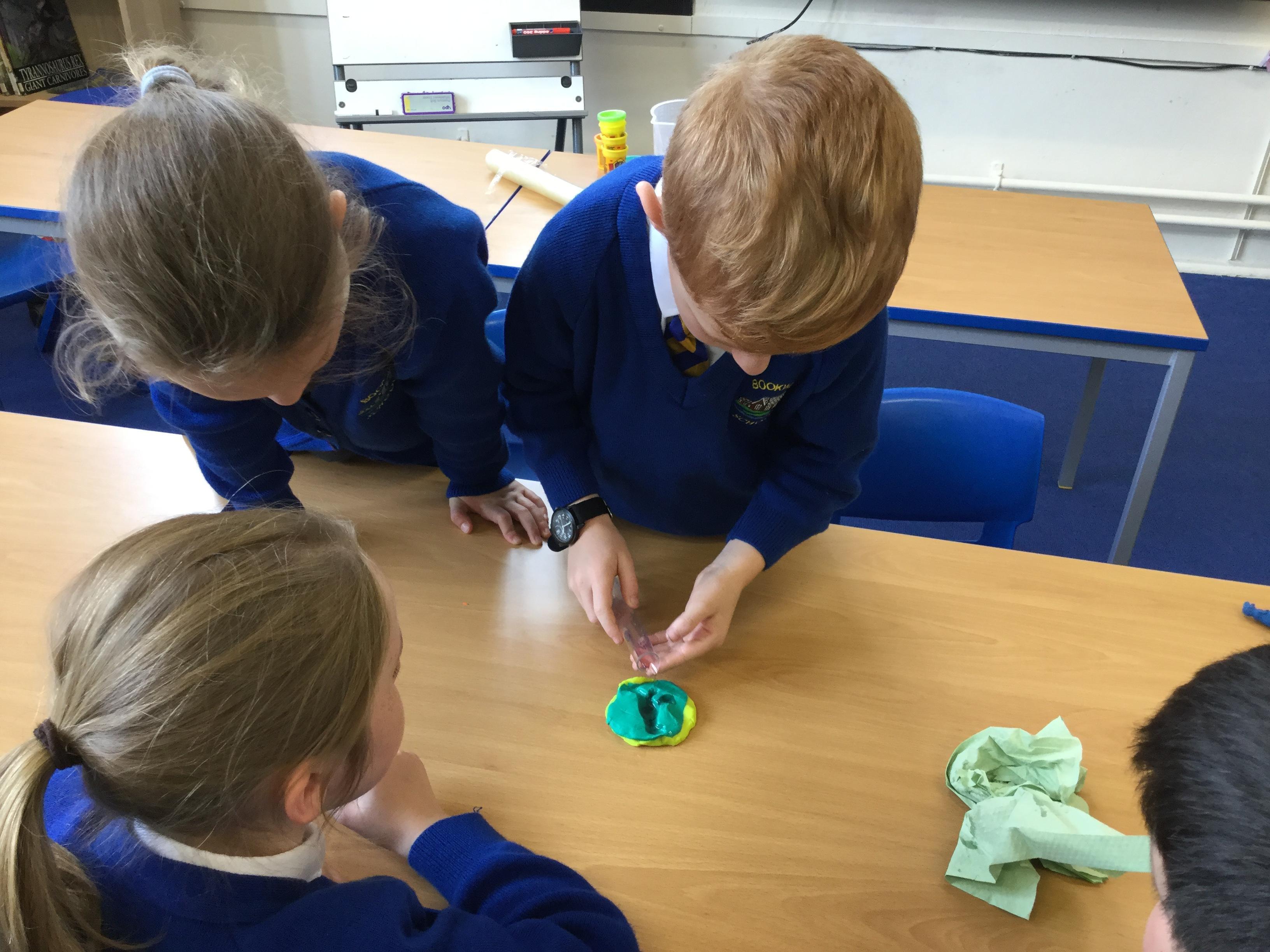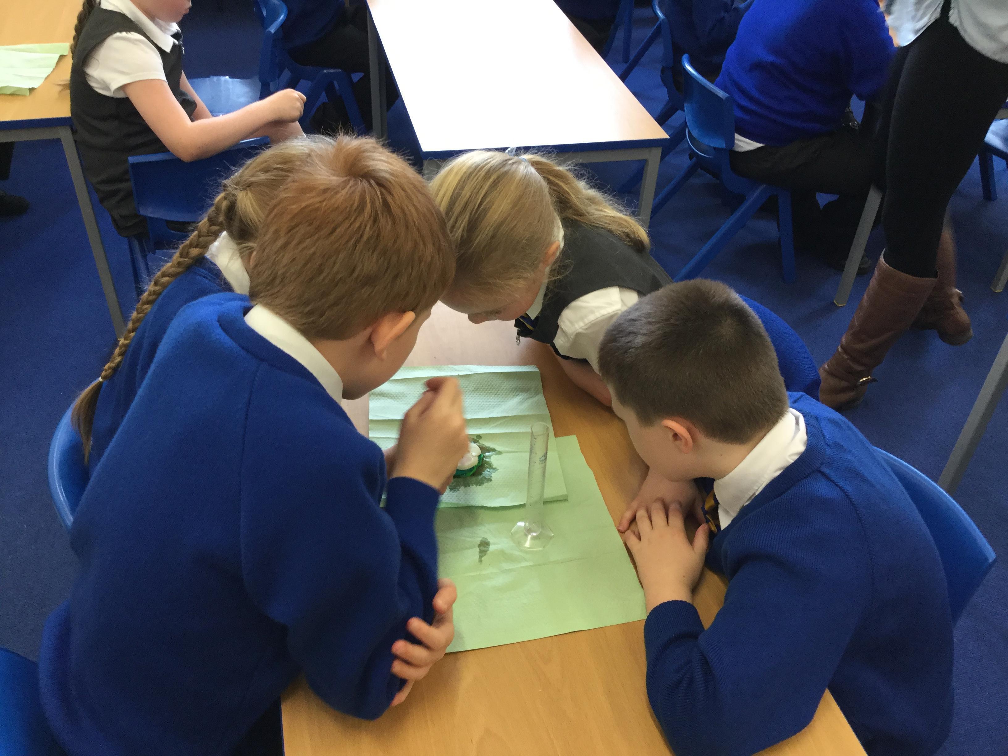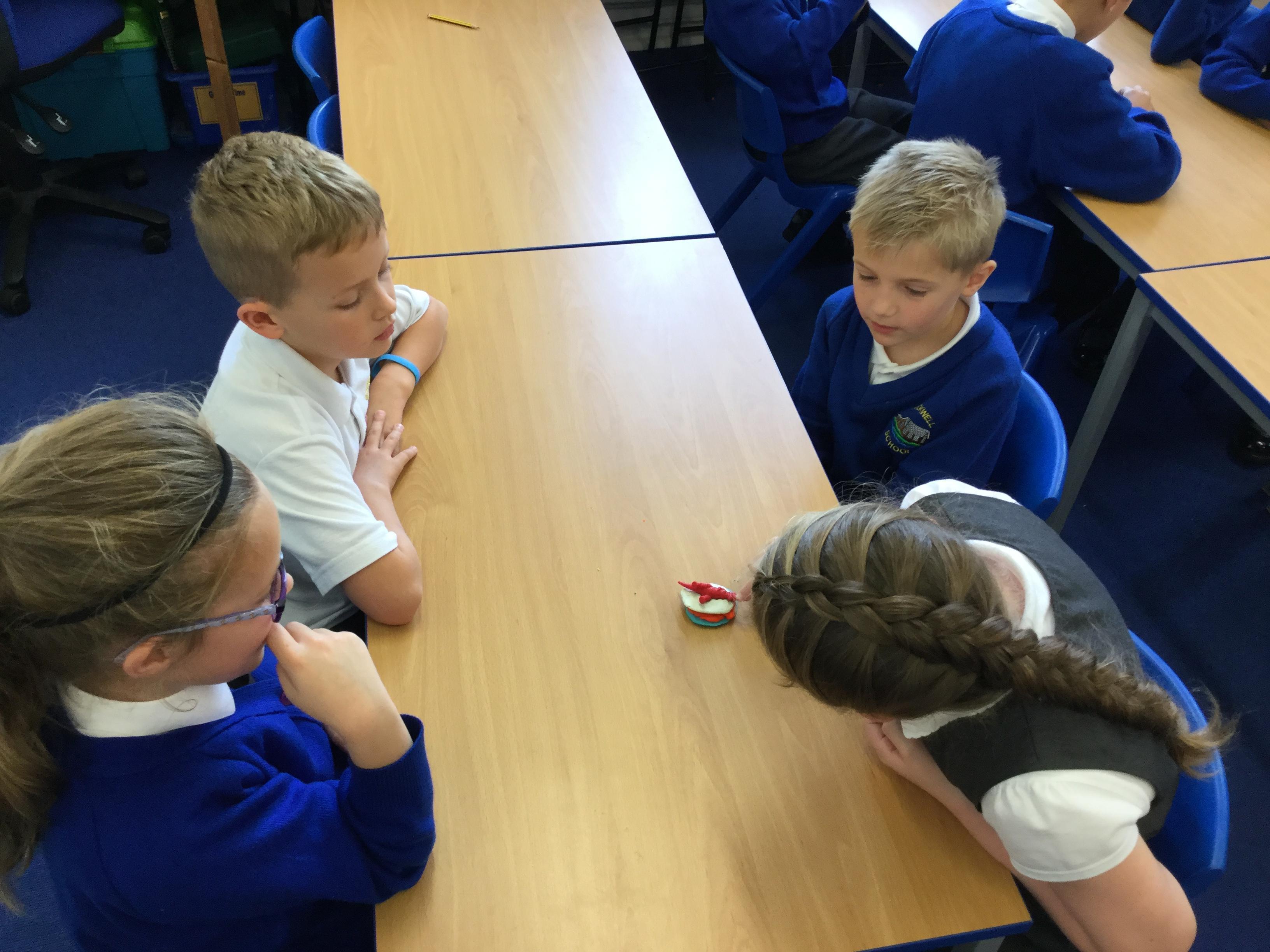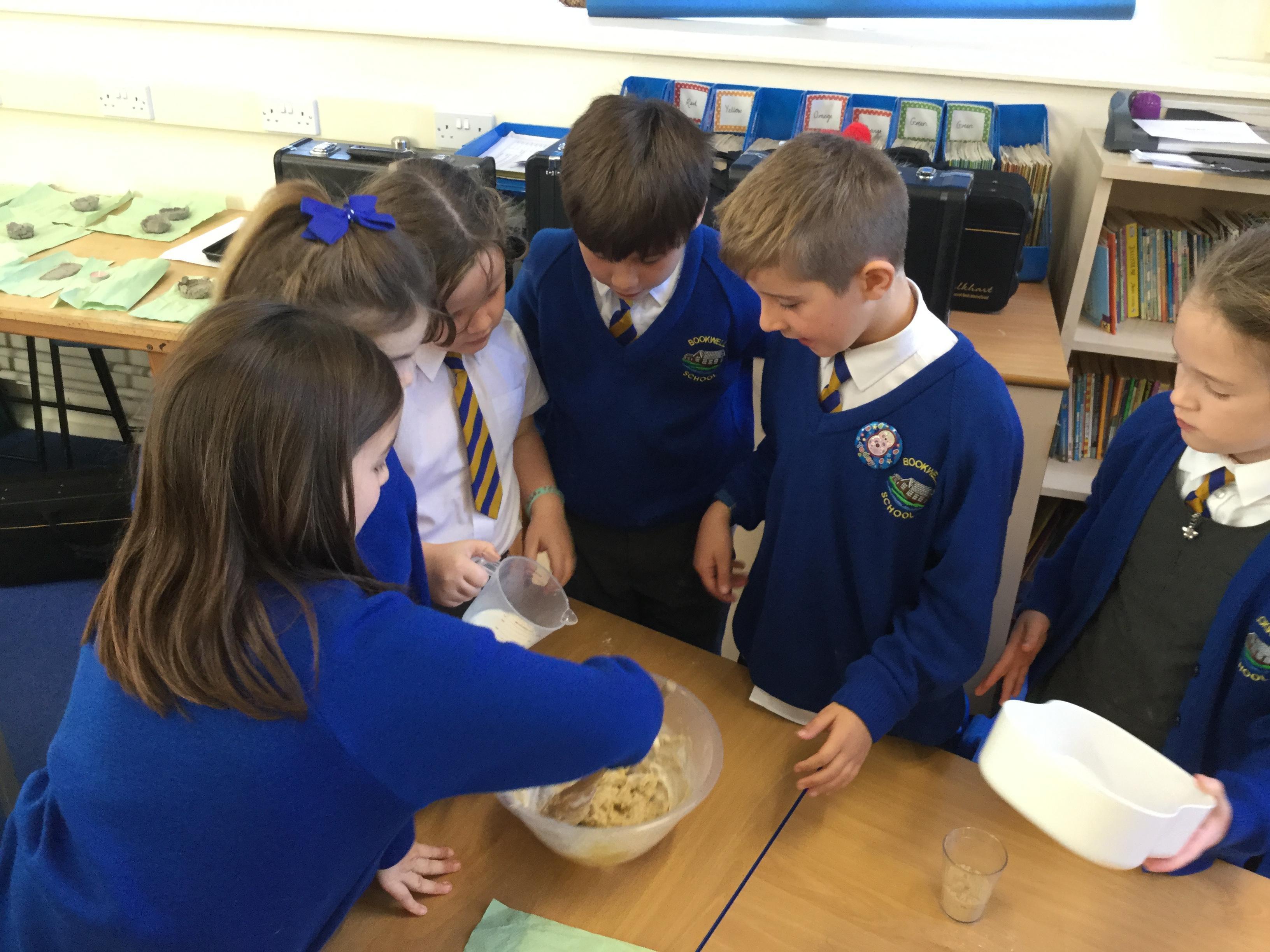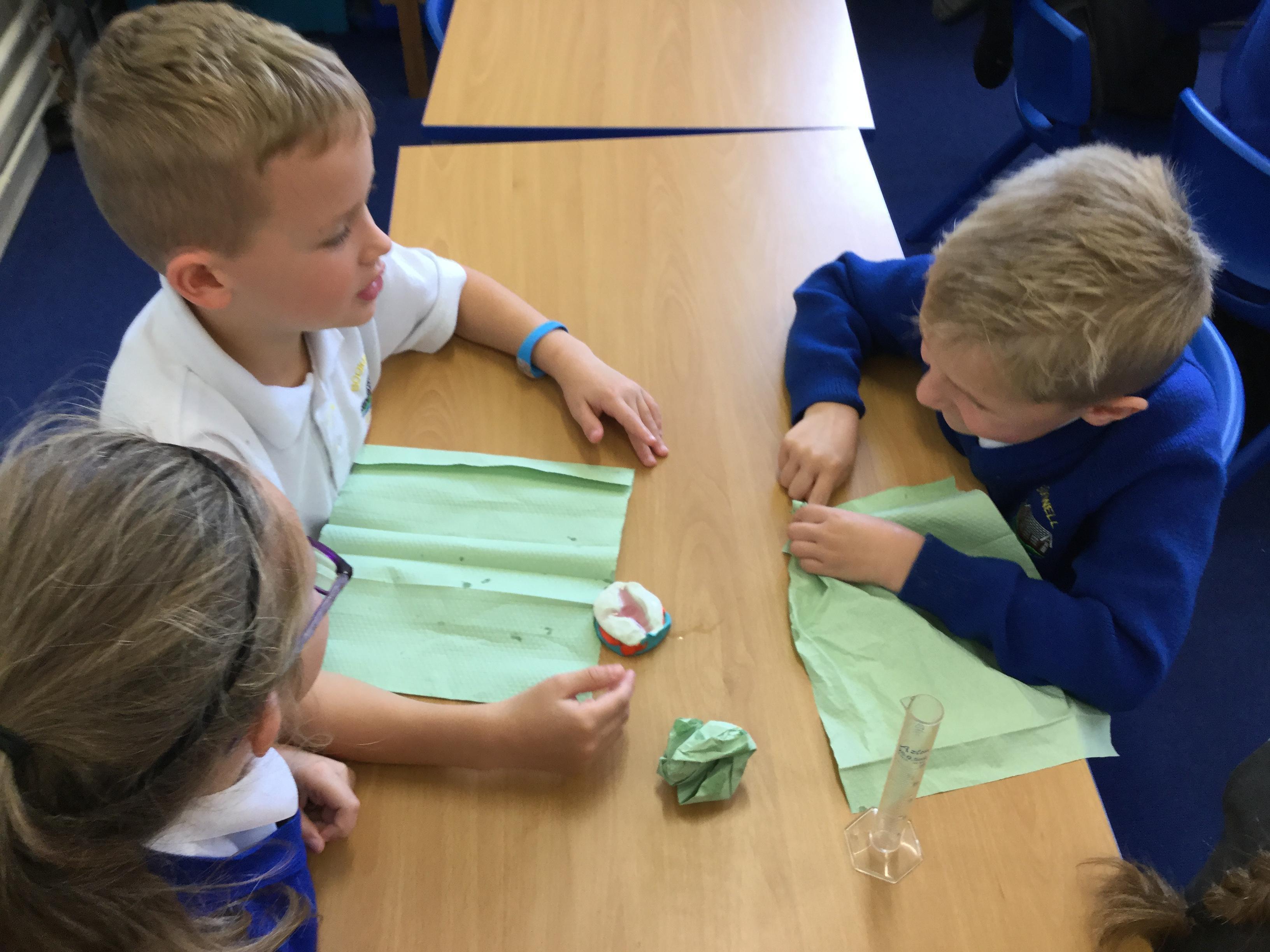 One of the things our class wanted to learn about during our Stone Age topic was what people in the Stone Age ate. Luckily, Mrs McEwan managed to locate some Stone Age poo and when we came in from break, there was lots all over our desks. We were astounded and some of us felt slightly unwell. In groups, we got some tweezers and magnifying glasses and began to investigate what was in the waste. We discovered corn, leaves, barley, fish bones and fruit. It smelled of meat so we assumed they must have ate some of that too. Our hands were filthy by the end!