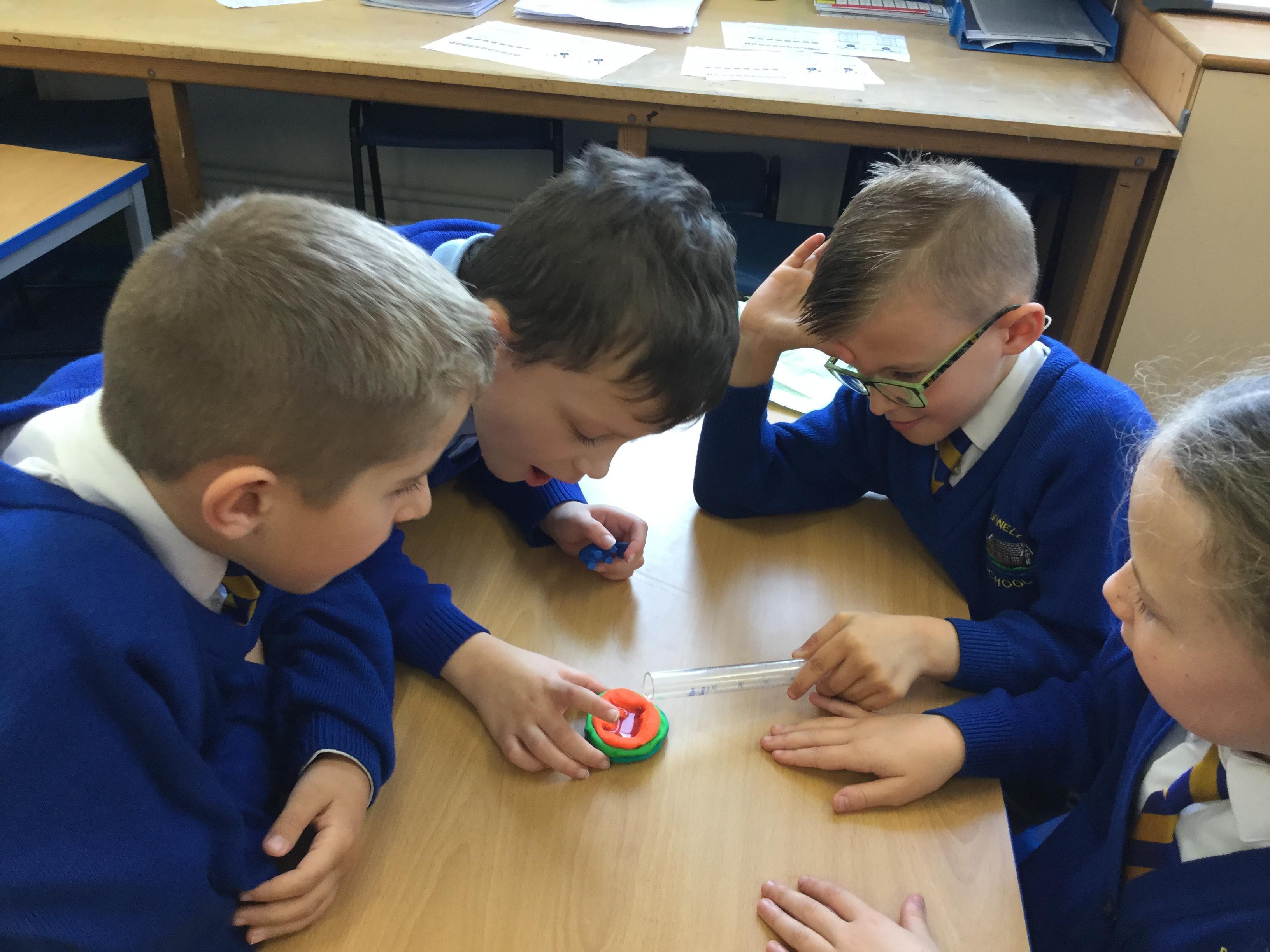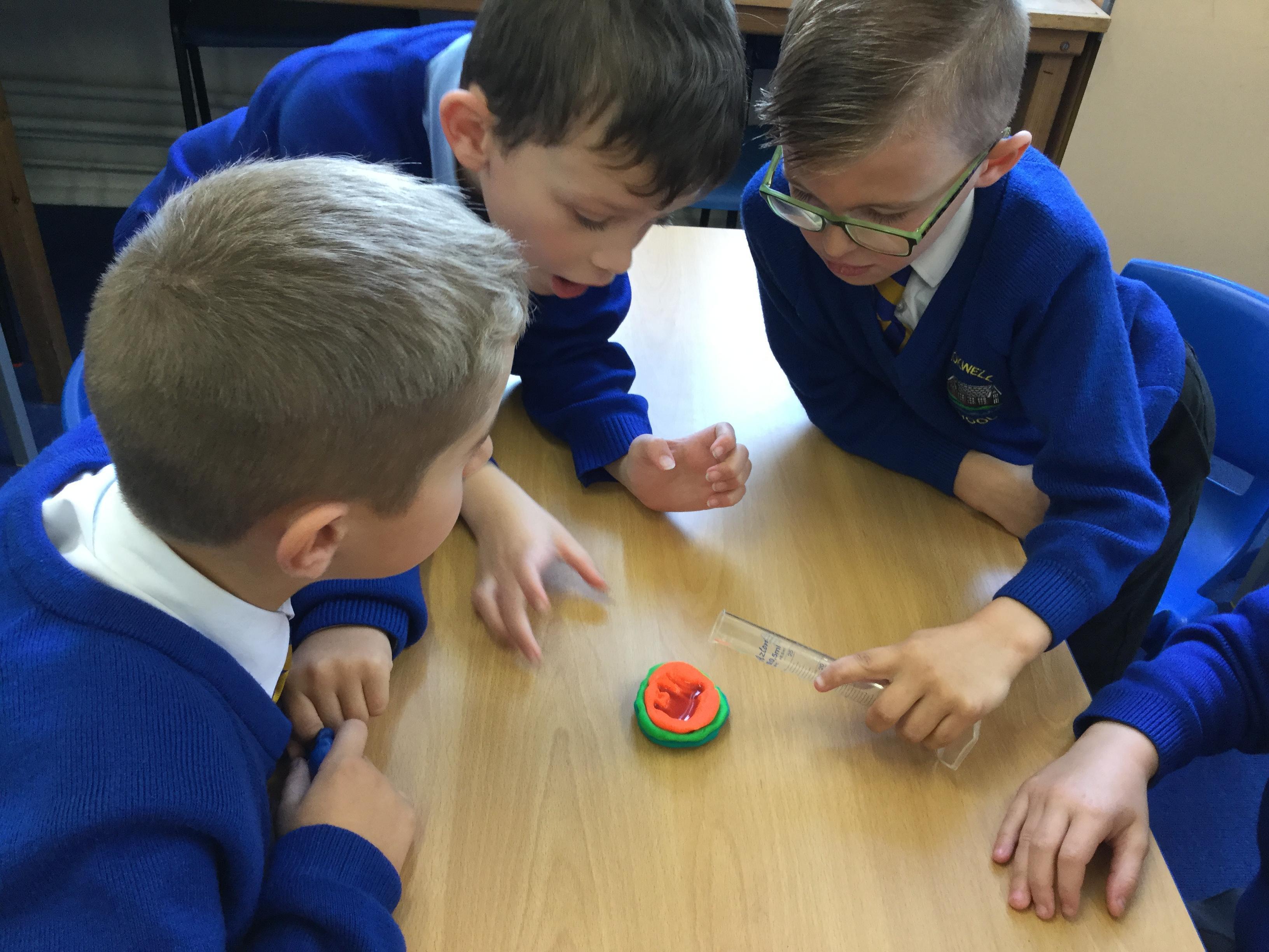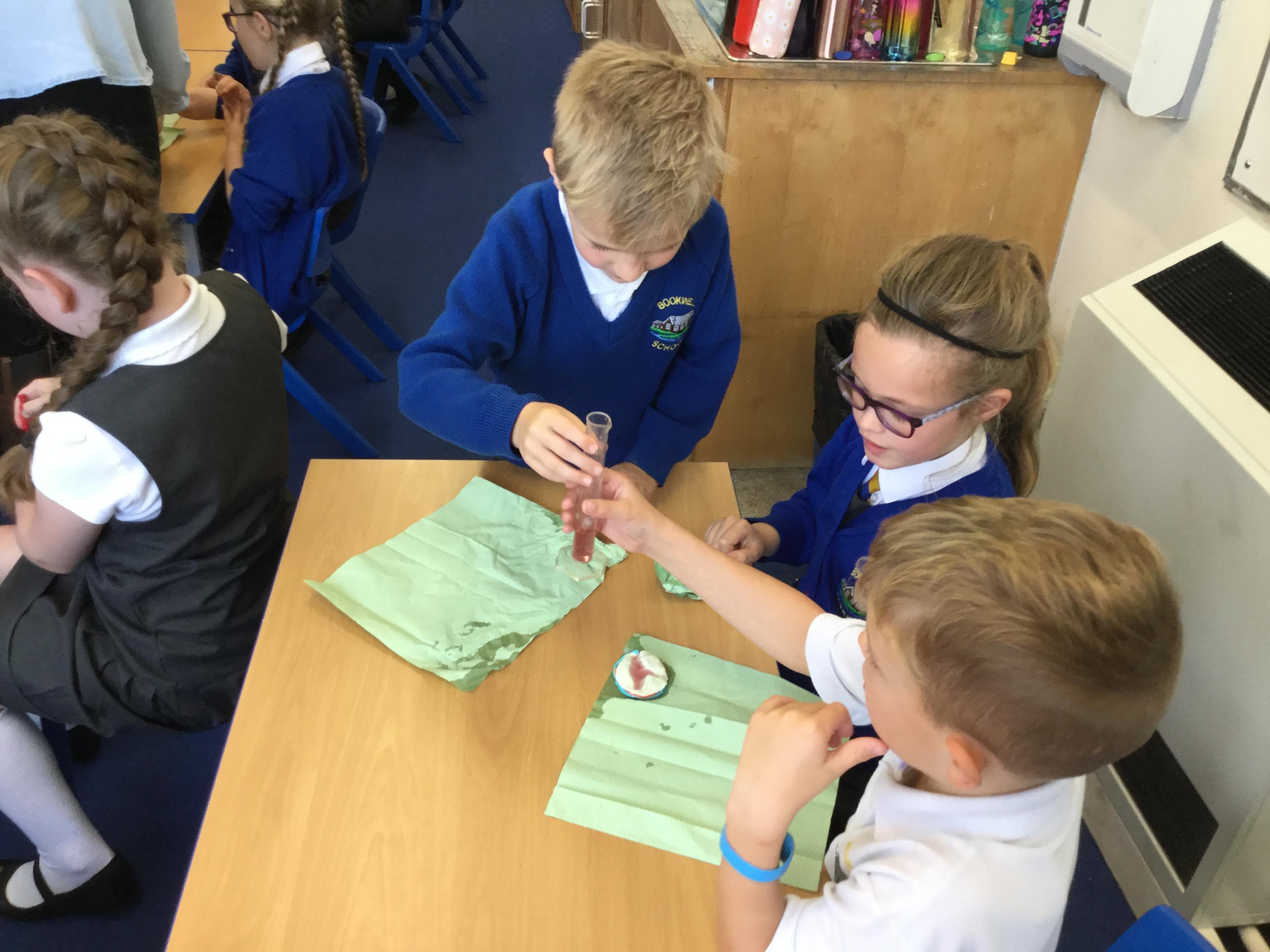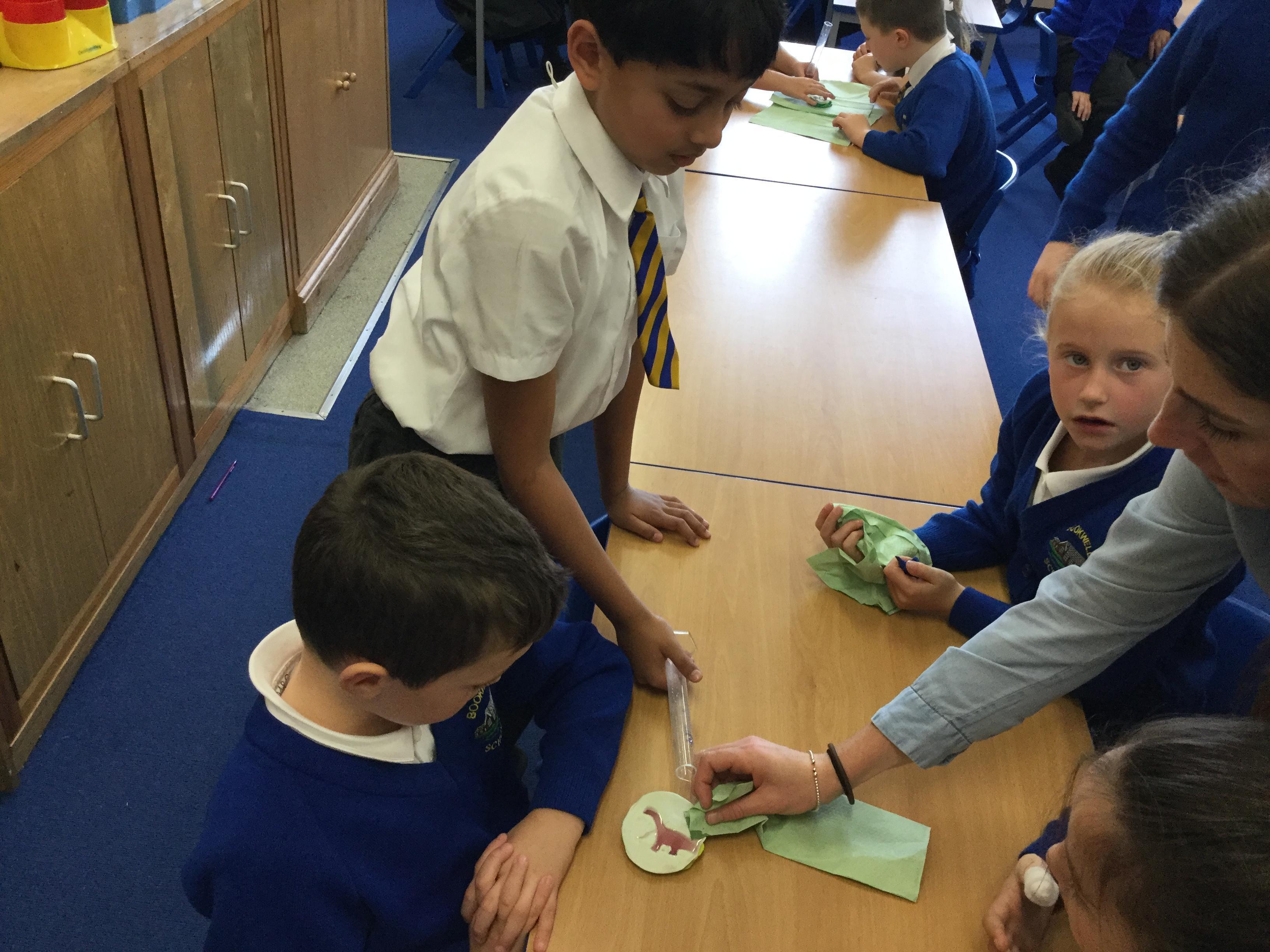 One of the things our class wanted to learn about during our Stone Age topic was what people in the Stone Age ate. Luckily, Mrs McEwan managed to locate some Stone Age poo and when we came in from break, there was lots all over our desks. We were astounded and some of us felt slightly unwell. In groups, we got some tweezers and magnifying glasses and began to investigate what was in the waste. We discovered corn, leaves, barley, fish bones and fruit. It smelled of meat so we assumed they must have ate some of that too. Our hands were filthy by the end!