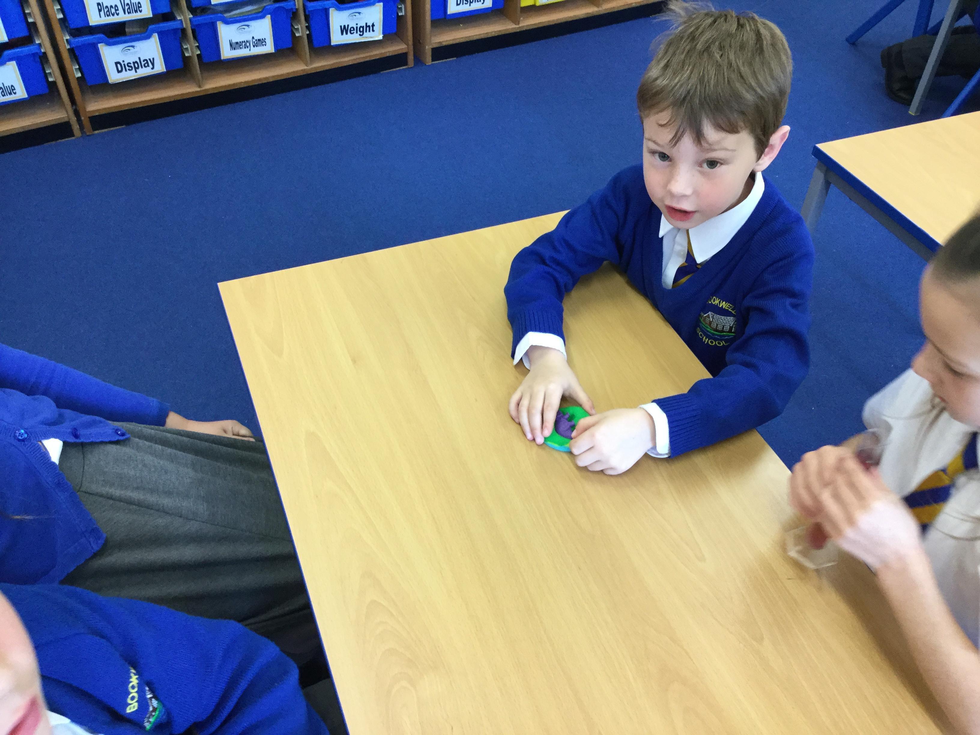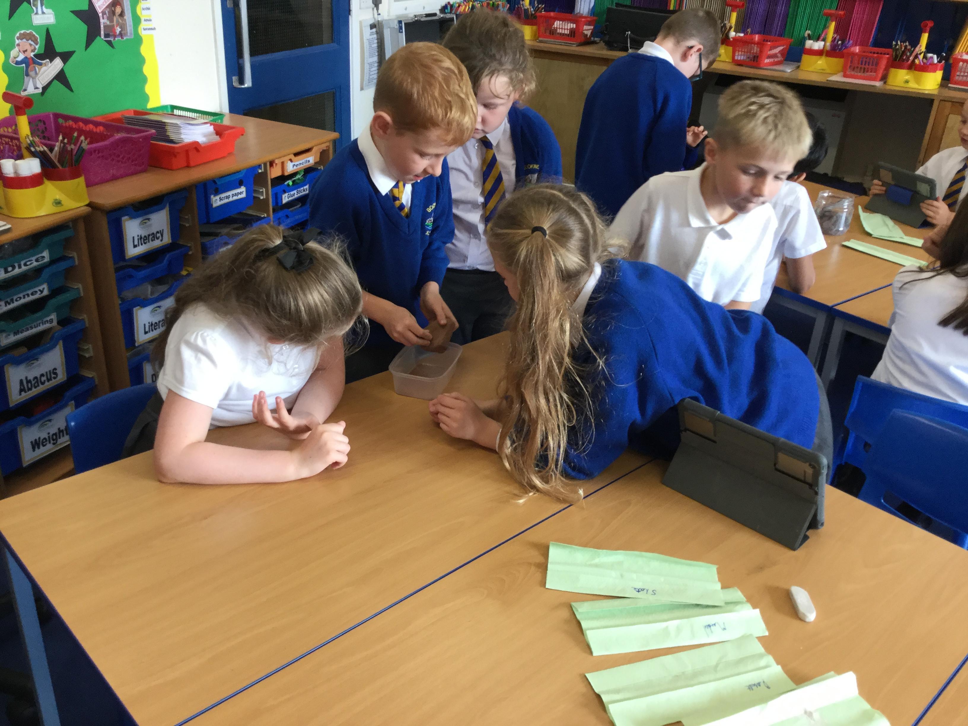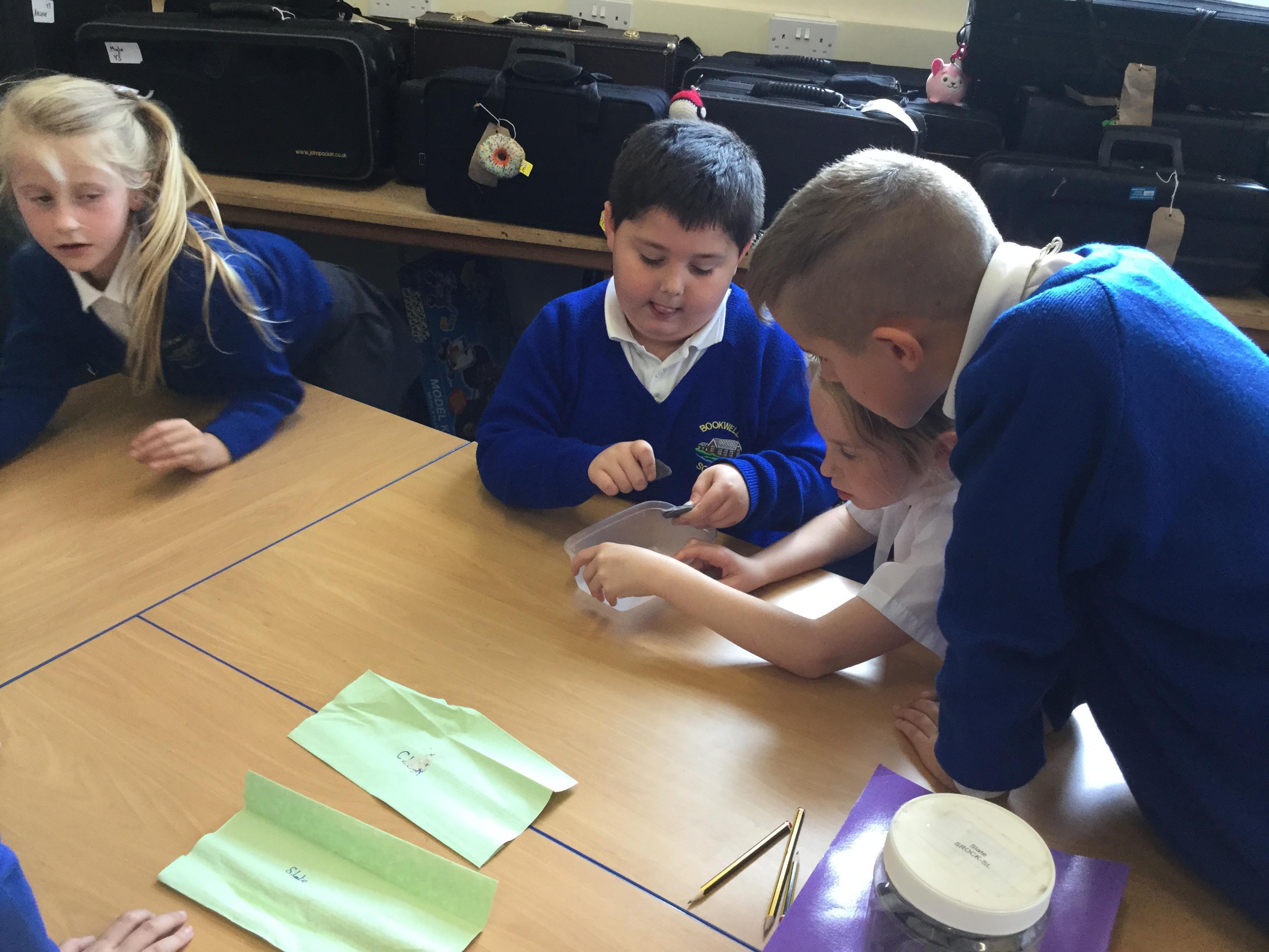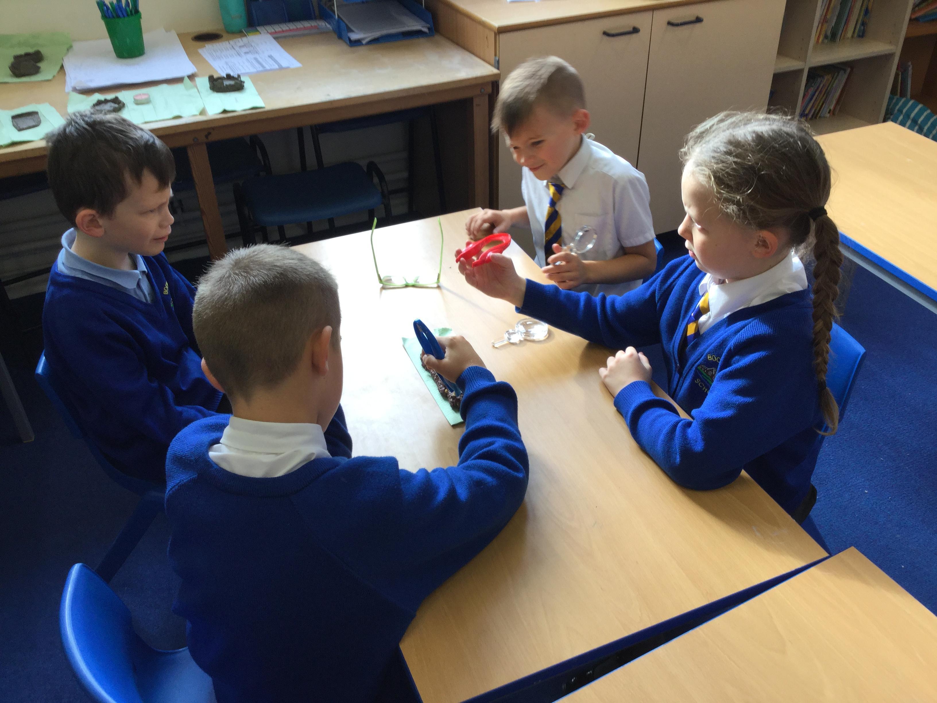 Today, the class studied 3 different soil samples taken from the school grounds. They had to compare them and note any differences in appearance, texture and moisture. The children learnt that soil is made up of organic material, rocks, clay and sand. They also discovered quite a few creepy crawlies too!