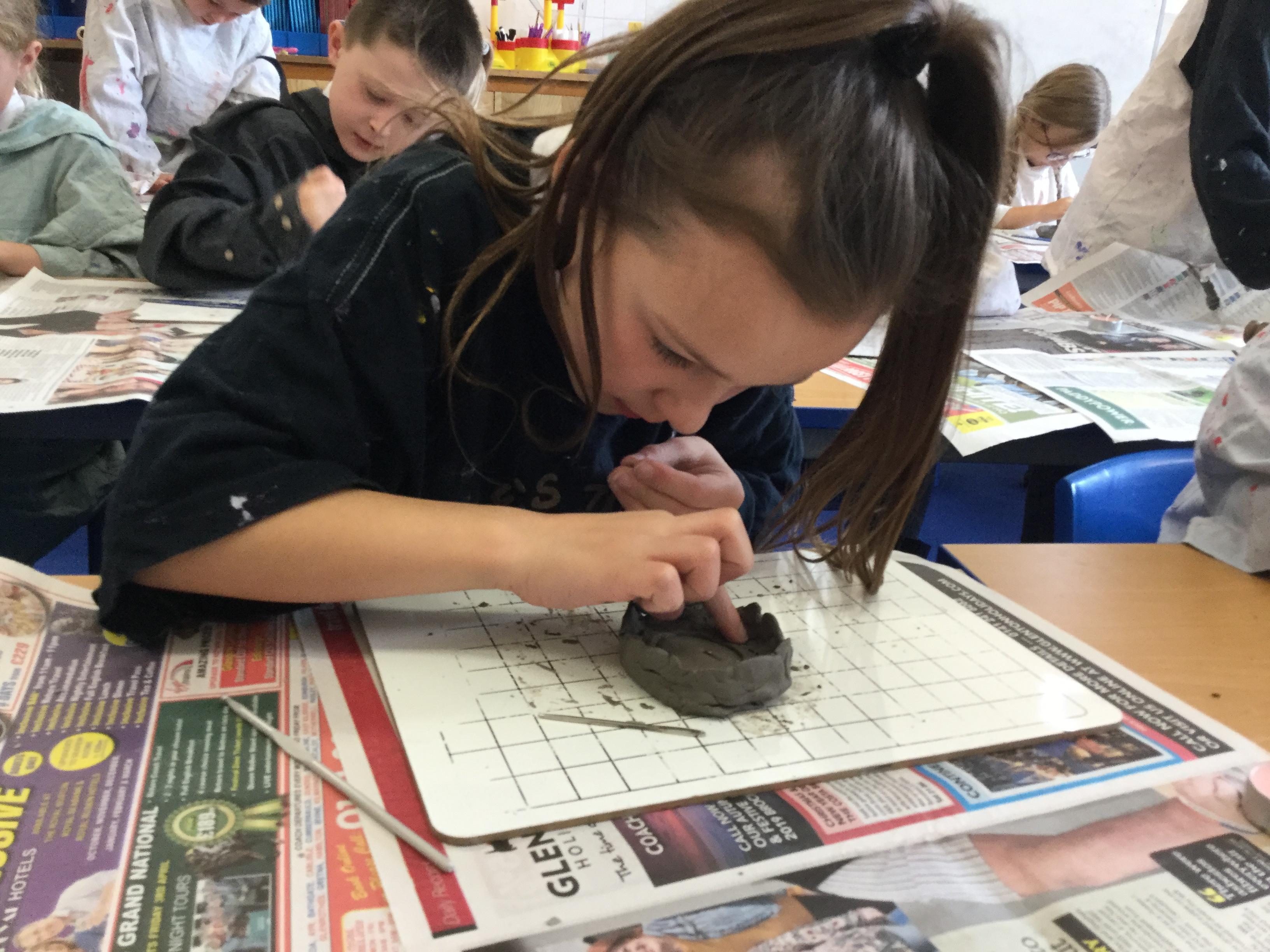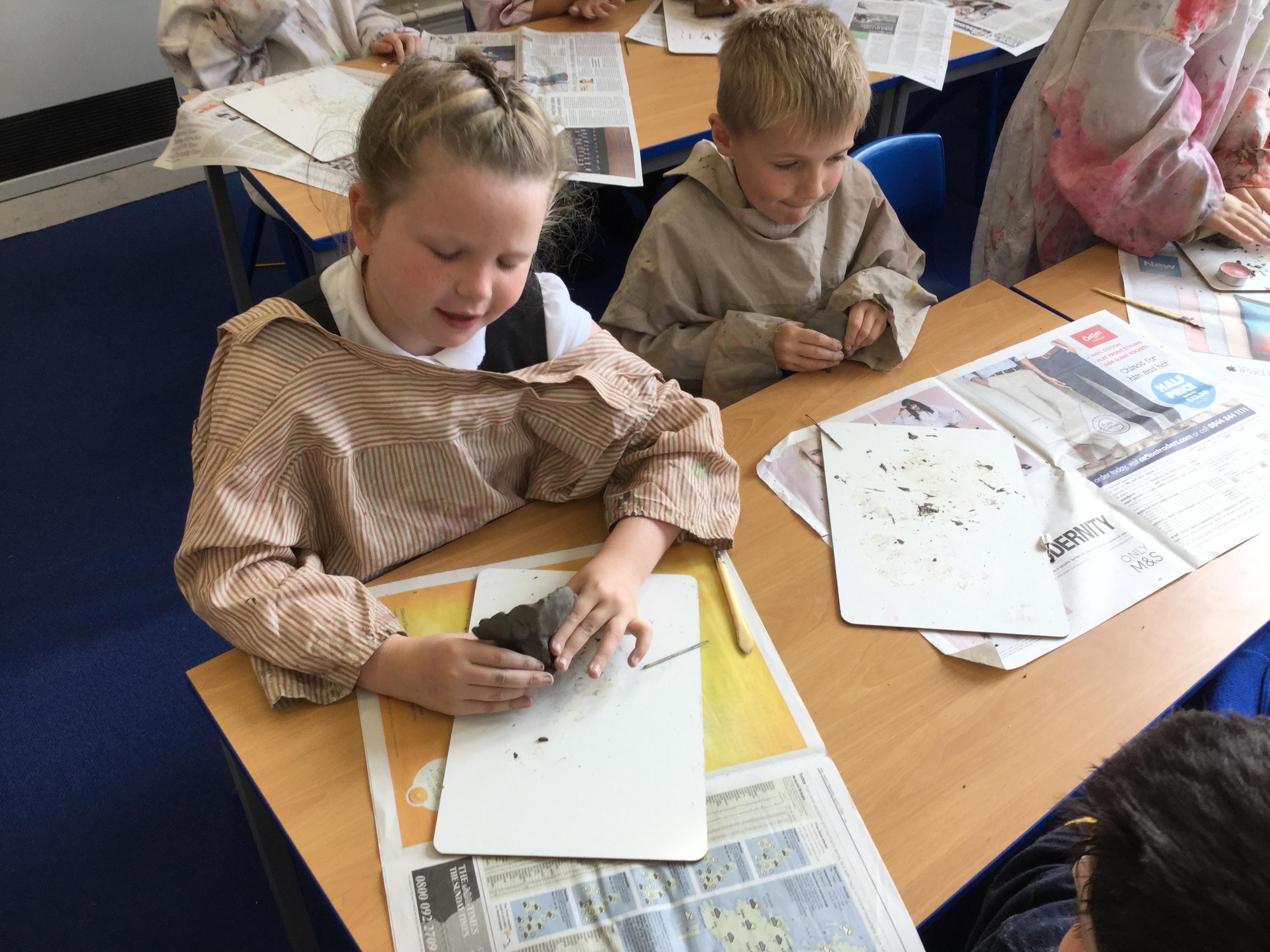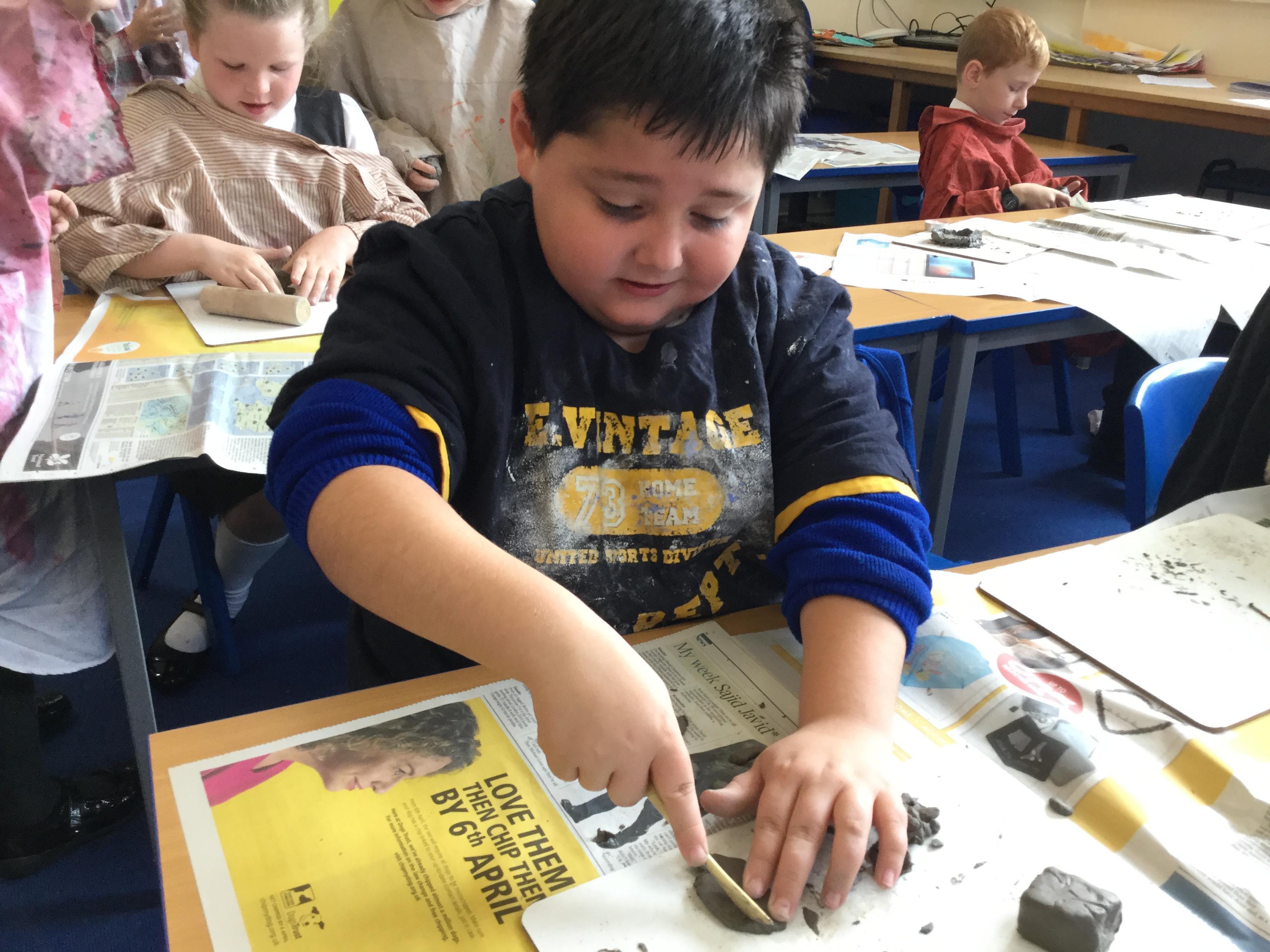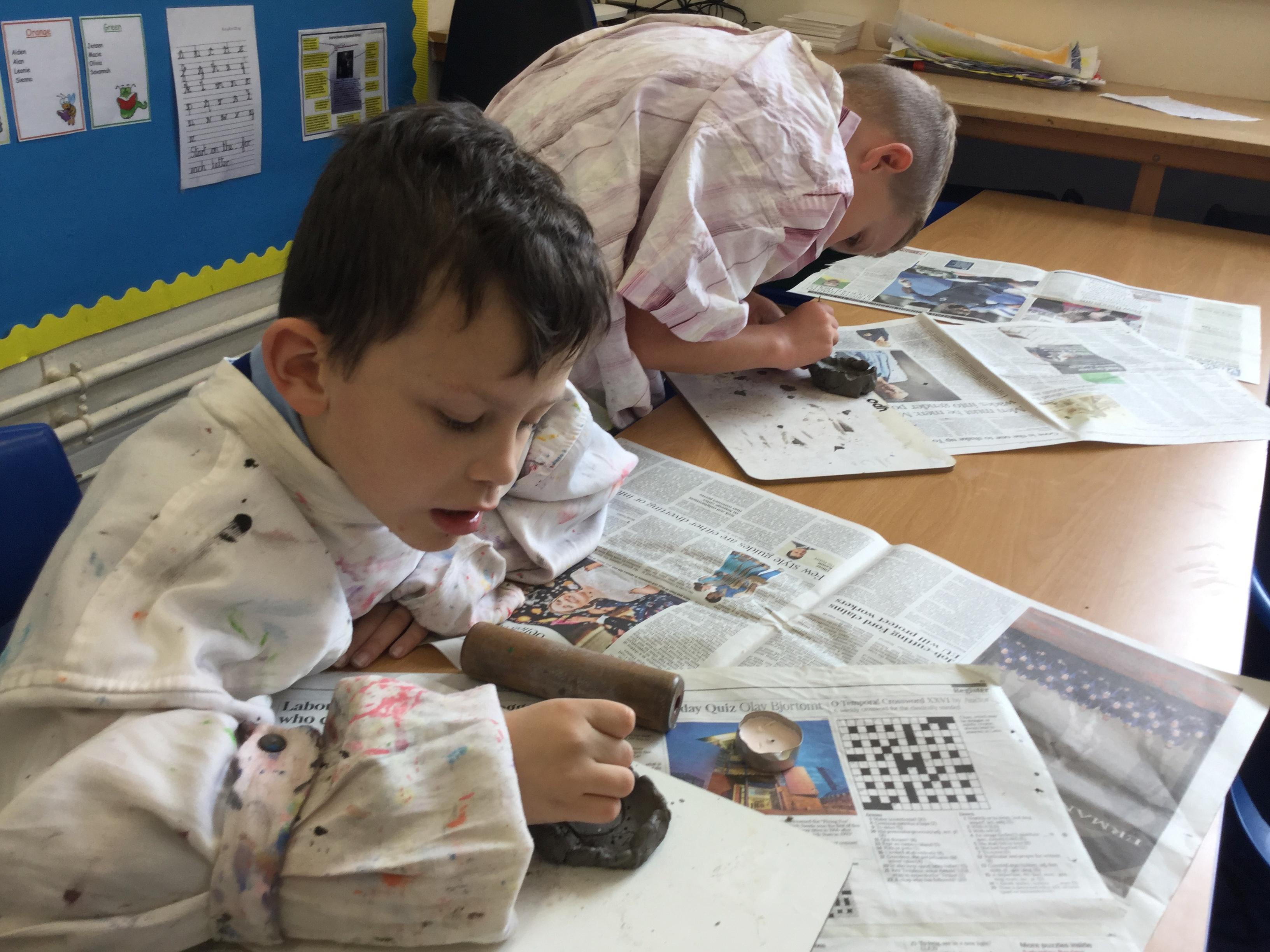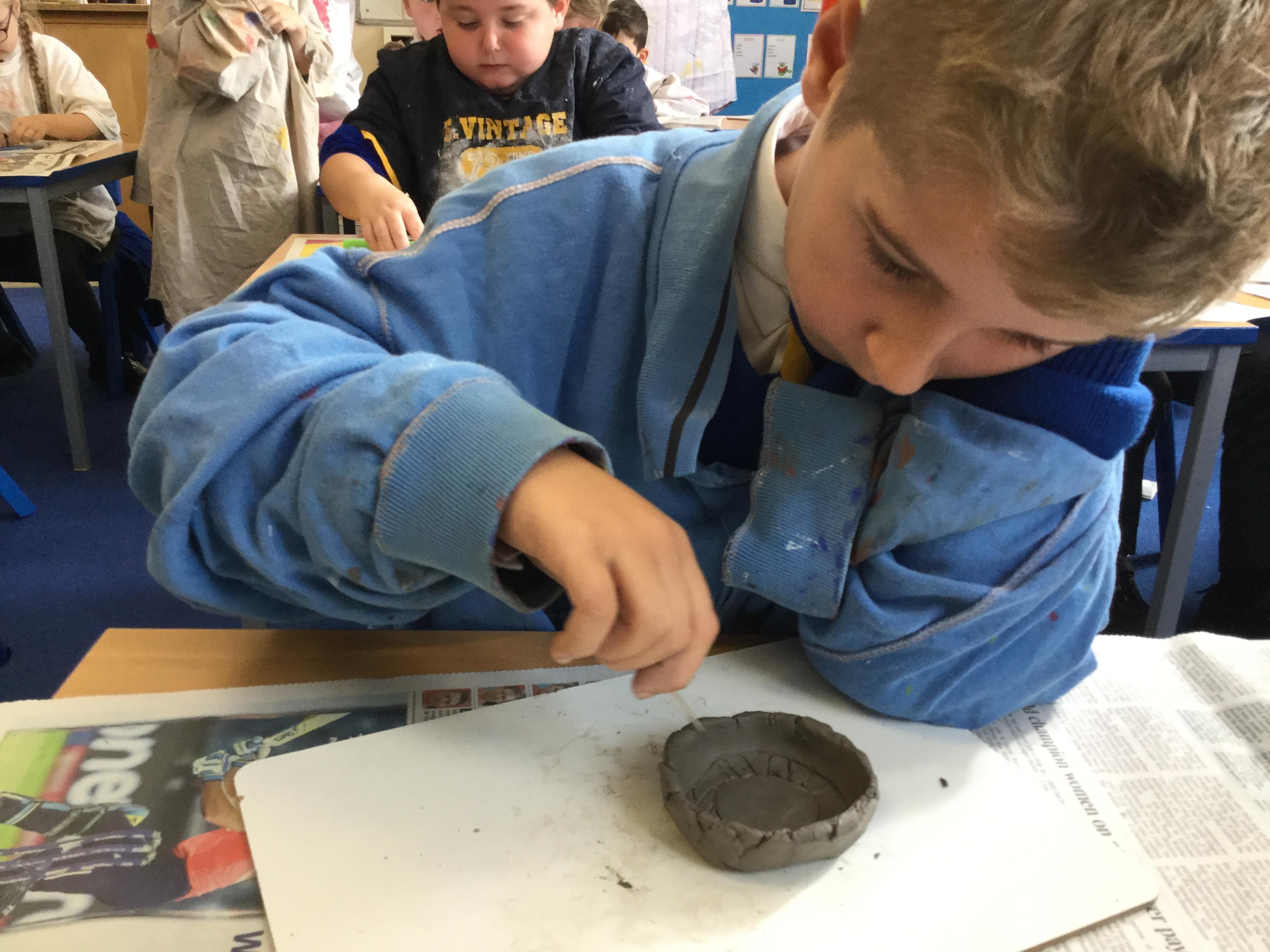 Diva lamps are a big part of Divali which is a Sikh celebration. It means ‘Festival of Lights’. We heard the story of Rama and Sita and how people lit Diva lamps to show them the way home. We made our own Diva lamps using air drying clay. We used clay tools to create patterns and designs on our lamps. When they are dry, we will use paint to make them colourful.