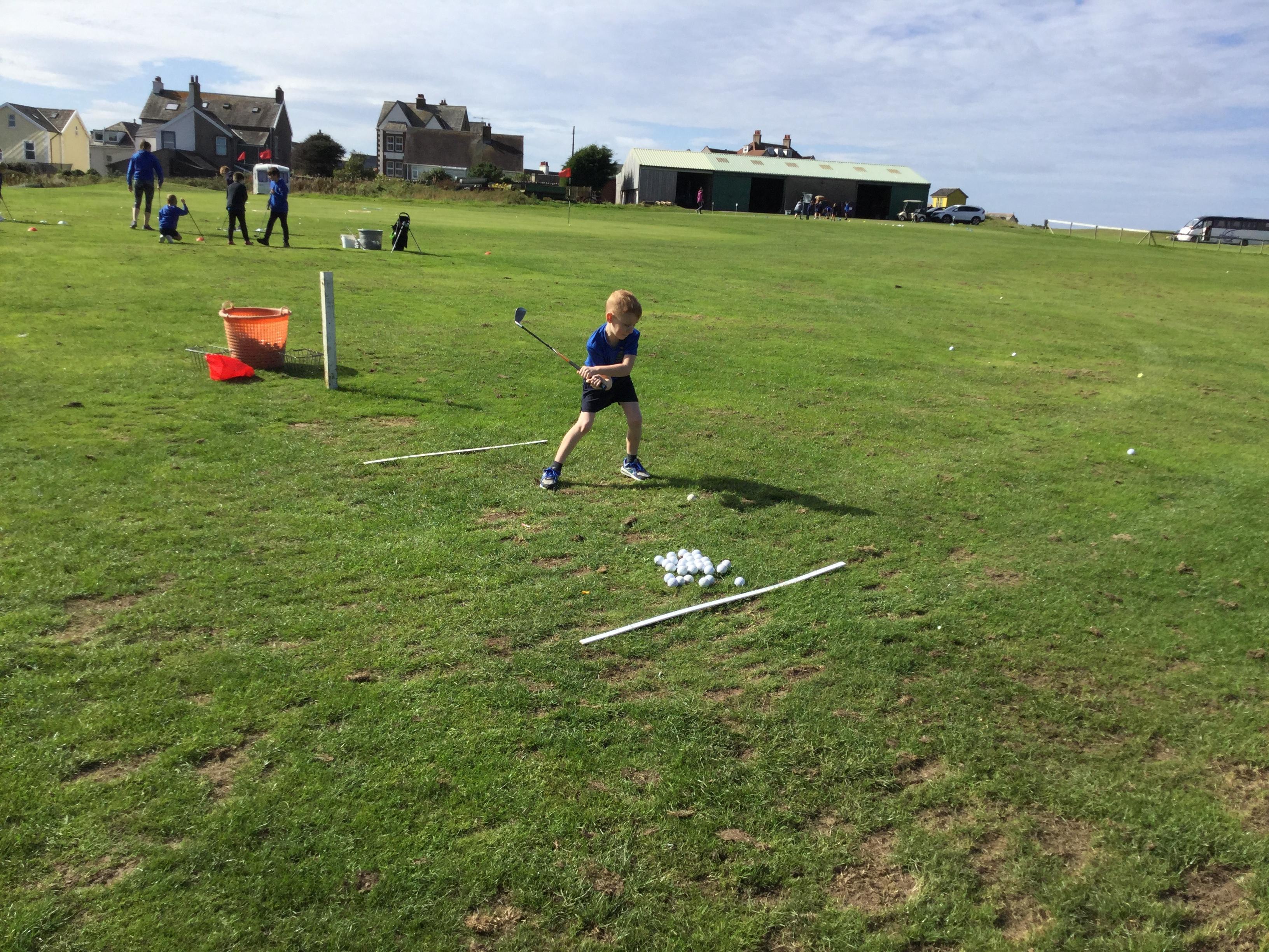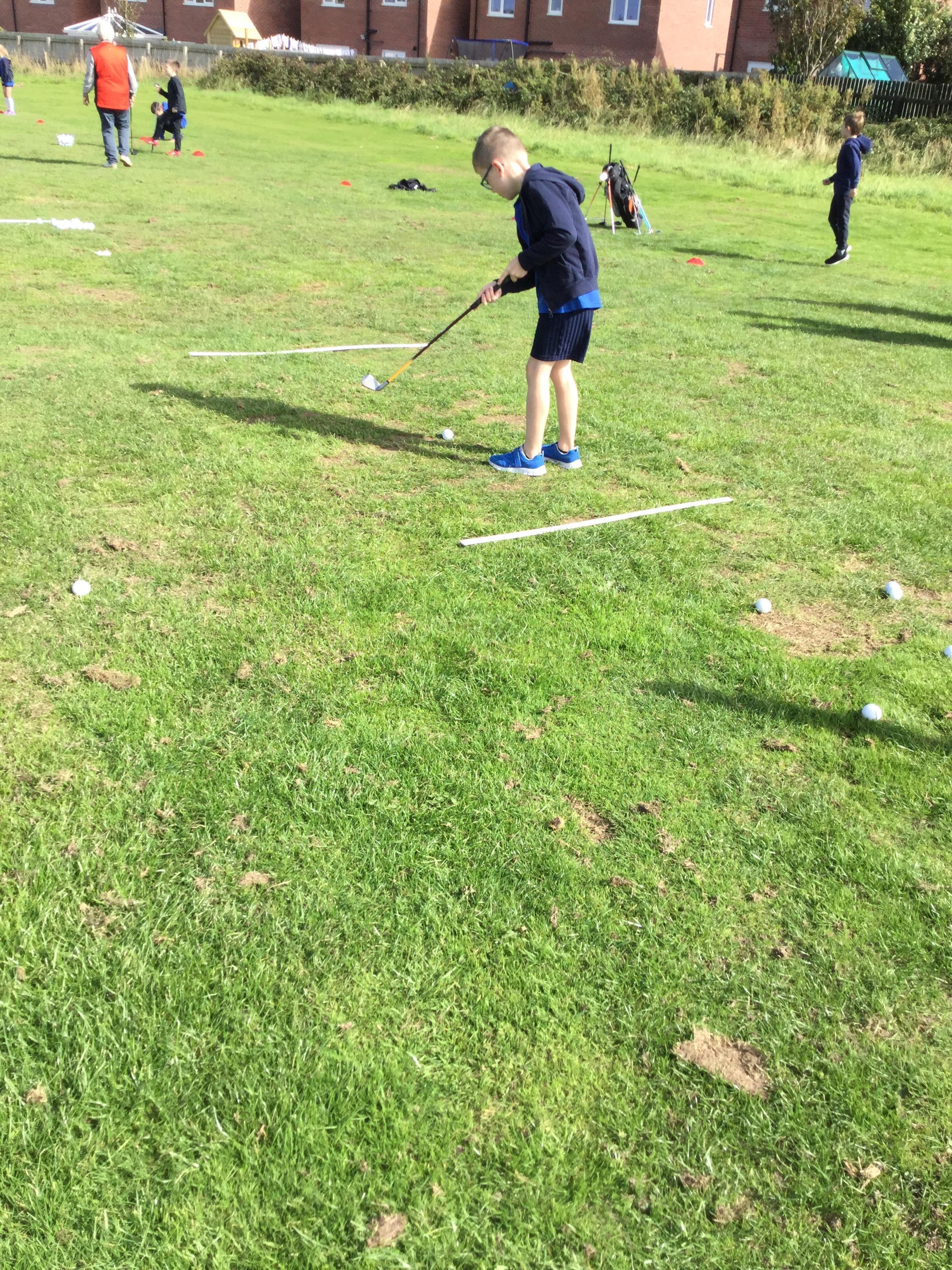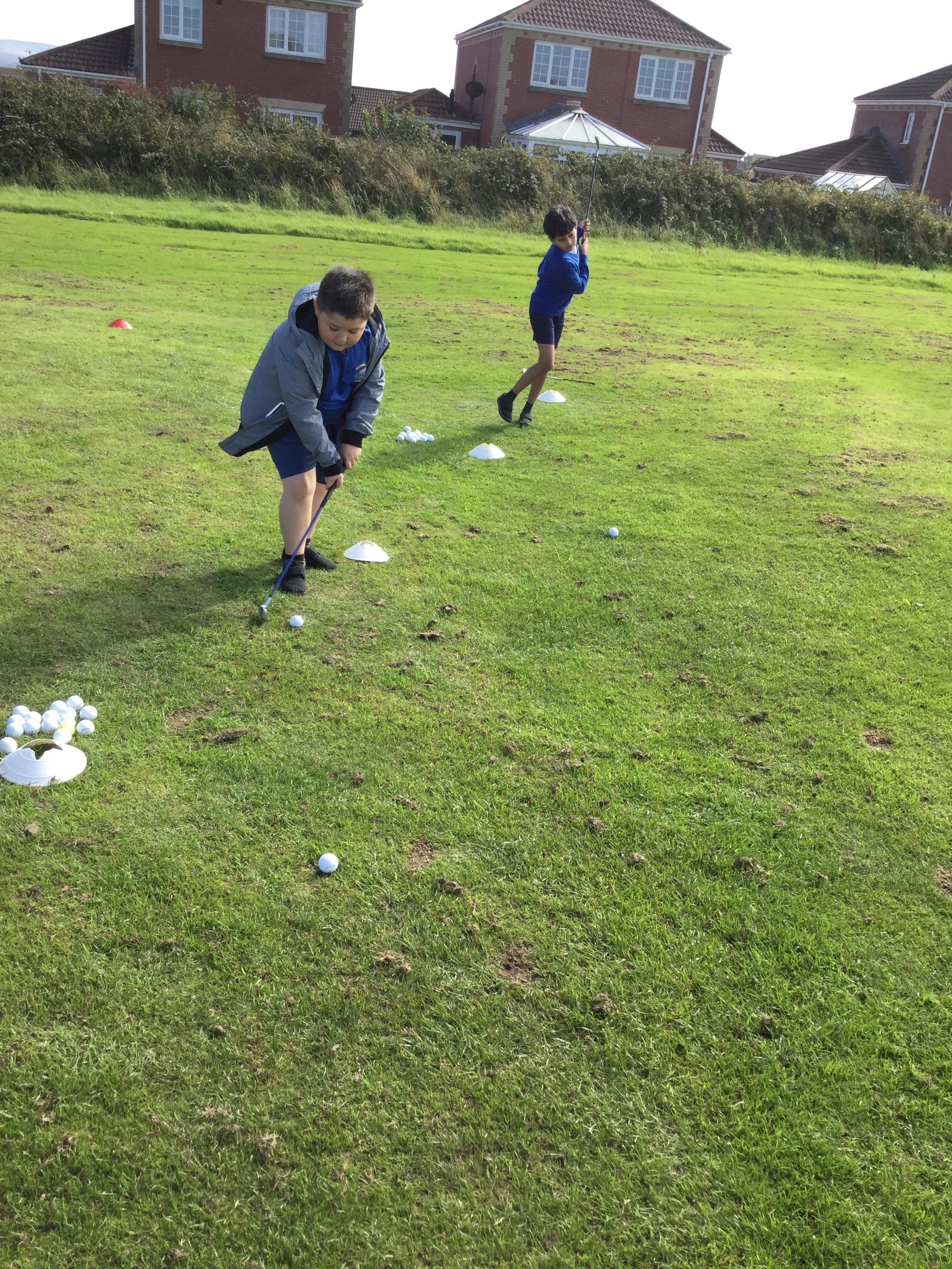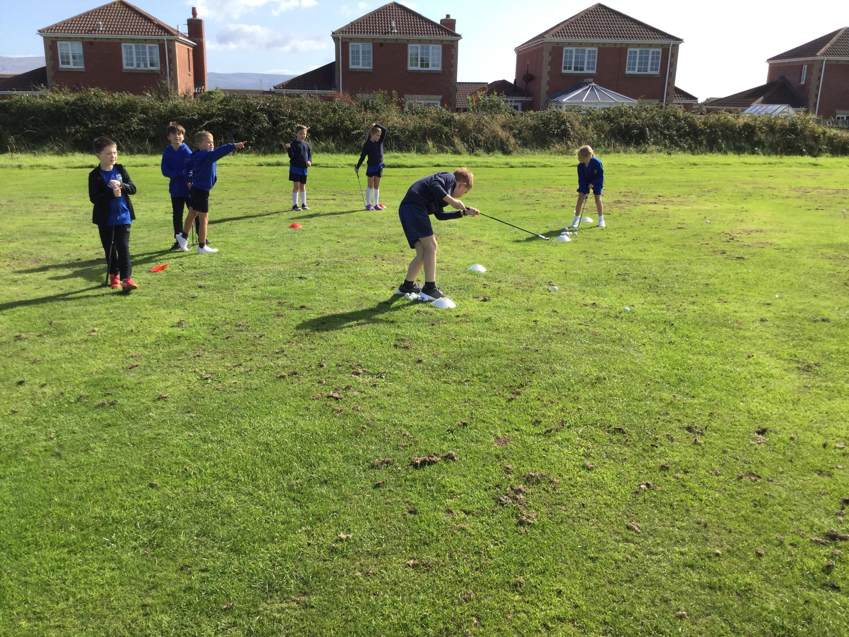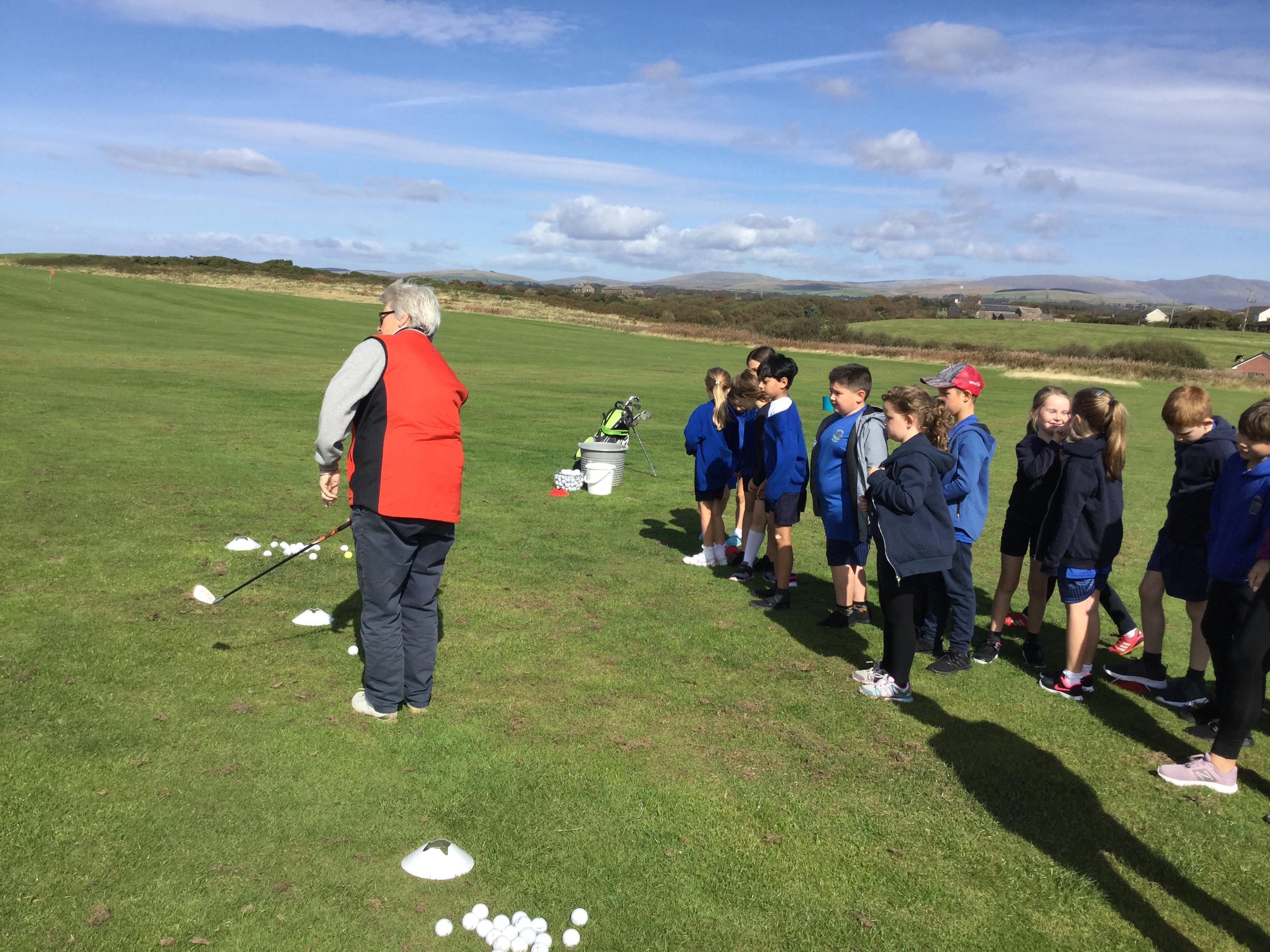 We went to Seascale Golf Club and met Bev New who is a golf coach. She coaches the juniors at the club and was going to give us a taste of how to play golf. We got to have a go at driving, chipping and putting. One of the challenges was to chip the ball into a bucket a good few metres away. We had a fantastic time and would like to thank Bev for inviting us along. We may have some future Rory McIlroys in the class.