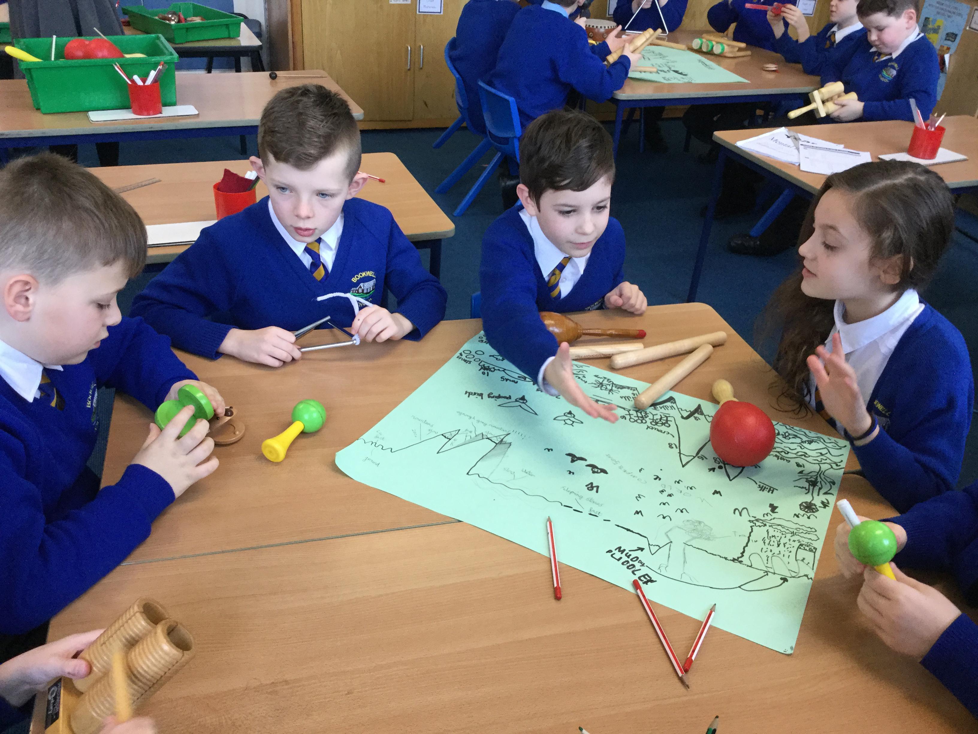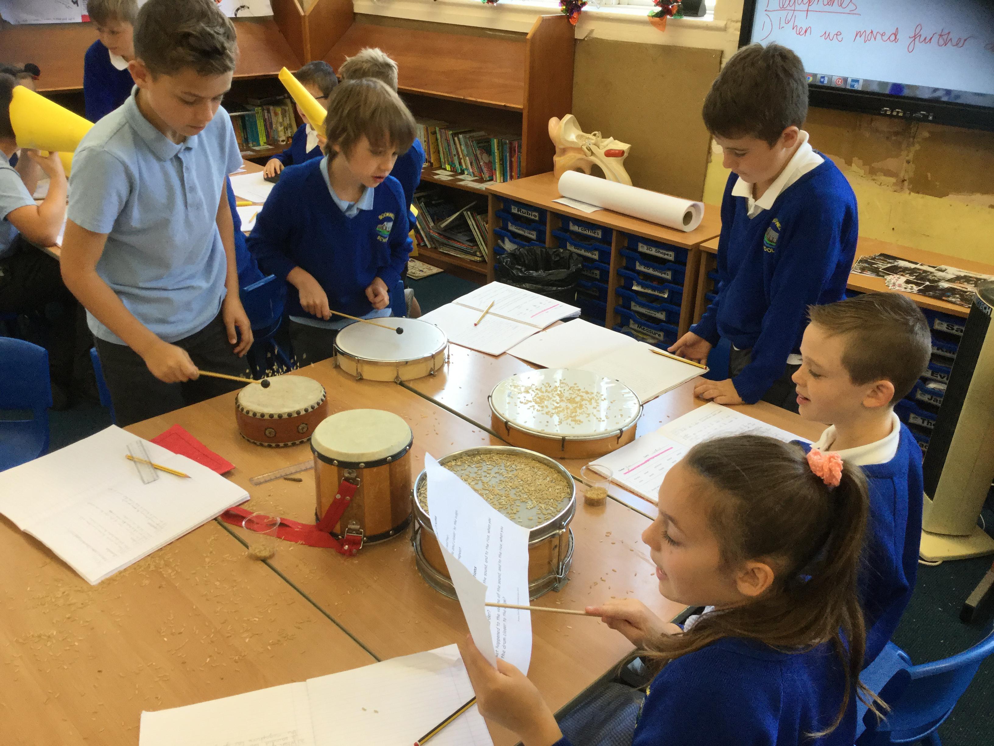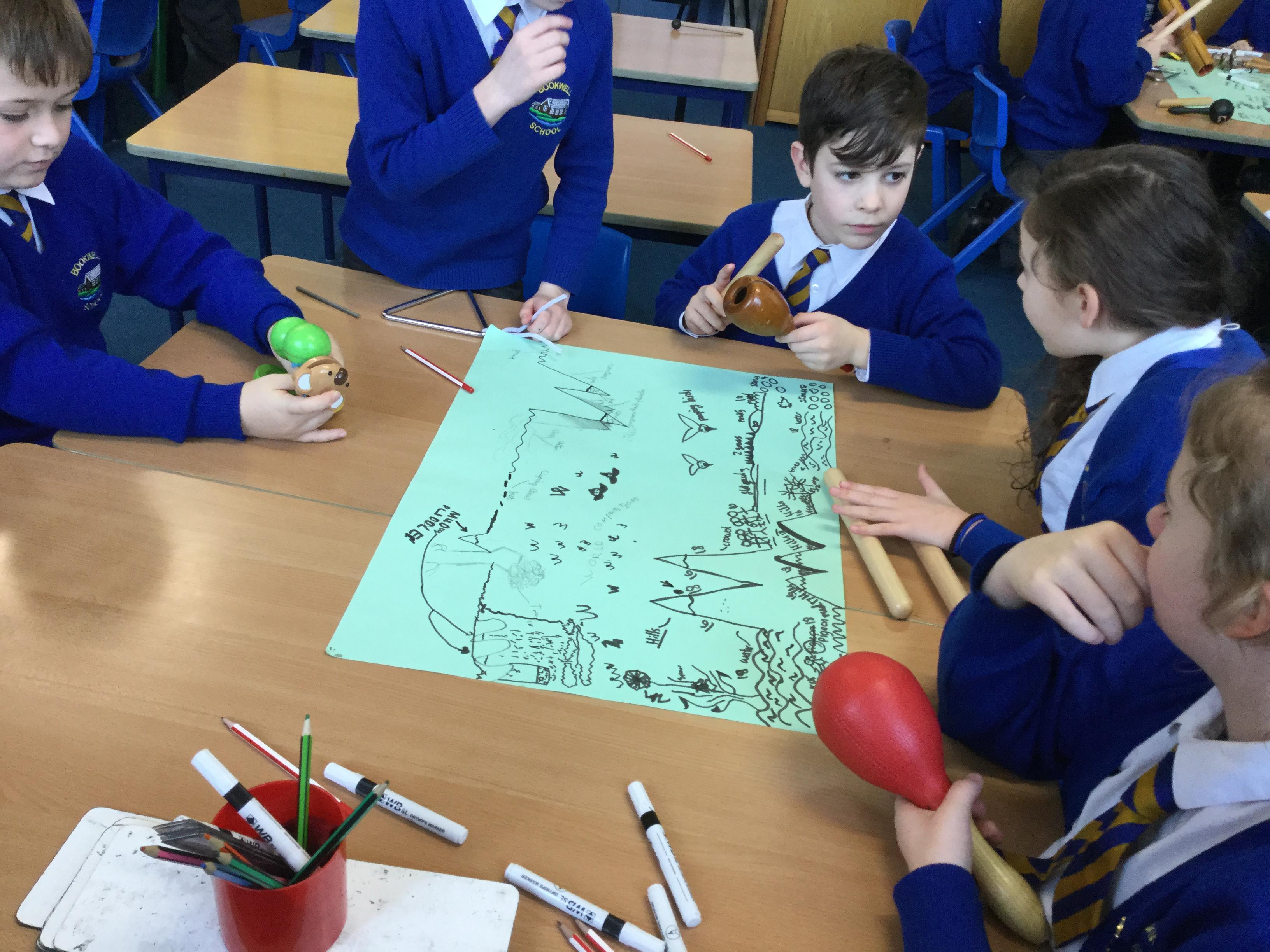 In our music lessons we have been learning about how a piece of music can represent something or make us feel certain emotions.  The children were asked to work in groups to compose a piece of music called 'Run around the World'. They had to think about how the pace of running would be affected by the terrain. They had to think about how long each section would be, how fast, and which instruments to use to represent the movement or environment. They worked very hard, and the teamwork they displayed was fantastic. The compositions are still developing but see what you think of them so far.