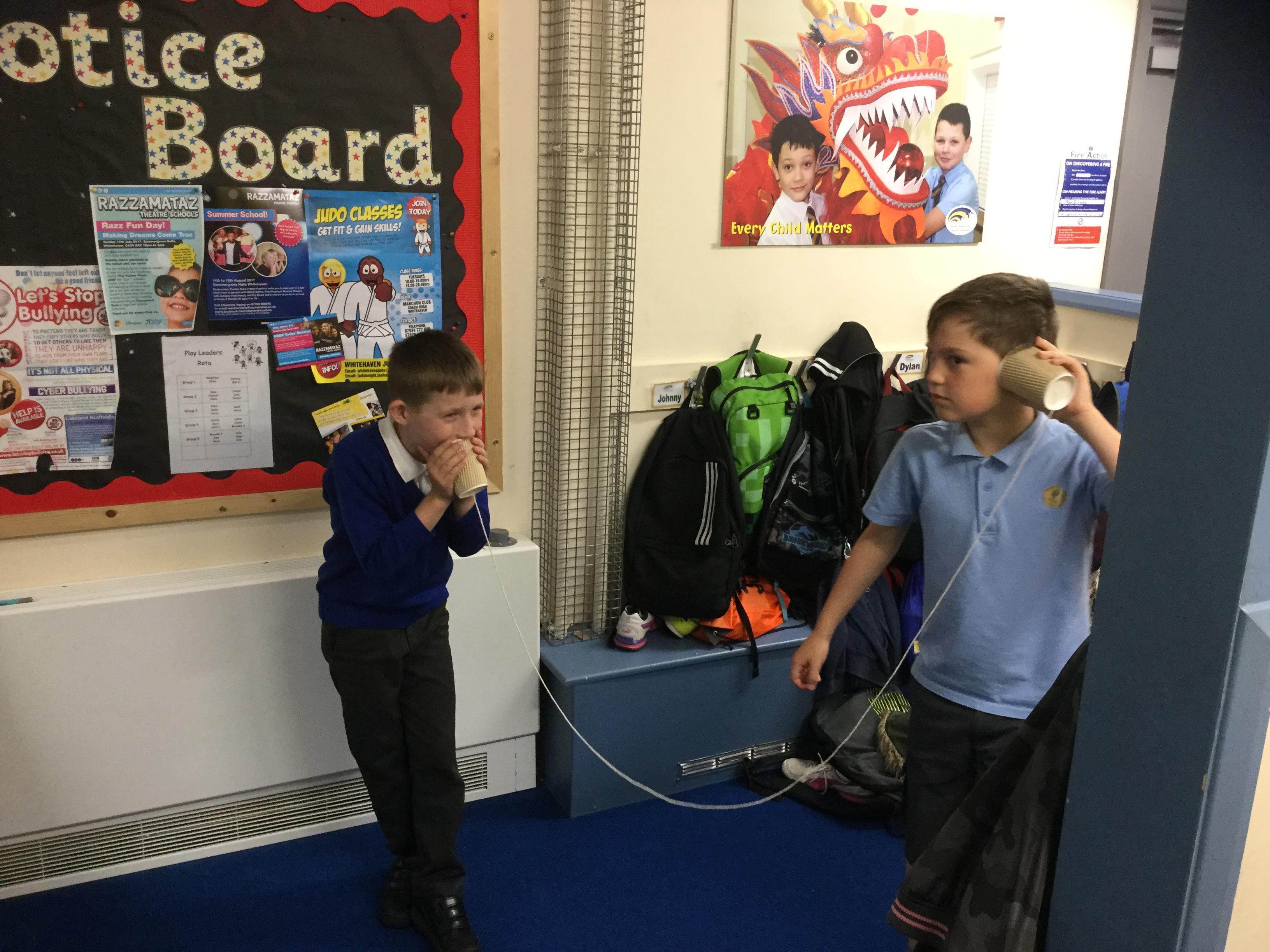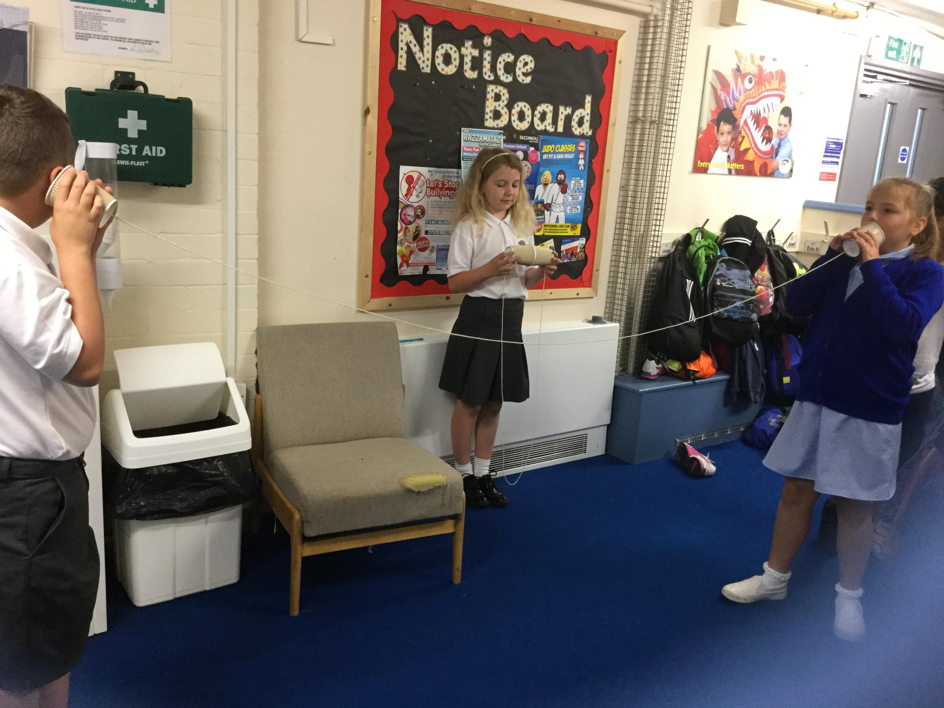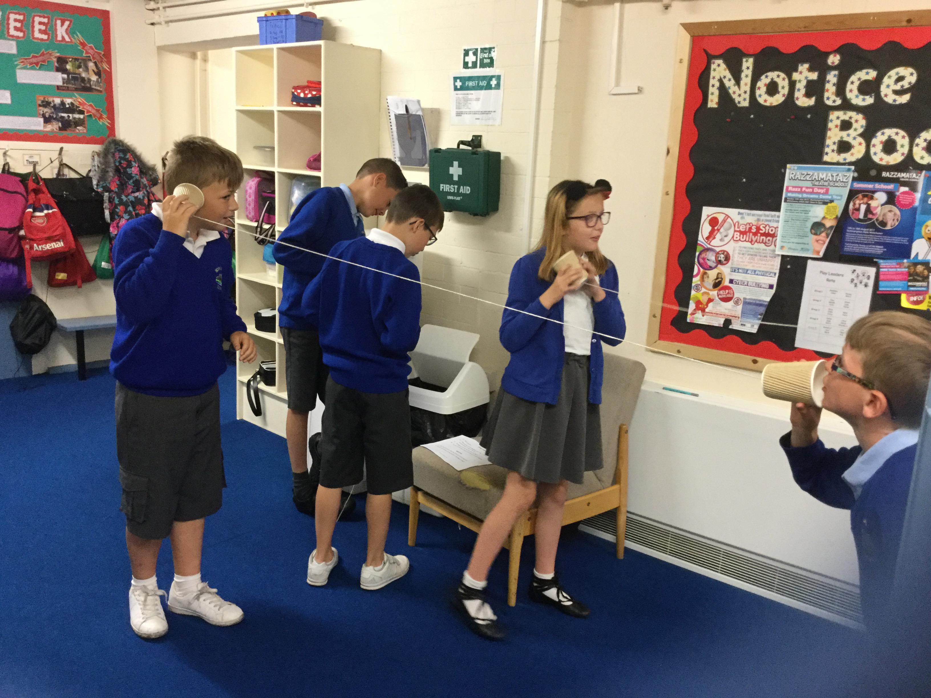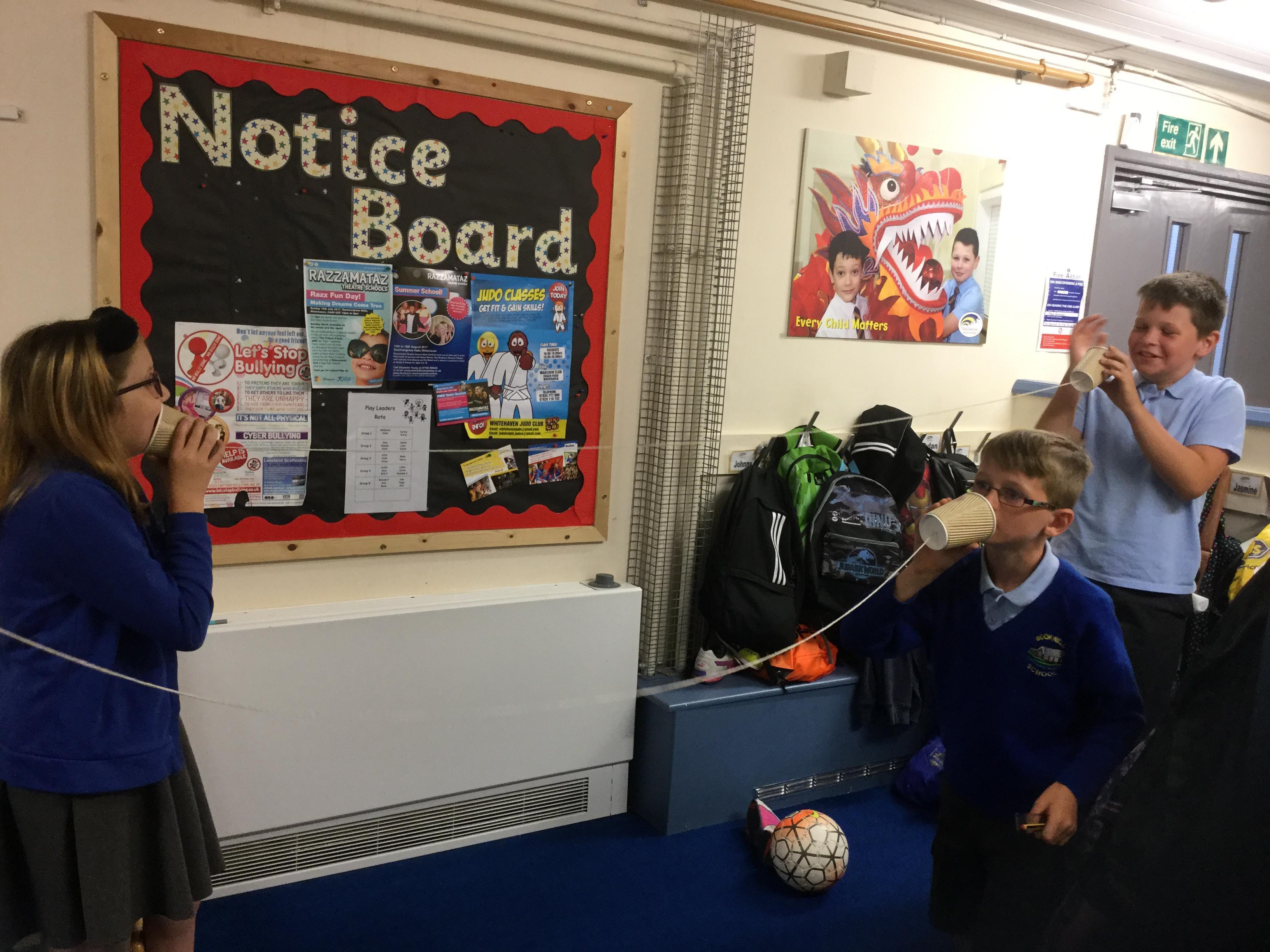 In science we have been exploring sound waves and how sound travels through solids, liquids and gases. Today the children were investigating how sound vibrations behave in different situations.