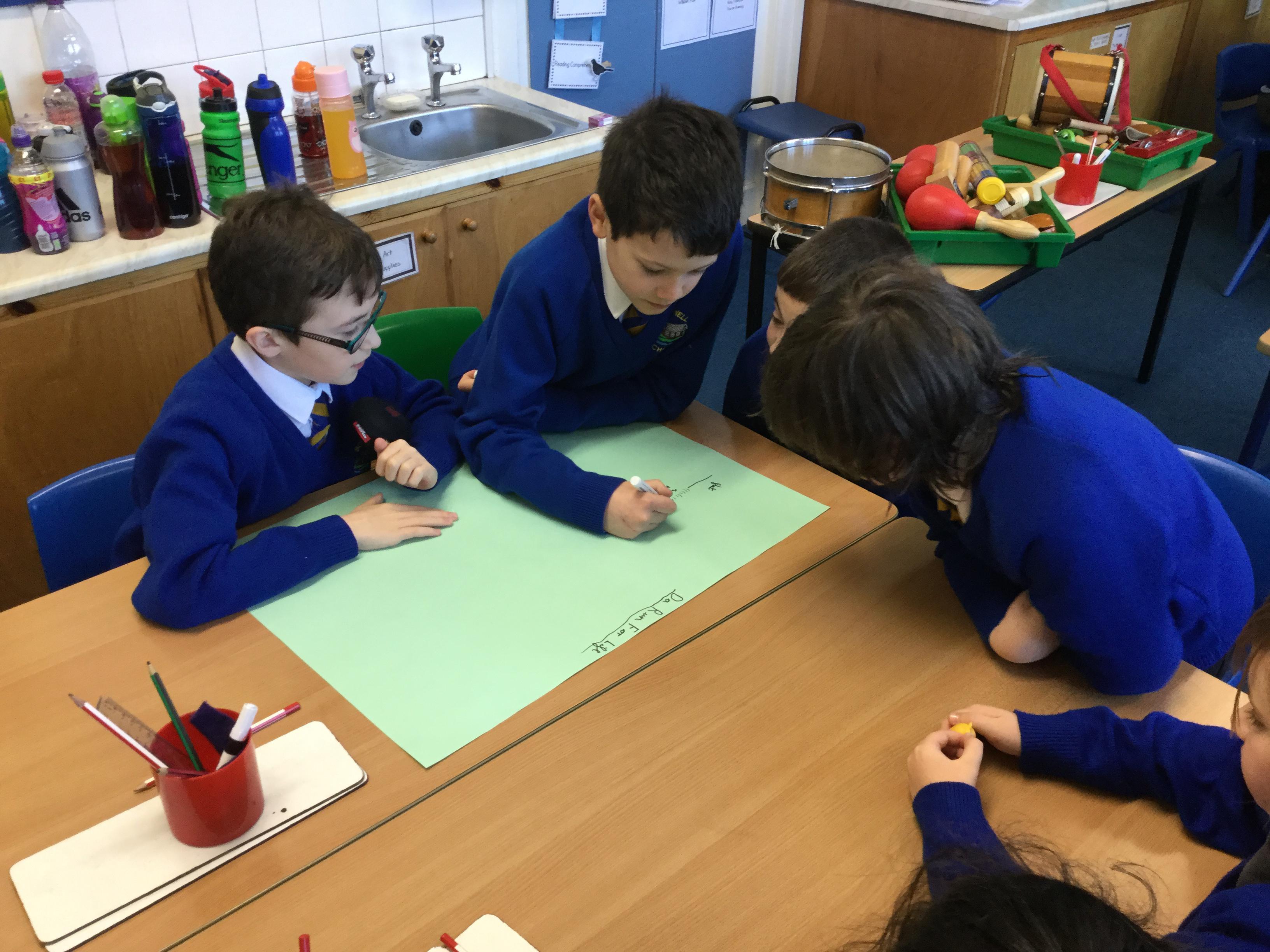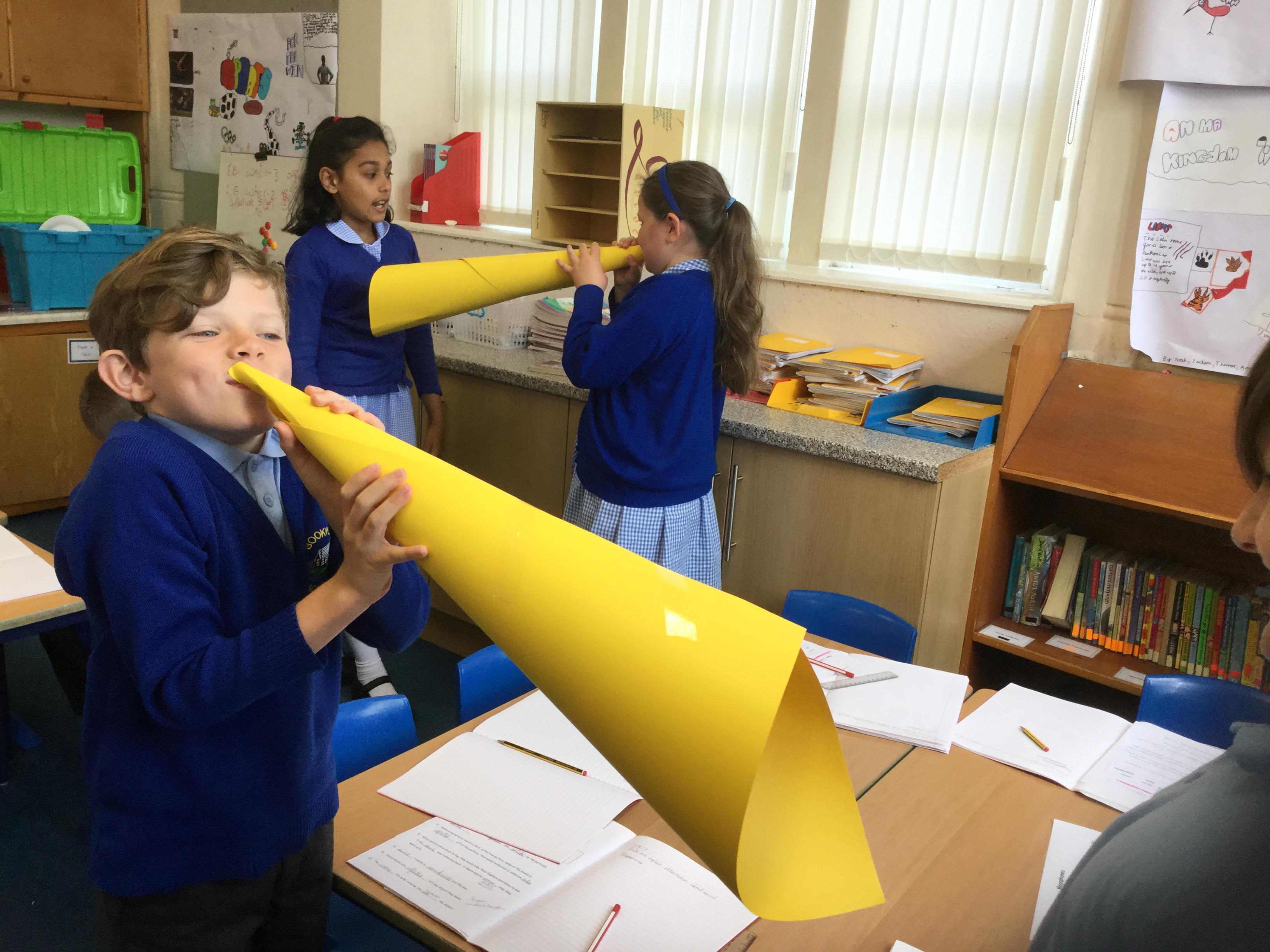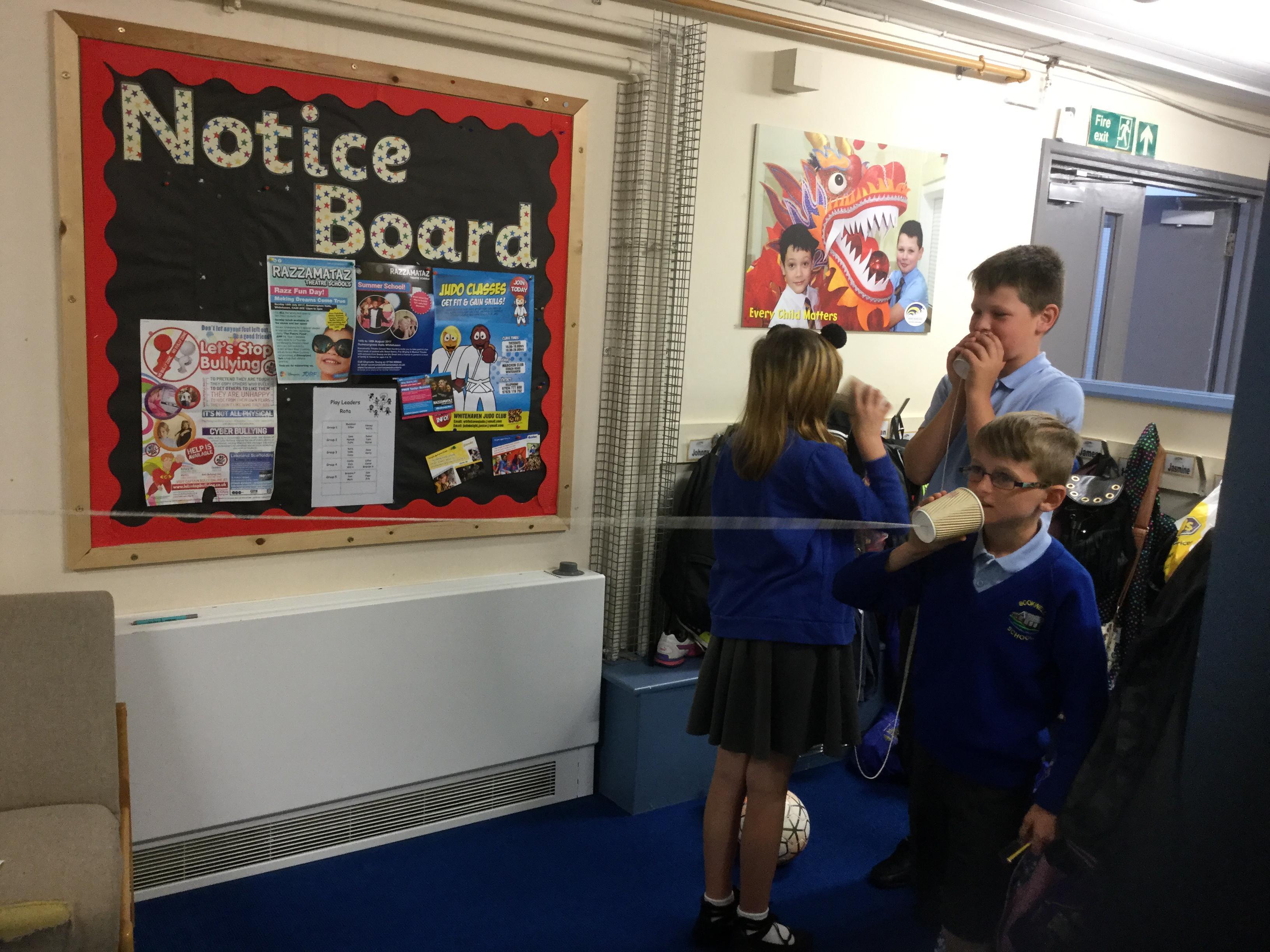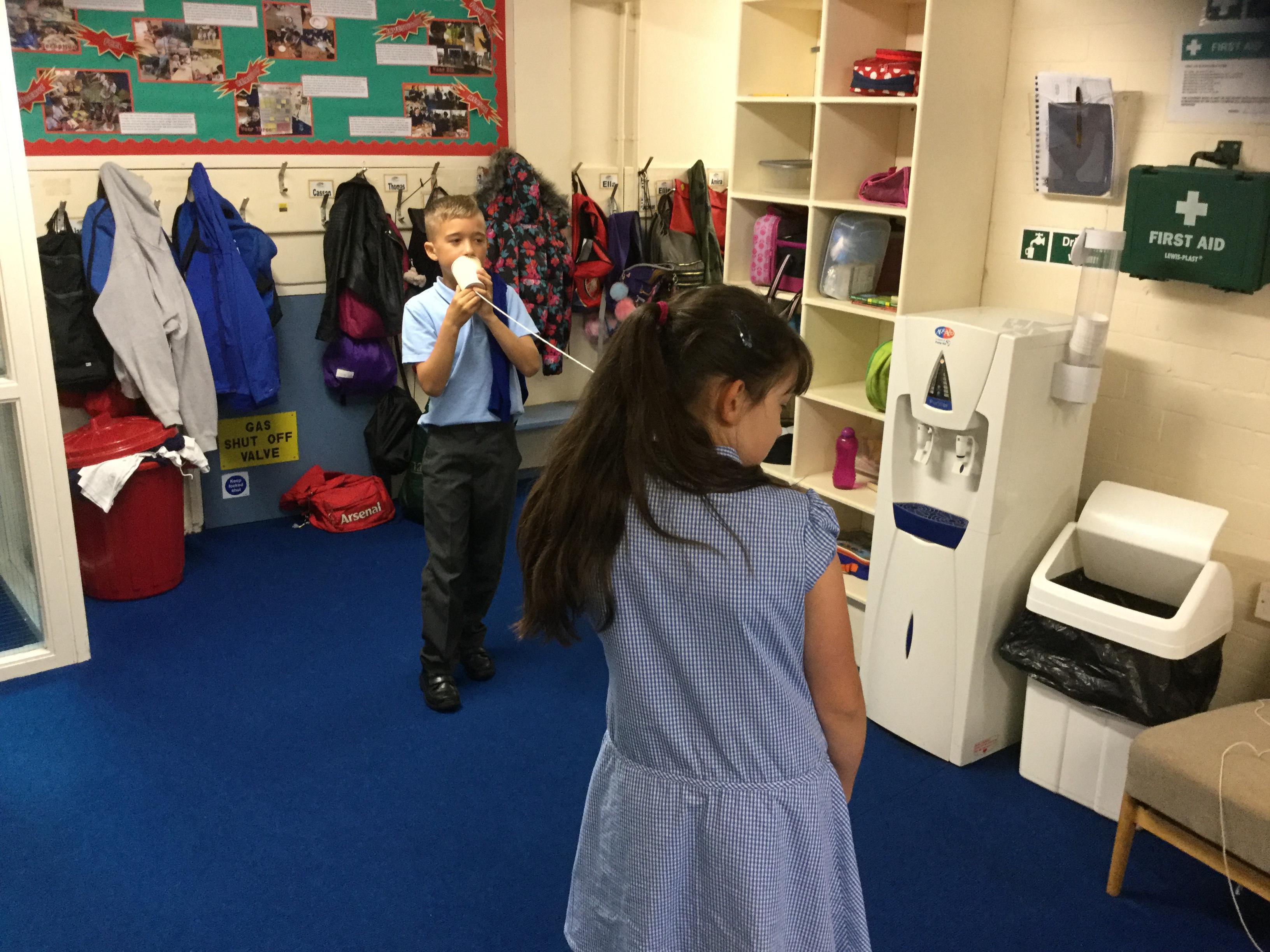 In science we have been exploring sound waves and how sound travels through solids, liquids and gases. Today the children were investigating how sound vibrations behave in different situations.