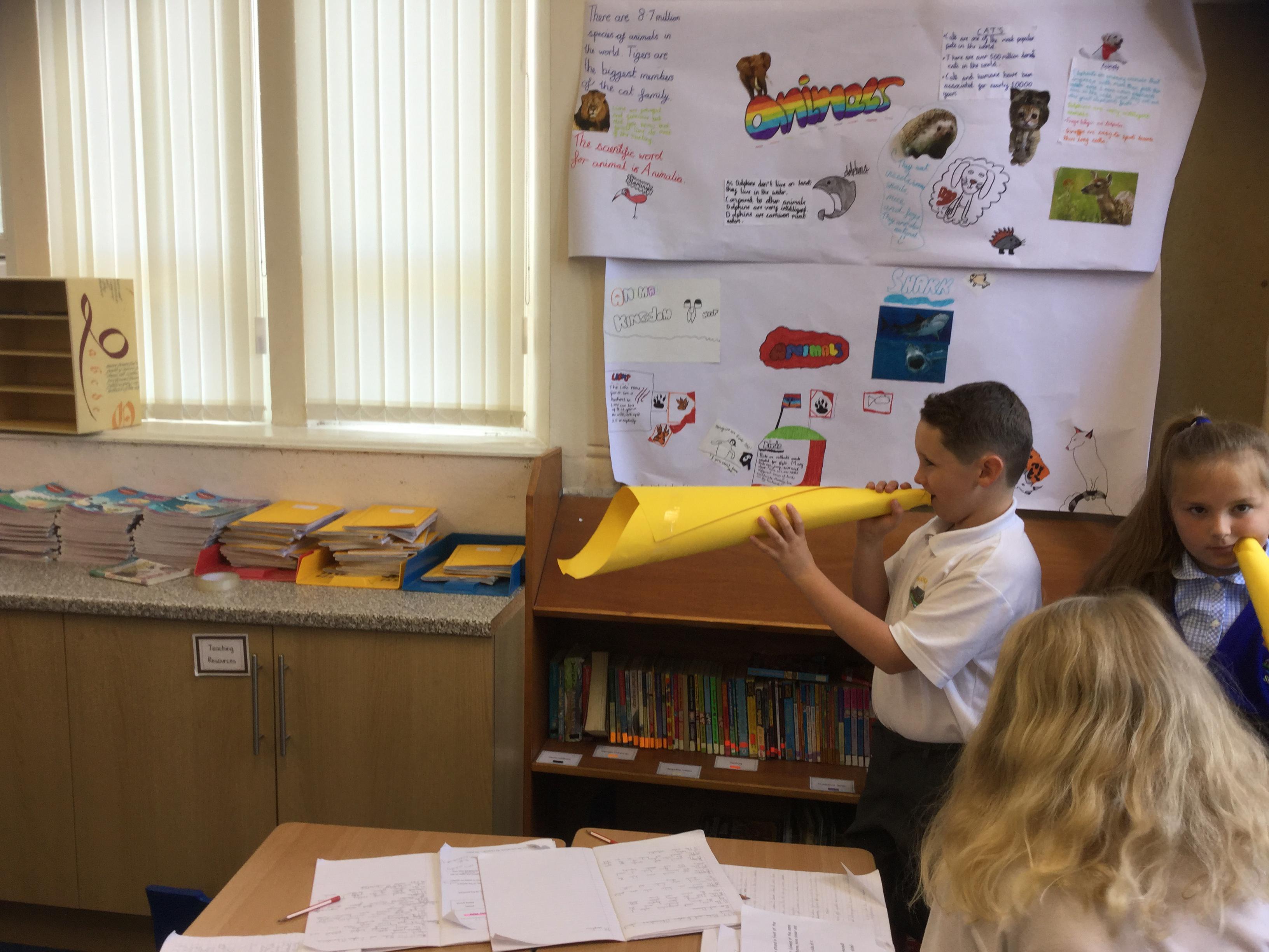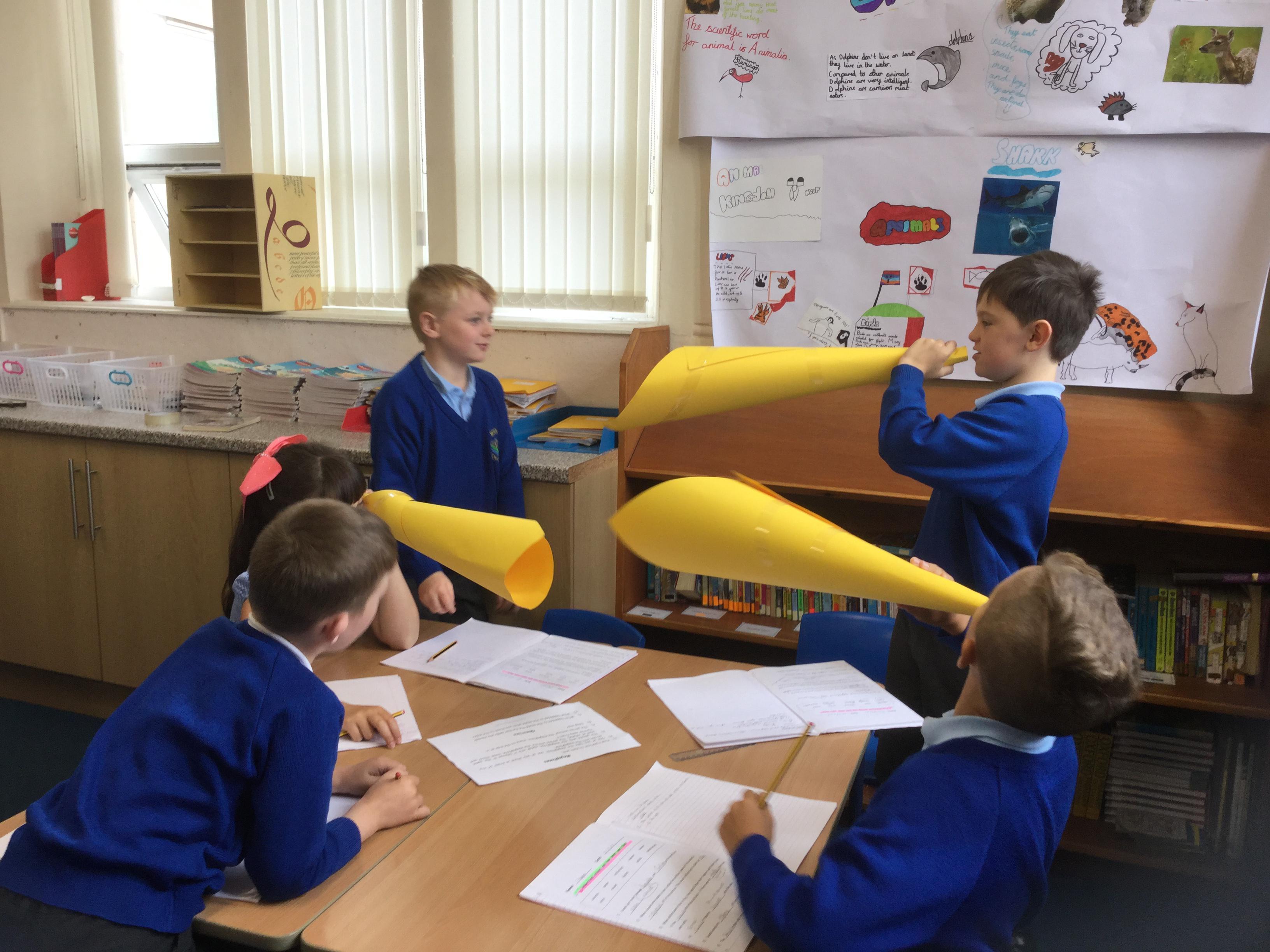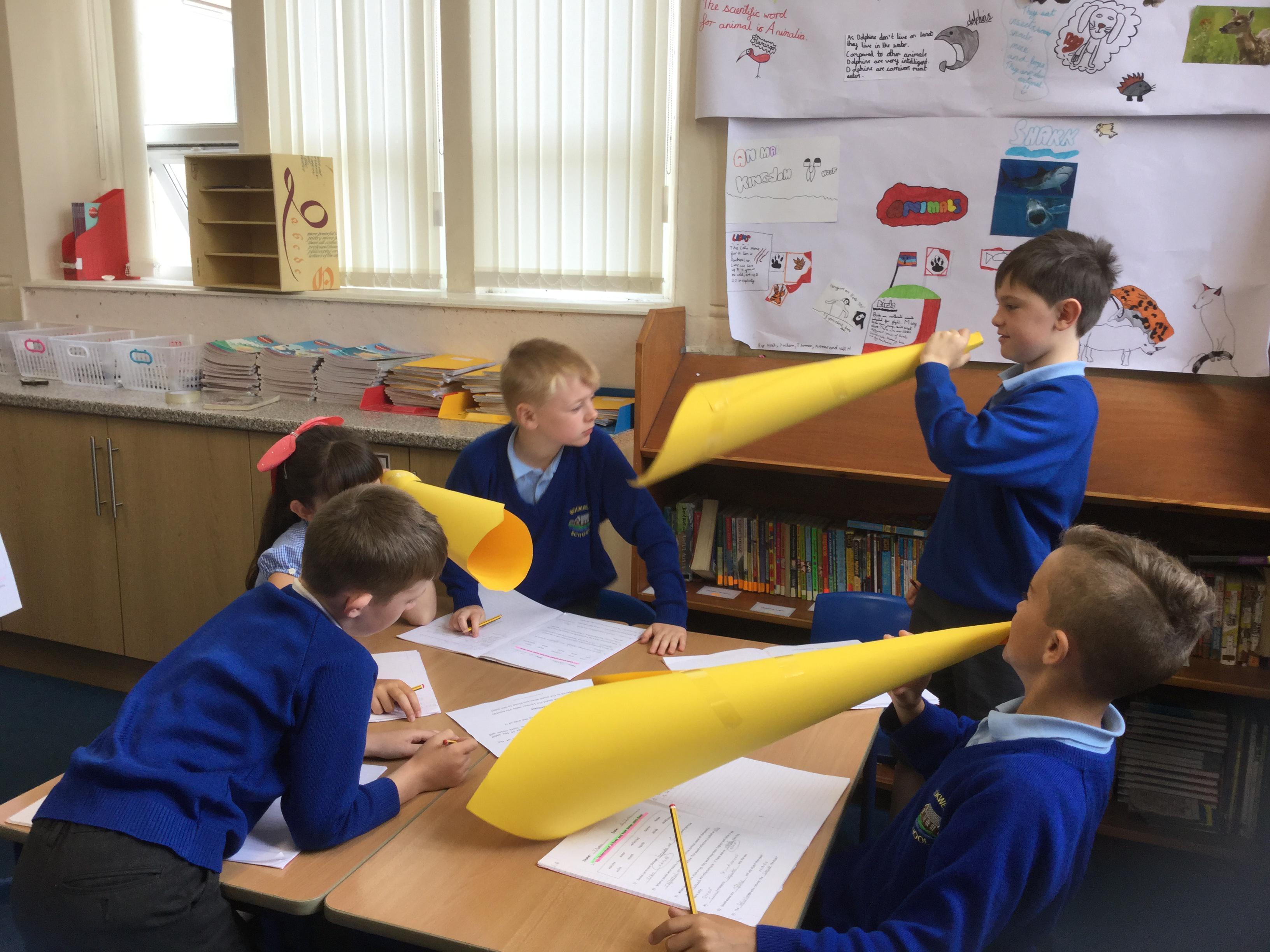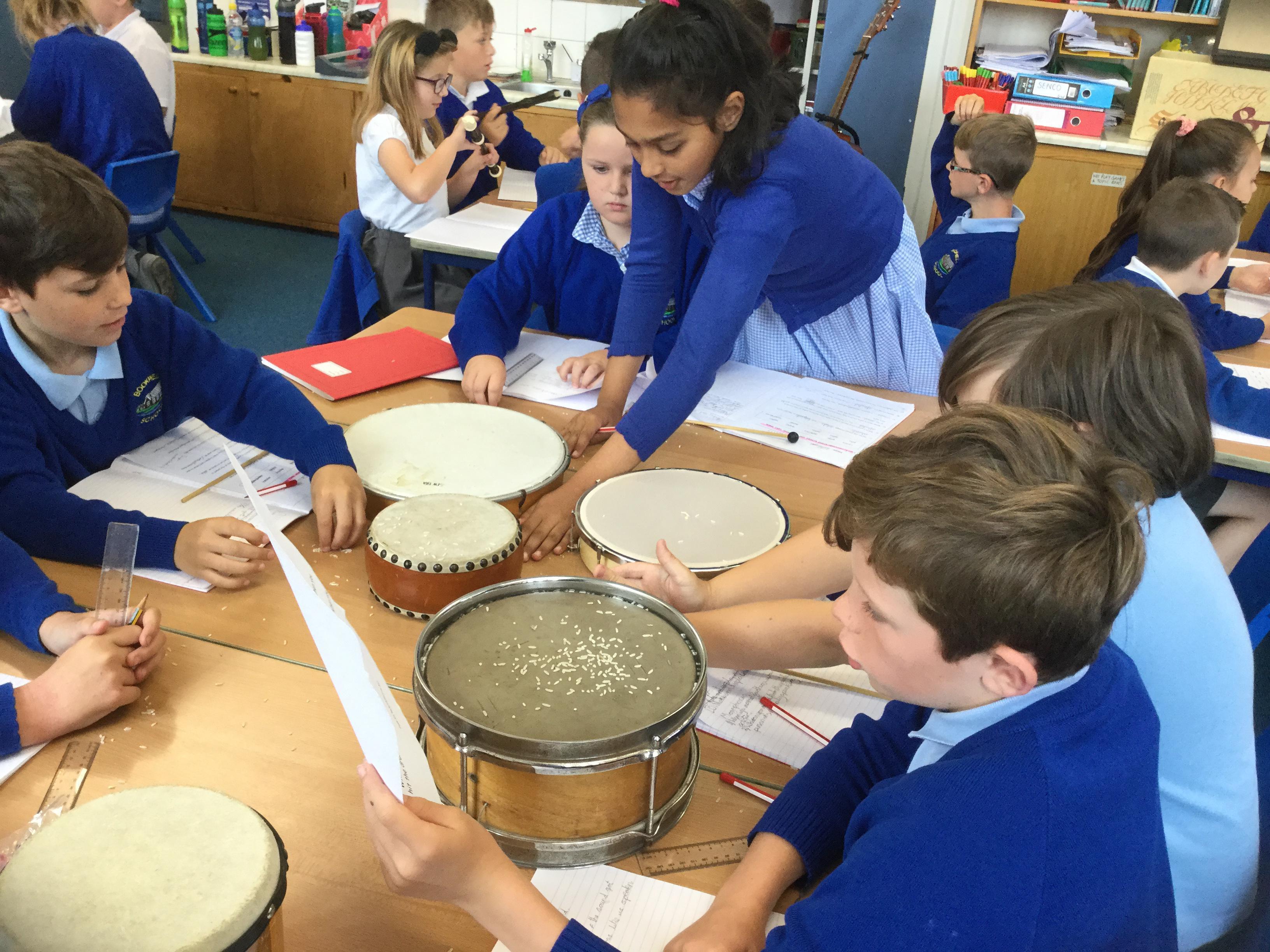 In science we have been exploring sound waves and how sound travels through solids, liquids and gases. Today the children were investigating how sound vibrations behave in different situations.