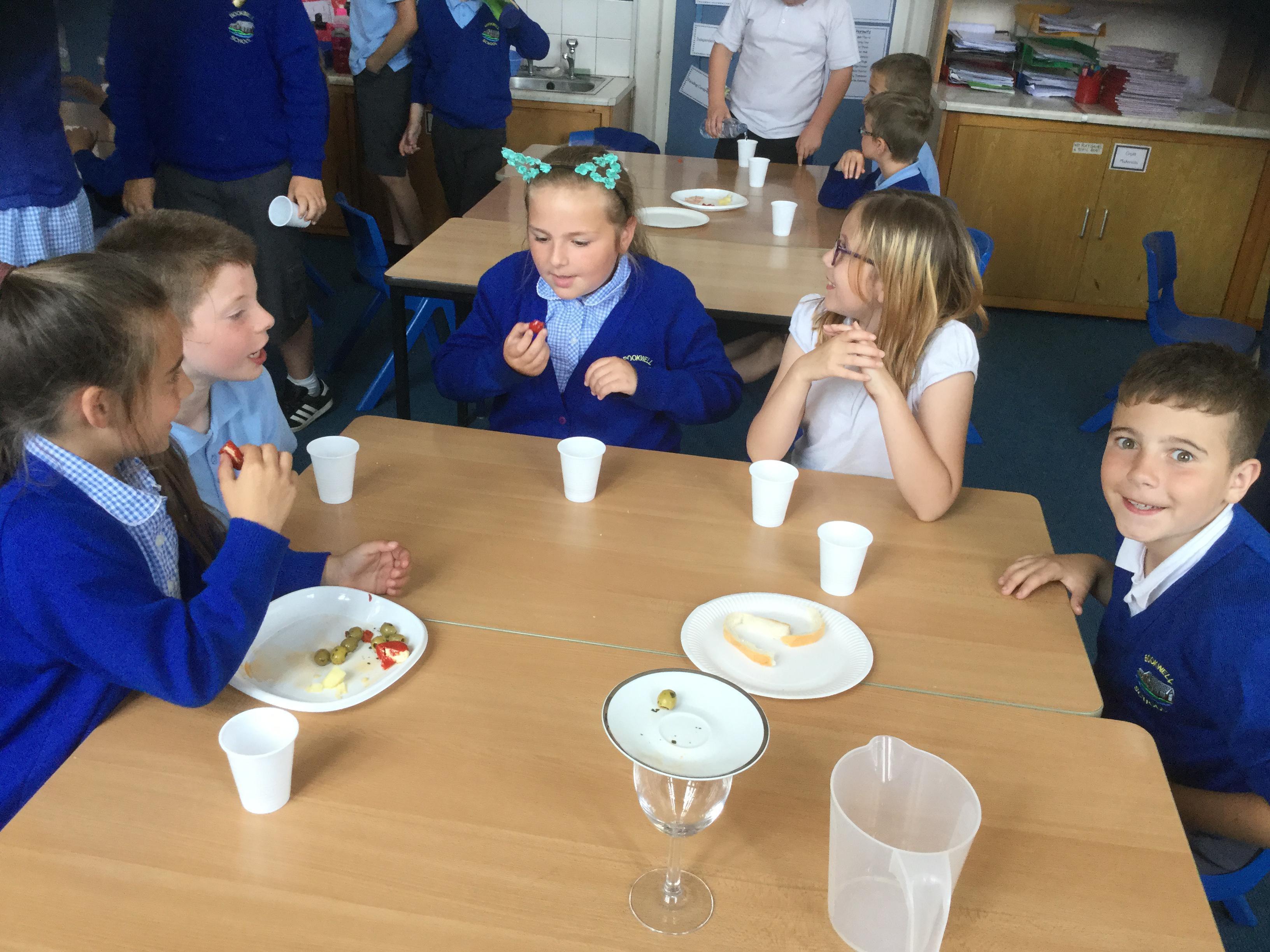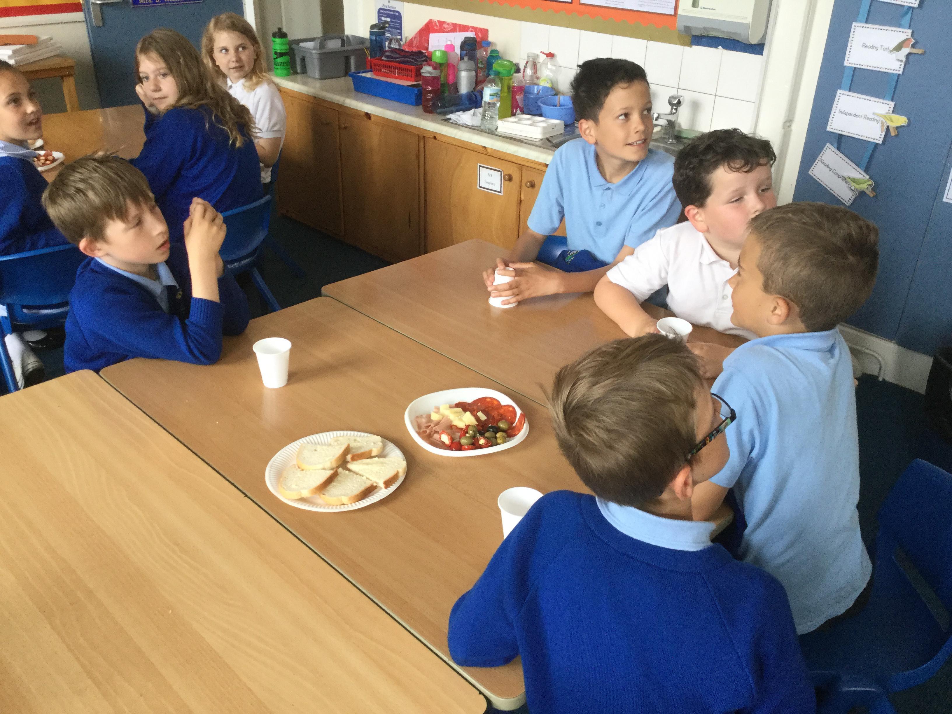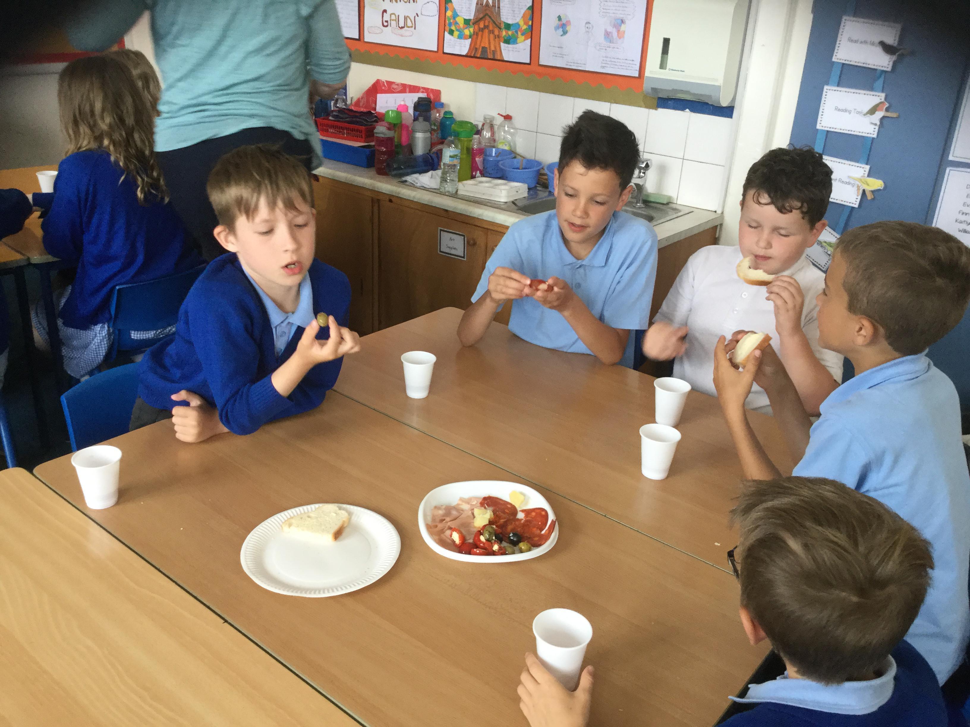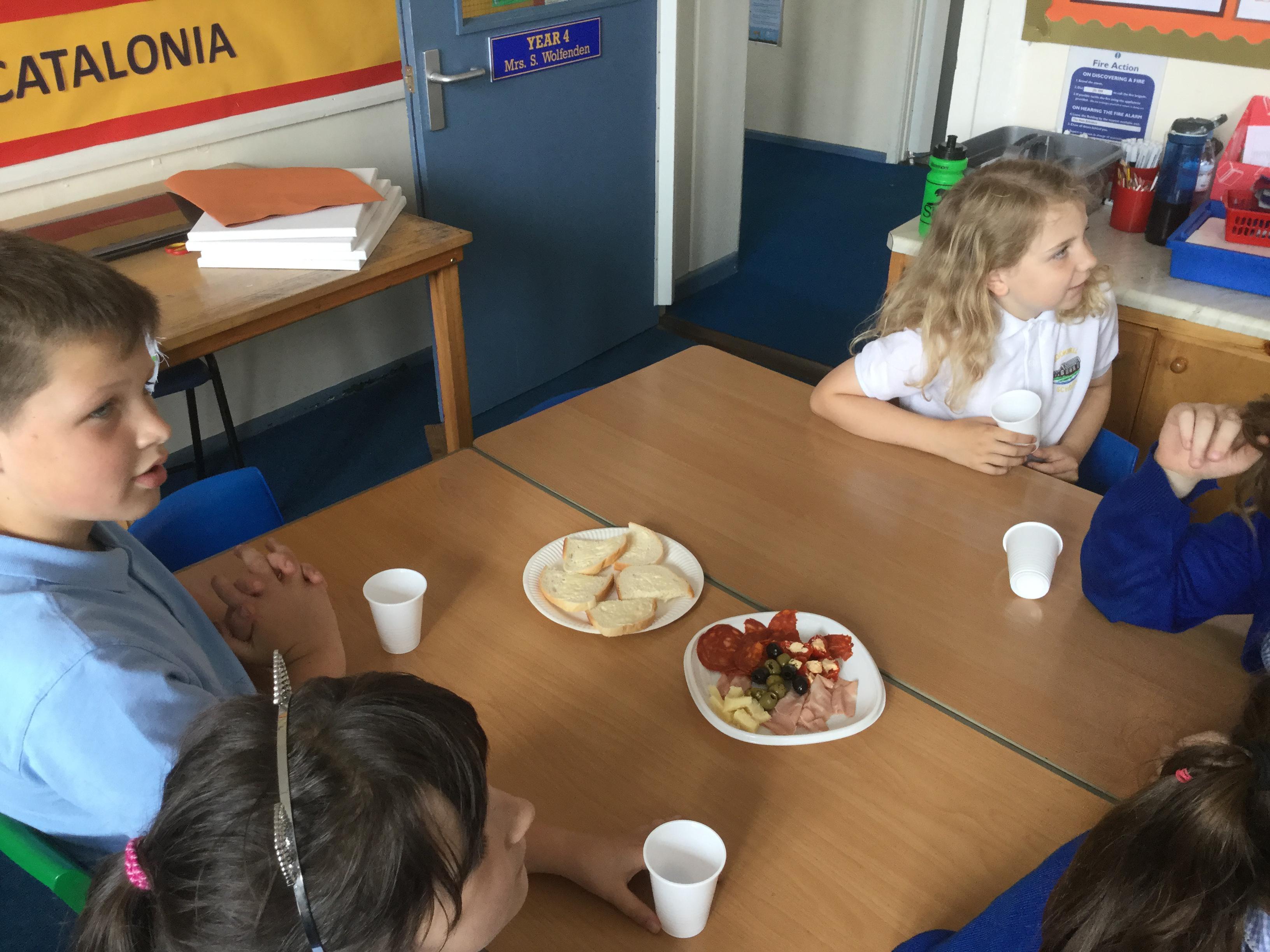 One of our governors, Mr Knewstubb, came into class today to teach the children about the origins of 'tapas'. A fluent speaker of Spanish, Mr Knewstubb had the children fascinated and they quickly learnt some Spanish words and phrases. Then they got to try tapas for themselves, and had a choice of 'wines' (vimto and strawberry squash!). What a lovely cultured afternoon. Gracias, Mr Knewstubb!
