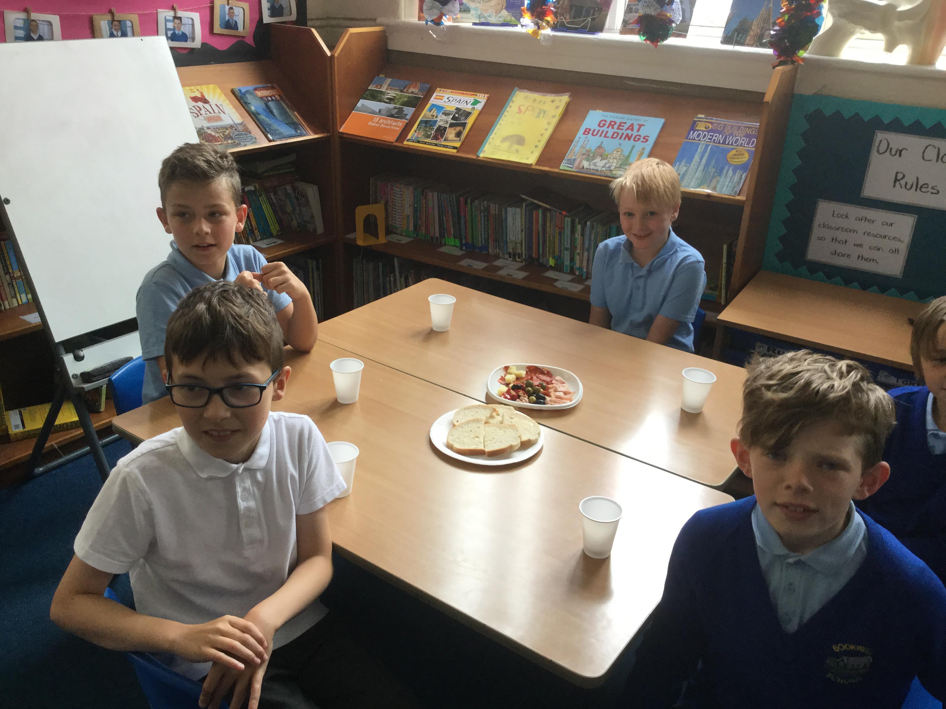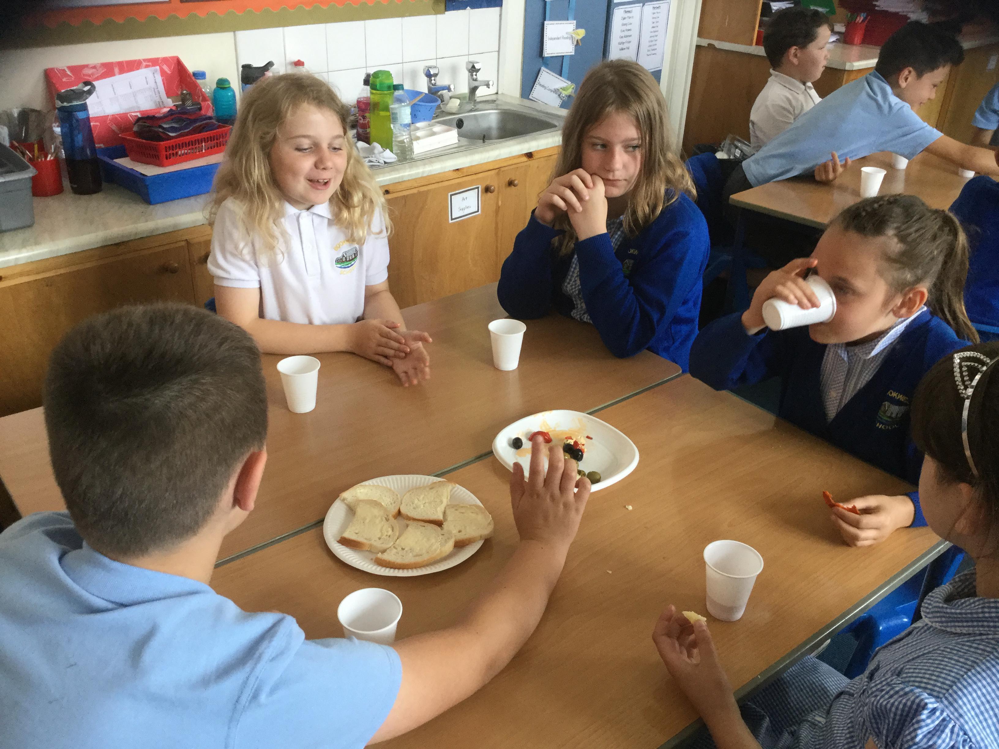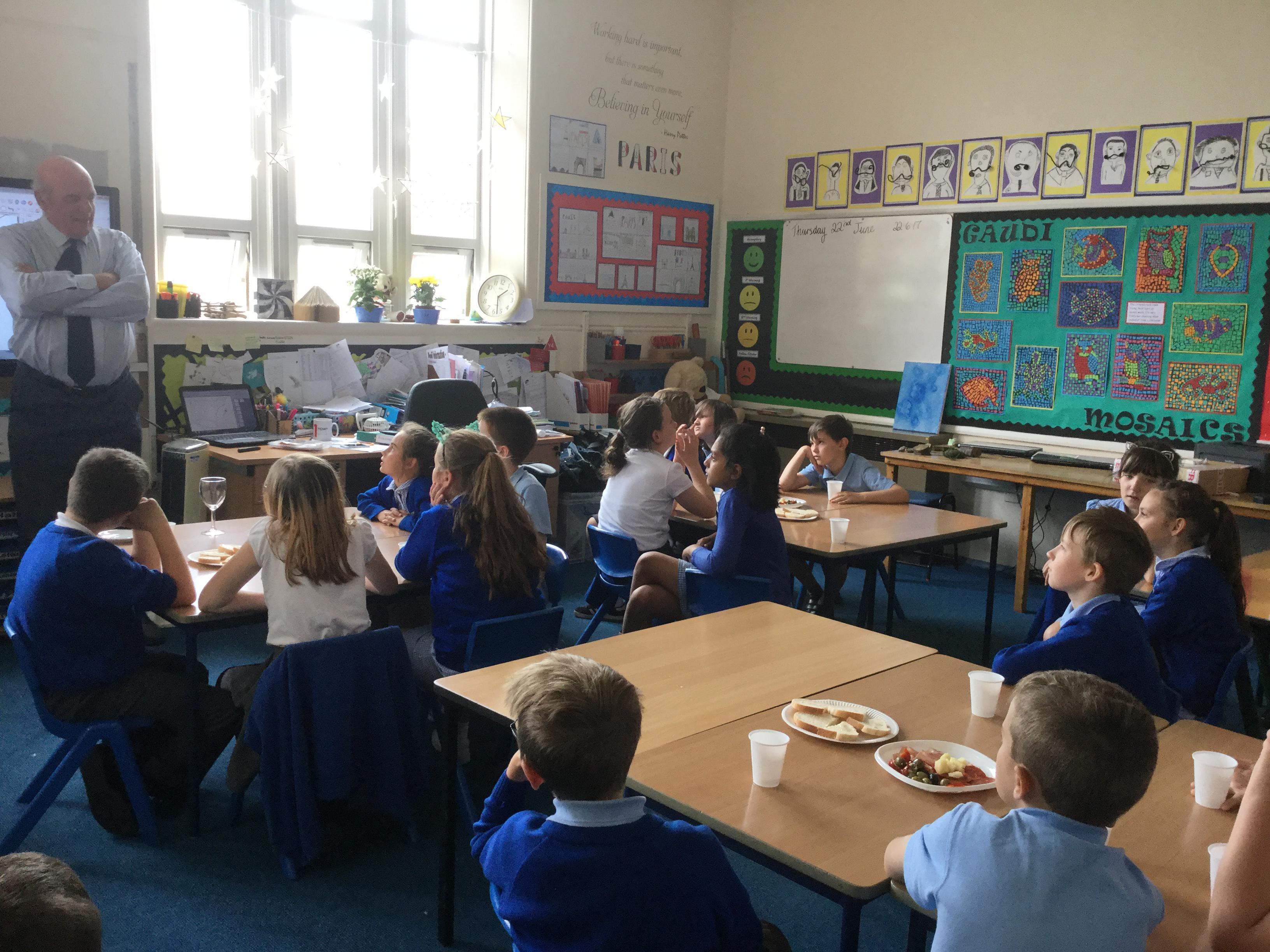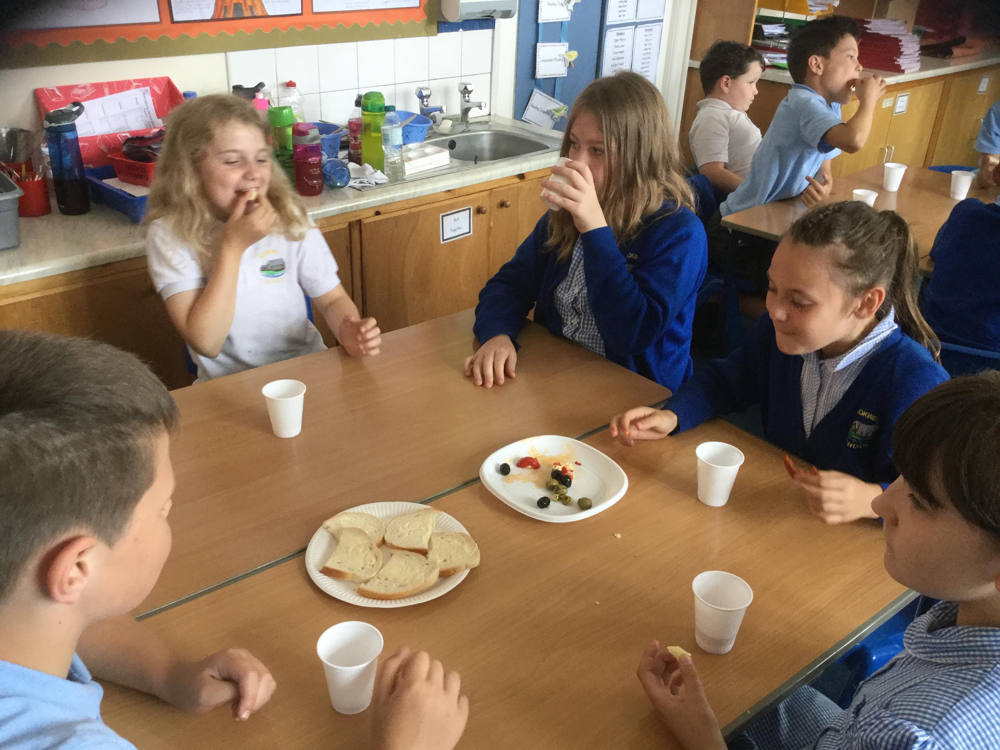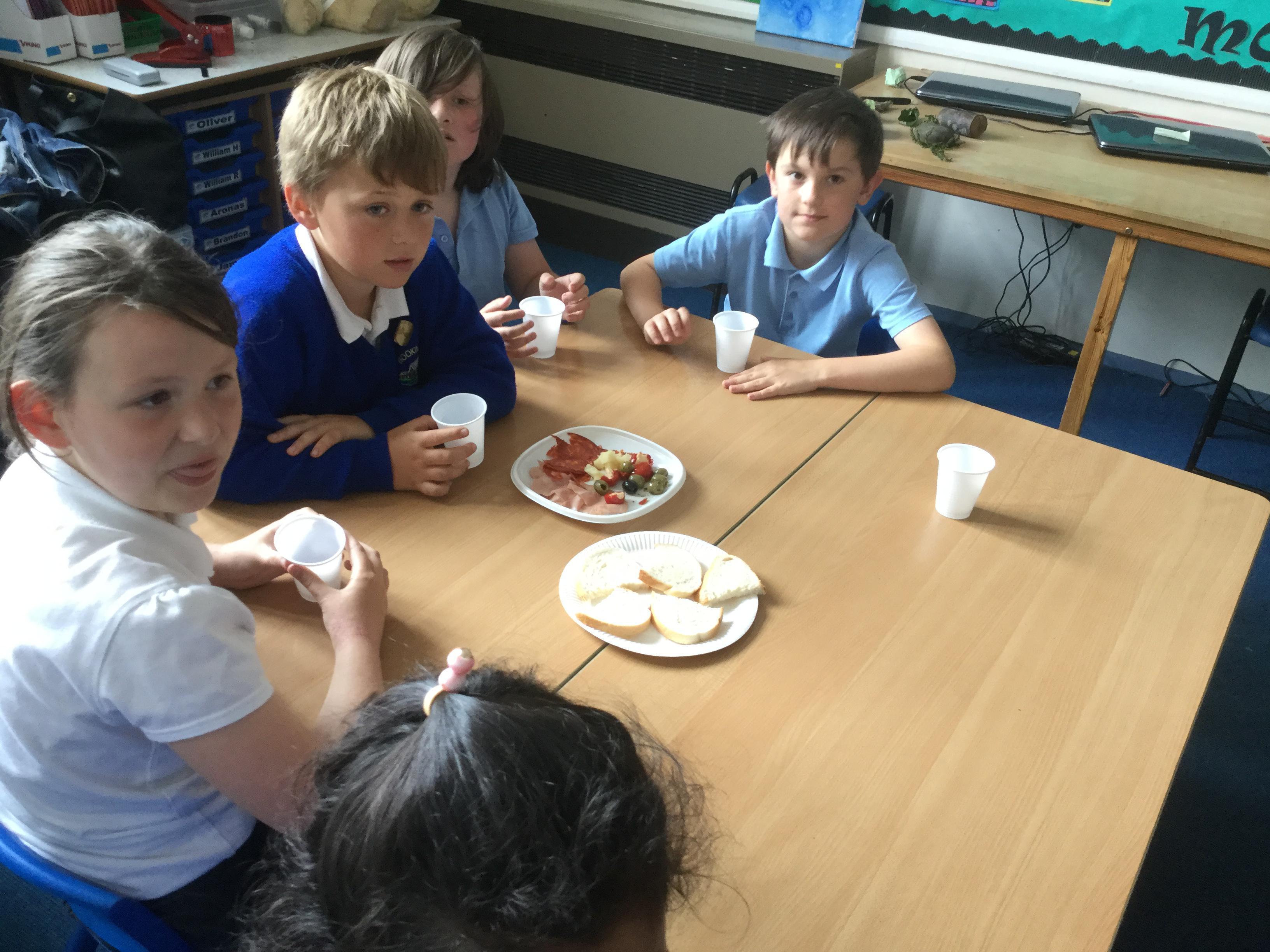 One of our governors, Mr Knewstubb, came into class today to teach the children about the origins of 'tapas'. A fluent speaker of Spanish, Mr Knewstubb had the children fascinated and they quickly learnt some Spanish words and phrases. Then they got to try tapas for themselves, and had a choice of 'wines' (vimto and strawberry squash!). What a lovely cultured afternoon. Gracias, Mr Knewstubb!