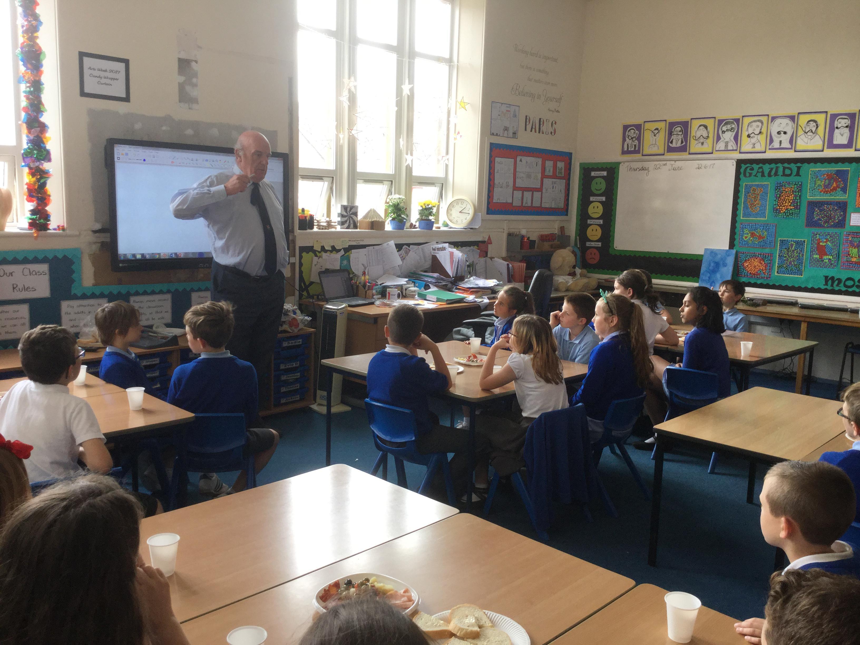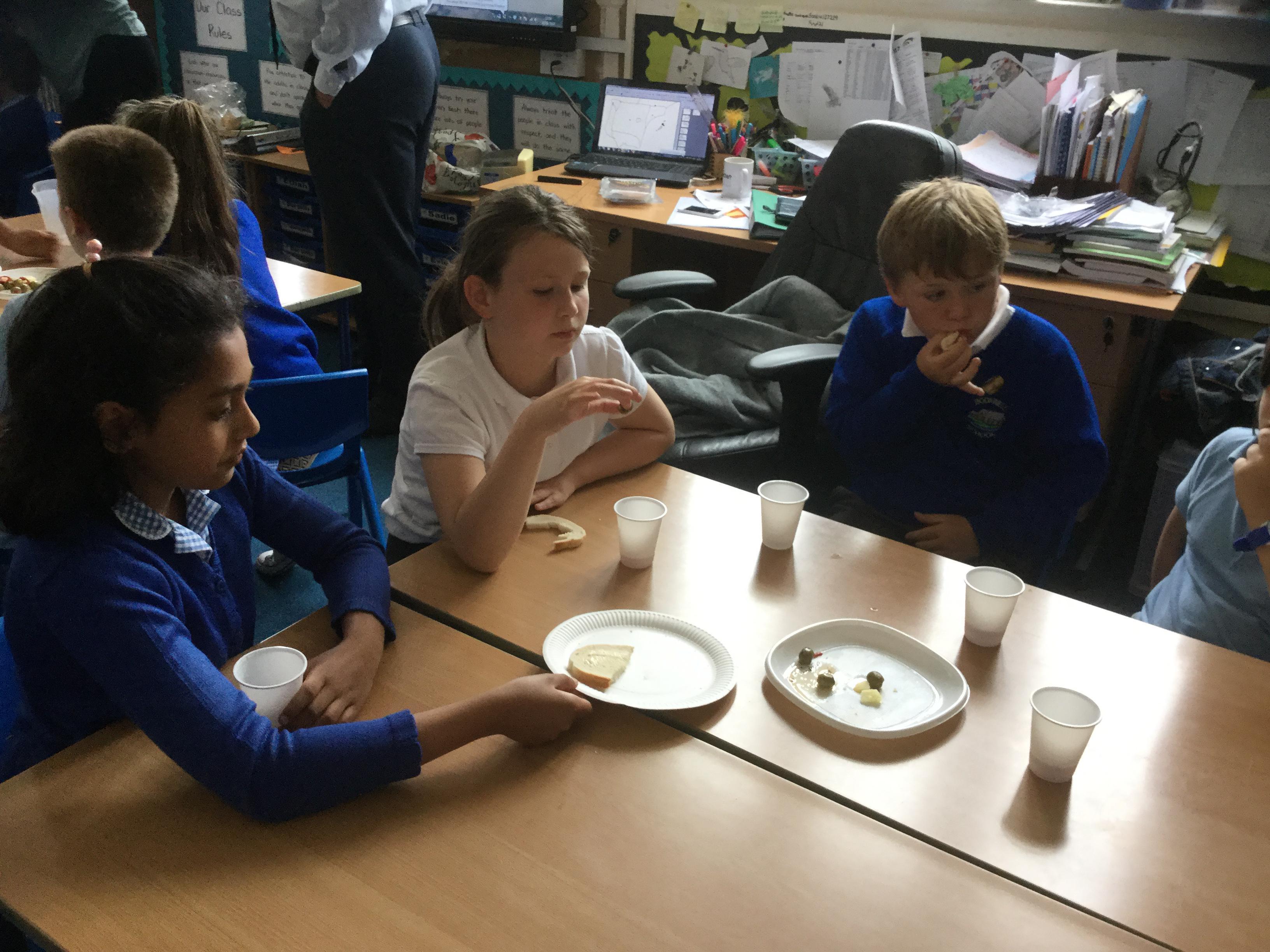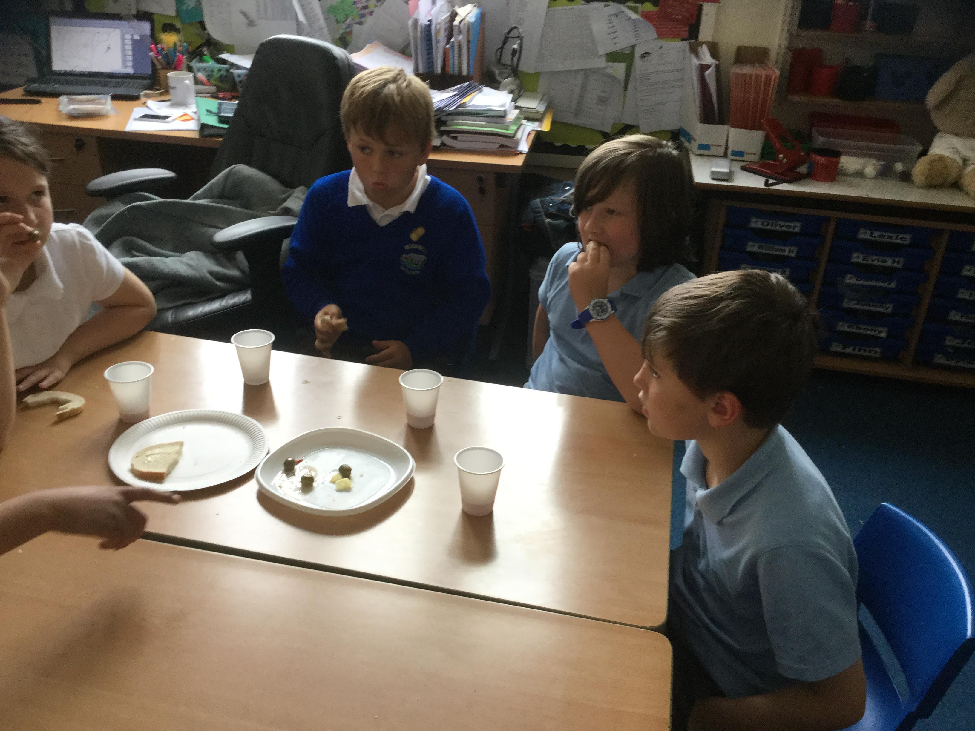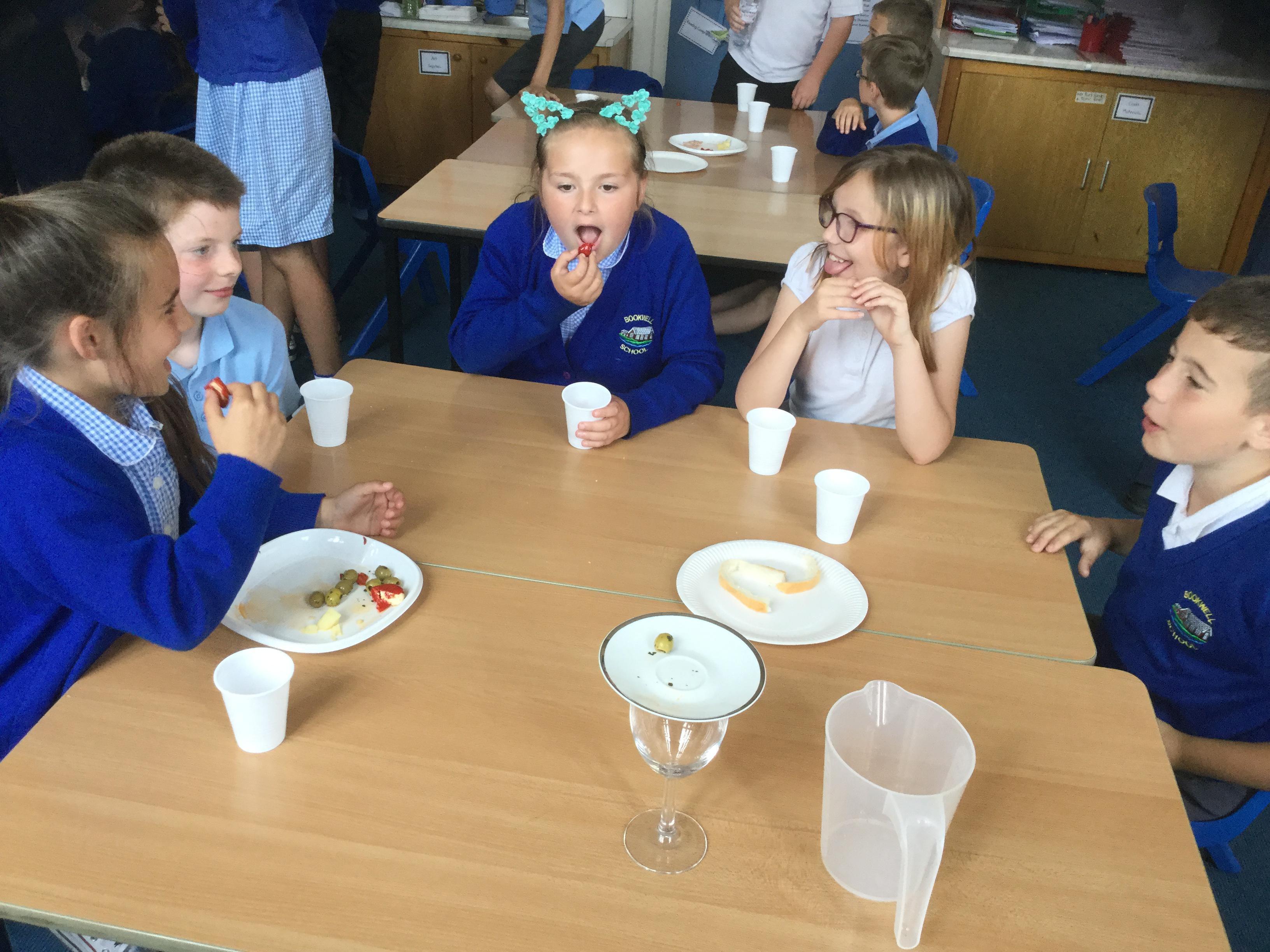 One of our governors, Mr Knewstubb, came into class today to teach the children about the origins of 'tapas'. A fluent speaker of Spanish, Mr Knewstubb had the children fascinated and they quickly learnt some Spanish words and phrases. Then they got to try tapas for themselves, and had a choice of 'wines' (vimto and strawberry squash!). What a lovely cultured afternoon. Gracias, Mr Knewstubb!