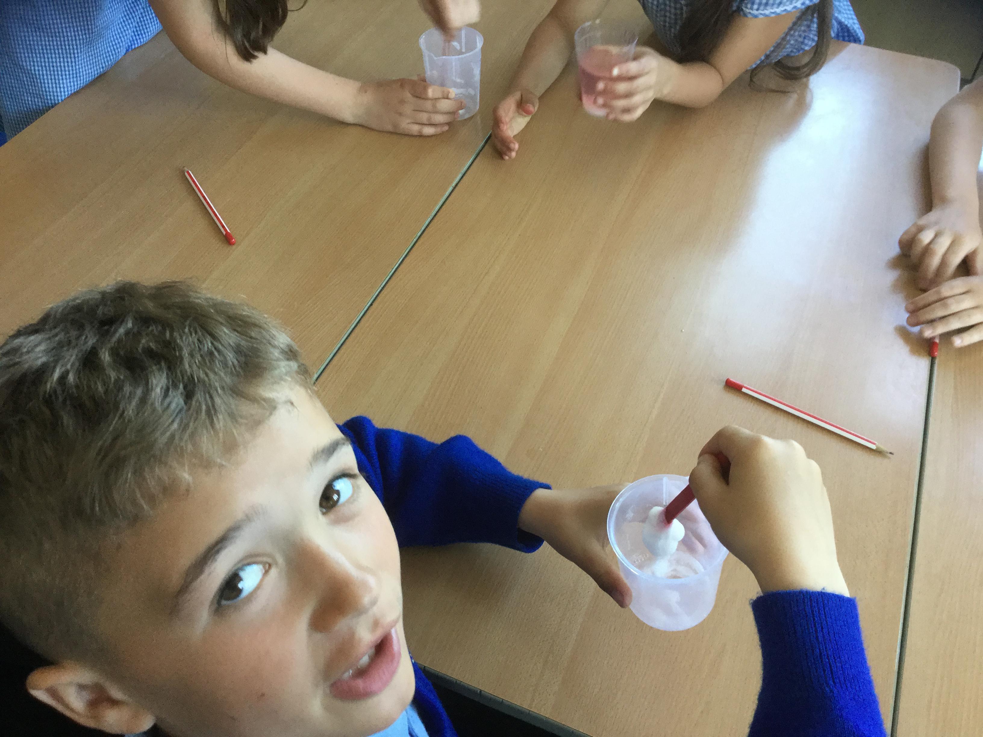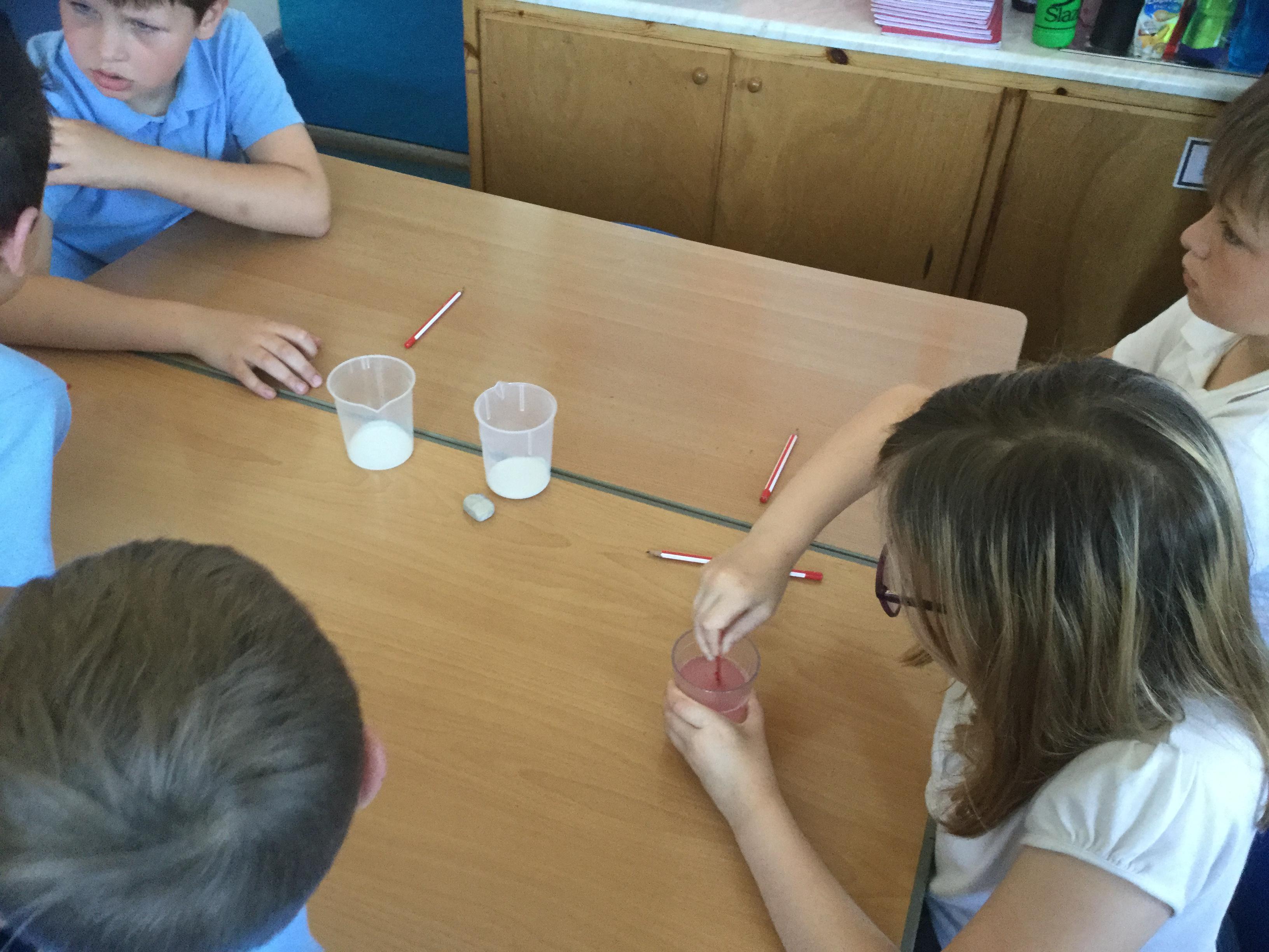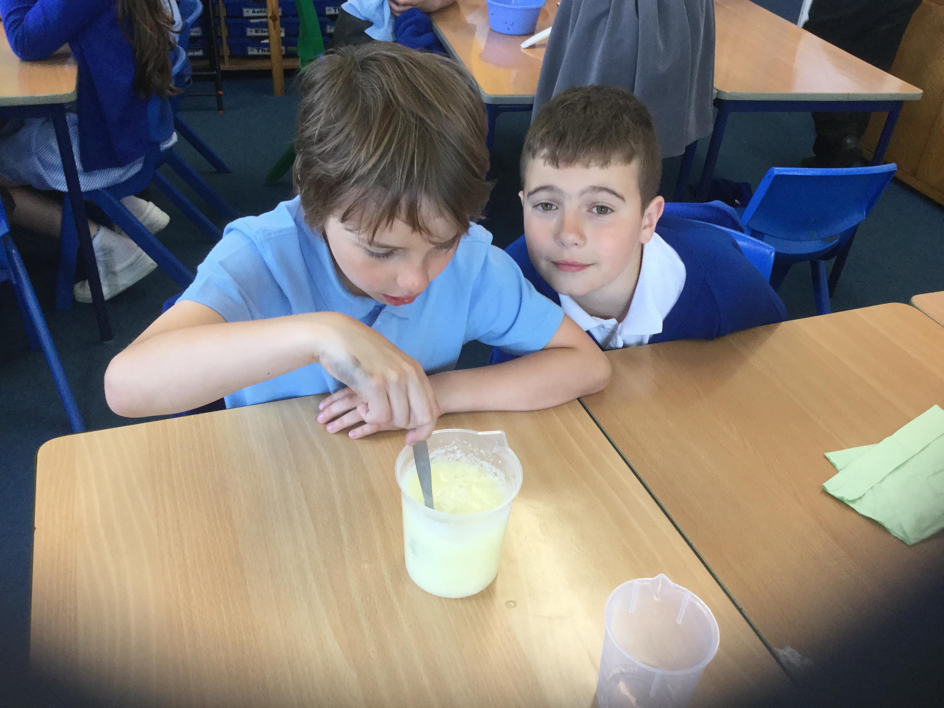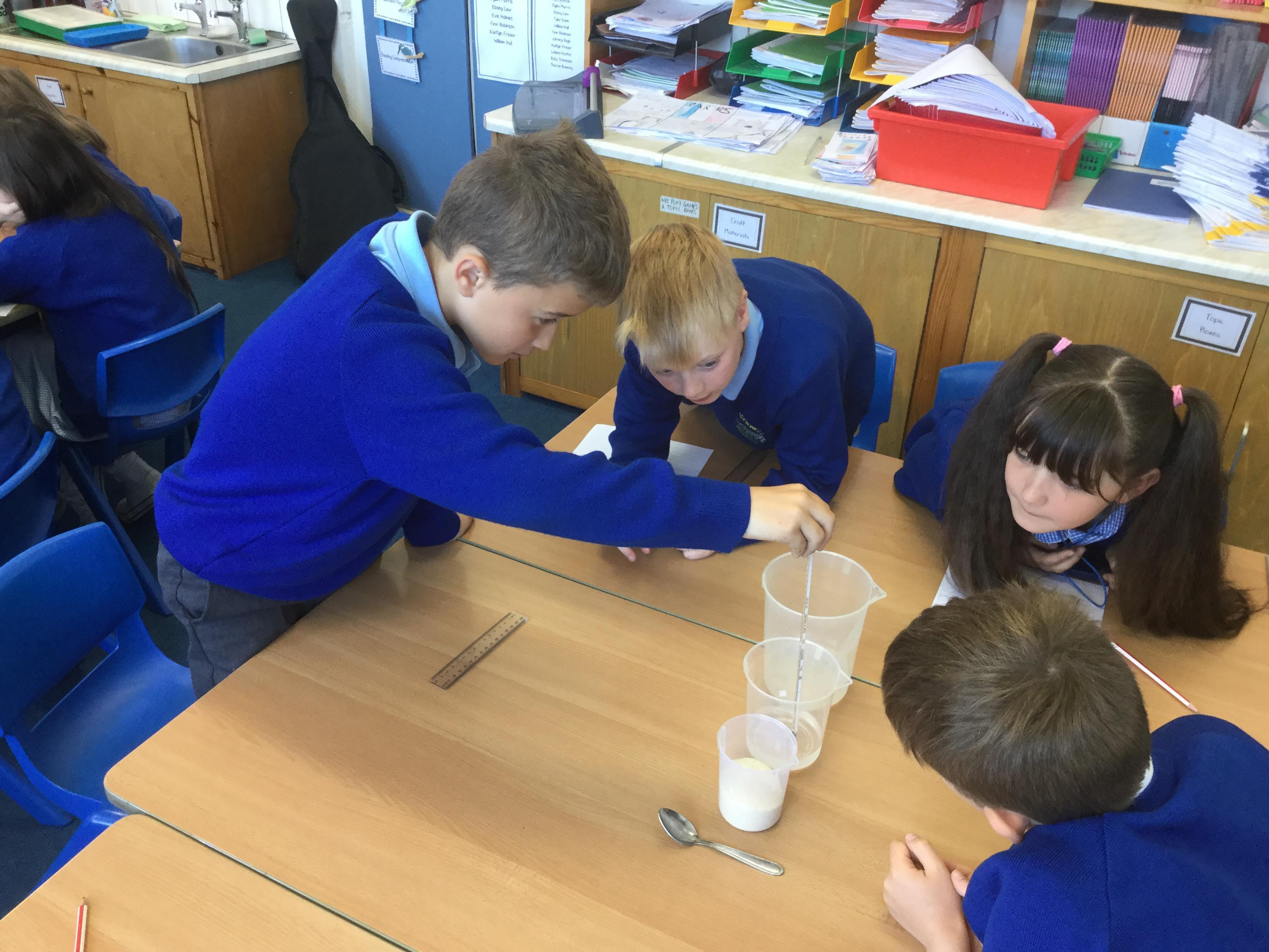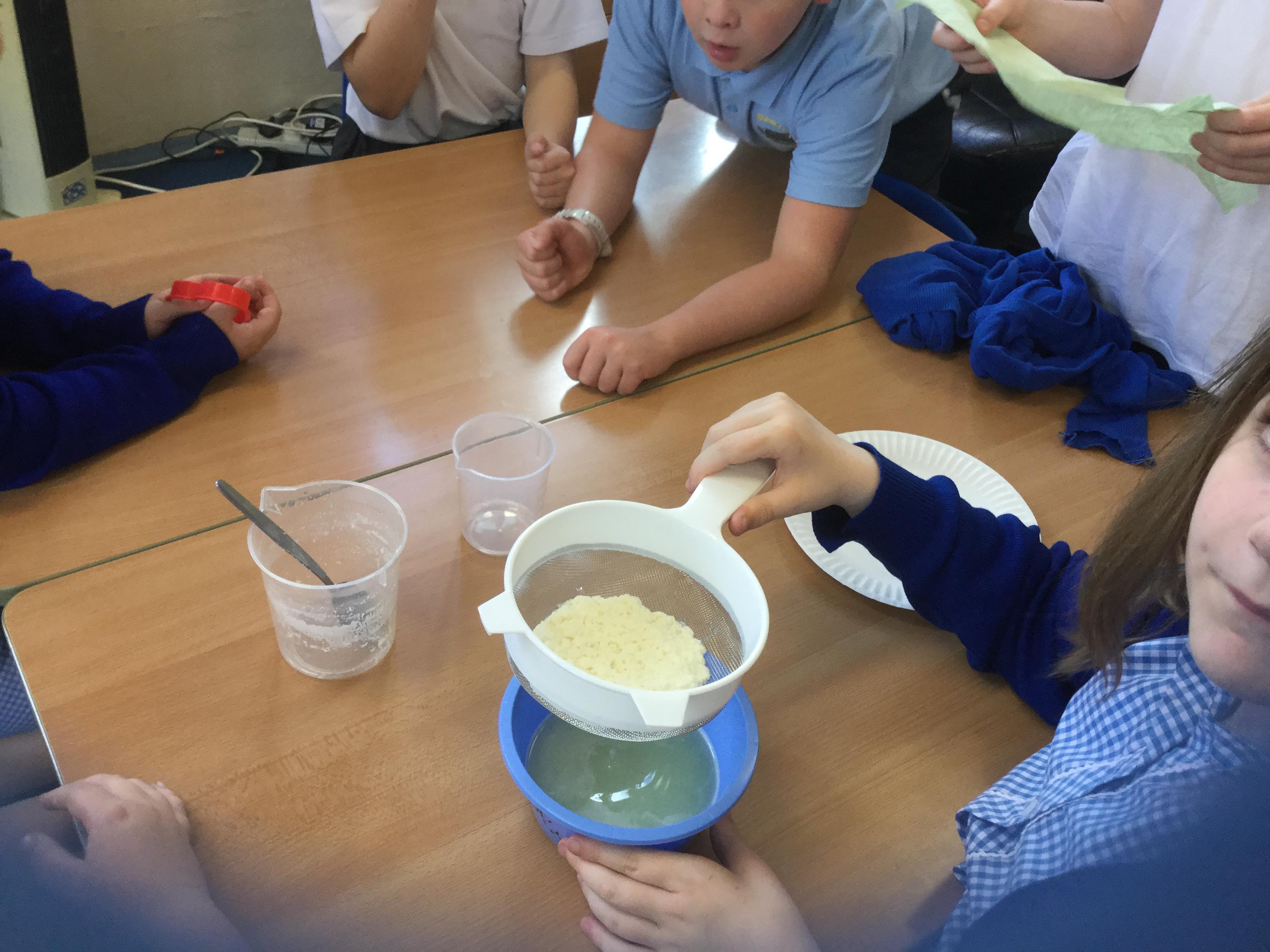 In Science we have been looking at reversible and irreversible changes. We carried out an investigation to see how temperature affected how quickly sugar dissolves (reversible with evaporation) and made plastic using milk and vinegar (irreversible).  It was a lot of fun but a little smelly!