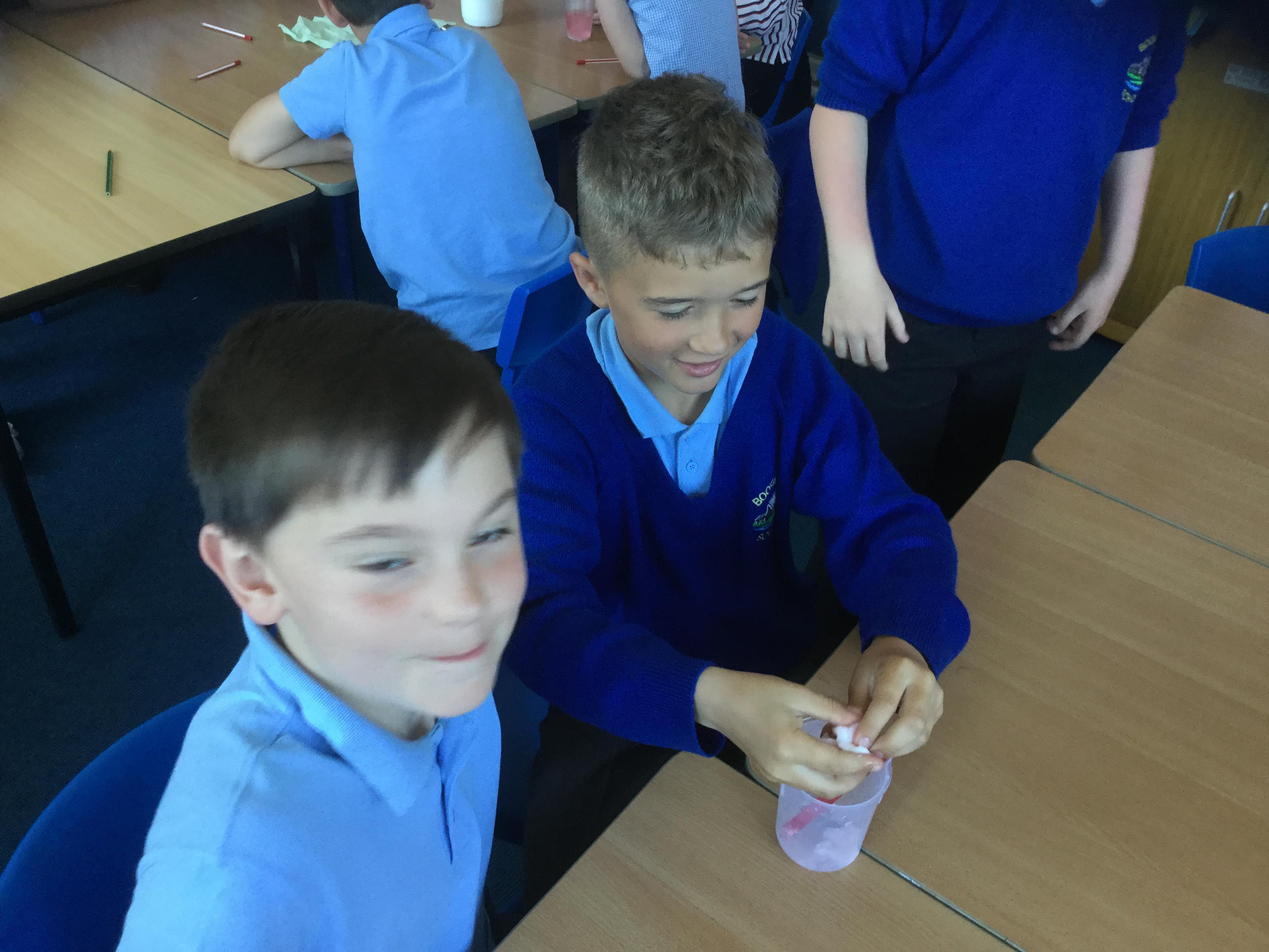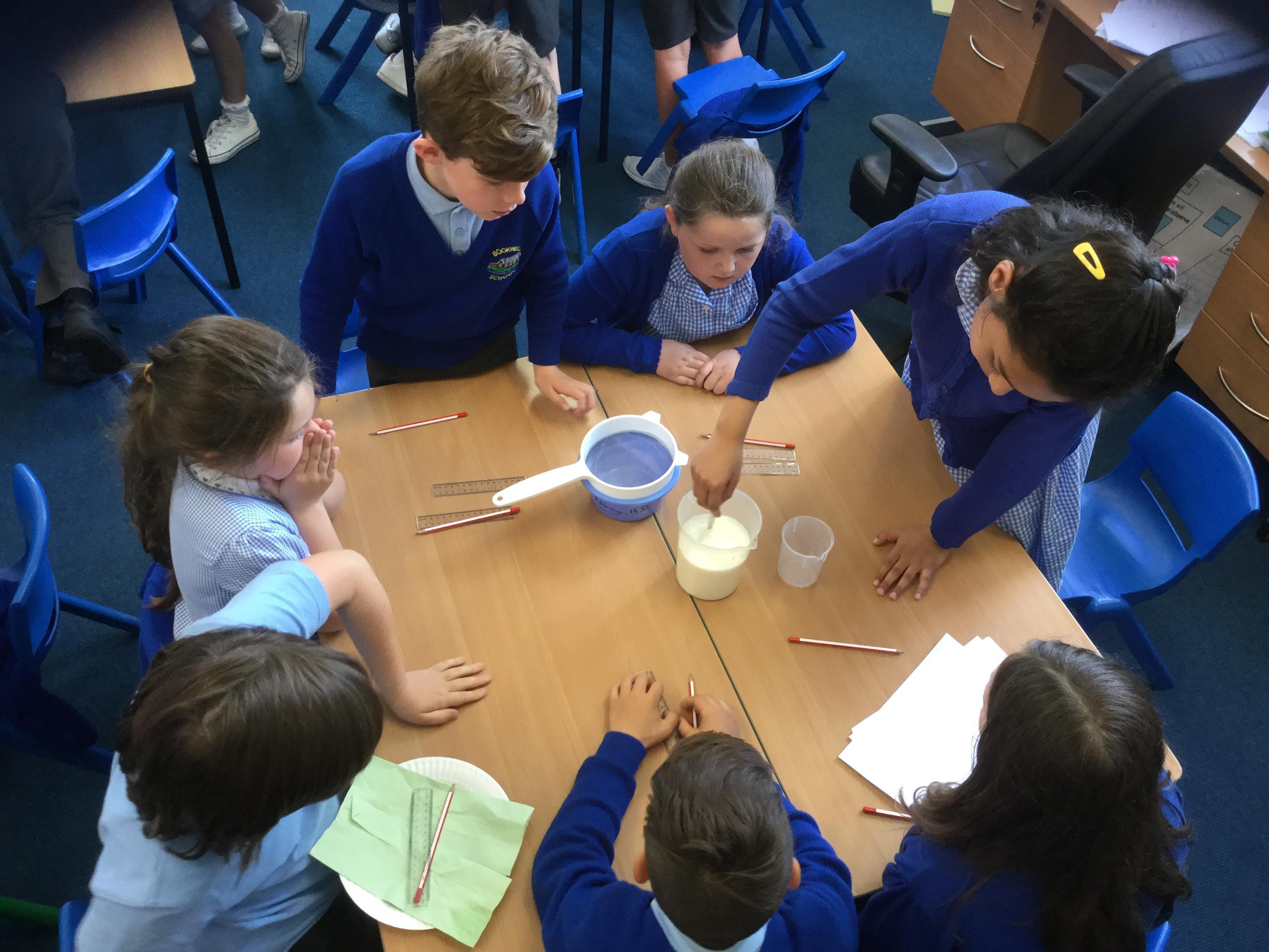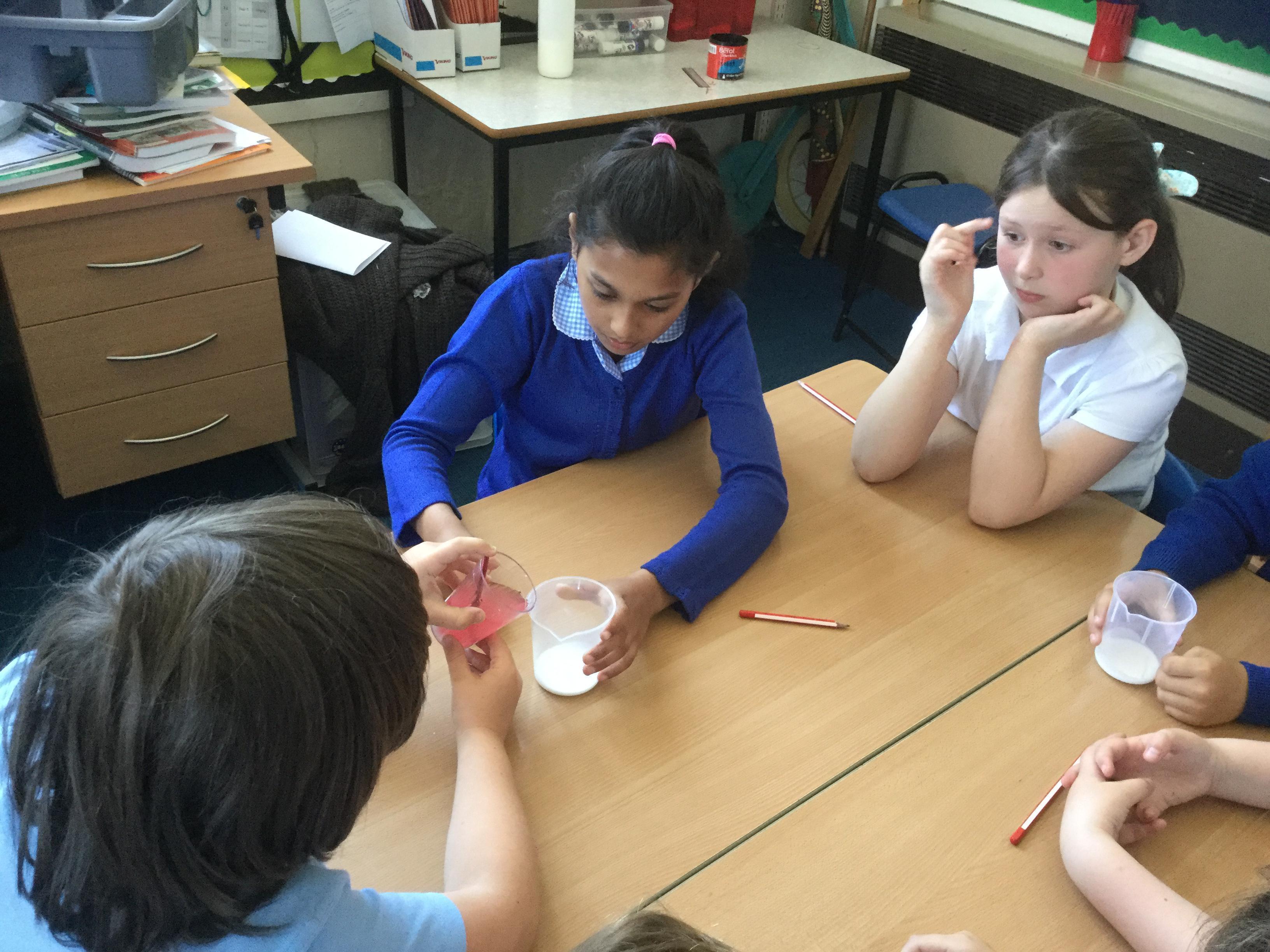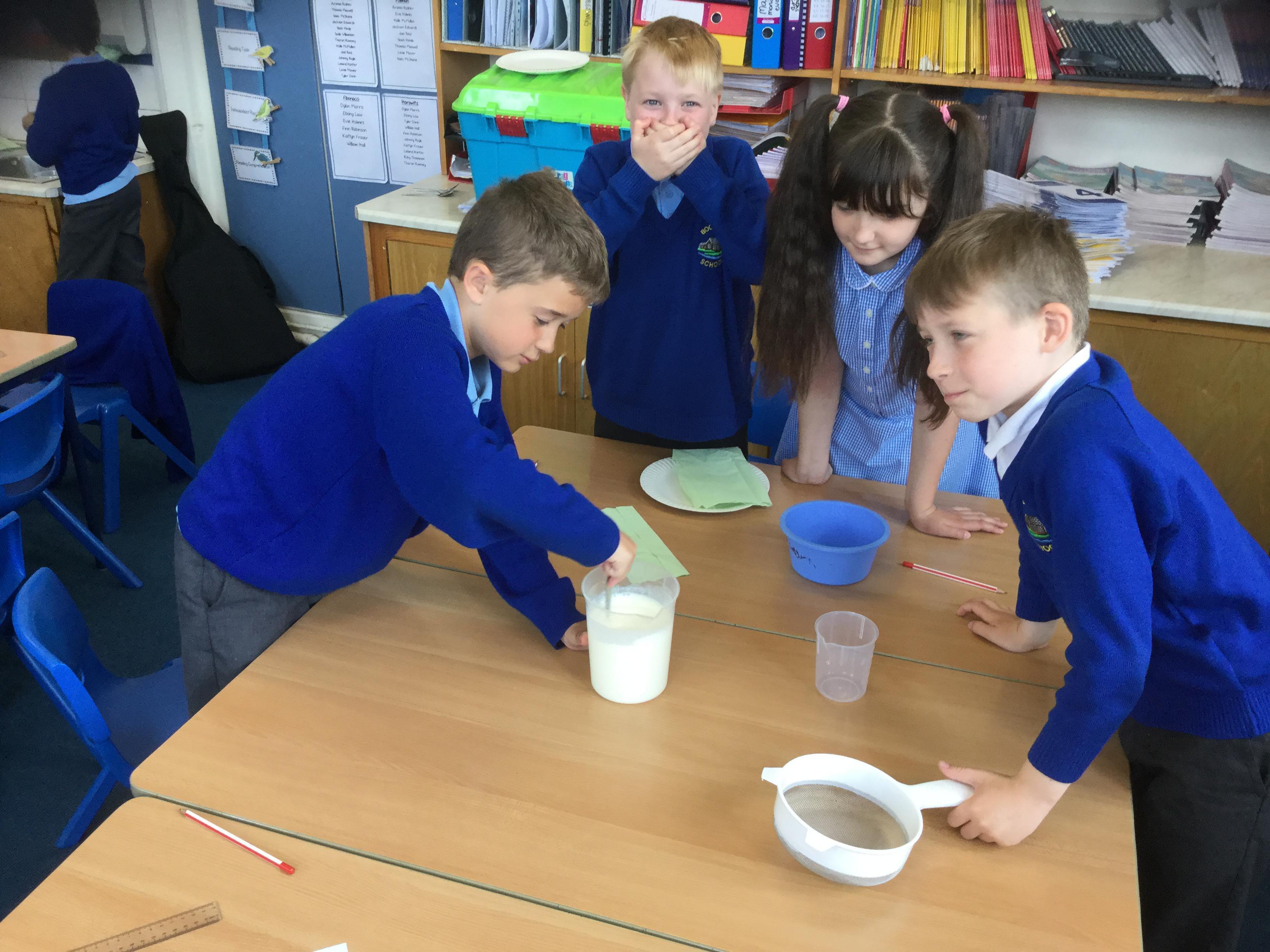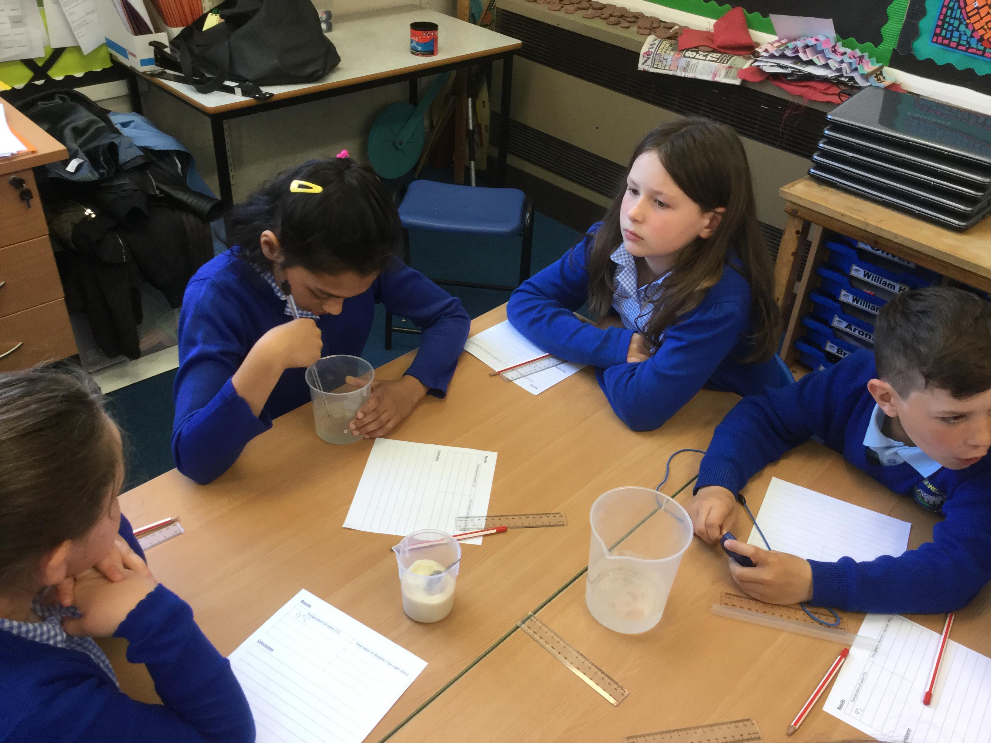 In Science we have been looking at reversible and irreversible changes. We carried out an investigation to see how temperature affected how quickly sugar dissolves (reversible with evaporation) and made plastic using milk and vinegar (irreversible).  It was a lot of fun but a little smelly!