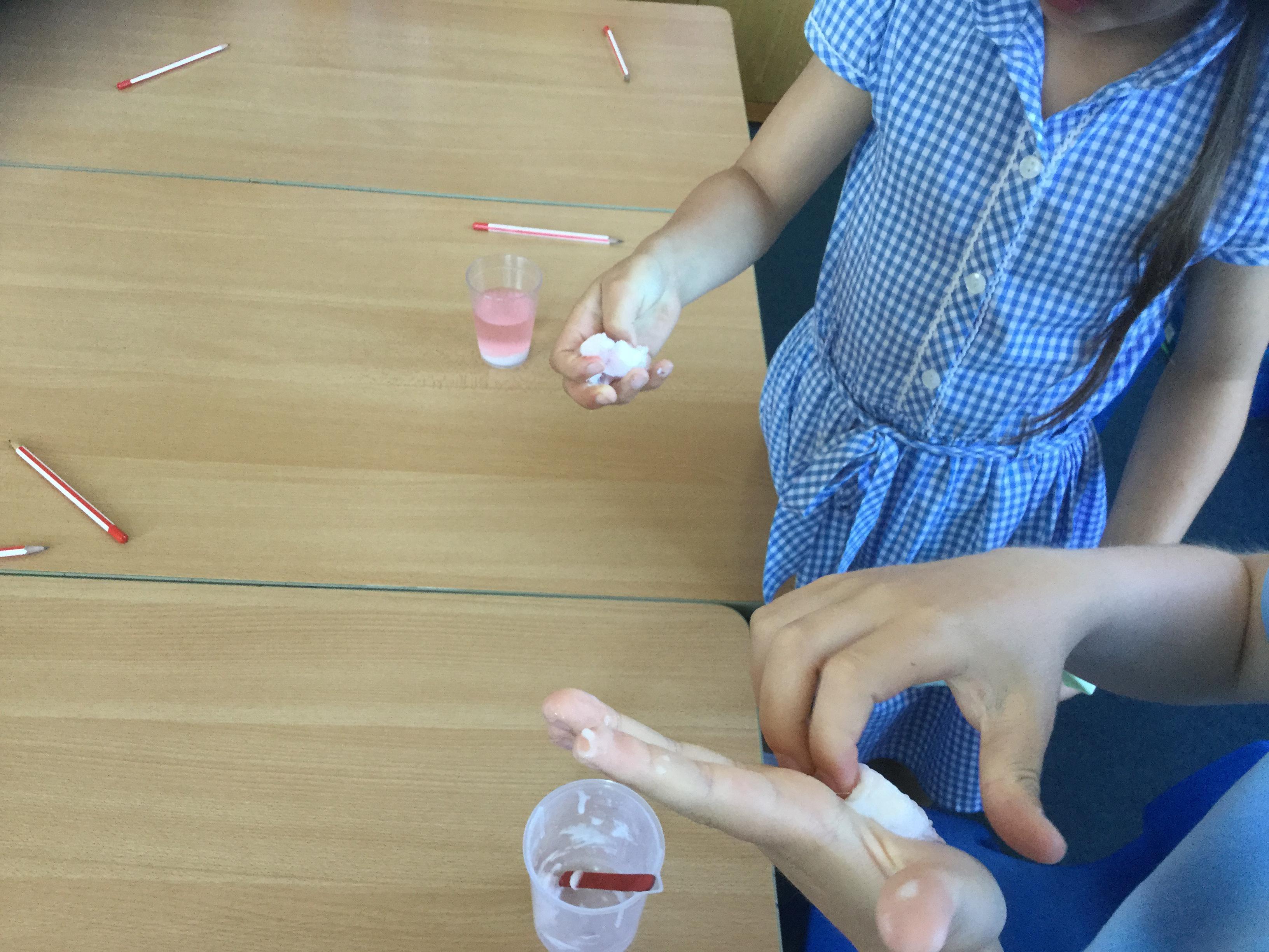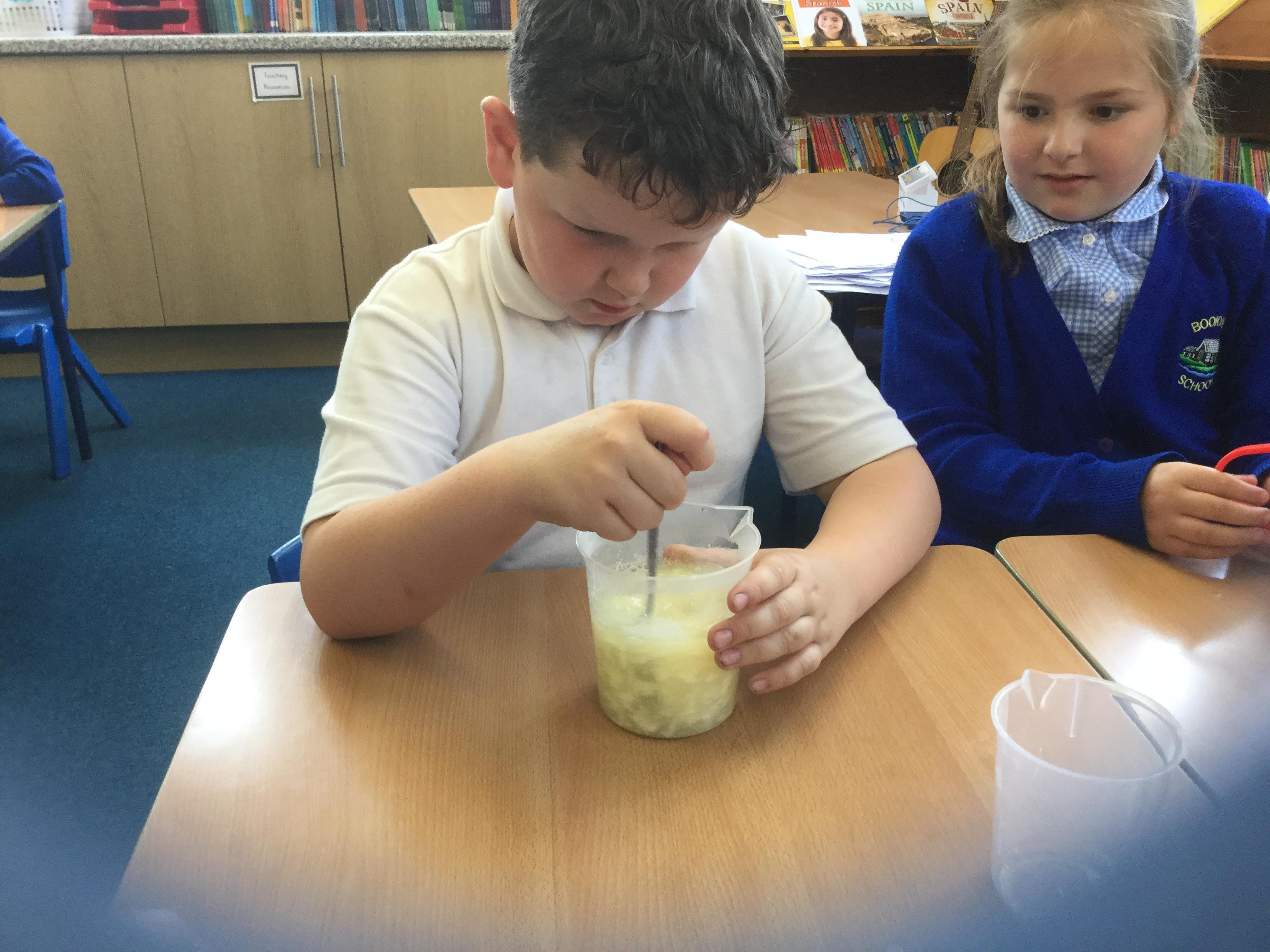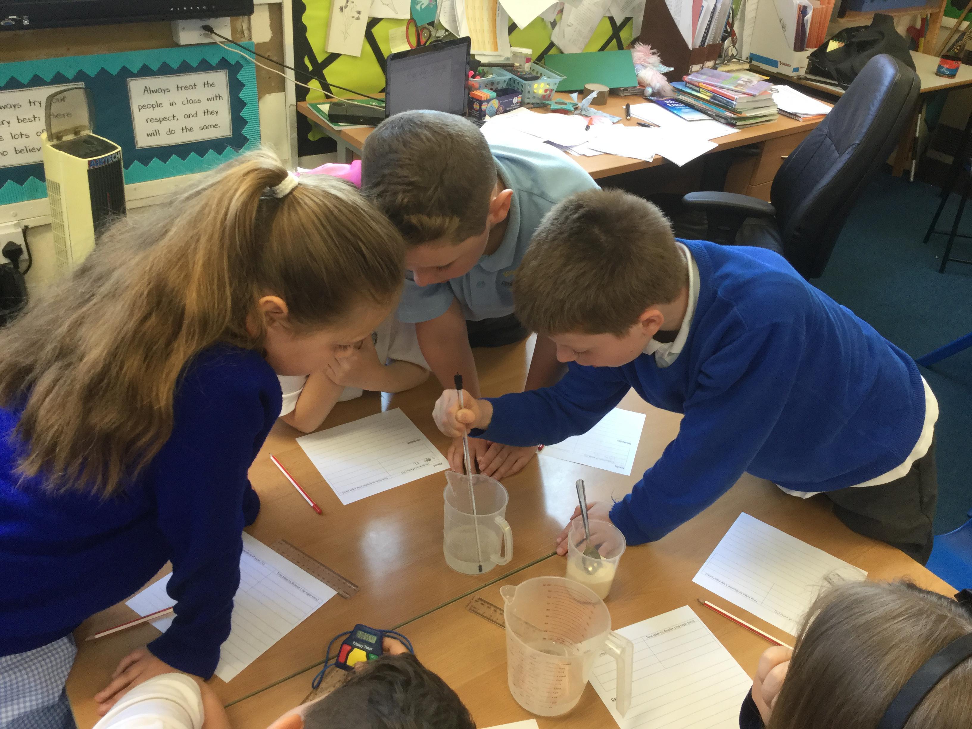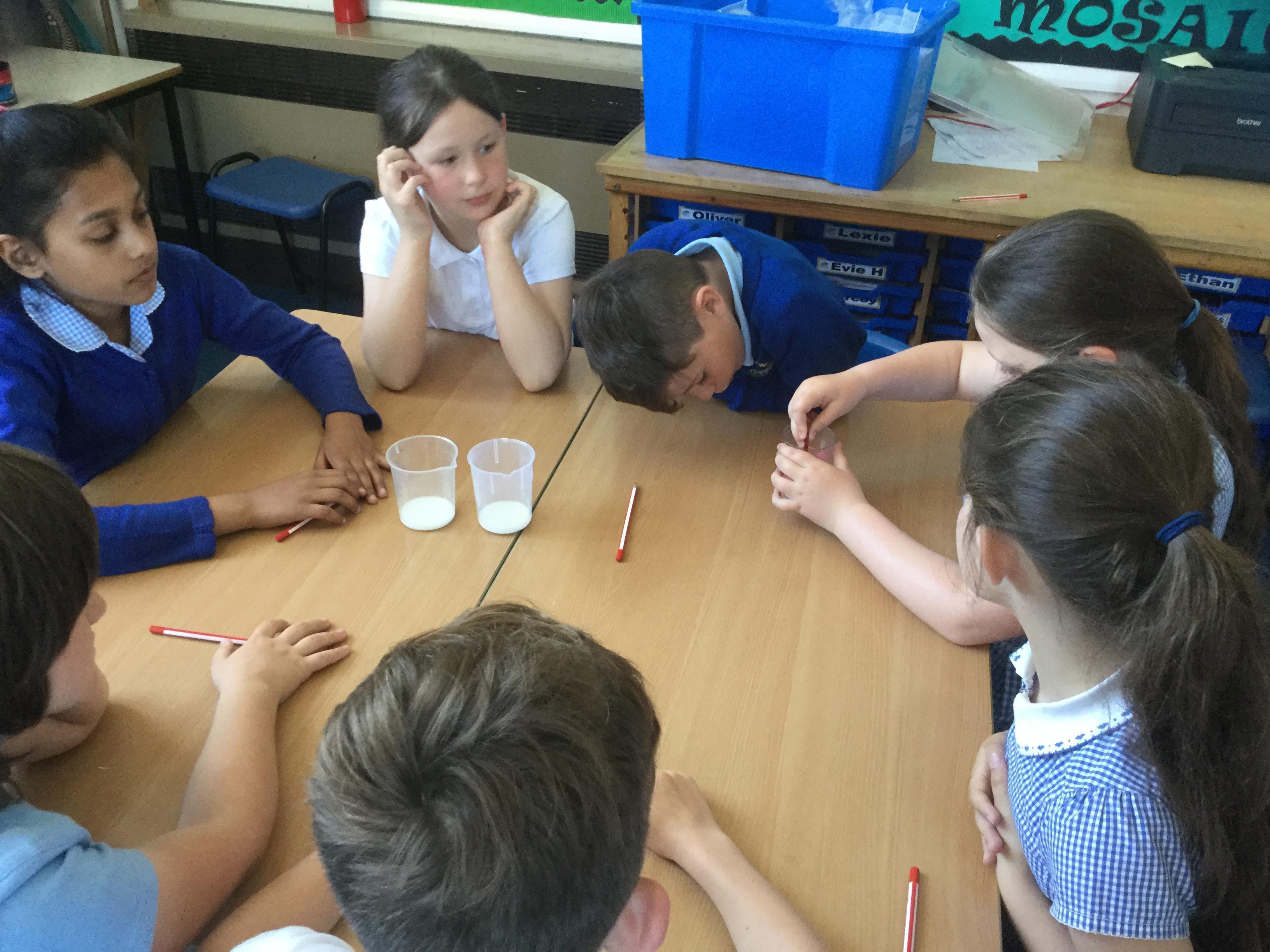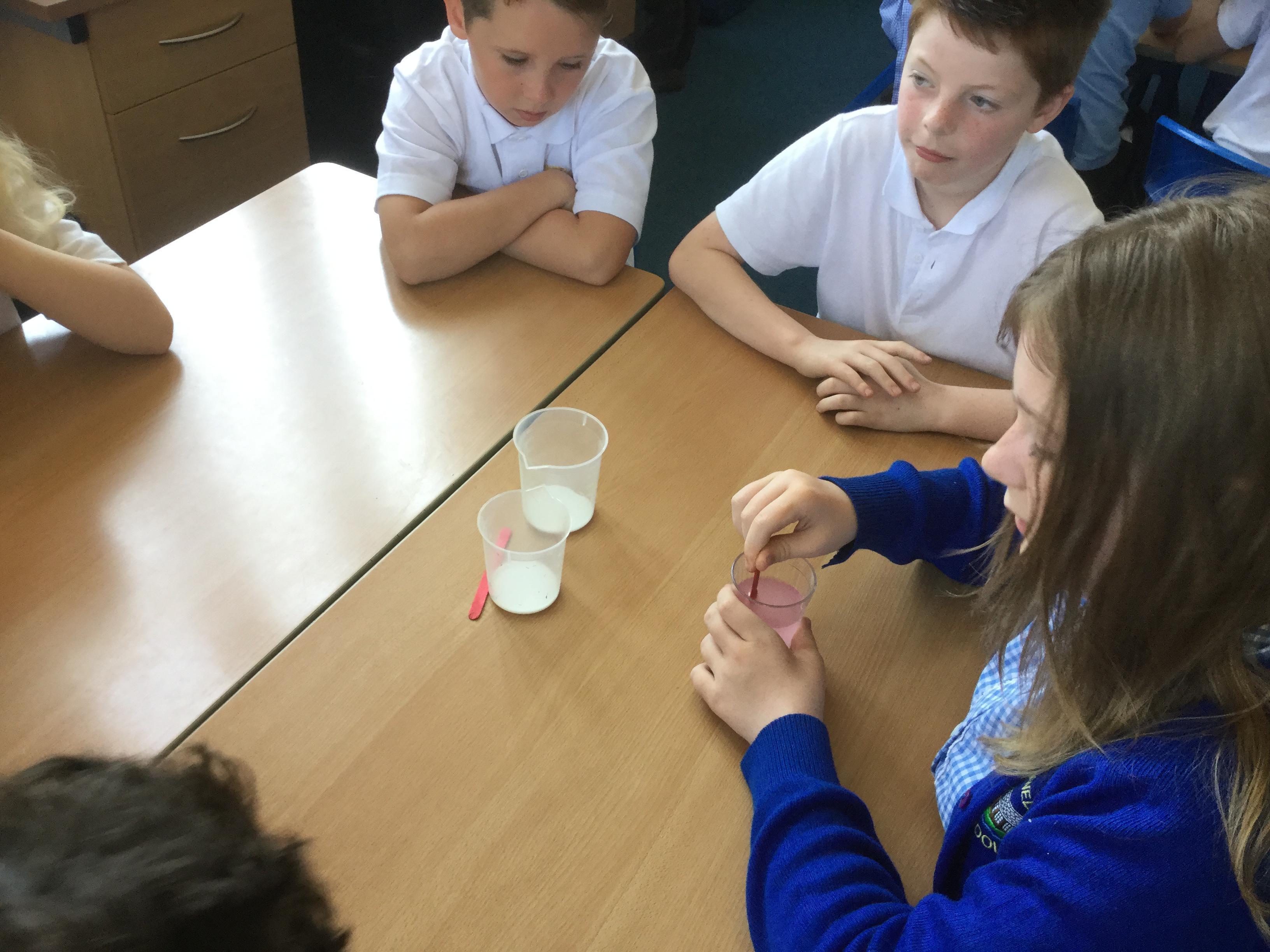 In Science we have been looking at reversible and irreversible changes. We carried out an investigation to see how temperature affected how quickly sugar dissolves (reversible with evaporation) and made plastic using milk and vinegar (irreversible).  It was a lot of fun but a little smelly!