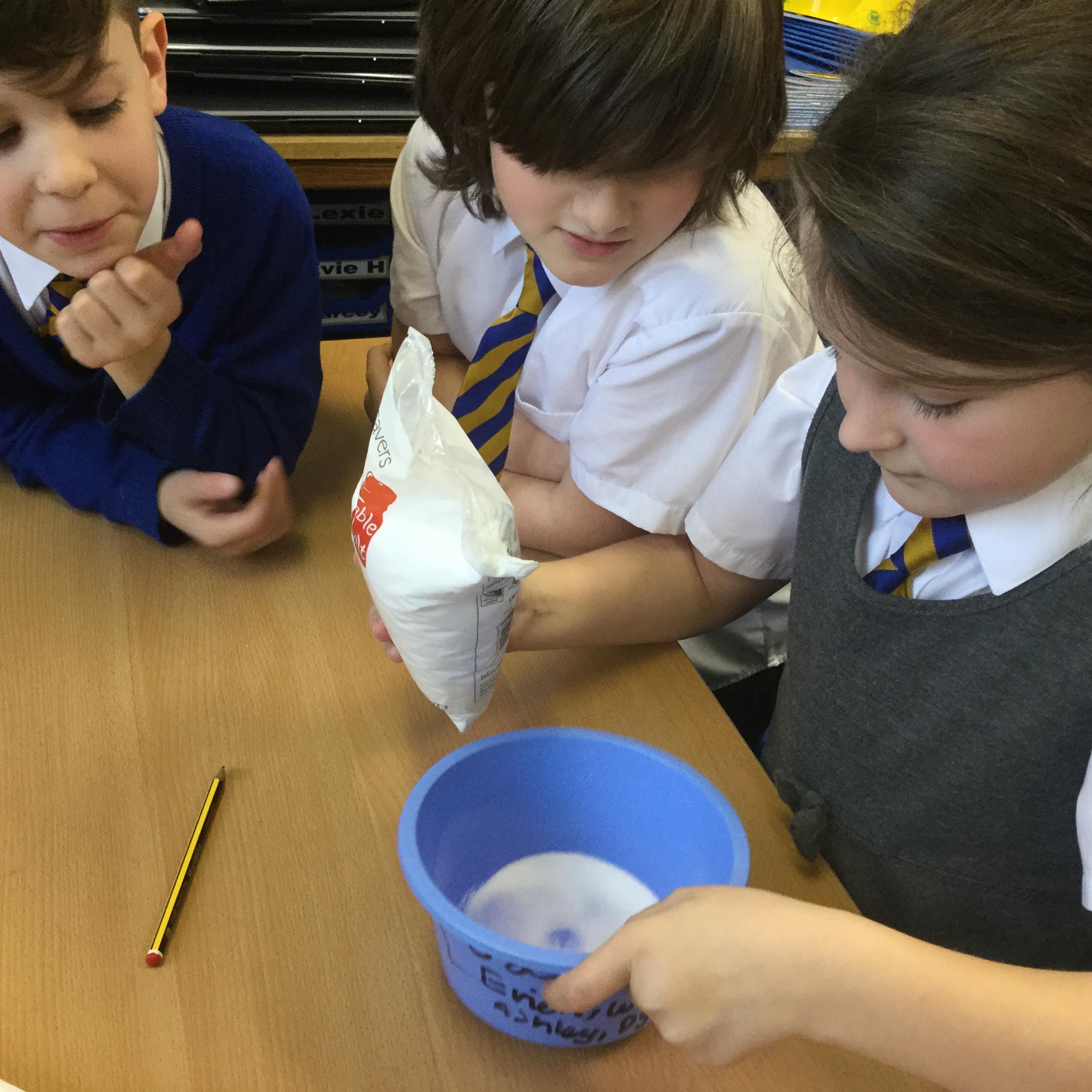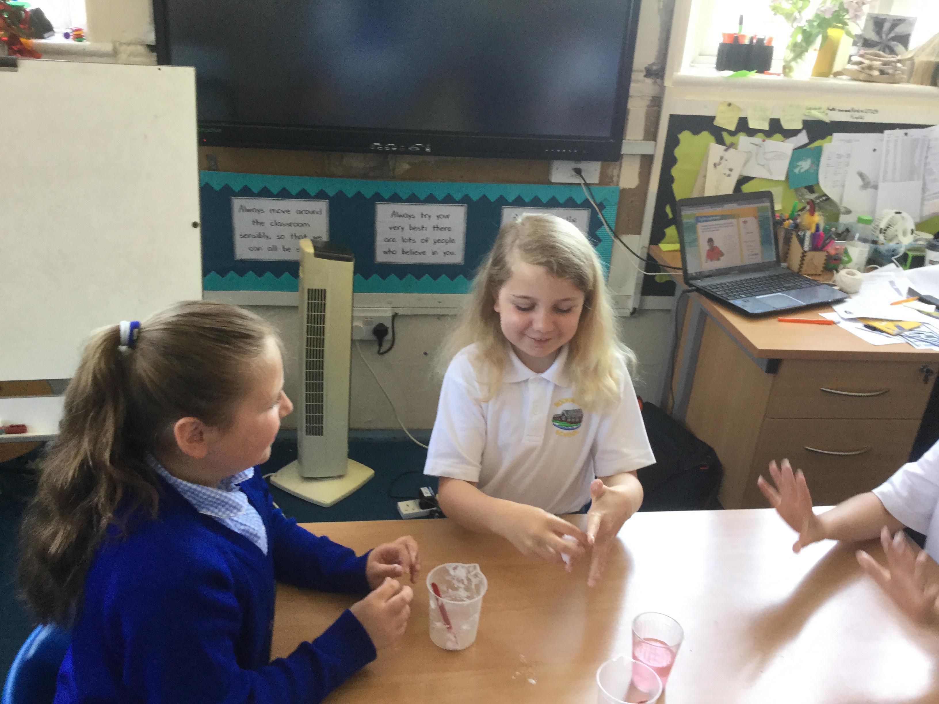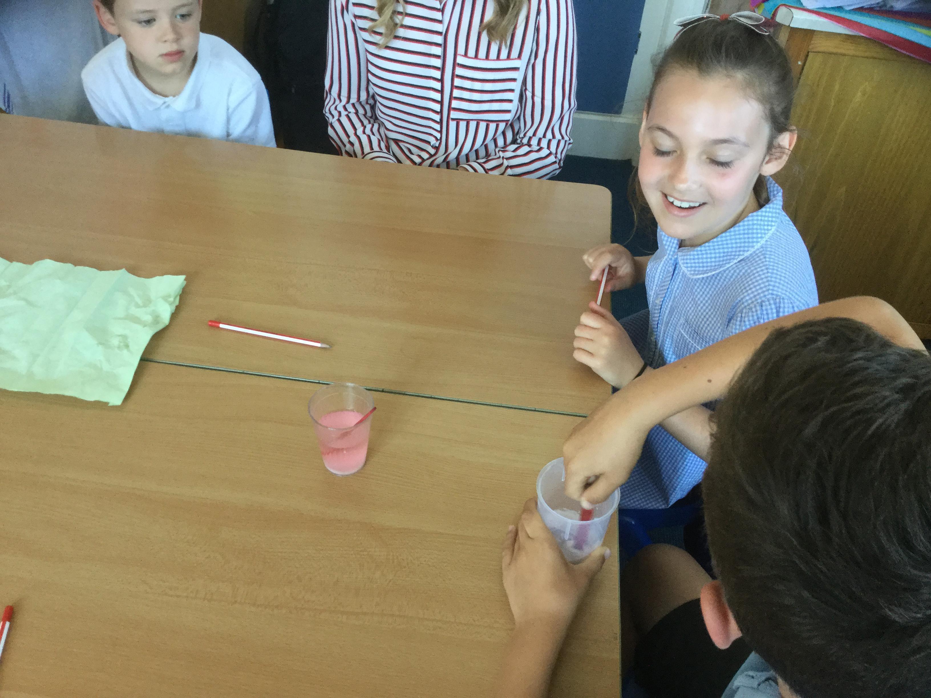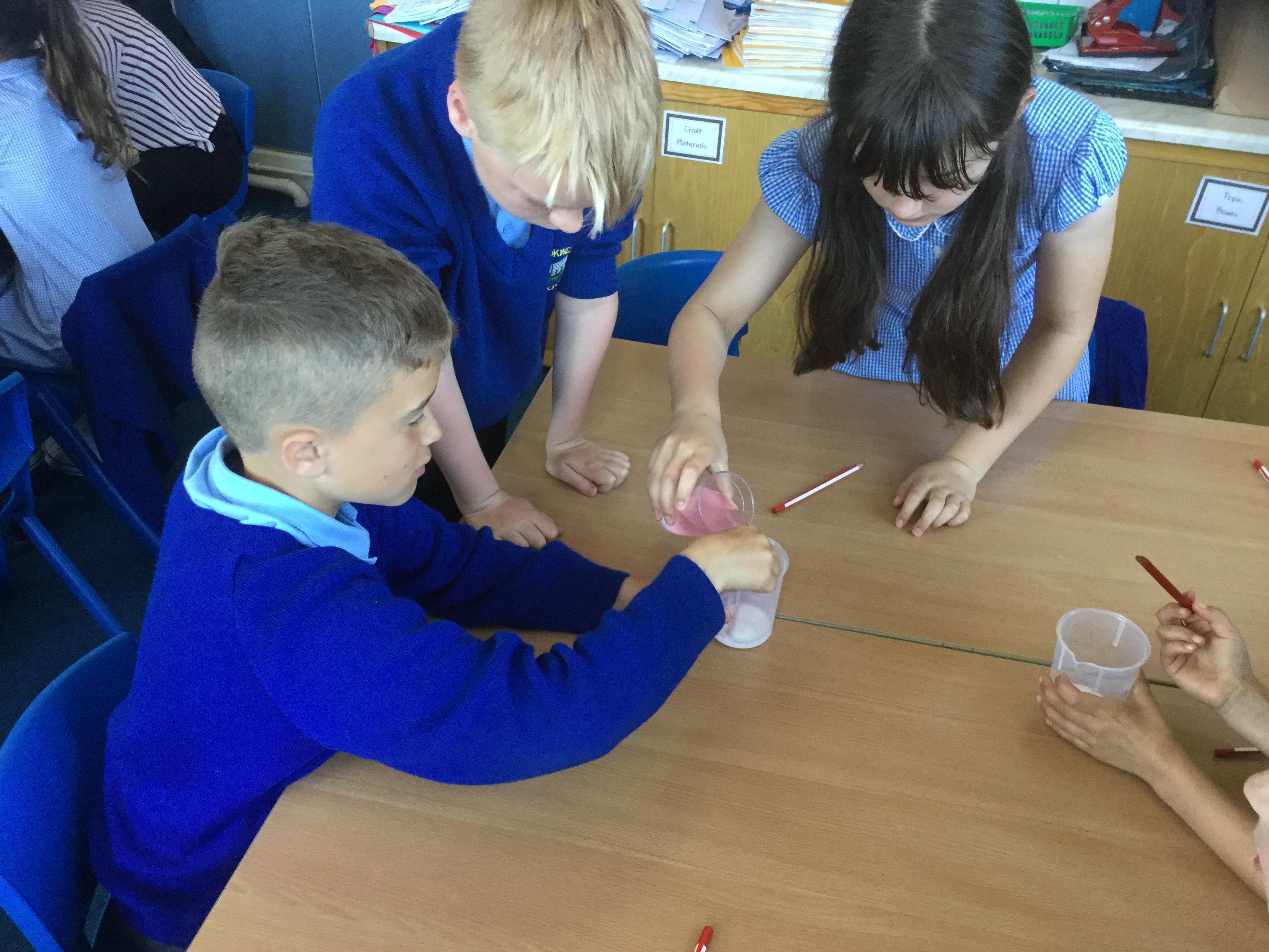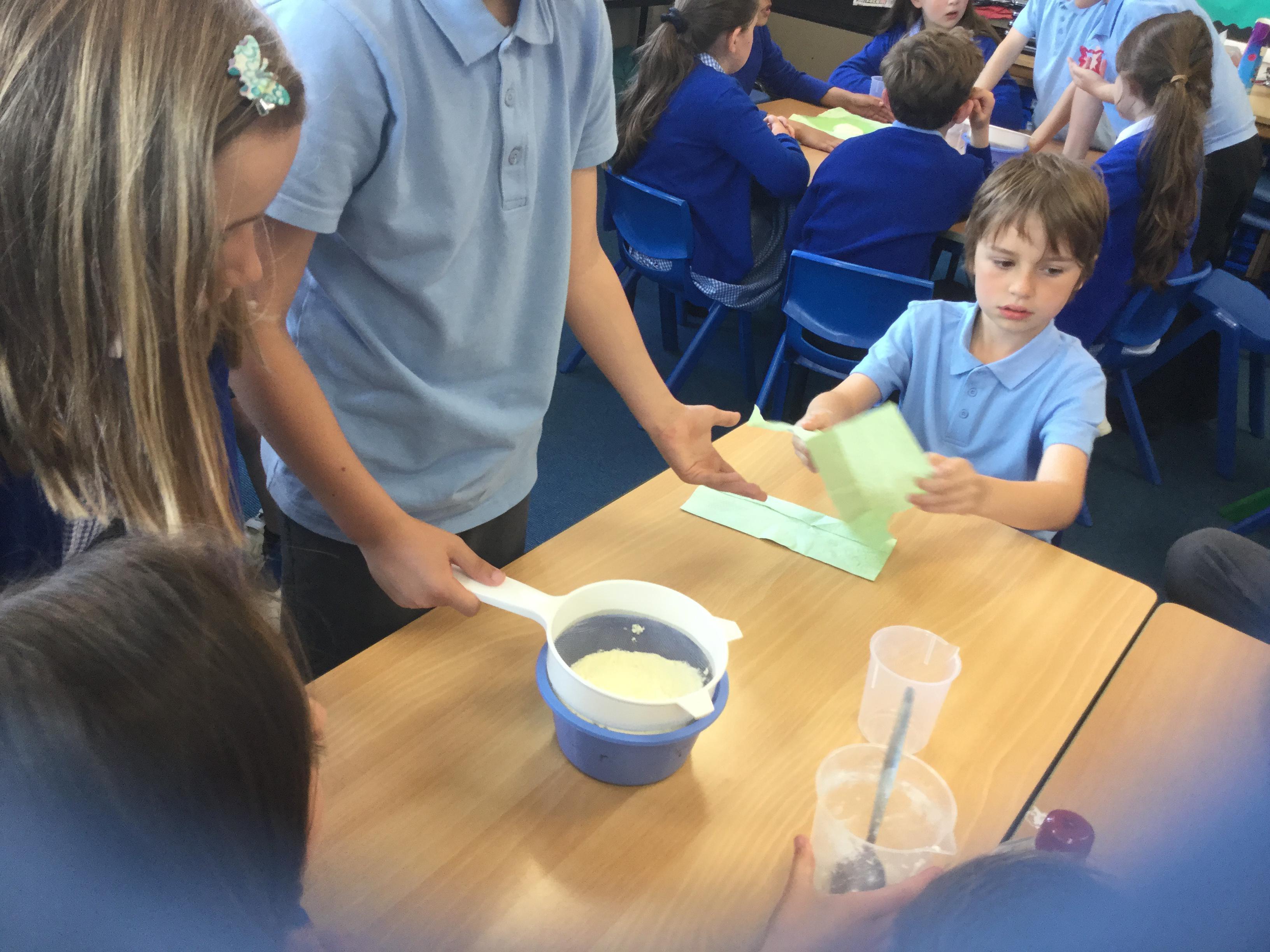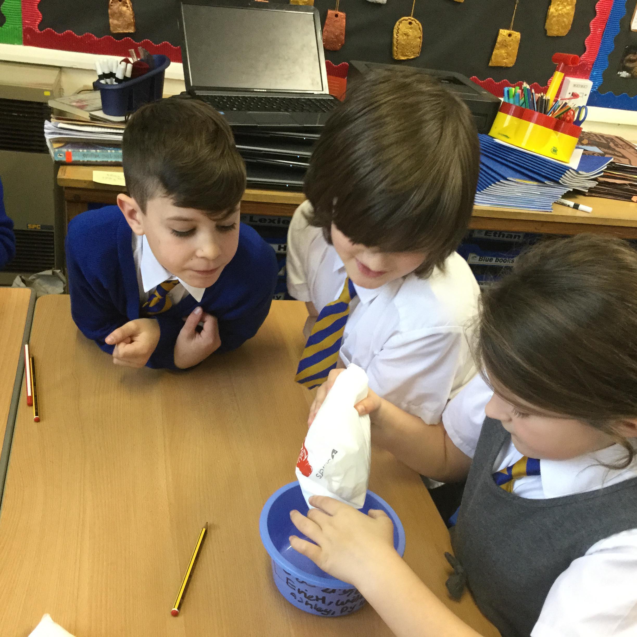 In Science we have been looking at reversible and irreversible changes. We carried out an investigation to see how temperature affected how quickly sugar dissolves (reversible with evaporation) and made plastic using milk and vinegar (irreversible).  It was a lot of fun but a little smelly!