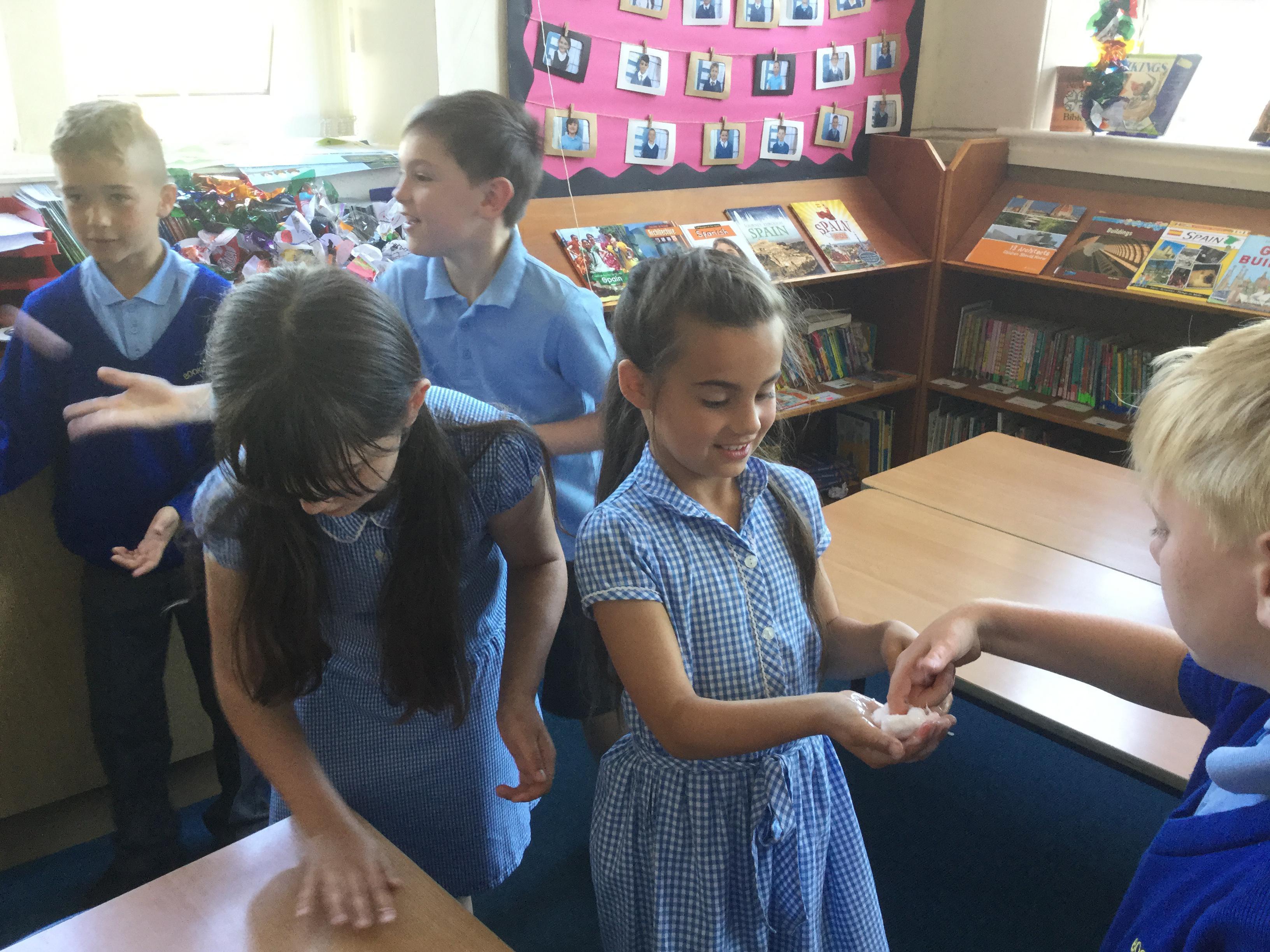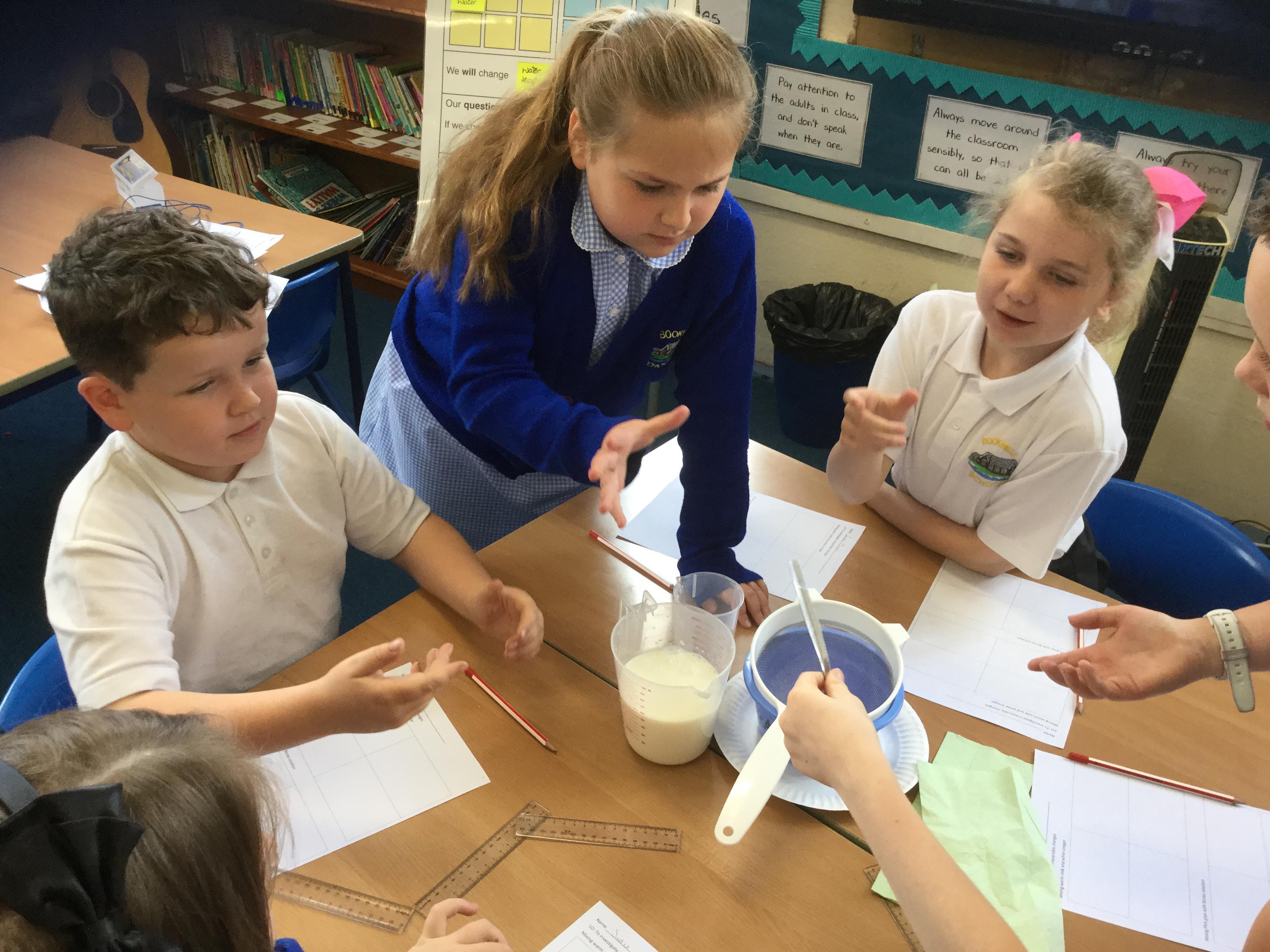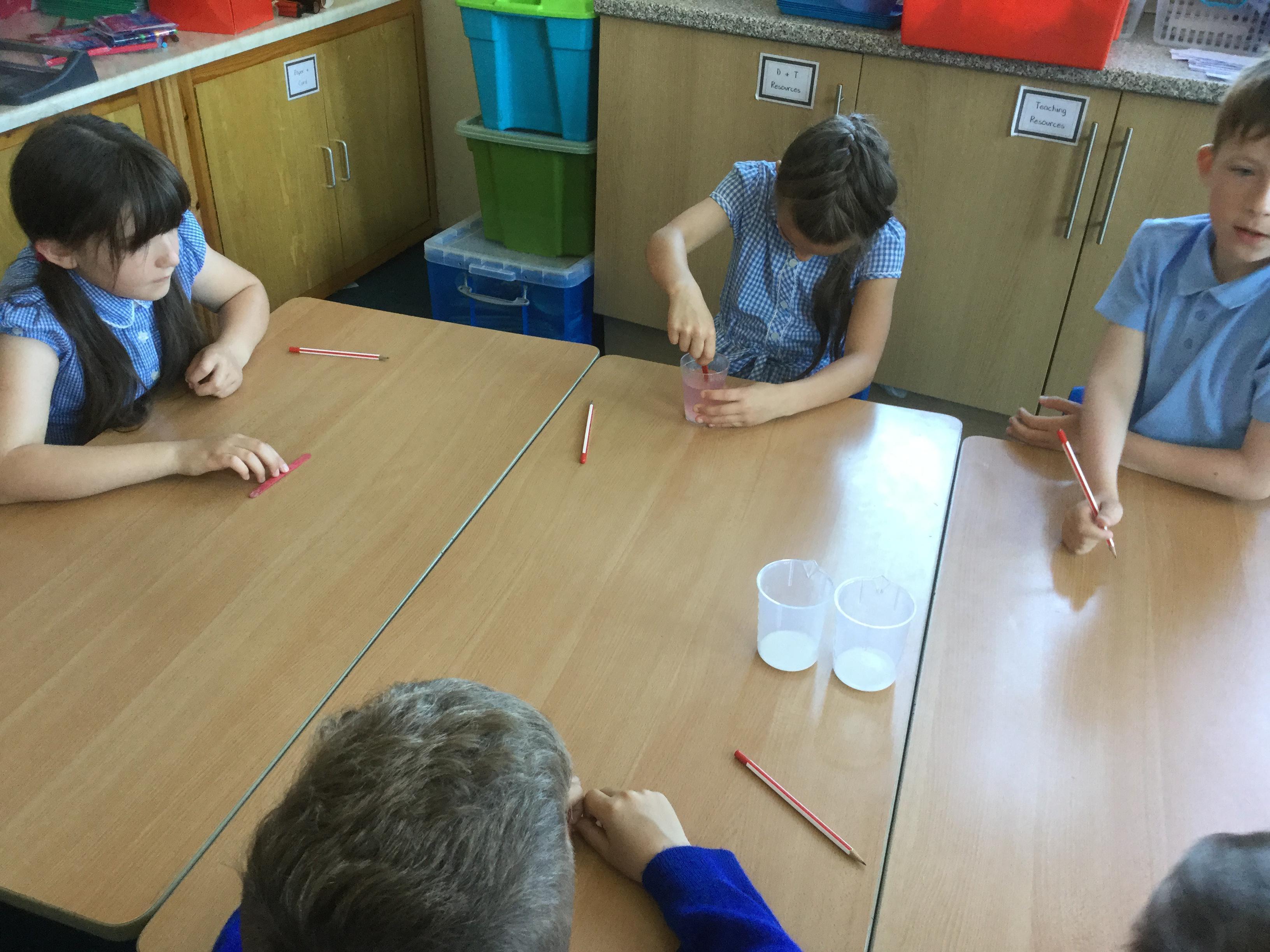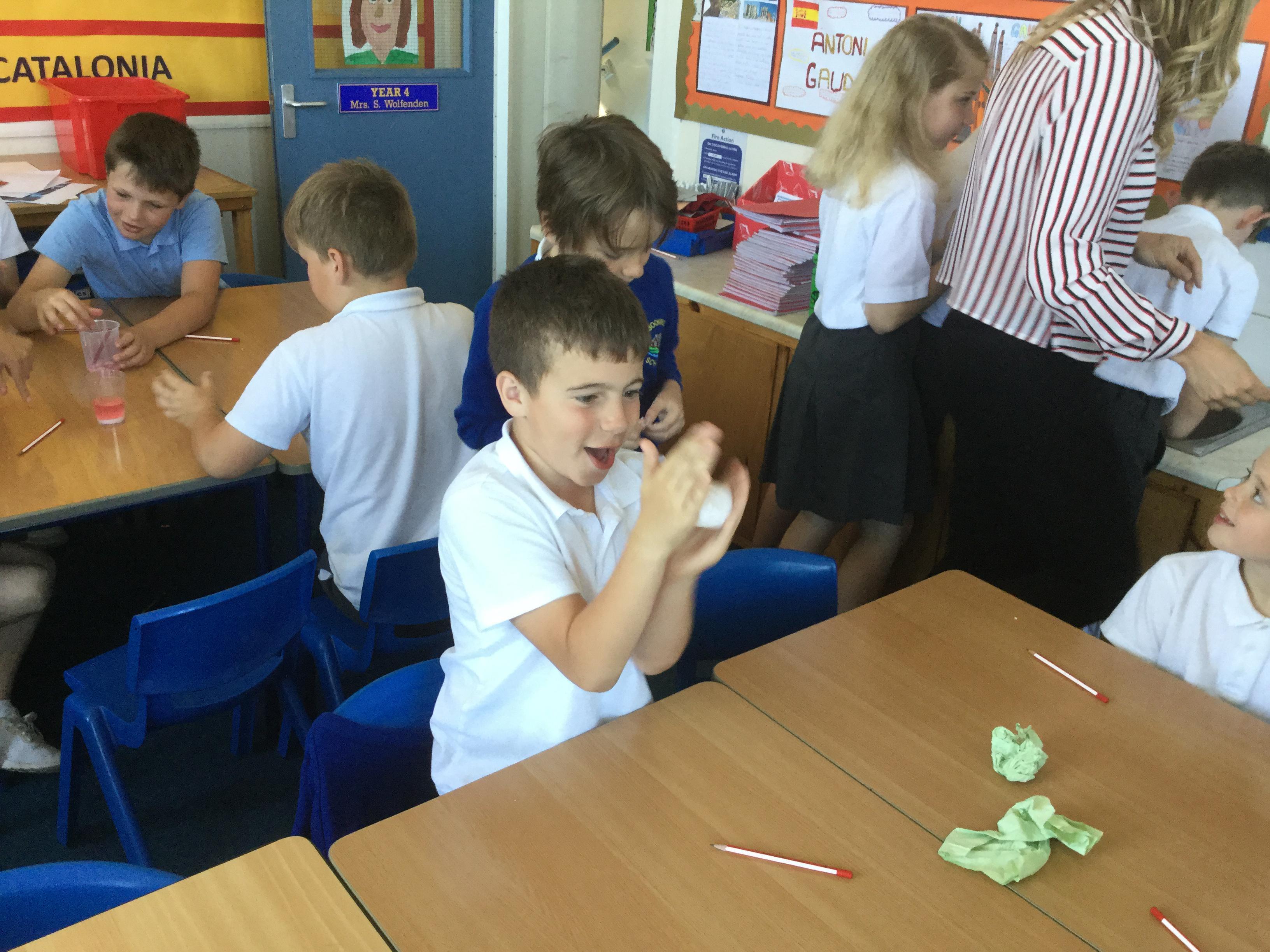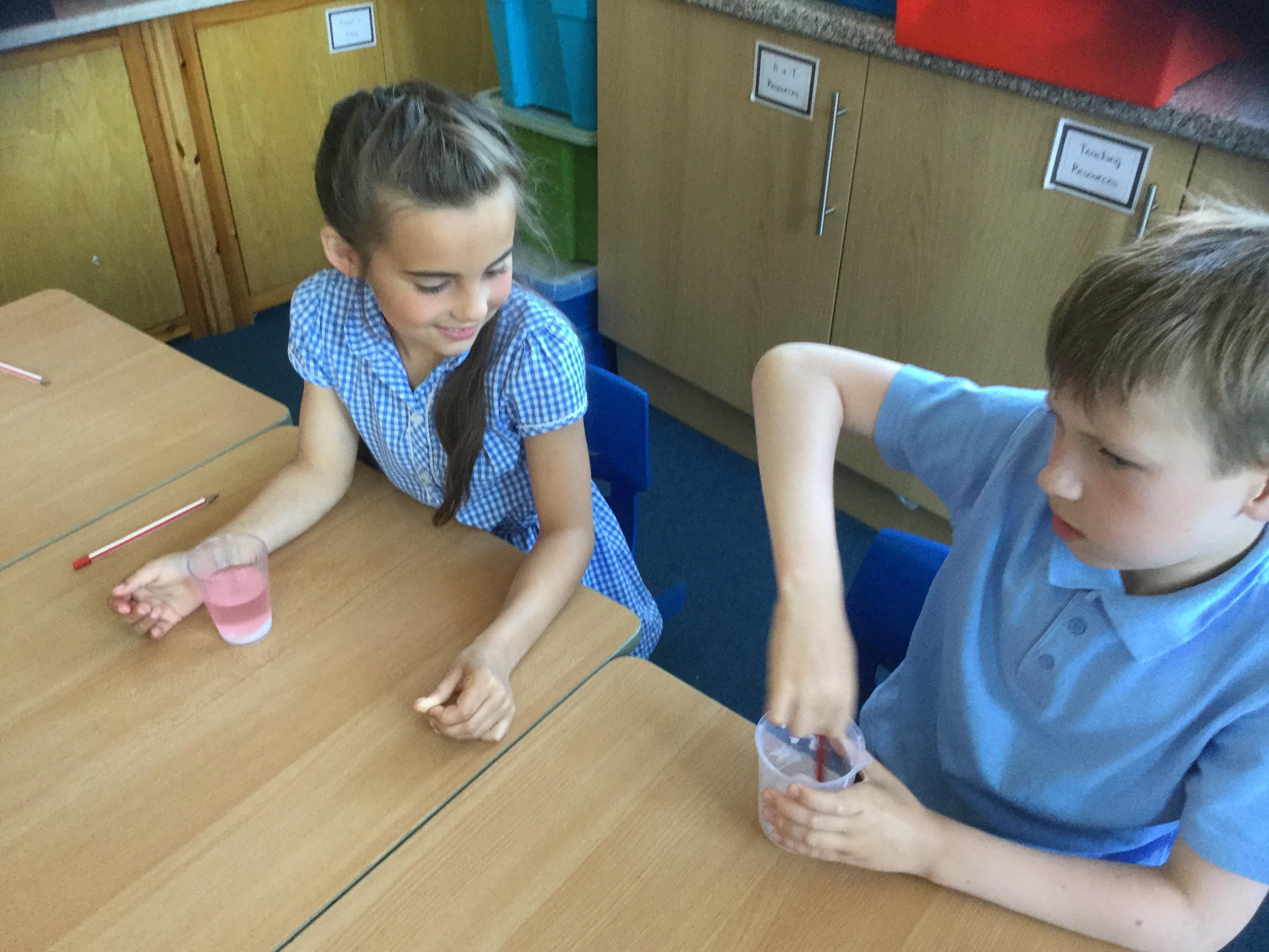 In Science we have been looking at reversible and irreversible changes. We carried out an investigation to see how temperature affected how quickly sugar dissolves (reversible with evaporation) and made plastic using milk and vinegar (irreversible).  It was a lot of fun but a little smelly!
