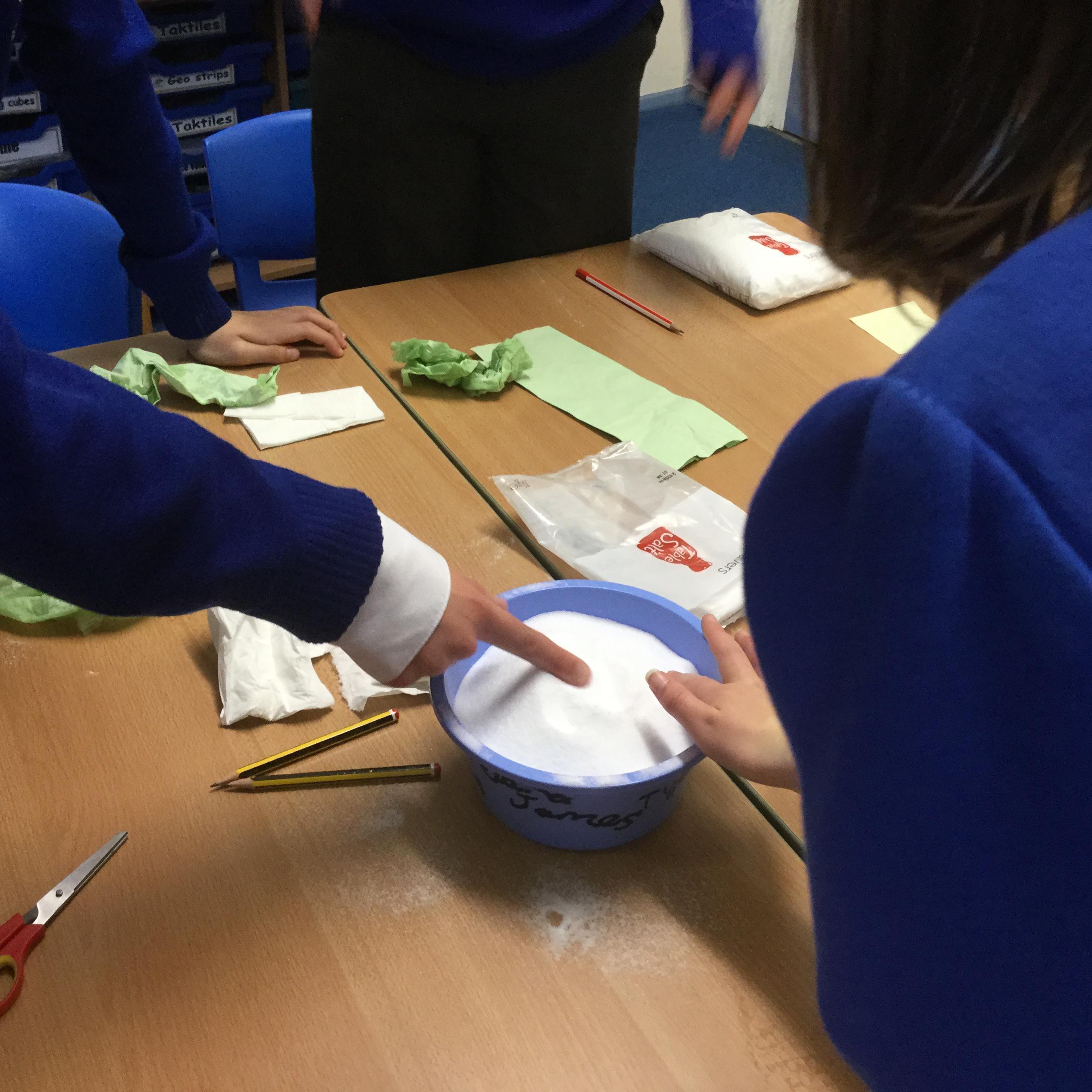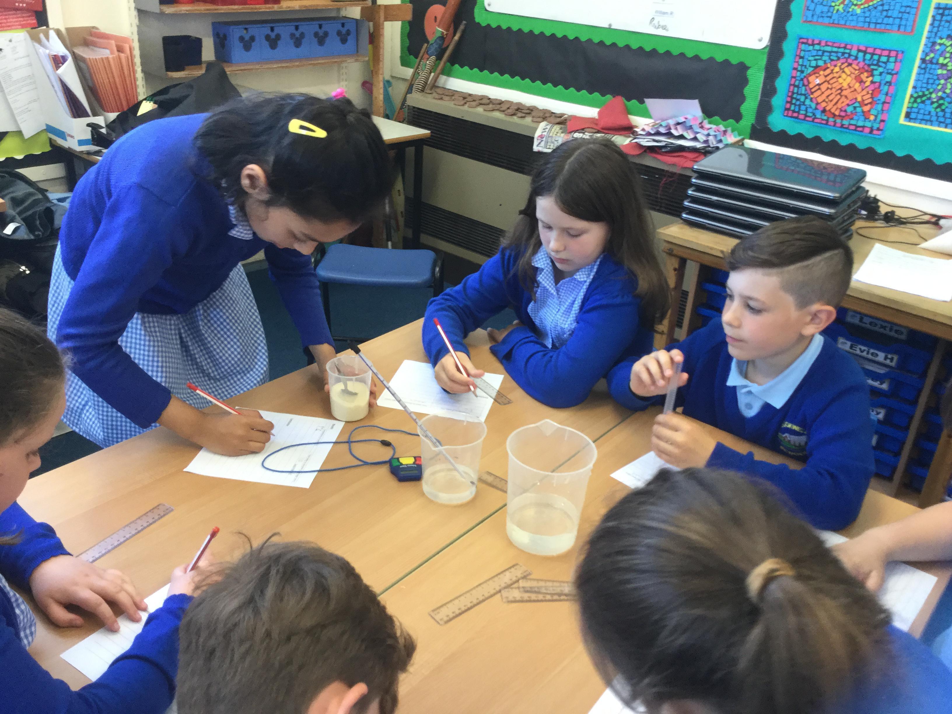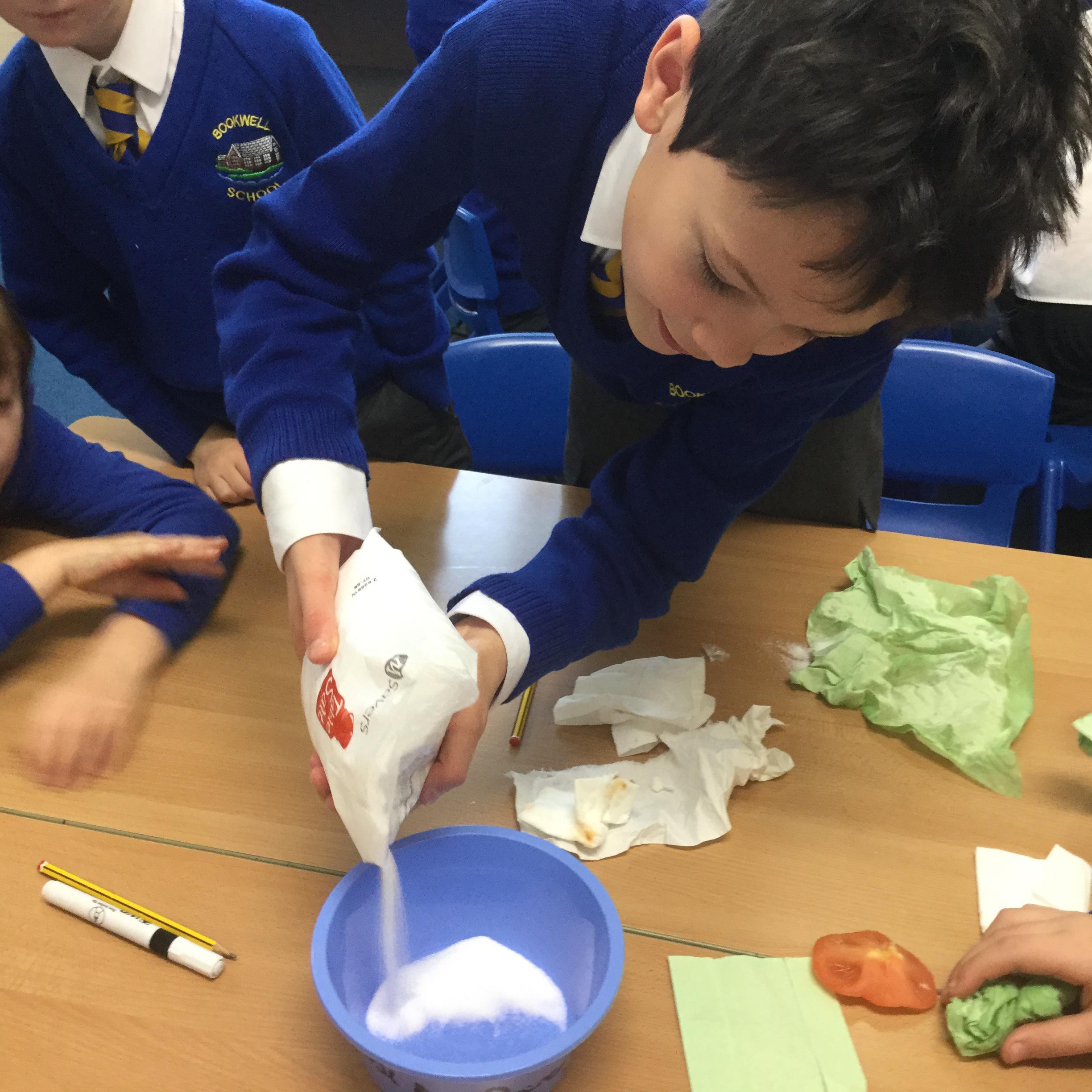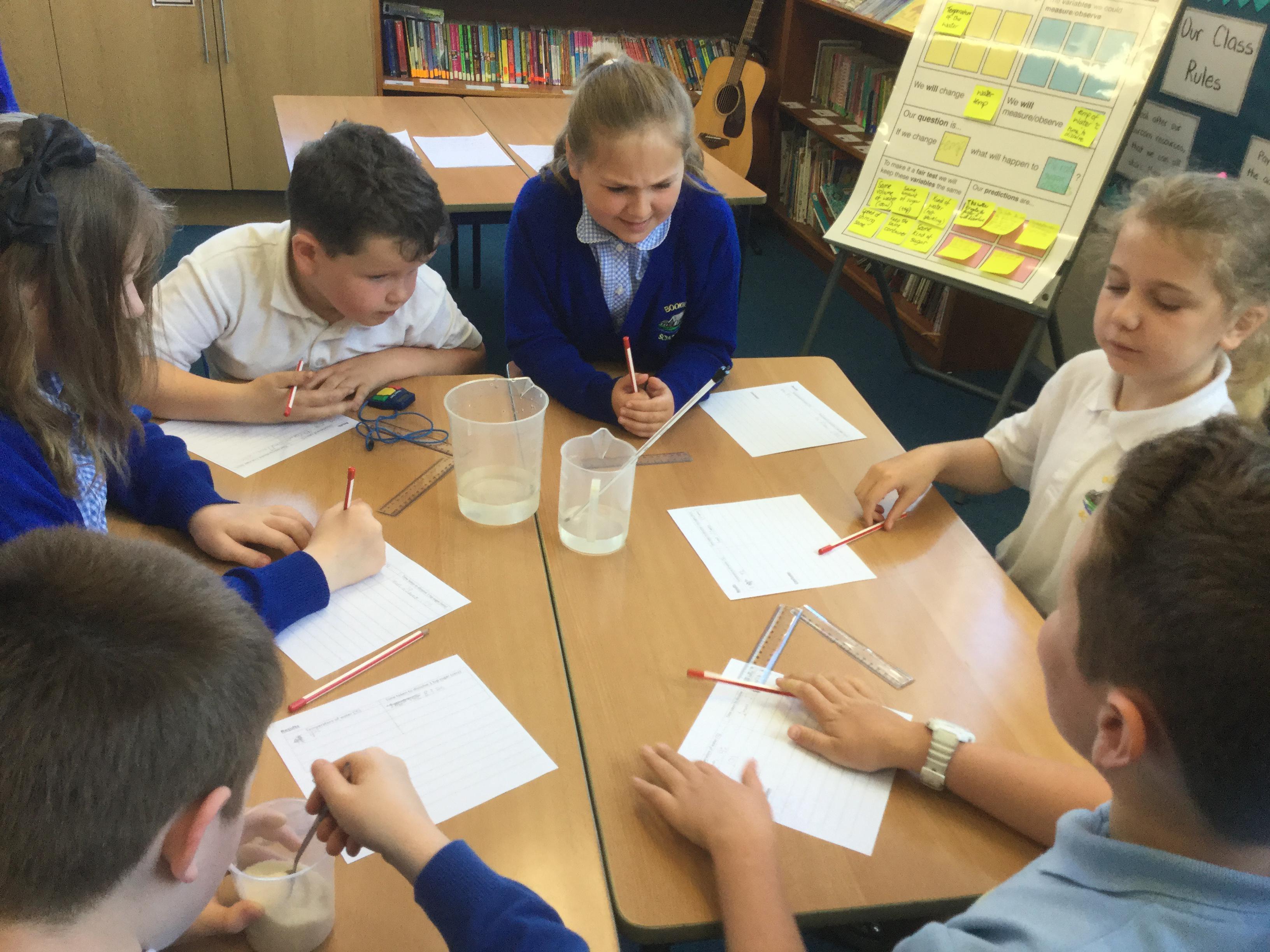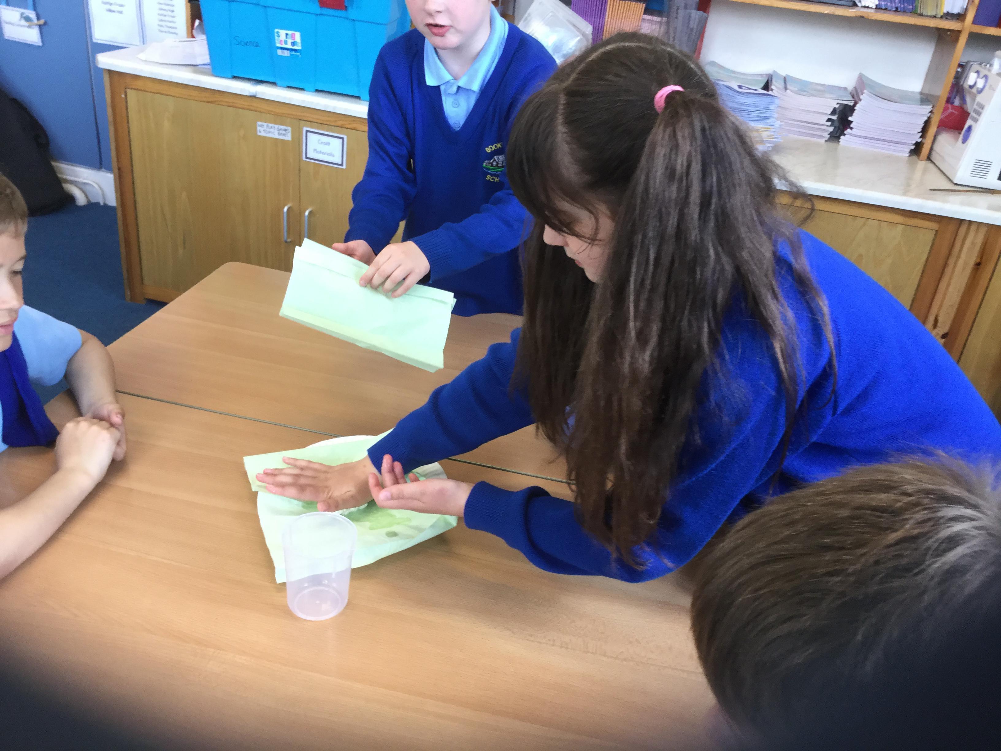 In Science we have been looking at reversible and irreversible changes. We carried out an investigation to see how temperature affected how quickly sugar dissolves (reversible with evaporation) and made plastic using milk and vinegar (irreversible).  It was a lot of fun but a little smelly!